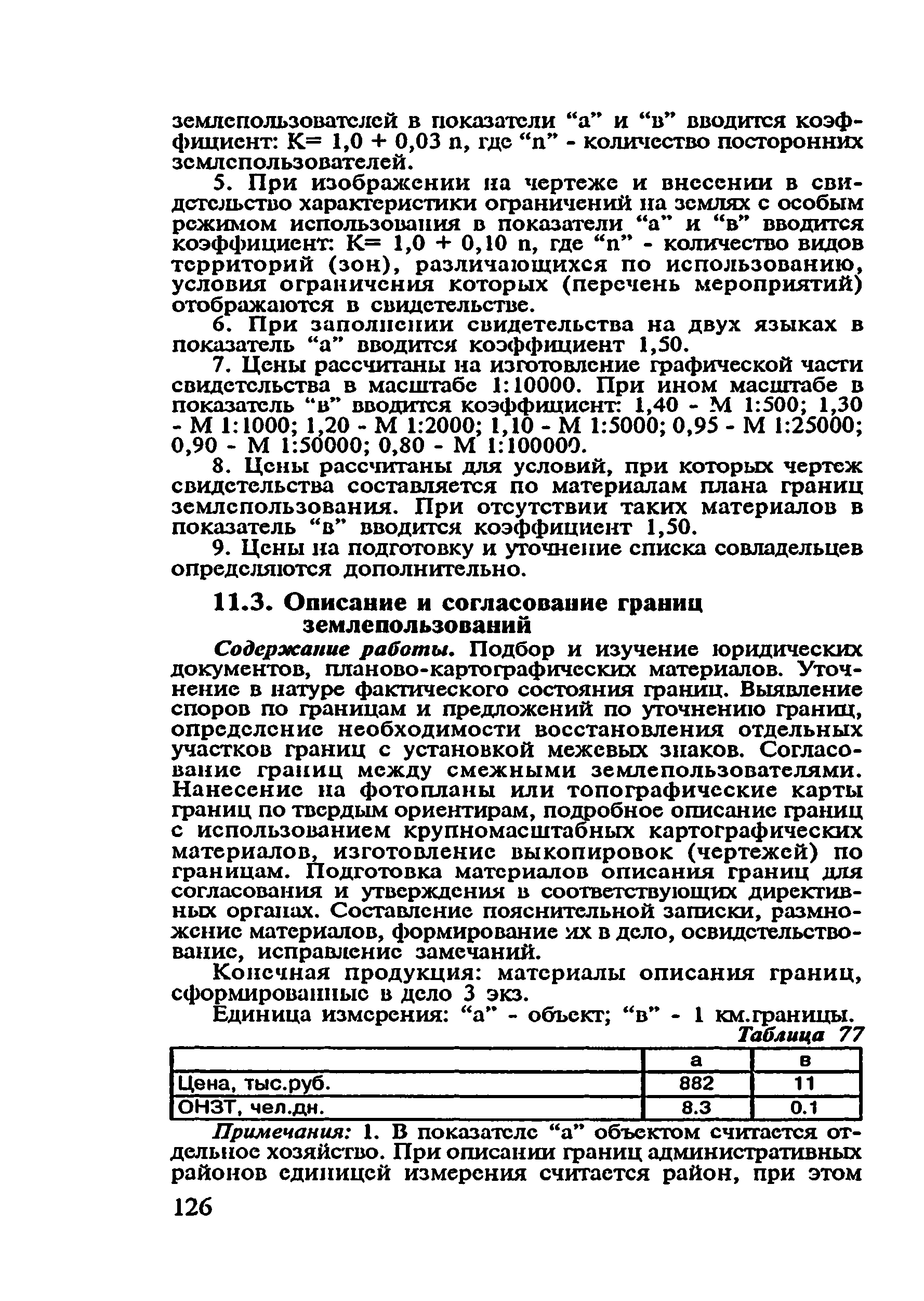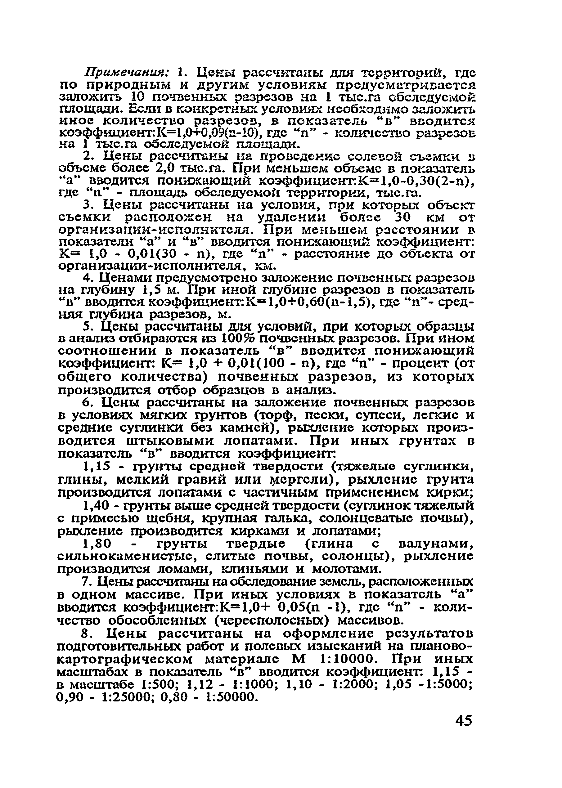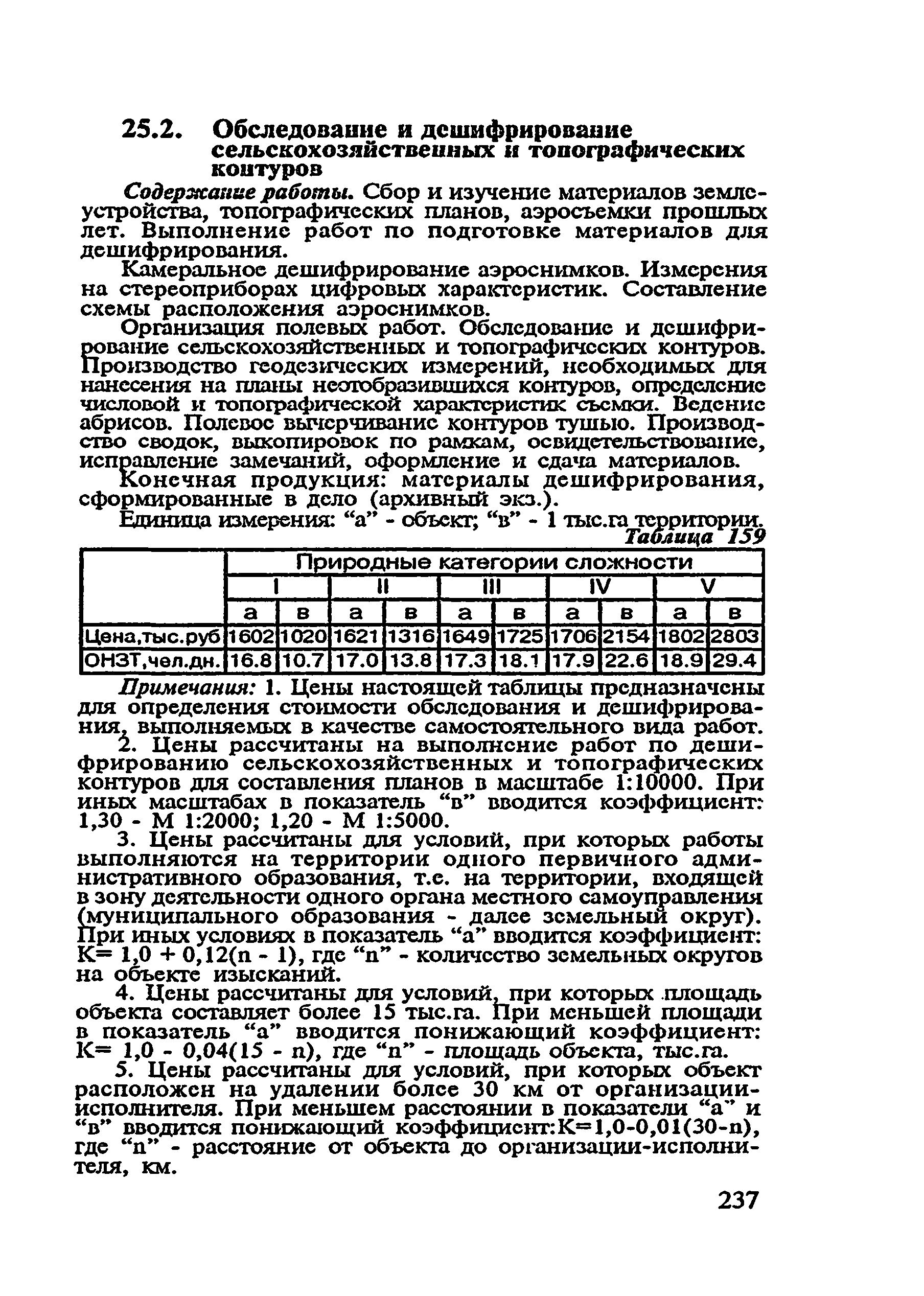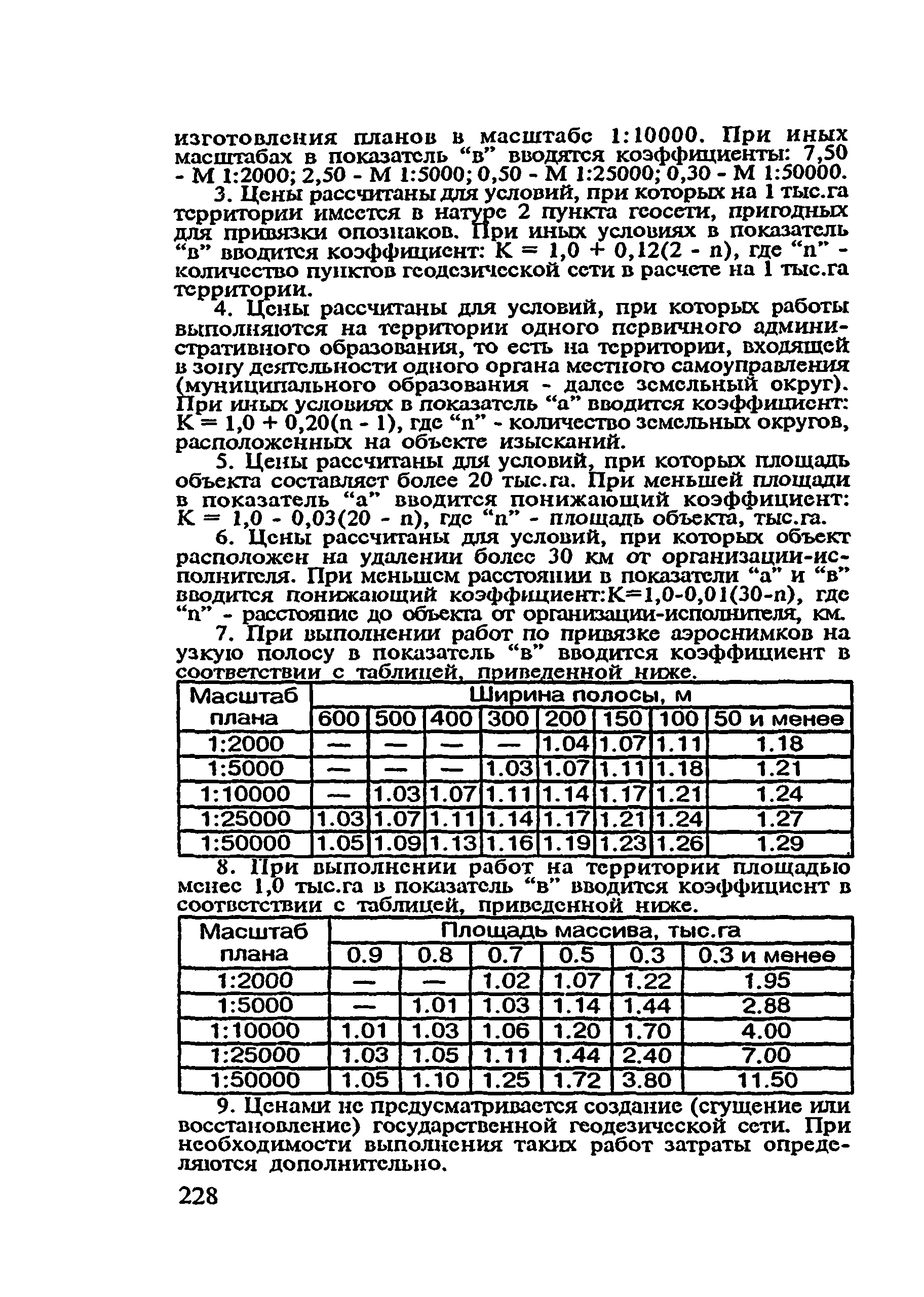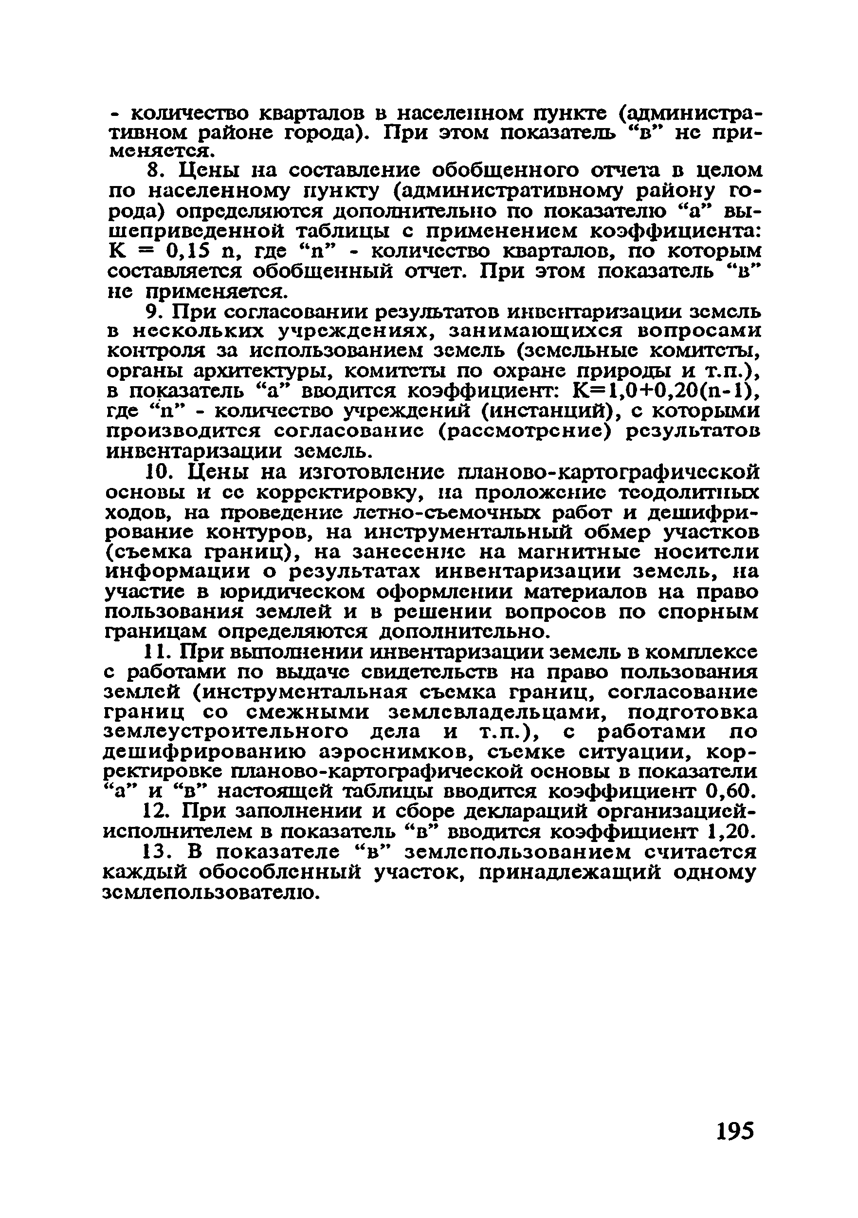 Сборник цен и общественно необходимых затрат труда (ОНЗТ) на изготовление проектной и изыскательской продукции землеустройства, земельного кадастра и мониторинга земель| Статус: | действует | | Название рус.: | Сборник цен и общественно необходимых затрат труда (ОНЗТ) на изготовление проектной и изыскательской продукции землеустройства, земельного кадастра и мониторинга земель | | Дата добавления в базу: | 01.09.2013 | | Дата актуализации: | 01.01.2021 | | Дата введения: | 01.01.1996 | | Область применения: | Сборник предназначен для установления нормативных затрат труда (ОНЗТ) и определения сметной стоимости работ при заключении договоров на изготовление проектной и изыскательской продукции землеустройства, земельного кадастра и мониторинга земель | | Оглавление: | Общие указания Часть I. Изыскания Глава 1. Топографо-геодезические изыскания Глава 2. Работы, сопутствующие геодезическим изысканиям Глава 3. Почвенно-мелиоративные изыскания Глава 4. Геоботанические и зоотехнические изыскания Часть II. Вычисление площадей, изготовление материалов для графического учета земель Глава 5. Вычисление площадей, изготовление материалов для графического учета земель Глава 6. Составление тематических карт и очерков по району, области (краю, республике) Часть III. Проектные работы по охране и использованию земель Глава 7. Схемы (прогнозы) по охране земельных ресурсов и окружающей среды Глава 8. Схемы по использованию земельных ресурсов Глава 9. Земельно-оценочные работы Часть IV. Межхозяйственное землеустройство Глава 10. Проектные работы по созданию новых хозяйств и перераспределению земель Глава 11. Землеустроительные работы по оформлению документов на право пользования землей Часть V. Проектные работы по организации территории хозяйств и разработке мероприятий по улучшению использования земель Глава 12. Разработка проектов по организации территории хозяйств Глава 13. Разработка мероприятий по улучшению земель и хозяйственной деятельности Глава 14. Землеустройство оленеводческих хозяйств и охотничьих угодий Часть VI. Разработка рабочих проектов Глава 15. Разработка рабочих проектов по защите почв от эрозии Глава 16. Разработка рабочих проектов по мелиорации земель Глава 17. Разработка рабочих проектов по строительству объектов хозяйственного назначения Часть VII. Землеустроительные работы по осуществлению проектных разработок Глава 18. Перенесение проектов землеустройства в натуру Глава 19. Контроль за освоением проектов и использованием земель Часть VIII. Чертежные работы, размножение и оформление материалов, разные работы Глава 20. Чертежные работы Глава 21. Картографические и множительные работы Глава 22. Оформительские работы Глава 23. Разные работы Часть IX. Аэрофотогеодезические работы Глава 24. Создание сельскохозяйственных планов и карт Глава 25. Создание топографических планов сельскохозяйственного назначения Глава 26. Создание планов сельских населенных пунктов Глава 27. Работы, сопутствующие аэрофотогеодезическим изысканиям Часть X. Отдельные виды проектной и изыскательской продукции, прочие работы Глава 28. Лабораторные анализы растительных образцов, другие виды проектно-изыскательских работ Глава 29. Разработка норм времени, затрат труда (ОНЗТ) и цен на изготовление проектной и изыскательской продукции Приложения | | Разработан: | Научно-методическ