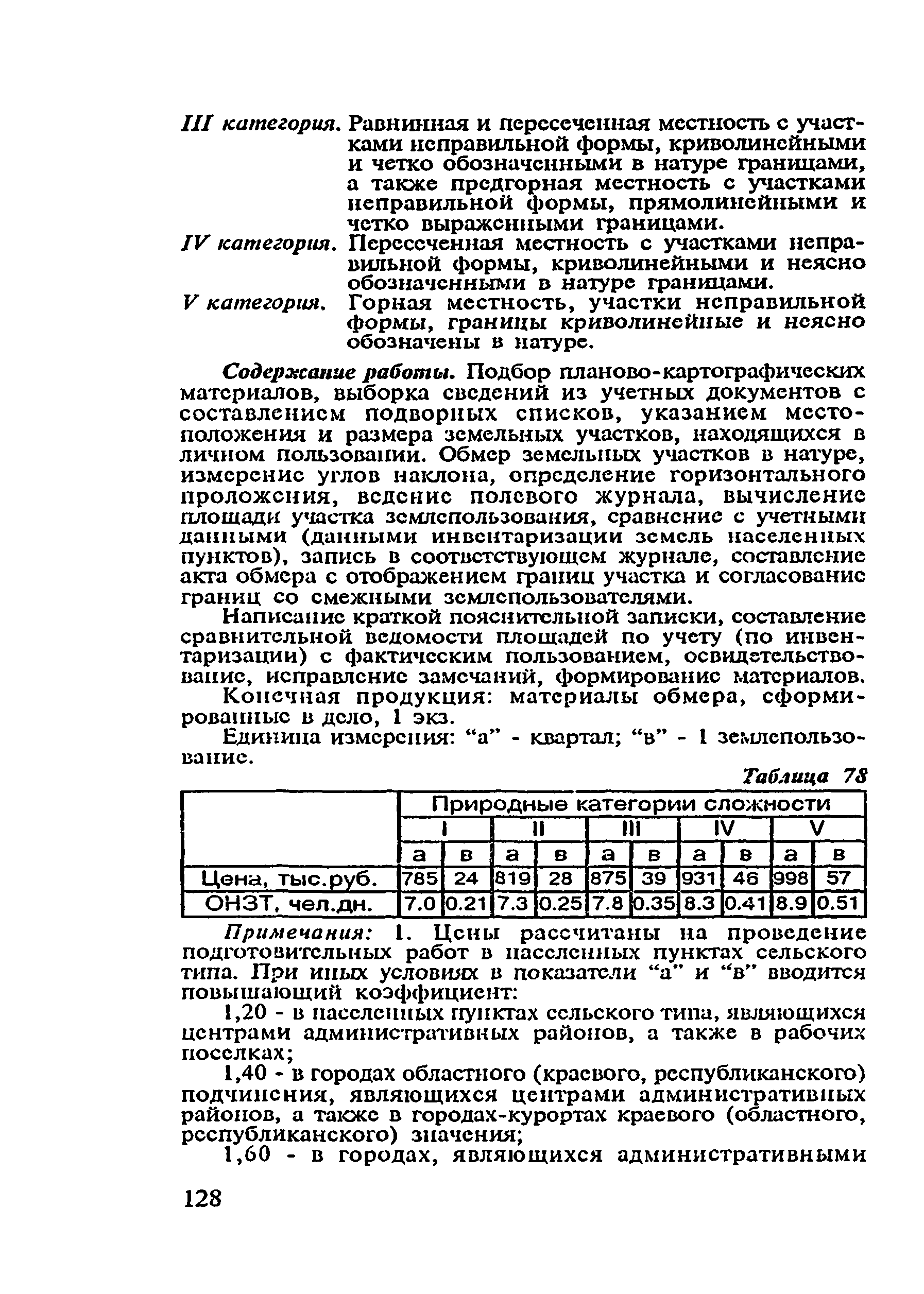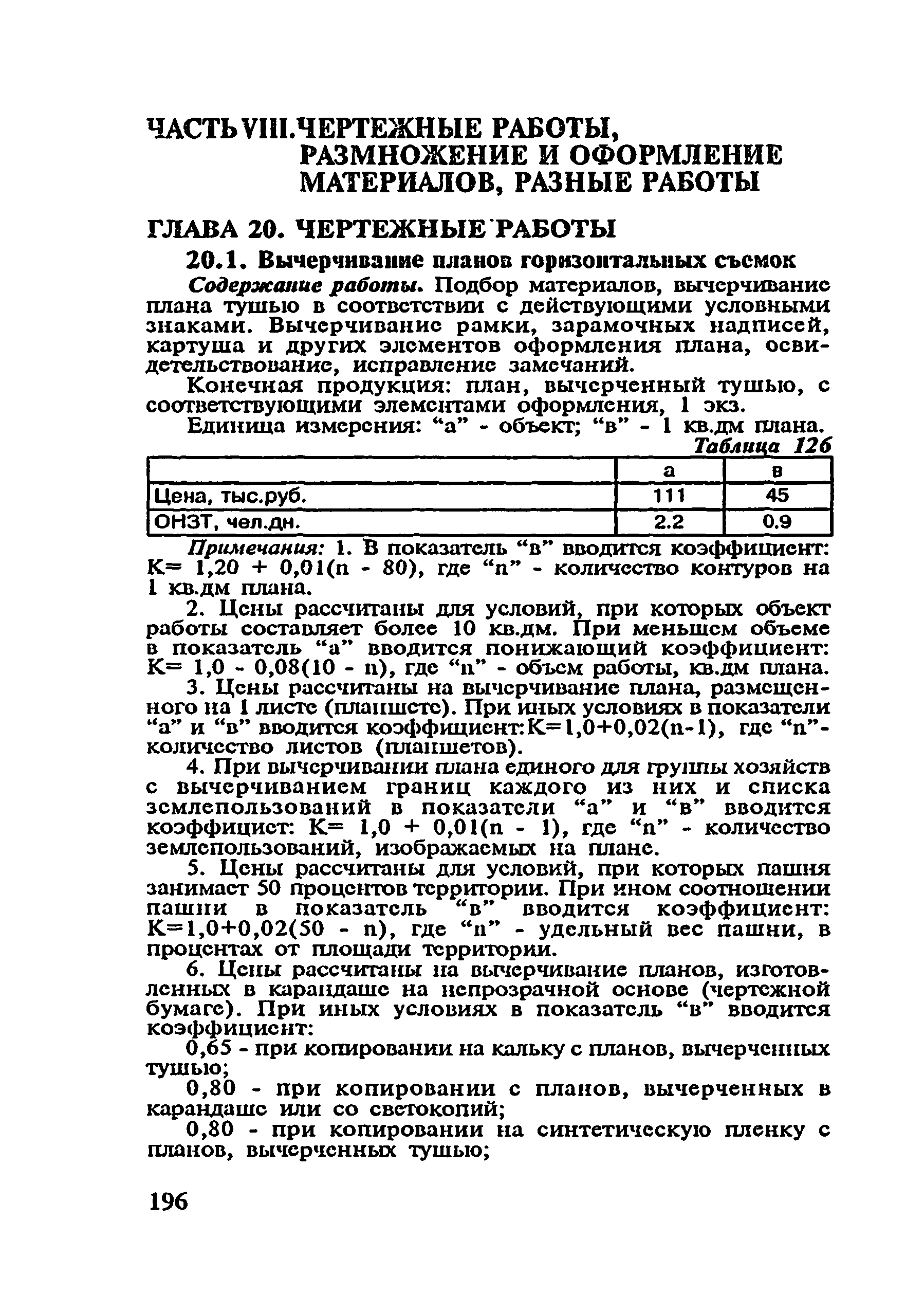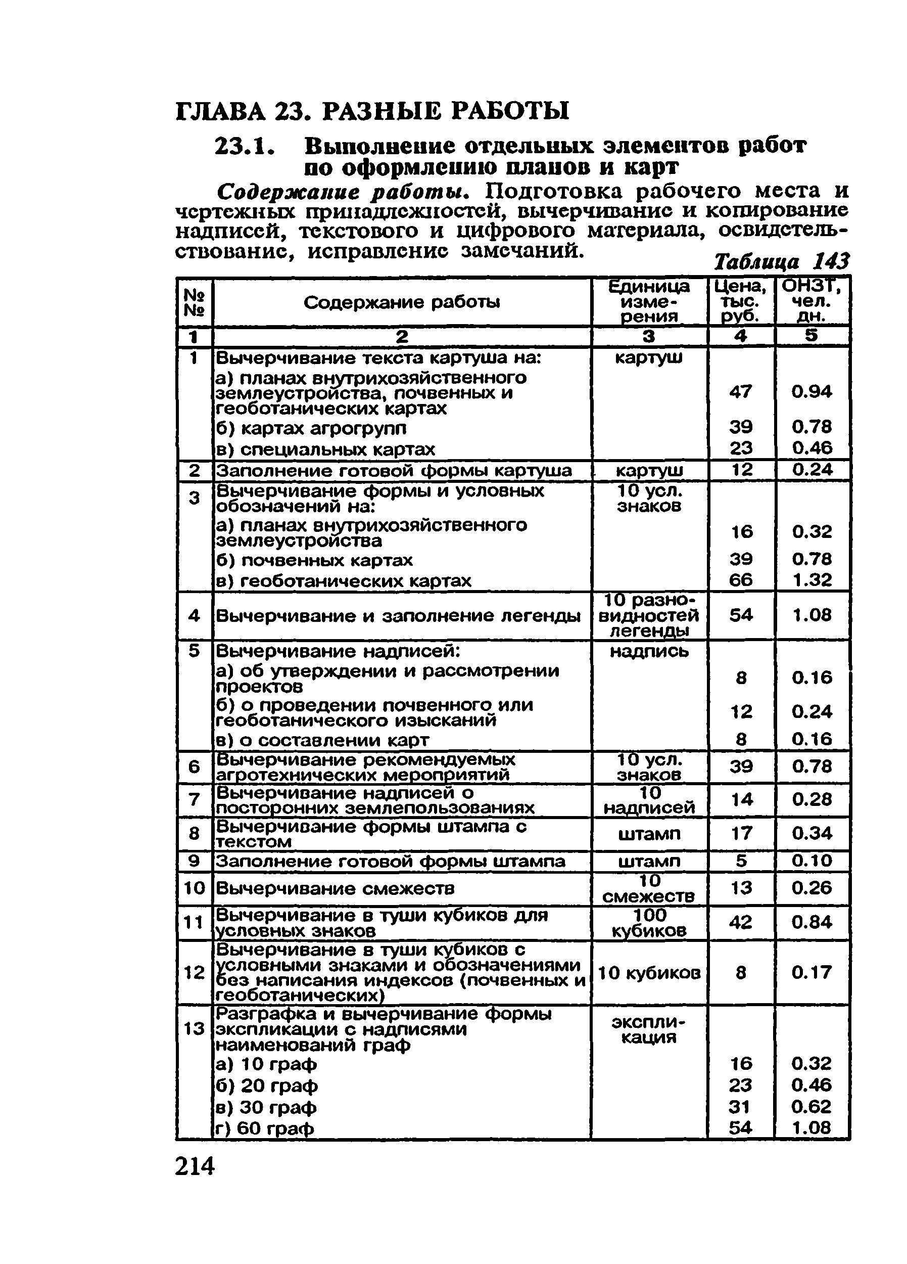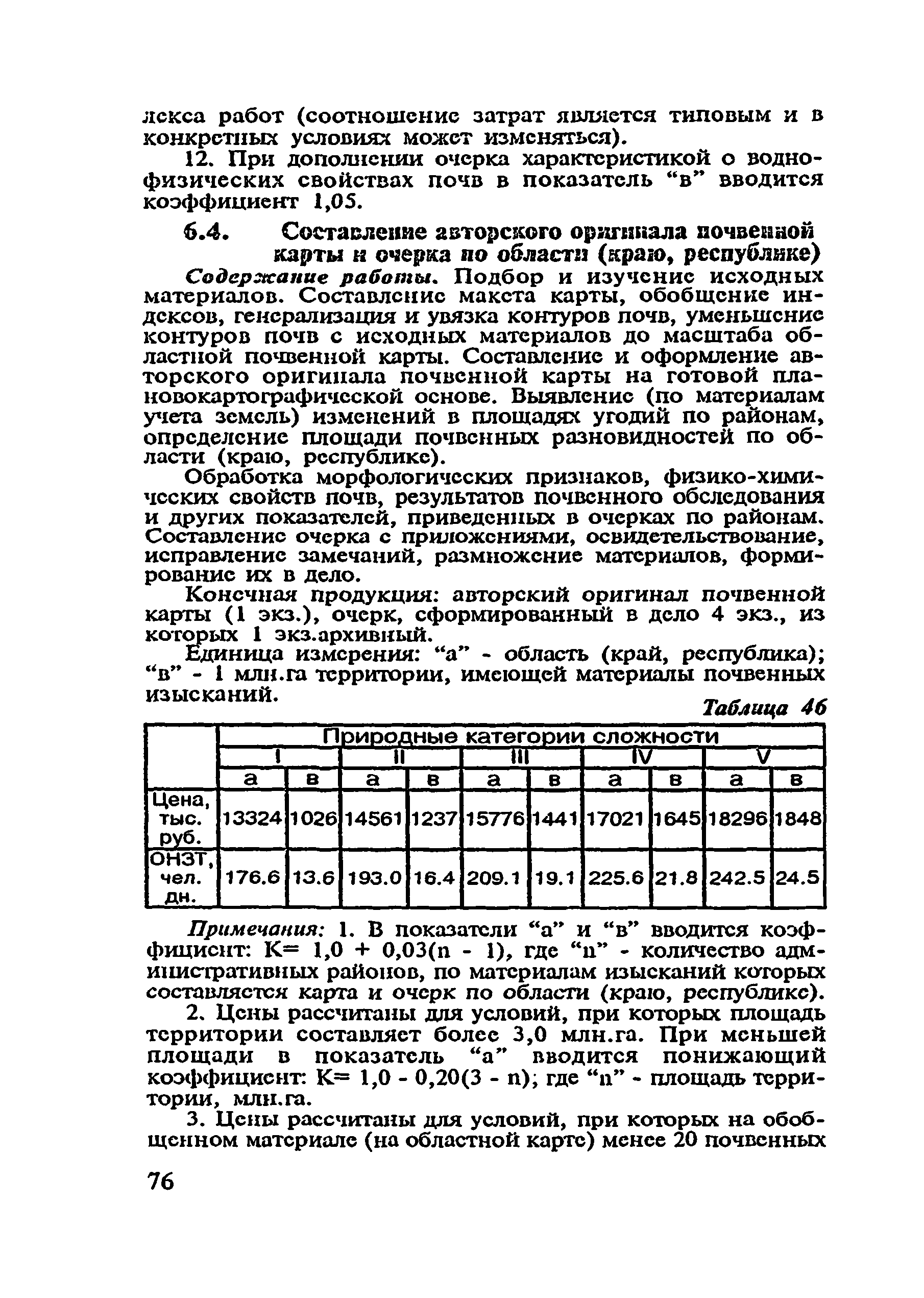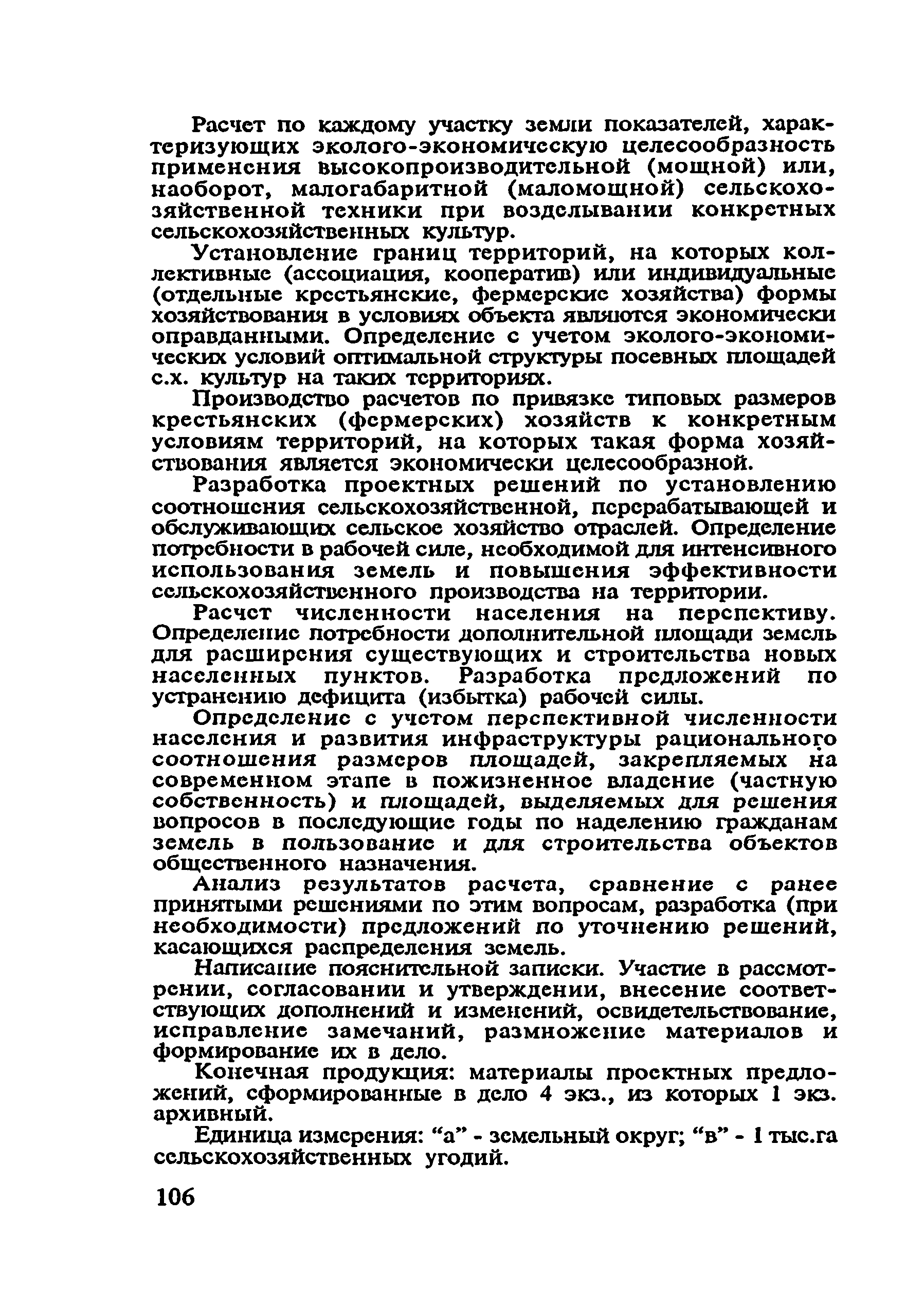 Сборник цен и общественно необходимых затрат труда (ОНЗТ) на изготовление проектной и изыскательской продукции землеустройства, земельного кадастра и мониторинга земель| Статус: | действует | | Название рус.: | Сборник цен и общественно необходимых затрат труда (ОНЗТ) на изготовление проектной и изыскательской продукции землеустройства, земельного кадастра и мониторинга земель | | Дата добавления в базу: | 01.09.2013 | | Дата актуализации: | 01.01.2021 | | Дата введения: | 01.01.1996 | | Область применения: | Сборник предназначен для установления нормативных затрат труда (ОНЗТ) и определения сметной стоимости работ при заключении договоров на изготовление проектной и изыскательской продукции землеустройства, земельного кадастра и мониторинга земель | | Оглавление: | Общие указания Часть I. Изыскания Глава 1. Топографо-геодезические изыскания Глава 2. Работы, сопутствующие геодезическим изысканиям Глава 3. Почвенно-мелиоративные изыскания Глава 4. Геоботанические и зоотехнические изыскания Часть II. Вычисление площадей, изготовление материалов для графического учета земель Глава 5. Вычисление площадей, изготовление материалов для графического учета земель Глава 6. Составление тематических карт и очерков по району, области (краю, республике) Часть III. Проектные работы по охране и использованию земель Глава 7. Схемы (прогнозы) по охране земельных ресурсов и окружающей среды Глава 8. Схемы по использованию земельных ресурсов Глава 9. Земельно-оценочные работы Часть IV. Межхозяйственное землеустройство Глава 10. Проектные работы по созданию новых хозяйств и перераспределению земель Глава 11. Землеустроительные работы по оформлению документов на право пользования землей Часть V. Проектные работы по организации территории хозяйств и разработке мероприятий по улучшению использования земель Глава 12. Разработка проектов по организации территории хозяйств Глава 13. Разработка мероприятий по улучшению земель и хозяйственной деятельности Глава 14. Землеустройство оленеводческих хозяйств и охотничьих угодий Часть VI. Разработка рабочих проектов Глава 15. Разработка рабочих проектов по защите почв от эрозии Глава 16. Разработка рабочих проектов по мелиорации земель Глава 17. Разработка рабочих проектов по строительству объектов хозяйственного назначения Часть VII. Землеустроительные работы по осуществлению проектных разработок Глава 18. Перенесение проектов землеустройства в натуру Глава 19. Контроль за освоением проектов и использованием земель Часть VIII. Чертежные работы, размножение и оформление материалов, разные работы Глава 20. Чертежные работы Глава 21. Картографические и множительные работы Глава 22. Оформительские работы Глава 23. Разные работы Часть IX. Аэрофотогеодезические работы Глава 24. Создание сельскохозяйственных планов и карт Глава 25. Создание топографических планов сельскохозяйственного назначения Глава 26. Создание планов сельских населенных пунктов Глава 27. Работы, сопутствующие аэрофотогеодезическим изысканиям Часть X. Отдельные виды проектной и изыскательской продукции, прочие работы Глава 28. Лабораторные анализы растительных образцов, другие виды проектно-изыскательских работ Глава 29. Разработка норм времени, затрат труда (ОНЗТ) и цен на изготовление проектной и изыскательской продукции Приложения | | Разработан: | Научно-методическ