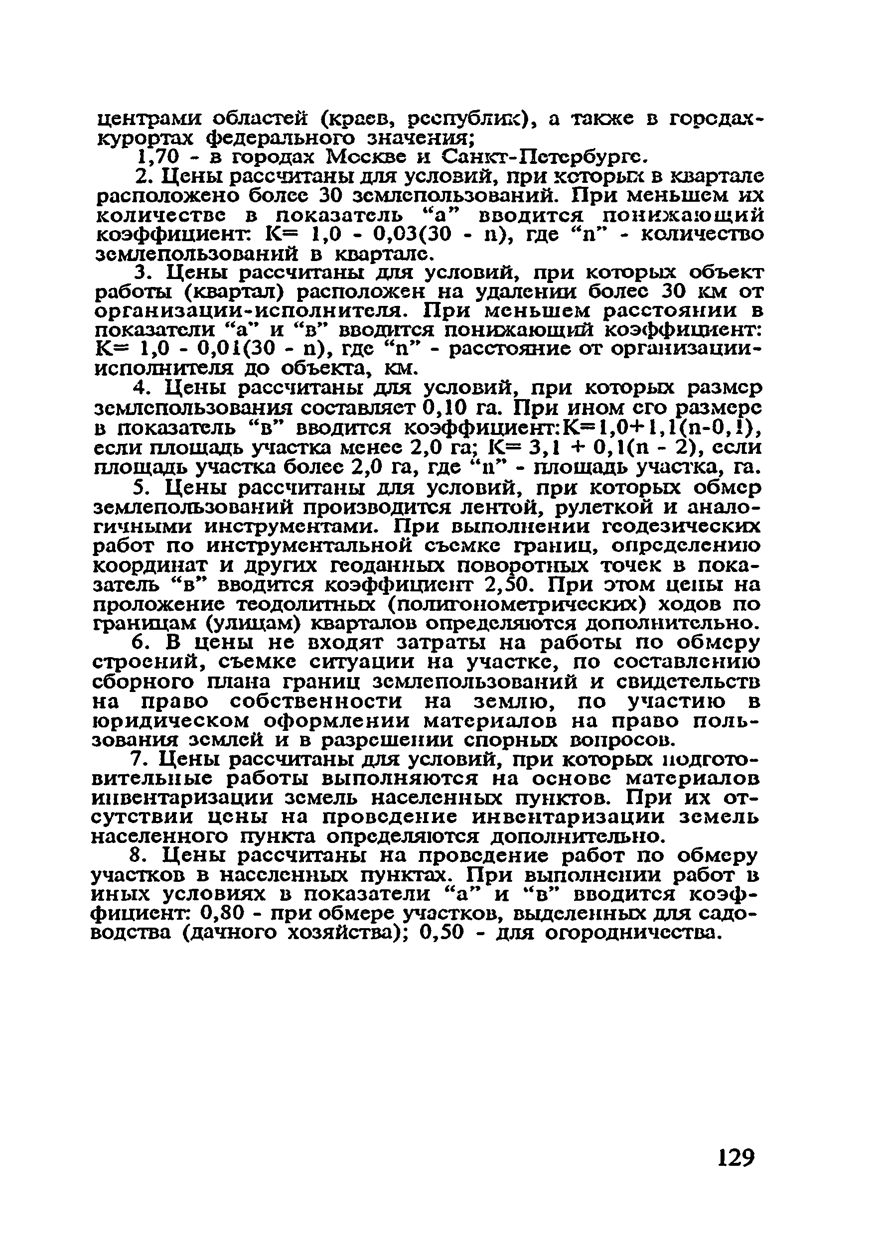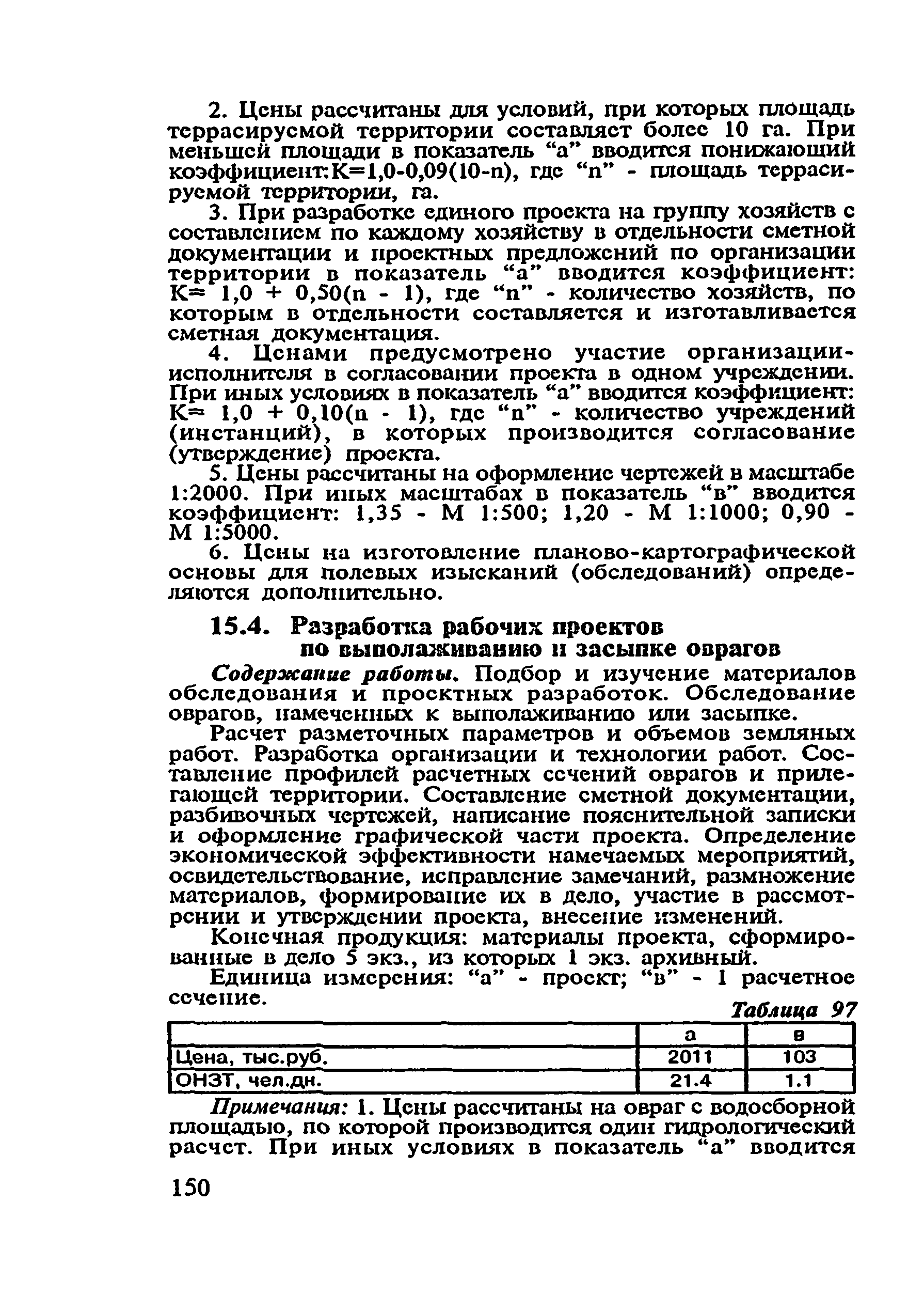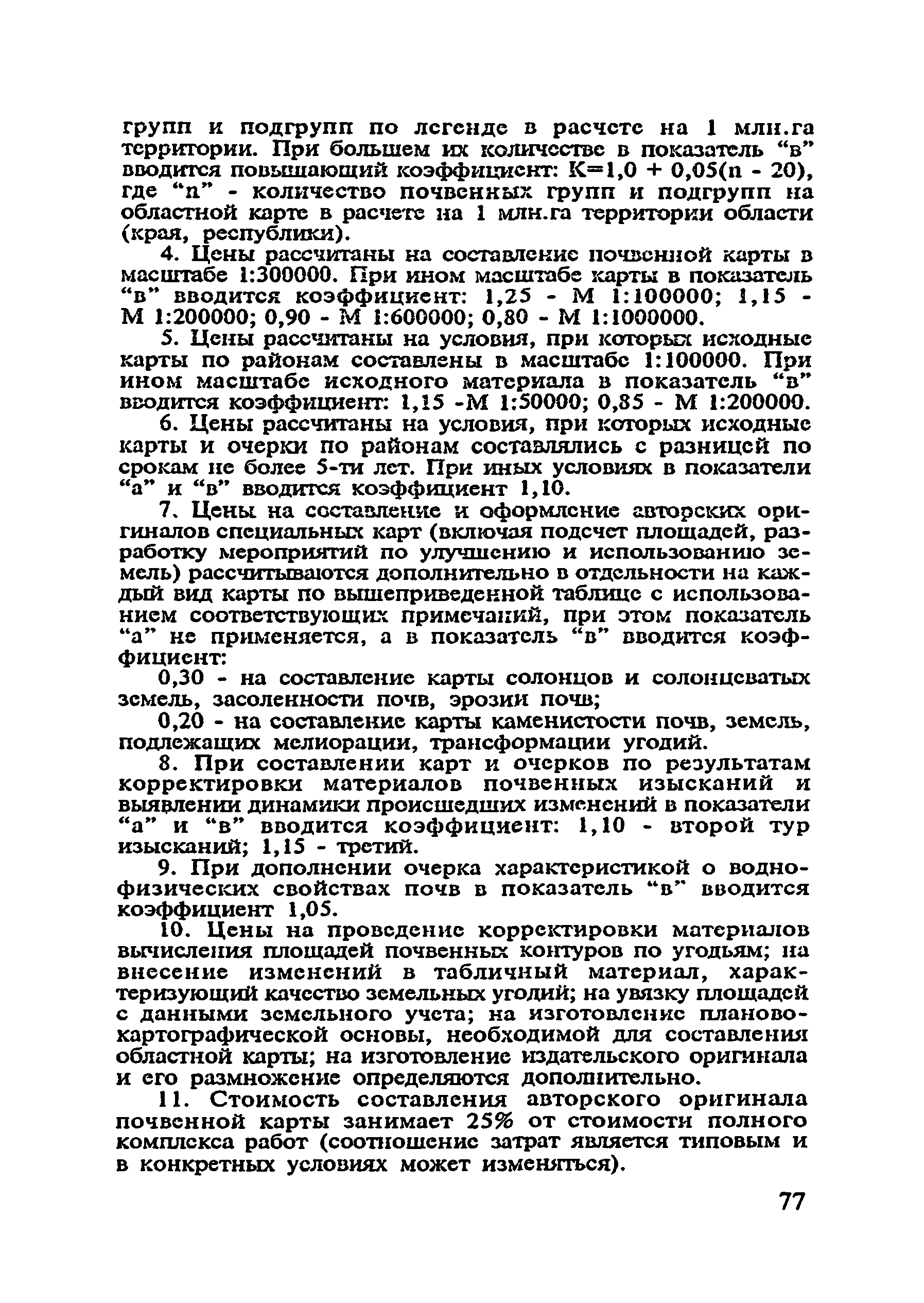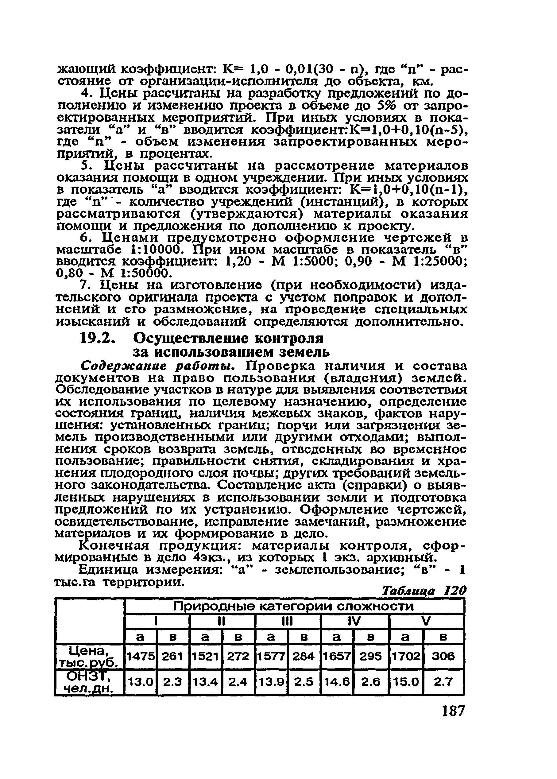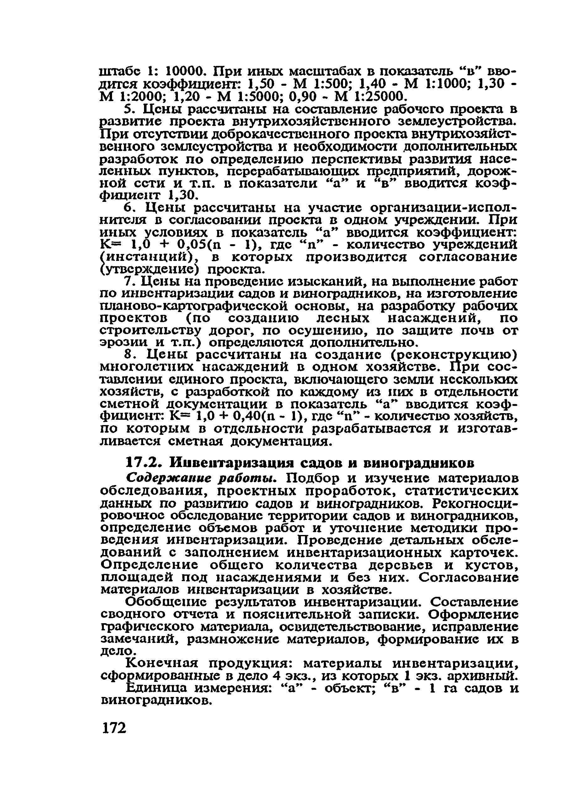 Сборник цен и общественно необходимых затрат труда (ОНЗТ) на изготовление проектной и изыскательской продукции землеустройства, земельного кадастра и мониторинга земель| Статус: | действует | | Название рус.: | Сборник цен и общественно необходимых затрат труда (ОНЗТ) на изготовление проектной и изыскательской продукции землеустройства, земельного кадастра и мониторинга земель | | Дата добавления в базу: | 01.09.2013 | | Дата актуализации: | 01.01.2021 | | Дата введения: | 01.01.1996 | | Область применения: | Сборник предназначен для установления нормативных затрат труда (ОНЗТ) и определения сметной стоимости работ при заключении договоров на изготовление проектной и изыскательской продукции землеустройства, земельного кадастра и мониторинга земель | | Оглавление: | Общие указания Часть I. Изыскания Глава 1. Топографо-геодезические изыскания Глава 2. Работы, сопутствующие геодезическим изысканиям Глава 3. Почвенно-мелиоративные изыскания Глава 4. Геоботанические и зоотехнические изыскания Часть II. Вычисление площадей, изготовление материалов для графического учета земель Глава 5. Вычисление площадей, изготовление материалов для графического учета земель Глава 6. Составление тематических карт и очерков по району, области (краю, республике) Часть III. Проектные работы по охране и использованию земель Глава 7. Схемы (прогнозы) по охране земельных ресурсов и окружающей среды Глава 8. Схемы по использованию земельных ресурсов Глава 9. Земельно-оценочные работы Часть IV. Межхозяйственное землеустройство Глава 10. Проектные работы по созданию новых хозяйств и перераспределению земель Глава 11. Землеустроительные работы по оформлению документов на право пользования землей Часть V. Проектные работы по организации территории хозяйств и разработке мероприятий по улучшению использования земель Глава 12. Разработка проектов по организации территории хозяйств Глава 13. Разработка мероприятий по улучшению земель и хозяйственной деятельности Глава 14. Землеустройство оленеводческих хозяйств и охотничьих угодий Часть VI. Разработка рабочих проектов Глава 15. Разработка рабочих проектов по защите почв от эрозии Глава 16. Разработка рабочих проектов по мелиорации земель Глава 17. Разработка рабочих проектов по строительству объектов хозяйственного назначения Часть VII. Землеустроительные работы по осуществлению проектных разработок Глава 18. Перенесение проектов землеустройства в натуру Глава 19. Контроль за освоением проектов и использованием земель Часть VIII. Чертежные работы, размножение и оформление материалов, разные работы Глава 20. Чертежные работы Глава 21. Картографические и множительные работы Глава 22. Оформительские работы Глава 23. Разные работы Часть IX. Аэрофотогеодезические работы Глава 24. Создание сельскохозяйственных планов и карт Глава 25. Создание топографических планов сельскохозяйственного назначения Глава 26. Создание планов сельских населенных пунктов Глава 27. Работы, сопутствующие аэрофотогеодезическим изысканиям Часть X. Отдельные виды проектной и изыскательской продукции, прочие работы Глава 28. Лабораторные анализы растительных образцов, другие виды проектно-изыскательских работ Глава 29. Разработка норм времени, затрат труда (ОНЗТ) и цен на изготовление проектной и изыскательской продукции Приложения | | Разработан: | Научно-методическ