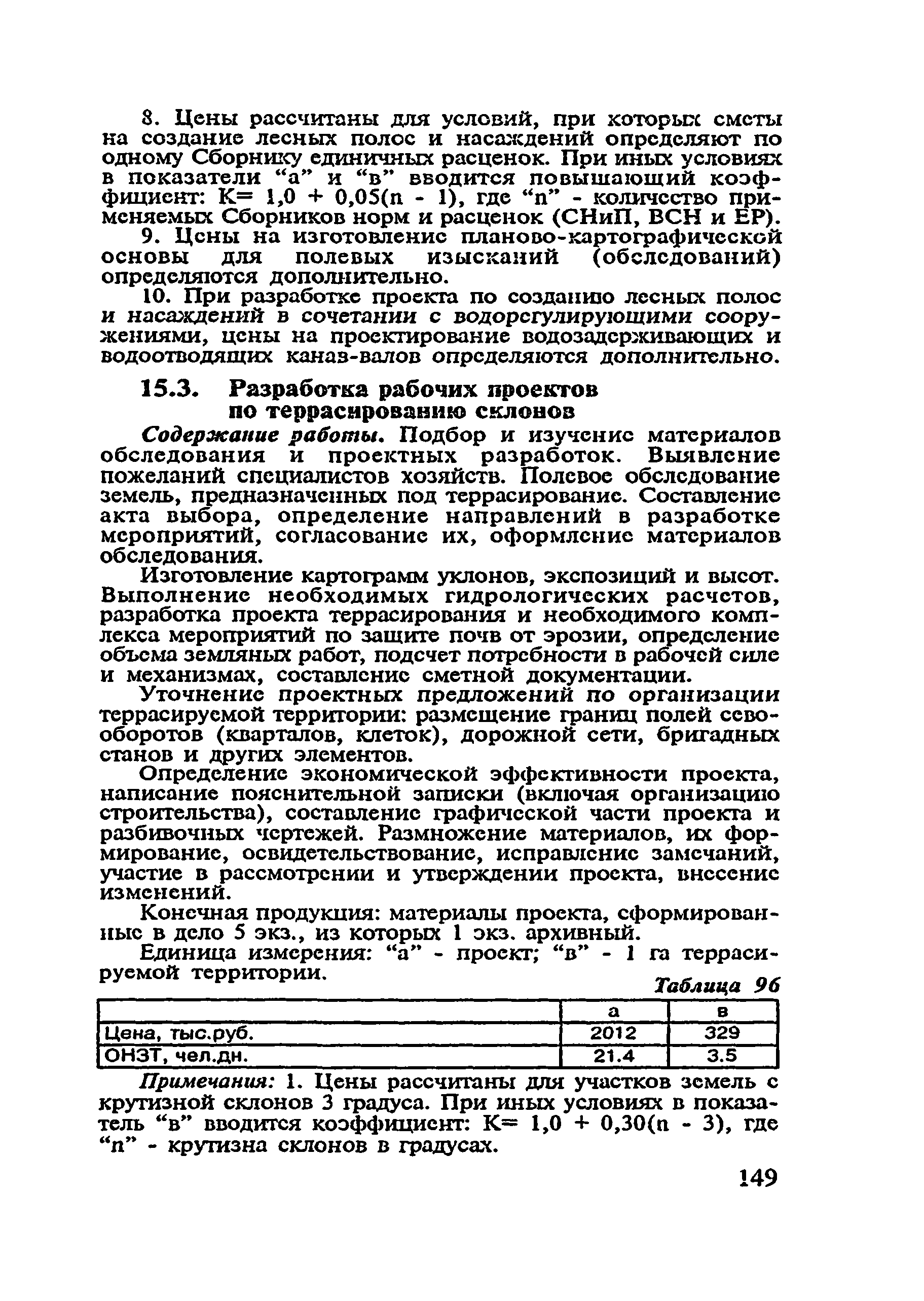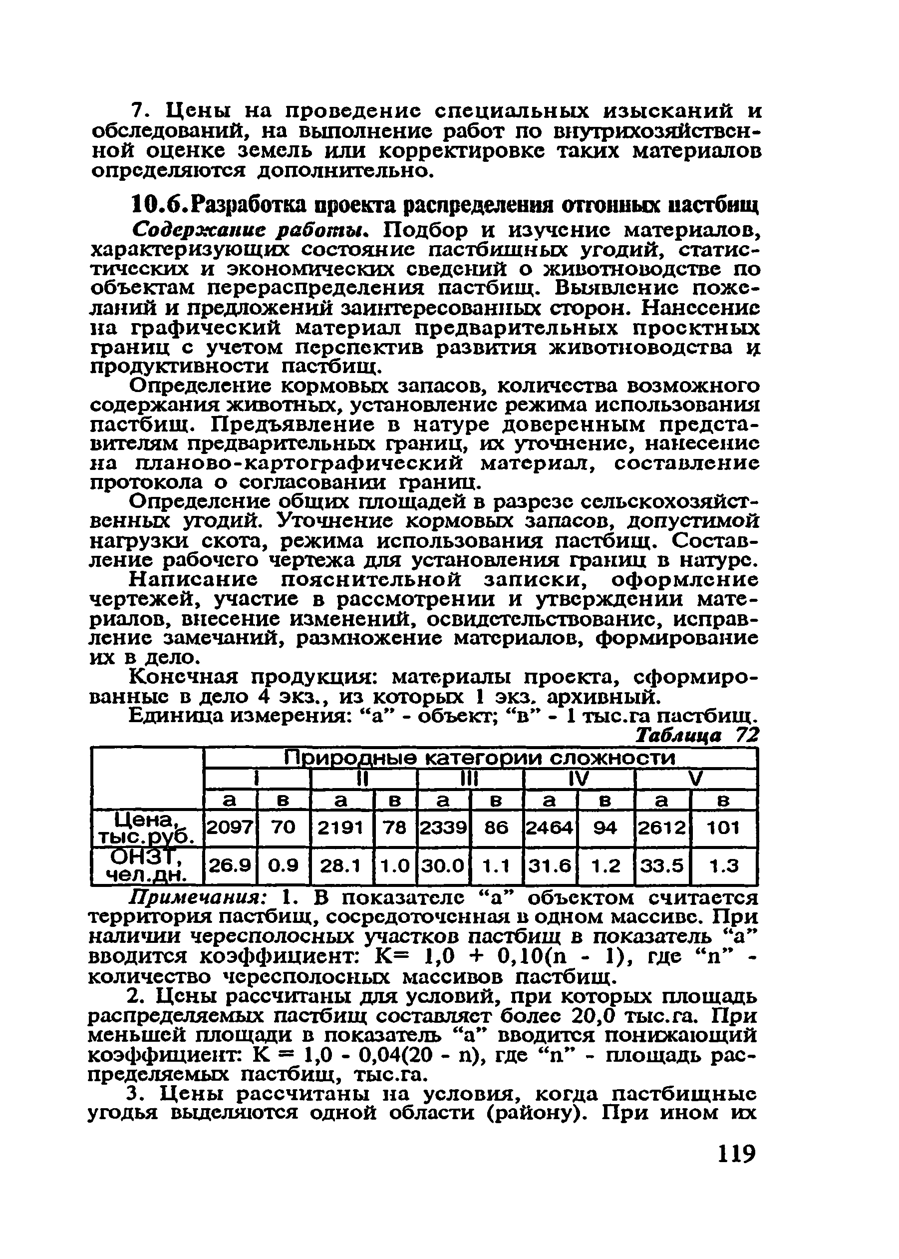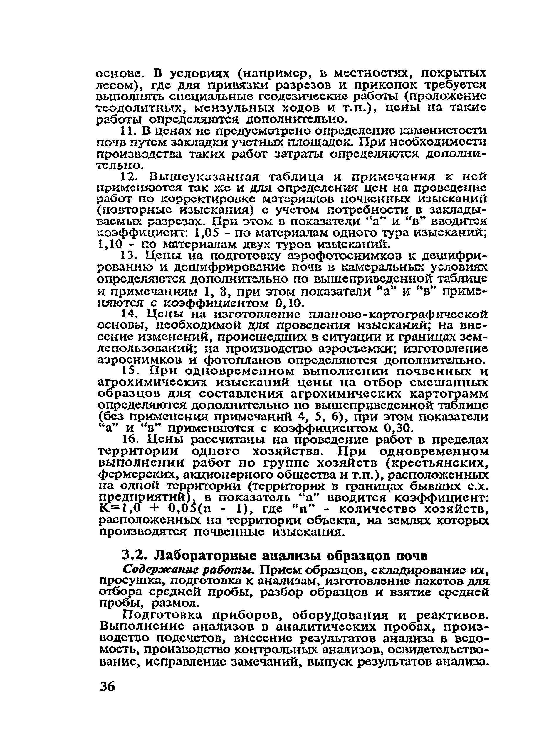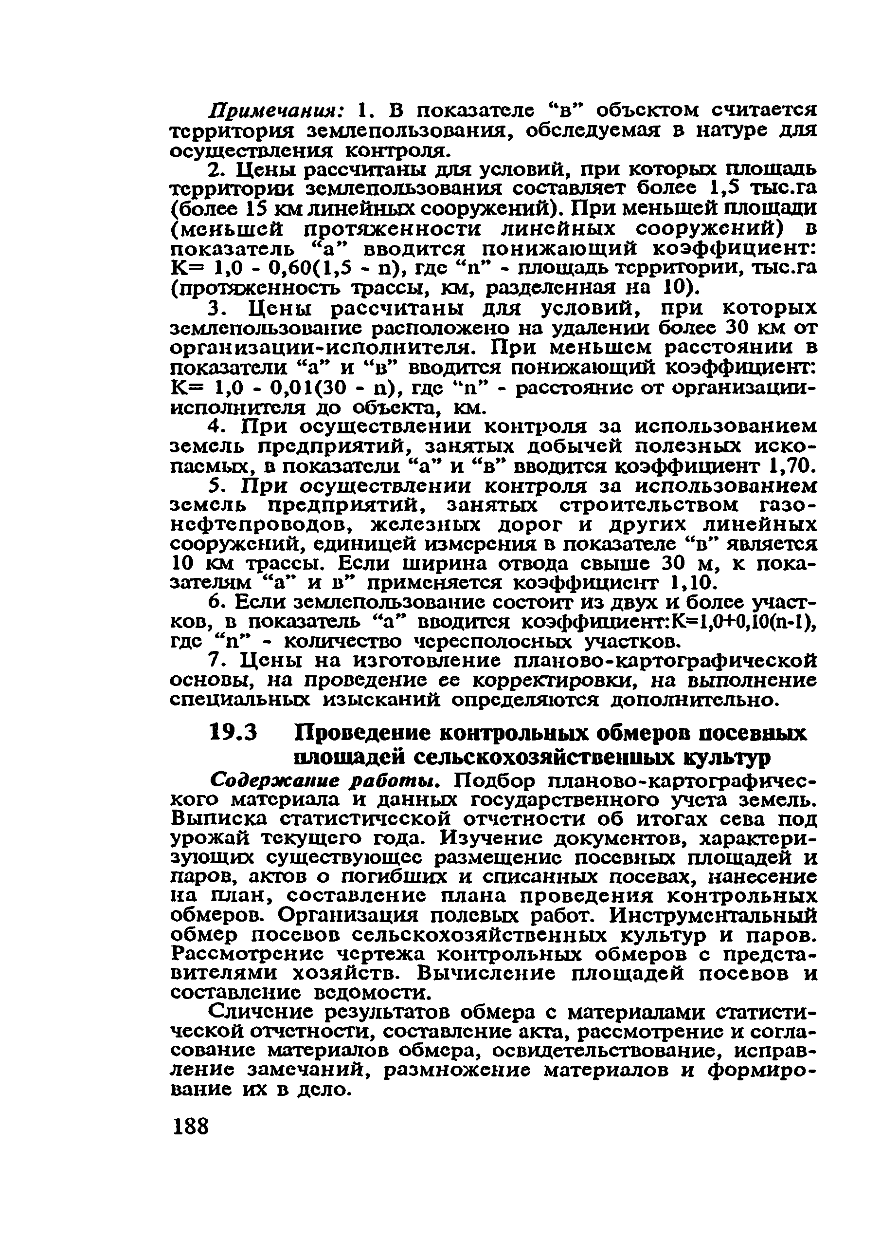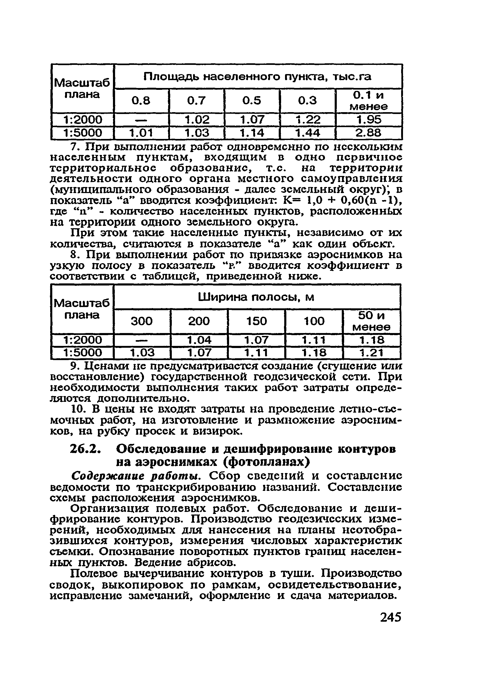 Сборник цен и общественно необходимых затрат труда (ОНЗТ) на изготовление проектной и изыскательской продукции землеустройства, земельного кадастра и мониторинга земель| Статус: | действует | | Название рус.: | Сборник цен и общественно необходимых затрат труда (ОНЗТ) на изготовление проектной и изыскательской продукции землеустройства, земельного кадастра и мониторинга земель | | Дата добавления в базу: | 01.09.2013 | | Дата актуализации: | 01.01.2021 | | Дата введения: | 01.01.1996 | | Область применения: | Сборник предназначен для установления нормативных затрат труда (ОНЗТ) и определения сметной стоимости работ при заключении договоров на изготовление проектной и изыскательской продукции землеустройства, земельного кадастра и мониторинга земель | | Оглавление: | Общие указания Часть I. Изыскания Глава 1. Топографо-геодезические изыскания Глава 2. Работы, сопутствующие геодезическим изысканиям Глава 3. Почвенно-мелиоративные изыскания Глава 4. Геоботанические и зоотехнические изыскания Часть II. Вычисление площадей, изготовление материалов для графического учета земель Глава 5. Вычисление площадей, изготовление материалов для графического учета земель Глава 6. Составление тематических карт и очерков по району, области (краю, республике) Часть III. Проектные работы по охране и использованию земель Глава 7. Схемы (прогнозы) по охране земельных ресурсов и окружающей среды Глава 8. Схемы по использованию земельных ресурсов Глава 9. Земельно-оценочные работы Часть IV. Межхозяйственное землеустройство Глава 10. Проектные работы по созданию новых хозяйств и перераспределению земель Глава 11. Землеустроительные работы по оформлению документов на право пользования землей Часть V. Проектные работы по организации территории хозяйств и разработке мероприятий по улучшению использования земель Глава 12. Разработка проектов по организации территории хозяйств Глава 13. Разработка мероприятий по улучшению земель и хозяйственной деятельности Глава 14. Землеустройство оленеводческих хозяйств и охотничьих угодий Часть VI. Разработка рабочих проектов Глава 15. Разработка рабочих проектов по защите почв от эрозии Глава 16. Разработка рабочих проектов по мелиорации земель Глава 17. Разработка рабочих проектов по строительству объектов хозяйственного назначения Часть VII. Землеустроительные работы по осуществлению проектных разработок Глава 18. Перенесение проектов землеустройства в натуру Глава 19. Контроль за освоением проектов и использованием земель Часть VIII. Чертежные работы, размножение и оформление материалов, разные работы Глава 20. Чертежные работы Глава 21. Картографические и множительные работы Глава 22. Оформительские работы Глава 23. Разные работы Часть IX. Аэрофотогеодезические работы Глава 24. Создание сельскохозяйственных планов и карт Глава 25. Создание топографических планов сельскохозяйственного назначения Глава 26. Создание планов сельских населенных пунктов Глава 27. Работы, сопутствующие аэрофотогеодезическим изысканиям Часть X. Отдельные виды проектной и изыскательской продукции, прочие работы Глава 28. Лабораторные анализы растительных образцов, другие виды проектно-изыскательских работ Глава 29. Разработка норм времени, затрат труда (ОНЗТ) и цен на изготовление проектной и изыскательской продукции Приложения | | Разработан: | Научно-методическ