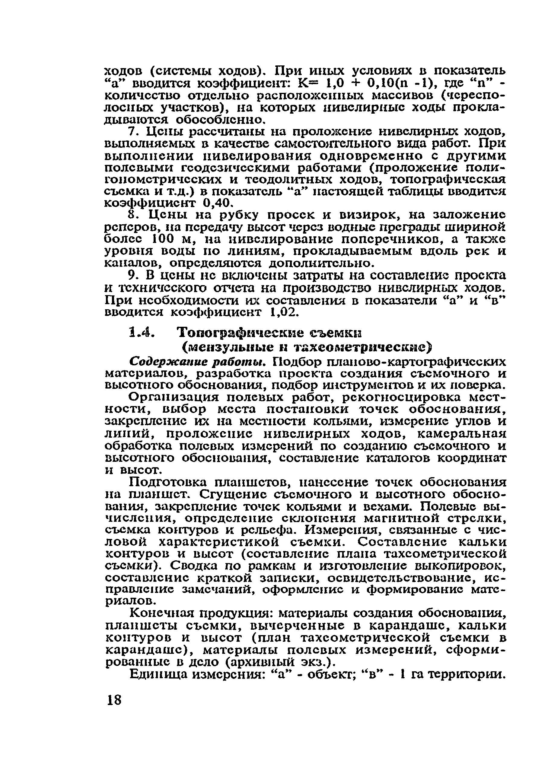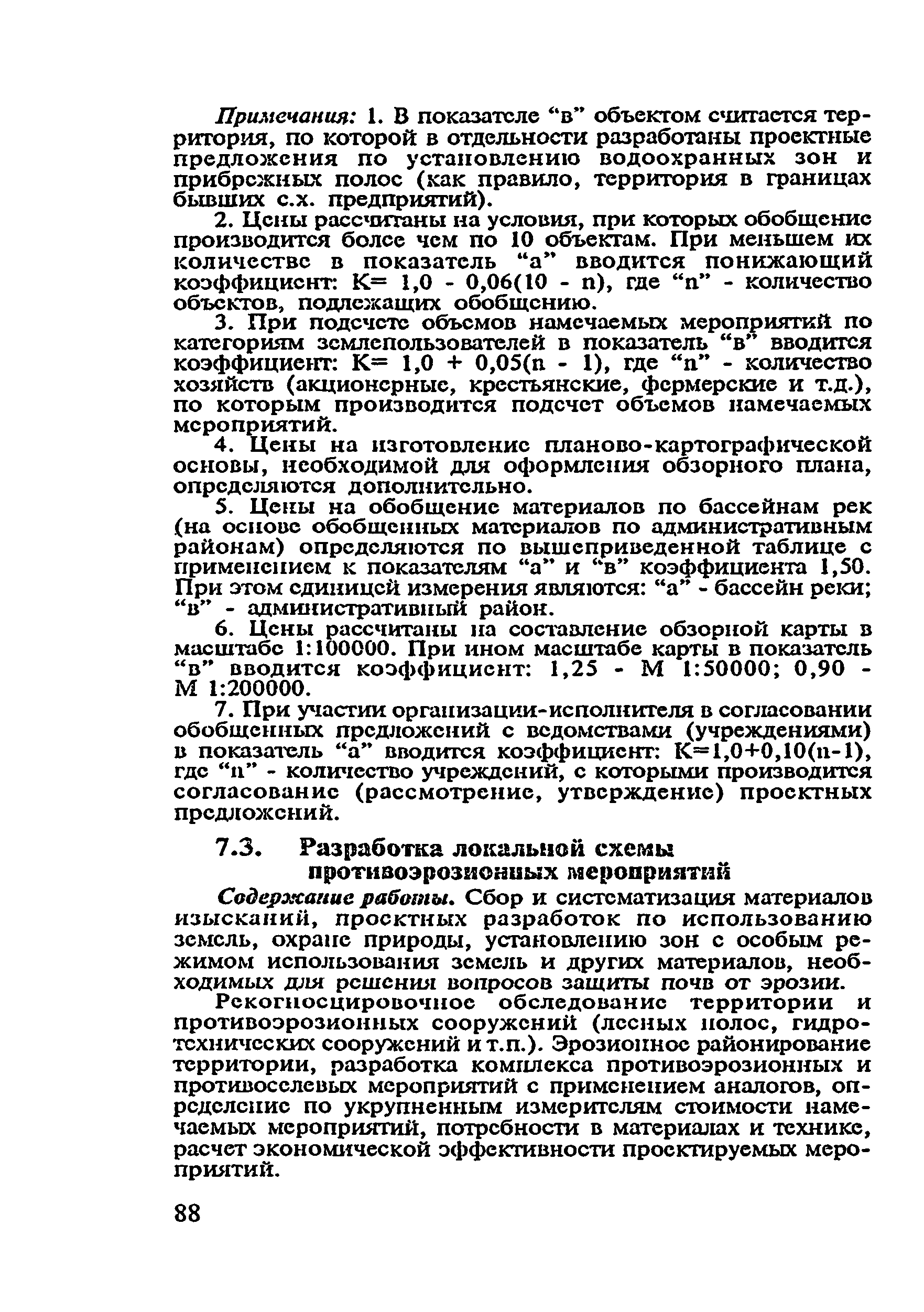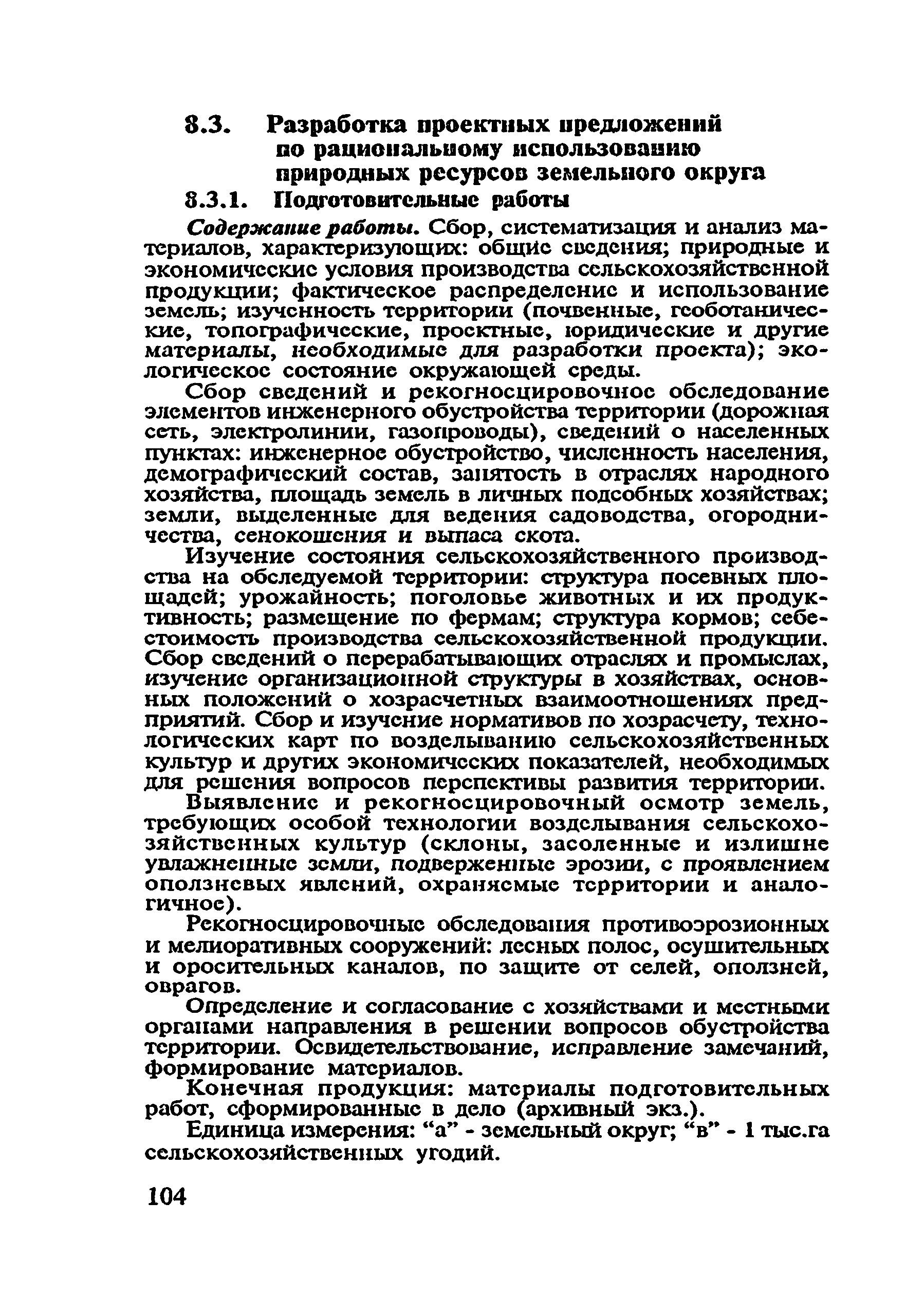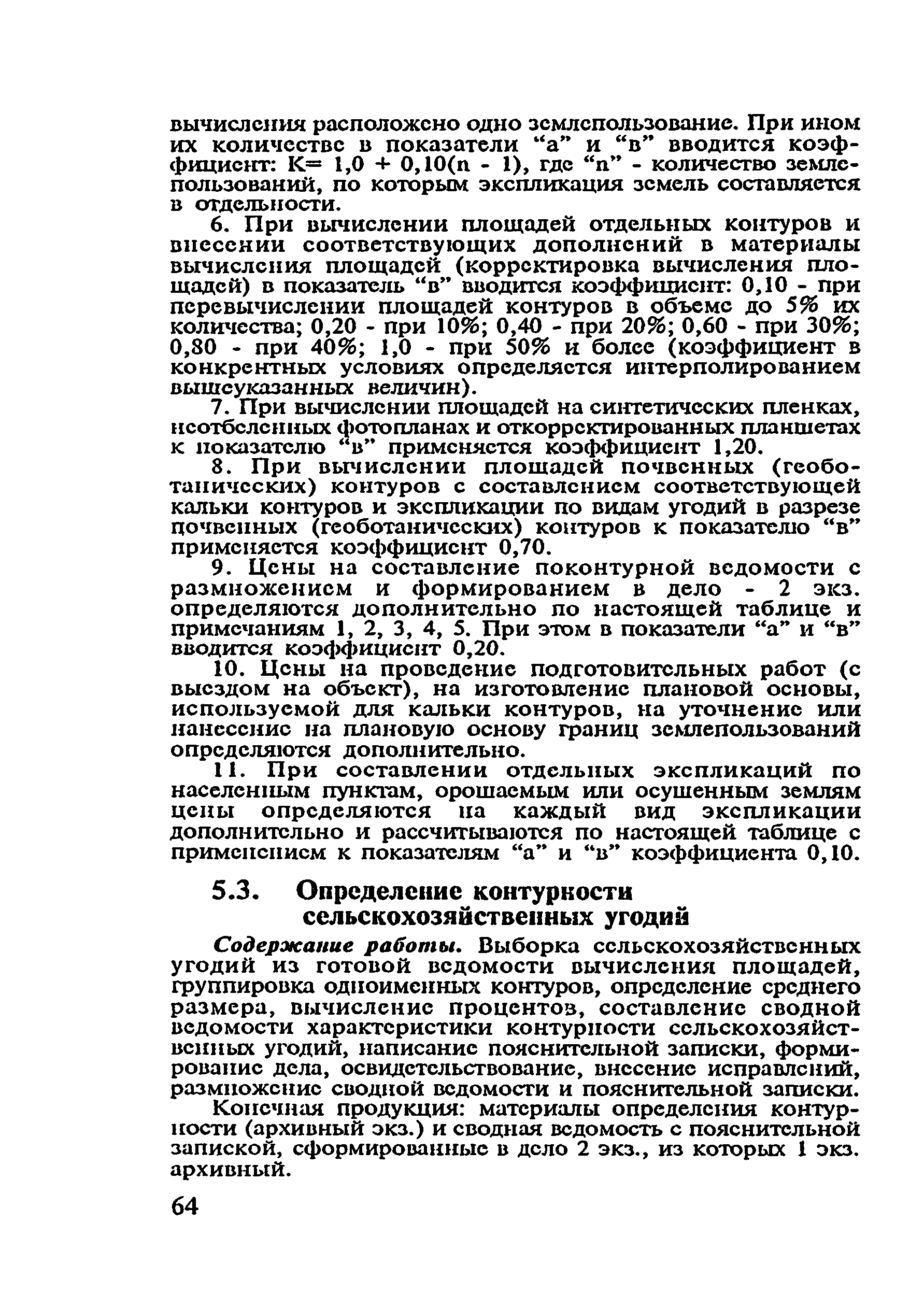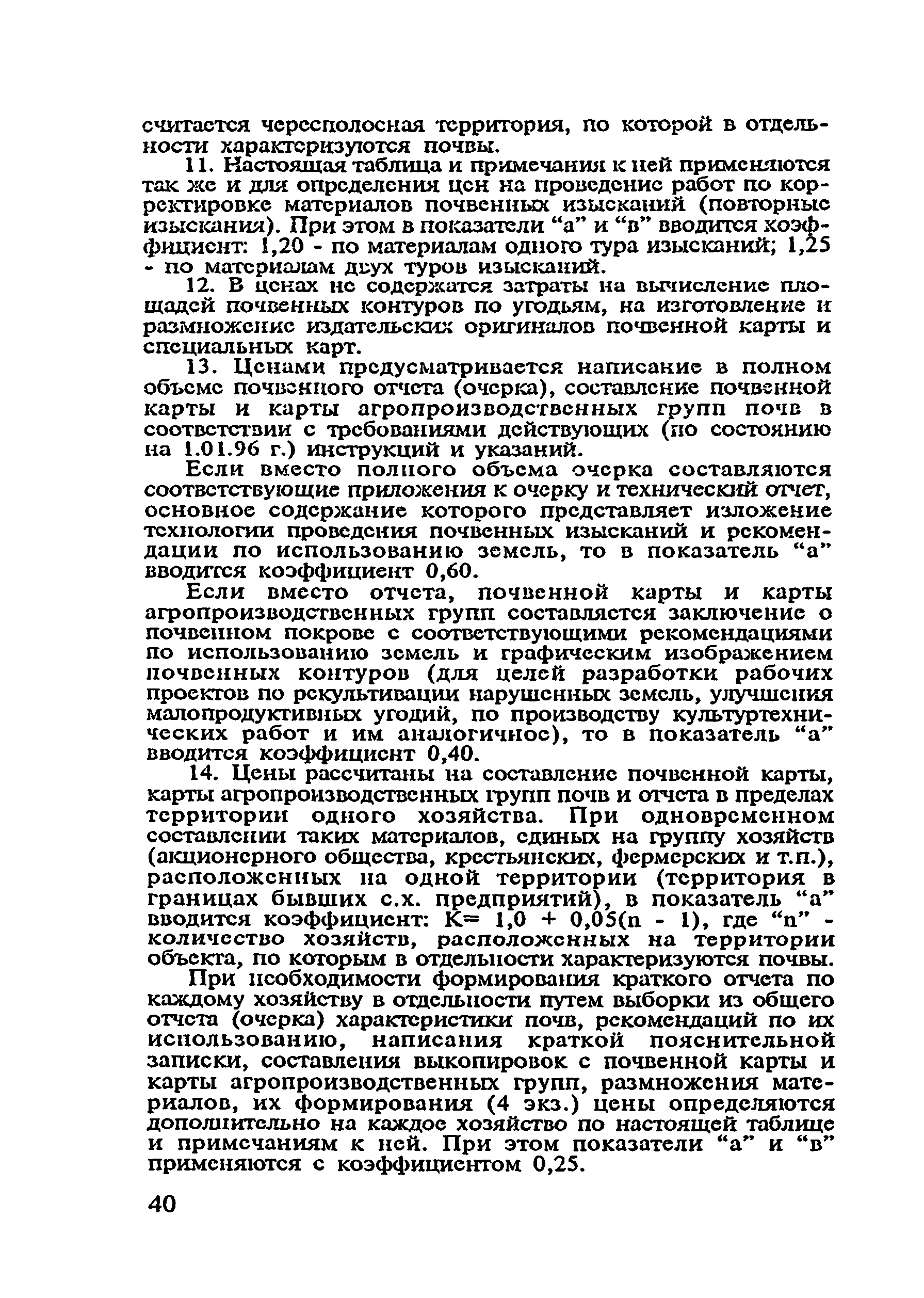 Сборник цен и общественно необходимых затрат труда (ОНЗТ) на изготовление проектной и изыскательской продукции землеустройства, земельного кадастра и мониторинга земель| Статус: | действует | | Название рус.: | Сборник цен и общественно необходимых затрат труда (ОНЗТ) на изготовление проектной и изыскательской продукции землеустройства, земельного кадастра и мониторинга земель | | Дата добавления в базу: | 01.09.2013 | | Дата актуализации: | 01.01.2021 | | Дата введения: | 01.01.1996 | | Область применения: | Сборник предназначен для установления нормативных затрат труда (ОНЗТ) и определения сметной стоимости работ при заключении договоров на изготовление проектной и изыскательской продукции землеустройства, земельного кадастра и мониторинга земель | | Оглавление: | Общие указания Часть I. Изыскания Глава 1. Топографо-геодезические изыскания Глава 2. Работы, сопутствующие геодезическим изысканиям Глава 3. Почвенно-мелиоративные изыскания Глава 4. Геоботанические и зоотехнические изыскания Часть II. Вычисление площадей, изготовление материалов для графического учета земель Глава 5. Вычисление площадей, изготовление материалов для графического учета земель Глава 6. Составление тематических карт и очерков по району, области (краю, республике) Часть III. Проектные работы по охране и использованию земель Глава 7. Схемы (прогнозы) по охране земельных ресурсов и окружающей среды Глава 8. Схемы по использованию земельных ресурсов Глава 9. Земельно-оценочные работы Часть IV. Межхозяйственное землеустройство Глава 10. Проектные работы по созданию новых хозяйств и перераспределению земель Глава 11. Землеустроительные работы по оформлению документов на право пользования землей Часть V. Проектные работы по организации территории хозяйств и разработке мероприятий по улучшению использования земель Глава 12. Разработка проектов по организации территории хозяйств Глава 13. Разработка мероприятий по улучшению земель и хозяйственной деятельности Глава 14. Землеустройство оленеводческих хозяйств и охотничьих угодий Часть VI. Разработка рабочих проектов Глава 15. Разработка рабочих проектов по защите почв от эрозии Глава 16. Разработка рабочих проектов по мелиорации земель Глава 17. Разработка рабочих проектов по строительству объектов хозяйственного назначения Часть VII. Землеустроительные работы по осуществлению проектных разработок Глава 18. Перенесение проектов землеустройства в натуру Глава 19. Контроль за освоением проектов и использованием земель Часть VIII. Чертежные работы, размножение и оформление материалов, разные работы Глава 20. Чертежные работы Глава 21. Картографические и множительные работы Глава 22. Оформительские работы Глава 23. Разные работы Часть IX. Аэрофотогеодезические работы Глава 24. Создание сельскохозяйственных планов и карт Глава 25. Создание топографических планов сельскохозяйственного назначения Глава 26. Создание планов сельских населенных пунктов Глава 27. Работы, сопутствующие аэрофотогеодезическим изысканиям Часть X. Отдельные виды проектной и изыскательской продукции, прочие работы Глава 28. Лабораторные анализы растительных образцов, другие виды проектно-изыскательских работ Глава 29. Разработка норм времени, затрат труда (ОНЗТ) и цен на изготовление проектной и изыскательской продукции Приложения | | Разработан: | Научно-методическ