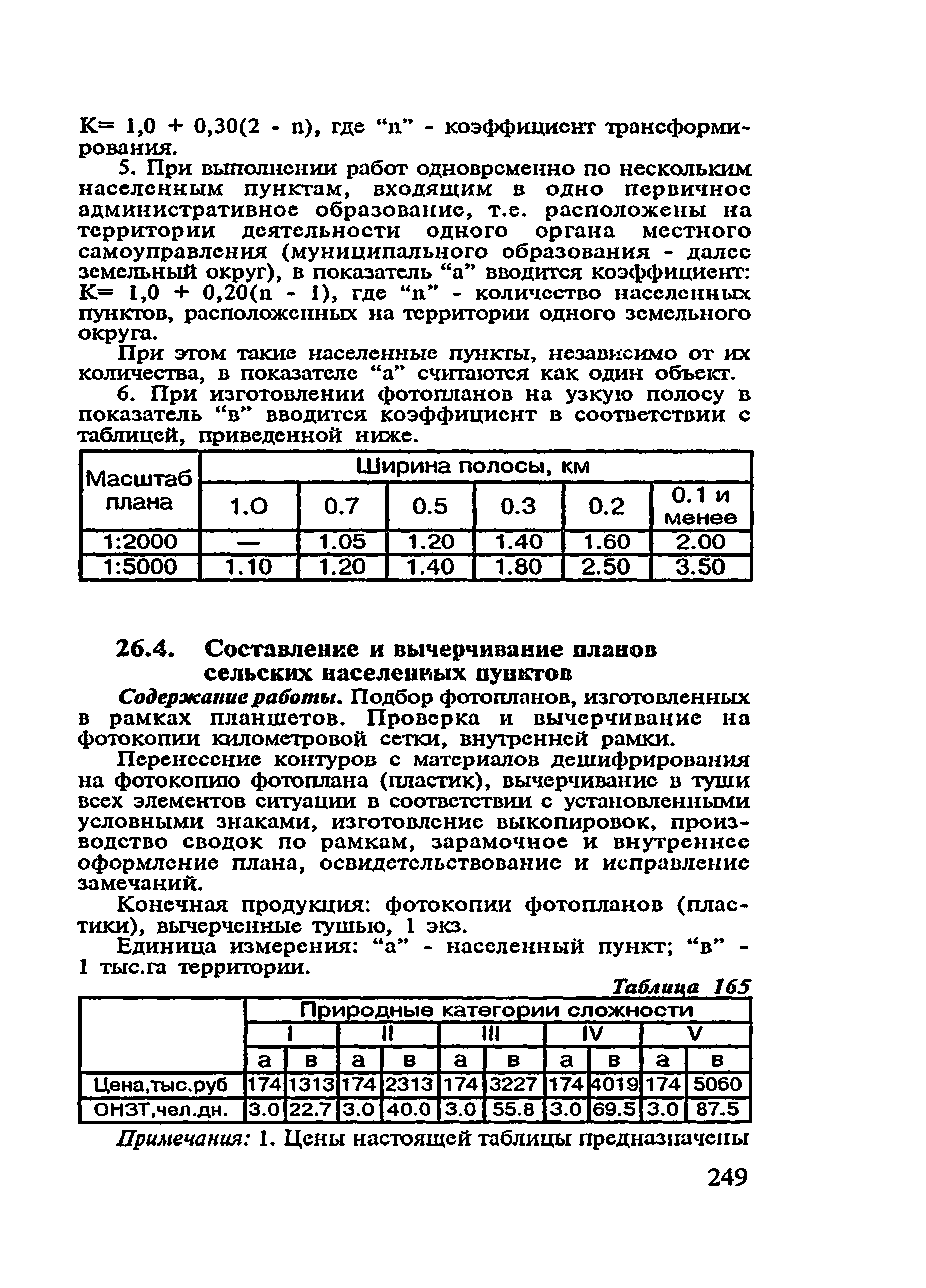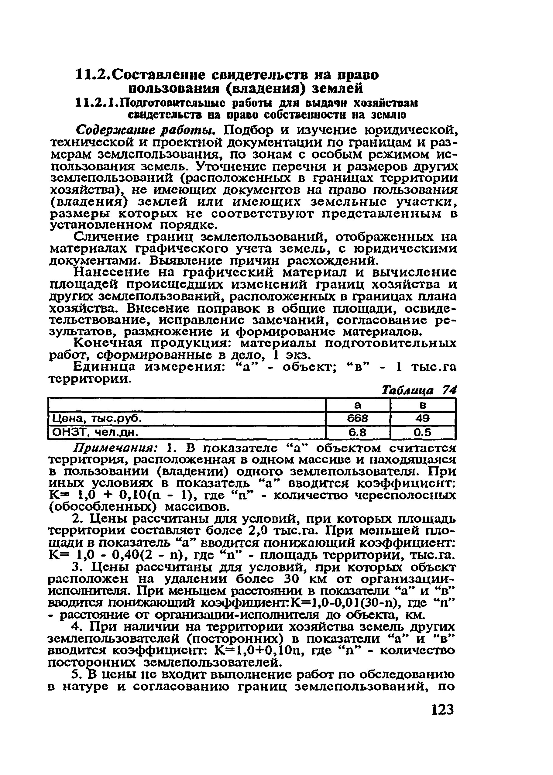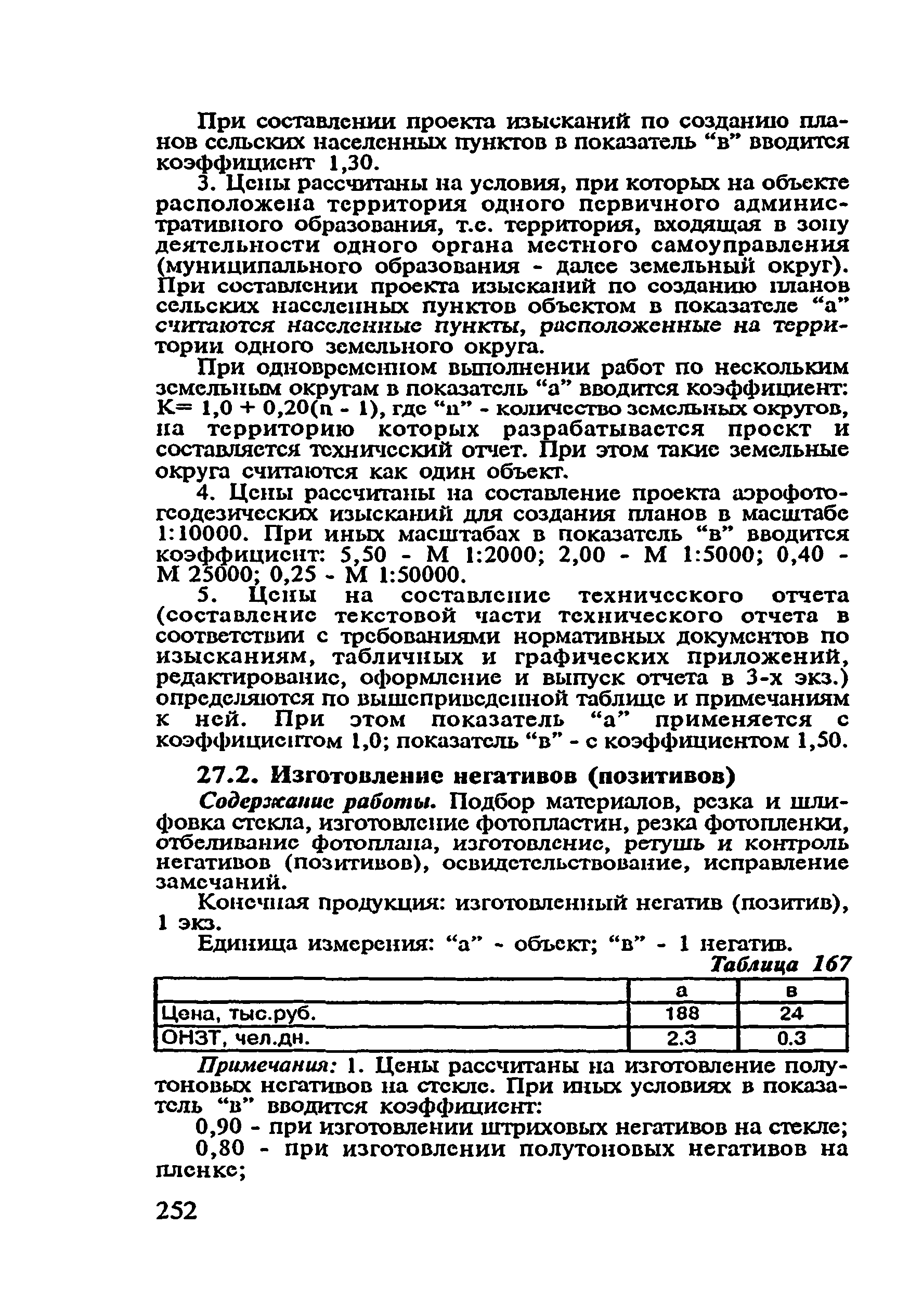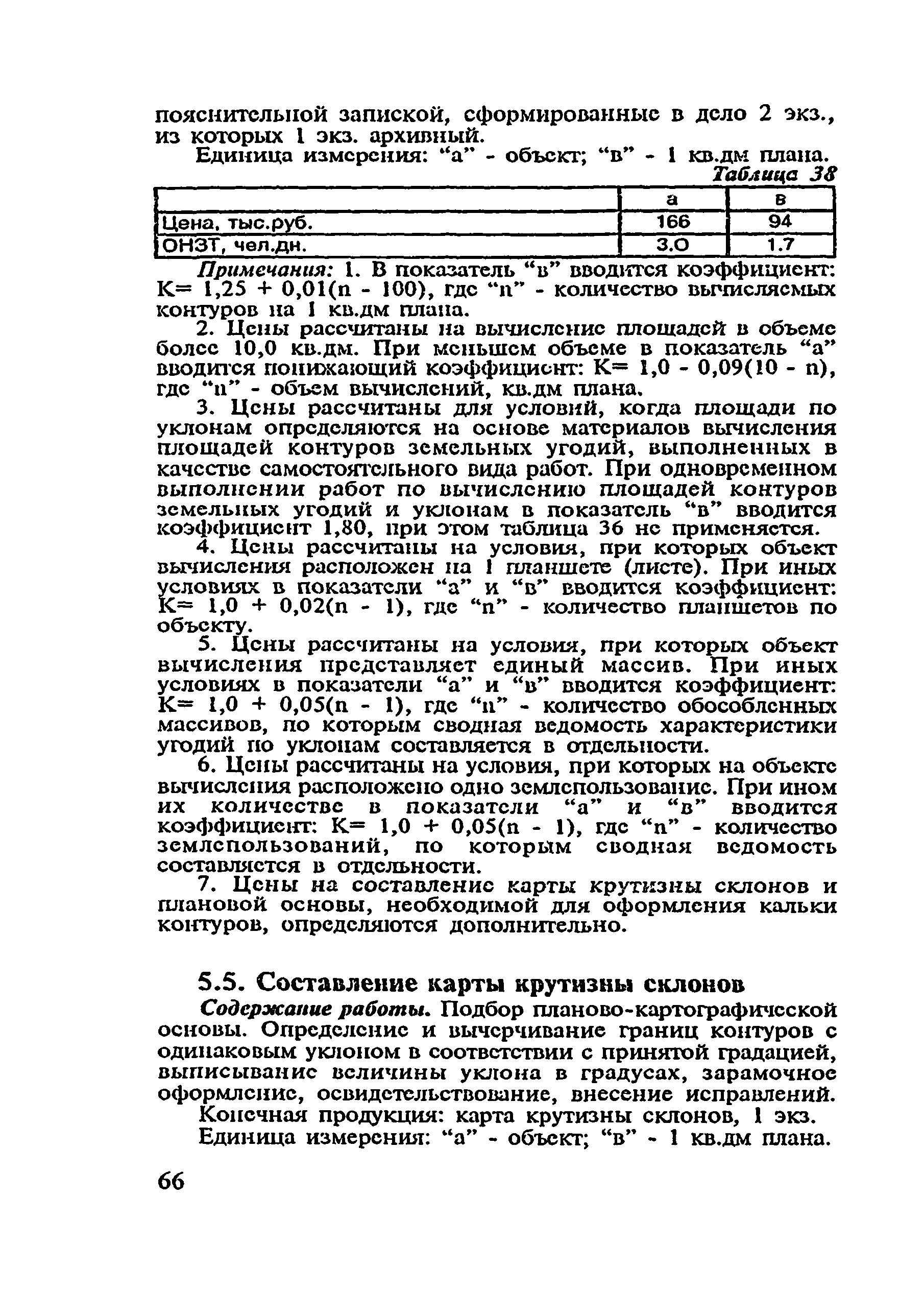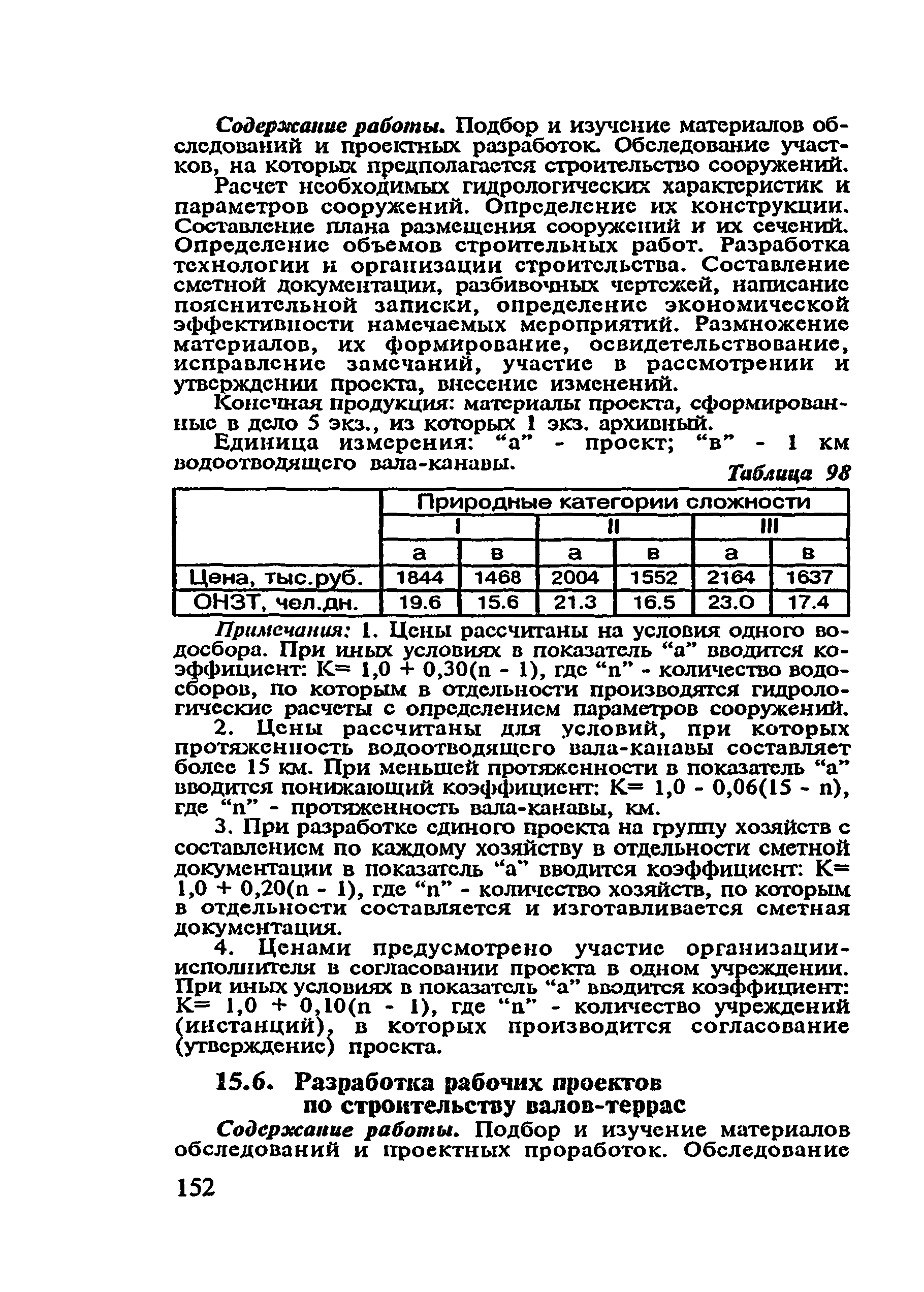 Сборник цен и общественно необходимых затрат труда (ОНЗТ) на изготовление проектной и изыскательской продукции землеустройства, земельного кадастра и мониторинга земель| Статус: | действует | | Название рус.: | Сборник цен и общественно необходимых затрат труда (ОНЗТ) на изготовление проектной и изыскательской продукции землеустройства, земельного кадастра и мониторинга земель | | Дата добавления в базу: | 01.09.2013 | | Дата актуализации: | 01.01.2021 | | Дата введения: | 01.01.1996 | | Область применения: | Сборник предназначен для установления нормативных затрат труда (ОНЗТ) и определения сметной стоимости работ при заключении договоров на изготовление проектной и изыскательской продукции землеустройства, земельного кадастра и мониторинга земель | | Оглавление: | Общие указания Часть I. Изыскания Глава 1. Топографо-геодезические изыскания Глава 2. Работы, сопутствующие геодезическим изысканиям Глава 3. Почвенно-мелиоративные изыскания Глава 4. Геоботанические и зоотехнические изыскания Часть II. Вычисление площадей, изготовление материалов для графического учета земель Глава 5. Вычисление площадей, изготовление материалов для графического учета земель Глава 6. Составление тематических карт и очерков по району, области (краю, республике) Часть III. Проектные работы по охране и использованию земель Глава 7. Схемы (прогнозы) по охране земельных ресурсов и окружающей среды Глава 8. Схемы по использованию земельных ресурсов Глава 9. Земельно-оценочные работы Часть IV. Межхозяйственное землеустройство Глава 10. Проектные работы по созданию новых хозяйств и перераспределению земель Глава 11. Землеустроительные работы по оформлению документов на право пользования землей Часть V. Проектные работы по организации территории хозяйств и разработке мероприятий по улучшению использования земель Глава 12. Разработка проектов по организации территории хозяйств Глава 13. Разработка мероприятий по улучшению земель и хозяйственной деятельности Глава 14. Землеустройство оленеводческих хозяйств и охотничьих угодий Часть VI. Разработка рабочих проектов Глава 15. Разработка рабочих проектов по защите почв от эрозии Глава 16. Разработка рабочих проектов по мелиорации земель Глава 17. Разработка рабочих проектов по строительству объектов хозяйственного назначения Часть VII. Землеустроительные работы по осуществлению проектных разработок Глава 18. Перенесение проектов землеустройства в натуру Глава 19. Контроль за освоением проектов и использованием земель Часть VIII. Чертежные работы, размножение и оформление материалов, разные работы Глава 20. Чертежные работы Глава 21. Картографические и множительные работы Глава 22. Оформительские работы Глава 23. Разные работы Часть IX. Аэрофотогеодезические работы Глава 24. Создание сельскохозяйственных планов и карт Глава 25. Создание топографических планов сельскохозяйственного назначения Глава 26. Создание планов сельских населенных пунктов Глава 27. Работы, сопутствующие аэрофотогеодезическим изысканиям Часть X. Отдельные виды проектной и изыскательской продукции, прочие работы Глава 28. Лабораторные анализы растительных образцов, другие виды проектно-изыскательских работ Глава 29. Разработка норм времени, затрат труда (ОНЗТ) и цен на изготовление проектной и изыскательской продукции Приложения | | Разработан: | Научно-методическ