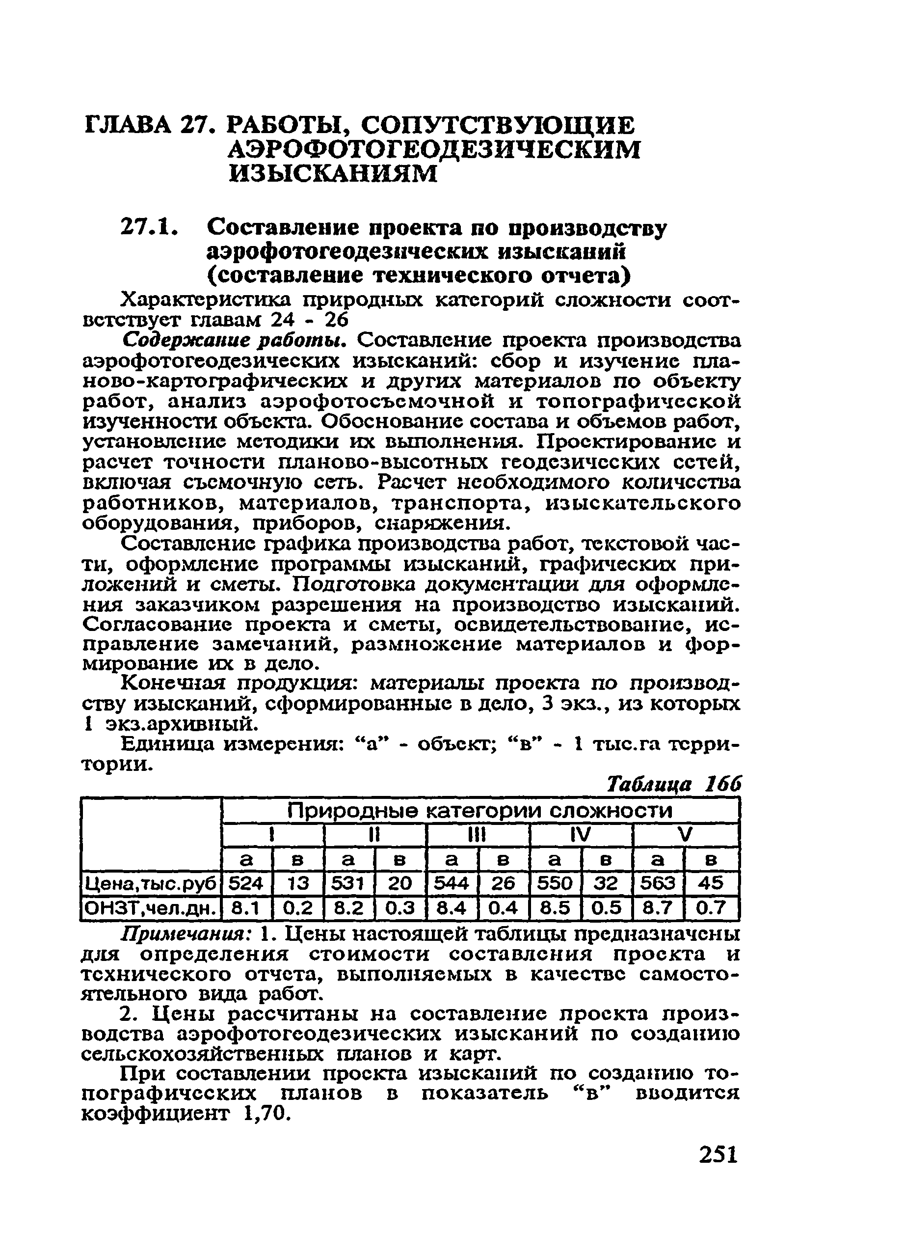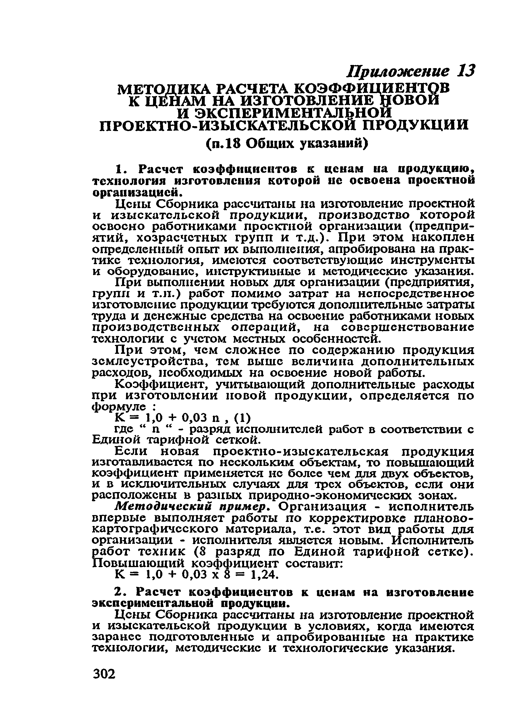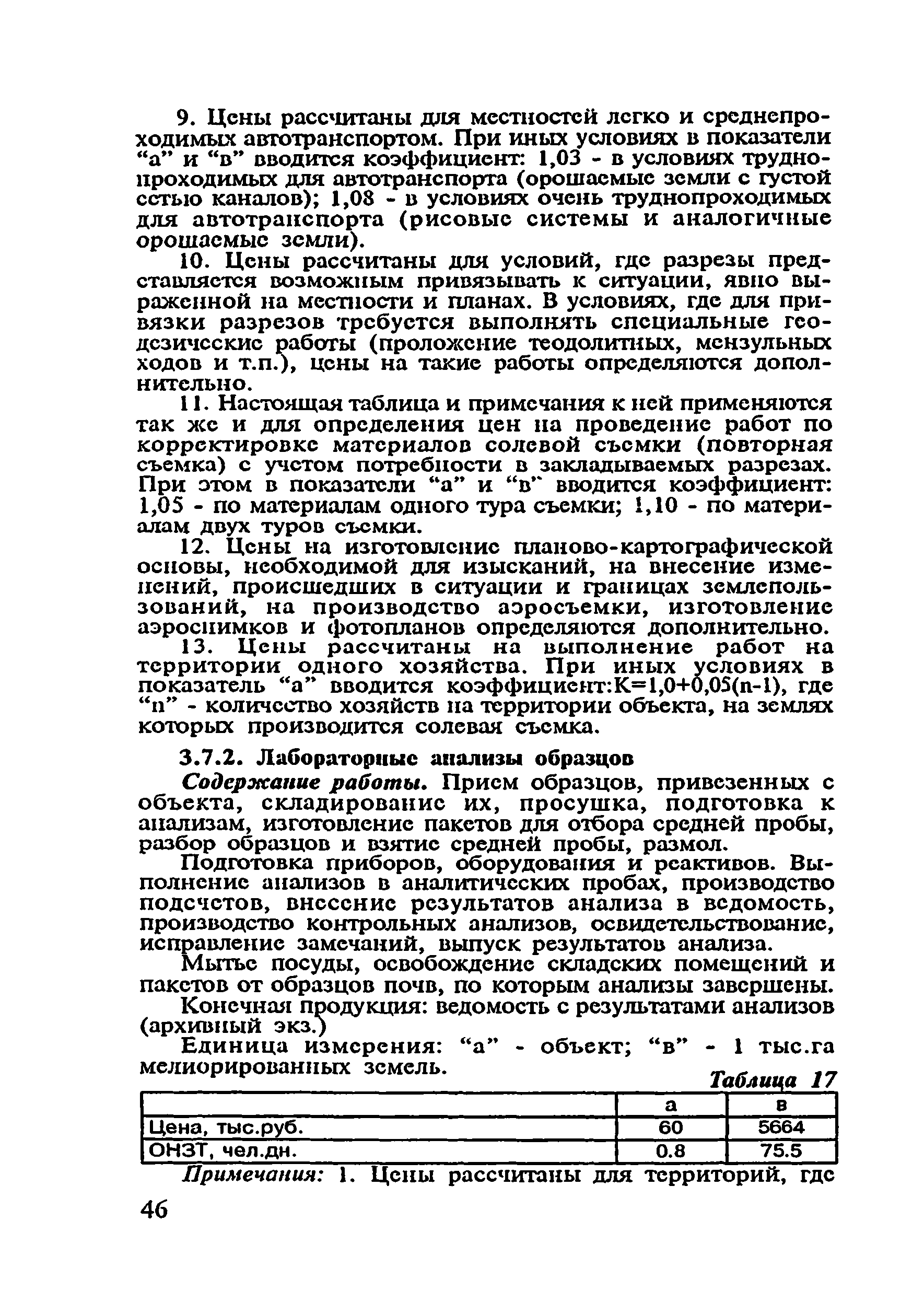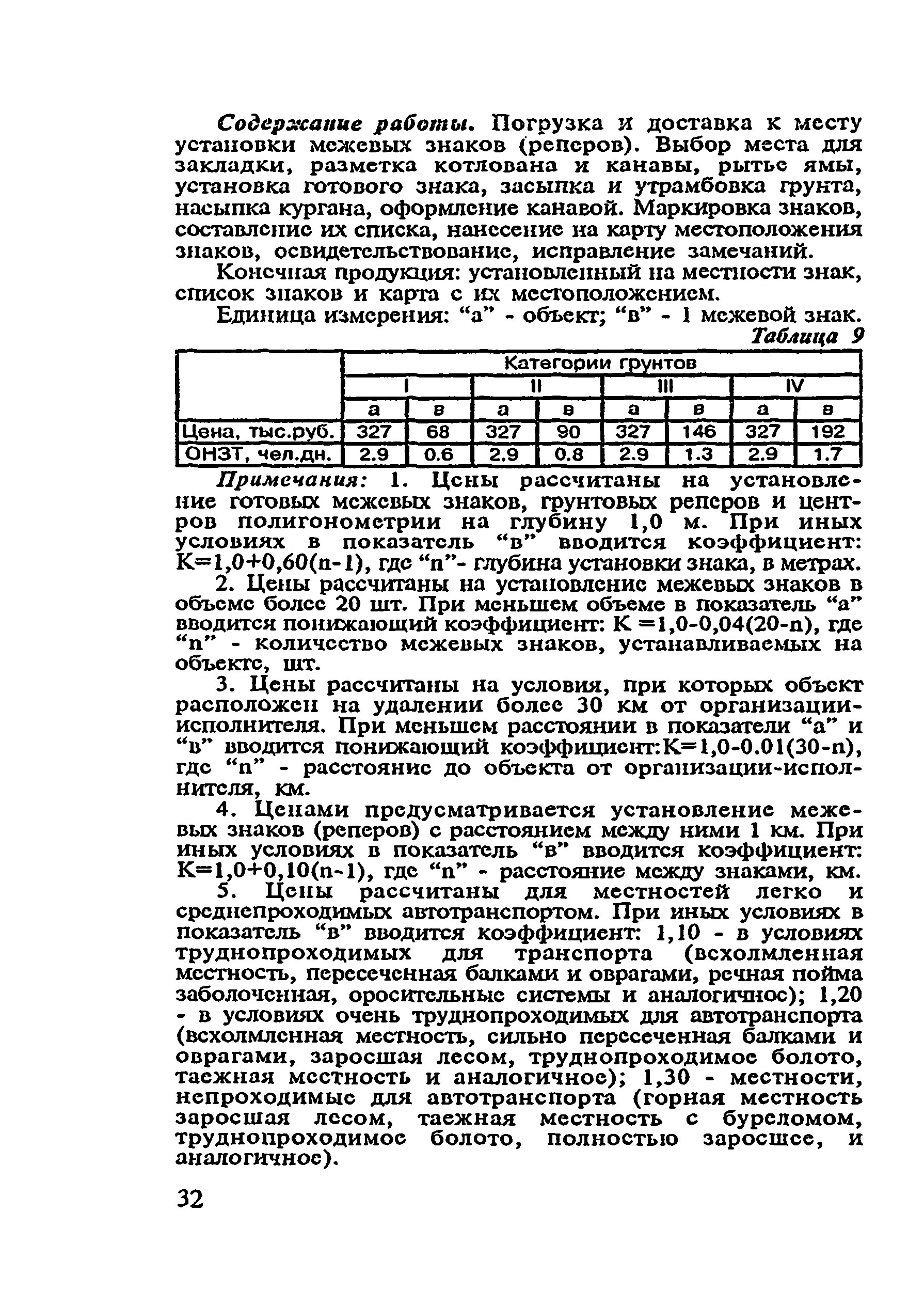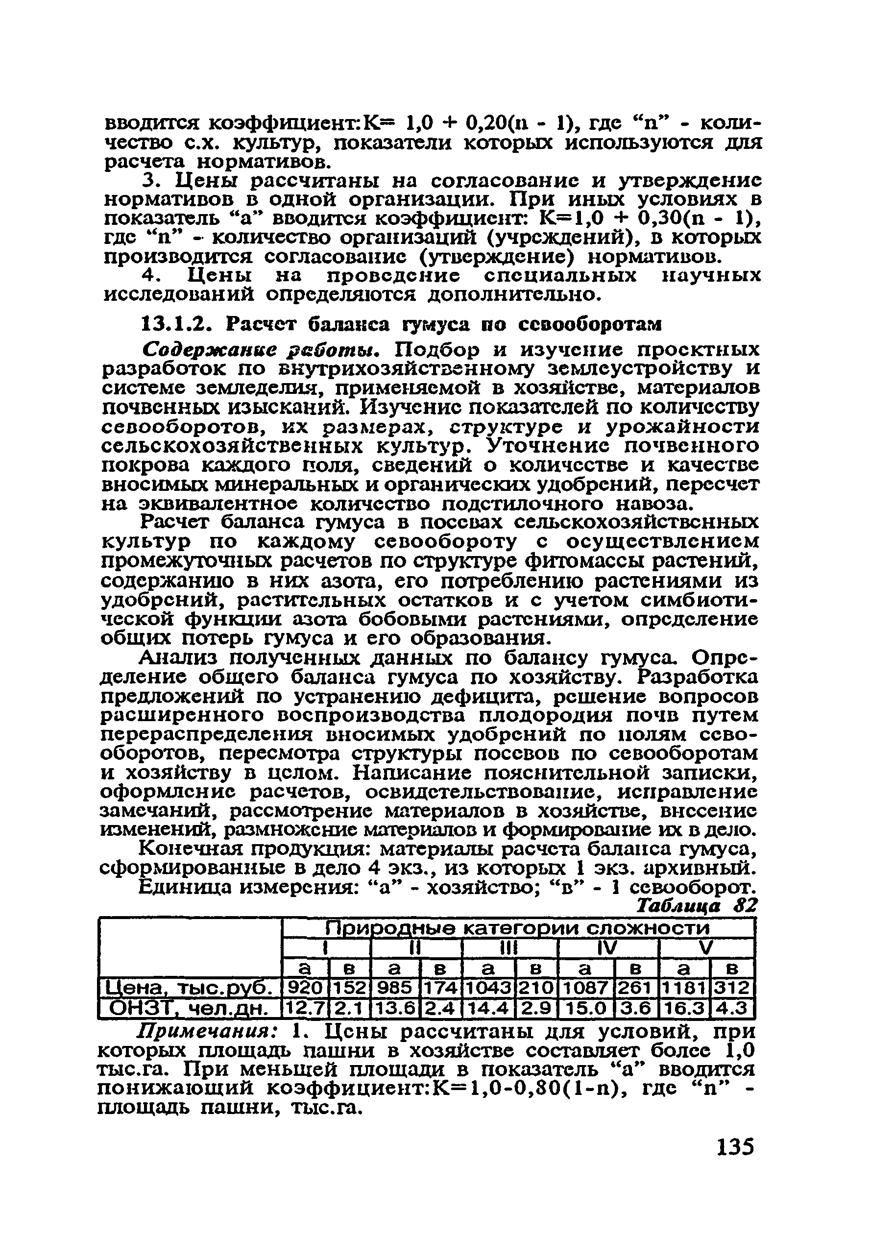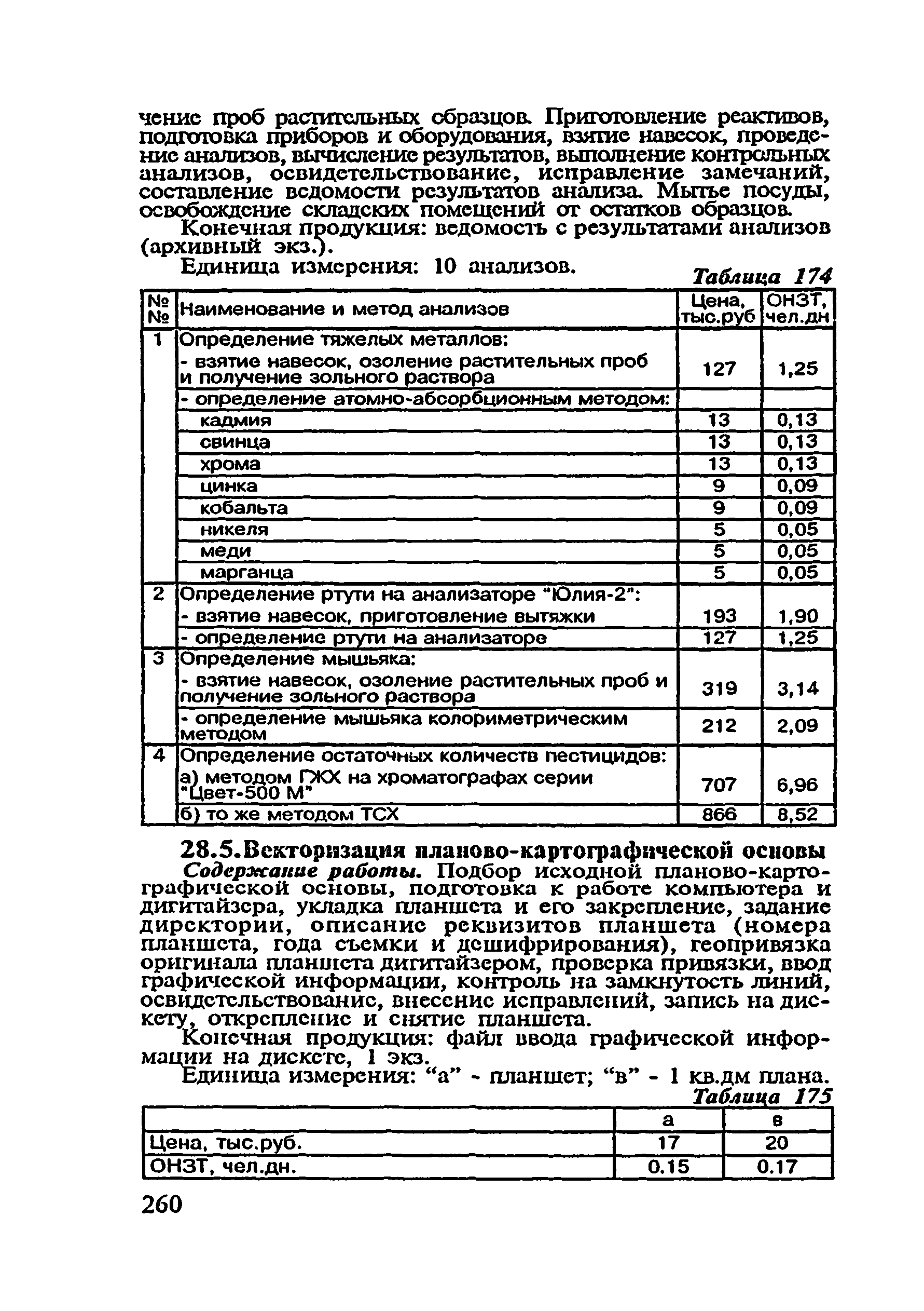 Сборник цен и общественно необходимых затрат труда (ОНЗТ) на изготовление проектной и изыскательской продукции землеустройства, земельного кадастра и мониторинга земель| Статус: | действует | | Название рус.: | Сборник цен и общественно необходимых затрат труда (ОНЗТ) на изготовление проектной и изыскательской продукции землеустройства, земельного кадастра и мониторинга земель | | Дата добавления в базу: | 01.09.2013 | | Дата актуализации: | 01.01.2021 | | Дата введения: | 01.01.1996 | | Область применения: | Сборник предназначен для установления нормативных затрат труда (ОНЗТ) и определения сметной стоимости работ при заключении договоров на изготовление проектной и изыскательской продукции землеустройства, земельного кадастра и мониторинга земель | | Оглавление: | Общие указания Часть I. Изыскания Глава 1. Топографо-геодезические изыскания Глава 2. Работы, сопутствующие геодезическим изысканиям Глава 3. Почвенно-мелиоративные изыскания Глава 4. Геоботанические и зоотехнические изыскания Часть II. Вычисление площадей, изготовление материалов для графического учета земель Глава 5. Вычисление площадей, изготовление материалов для графического учета земель Глава 6. Составление тематических карт и очерков по району, области (краю, республике) Часть III. Проектные работы по охране и использованию земель Глава 7. Схемы (прогнозы) по охране земельных ресурсов и окружающей среды Глава 8. Схемы по использованию земельных ресурсов Глава 9. Земельно-оценочные работы Часть IV. Межхозяйственное землеустройство Глава 10. Проектные работы по созданию новых хозяйств и перераспределению земель Глава 11. Землеустроительные работы по оформлению документов на право пользования землей Часть V. Проектные работы по организации территории хозяйств и разработке мероприятий по улучшению использования земель Глава 12. Разработка проектов по организации территории хозяйств Глава 13. Разработка мероприятий по улучшению земель и хозяйственной деятельности Глава 14. Землеустройство оленеводческих хозяйств и охотничьих угодий Часть VI. Разработка рабочих проектов Глава 15. Разработка рабочих проектов по защите почв от эрозии Глава 16. Разработка рабочих проектов по мелиорации земель Глава 17. Разработка рабочих проектов по строительству объектов хозяйственного назначения Часть VII. Землеустроительные работы по осуществлению проектных разработок Глава 18. Перенесение проектов землеустройства в натуру Глава 19. Контроль за освоением проектов и использованием земель Часть VIII. Чертежные работы, размножение и оформление материалов, разные работы Глава 20. Чертежные работы Глава 21. Картографические и множительные работы Глава 22. Оформительские работы Глава 23. Разные работы Часть IX. Аэрофотогеодезические работы Глава 24. Создание сельскохозяйственных планов и карт Глава 25. Создание топографических планов сельскохозяйственного назначения Глава 26. Создание планов сельских населенных пунктов Глава 27. Работы, сопутствующие аэрофотогеодезическим изысканиям Часть X. Отдельные виды проектной и изыскательской продукции, прочие работы Глава 28. Лабораторные анализы растительных образцов, другие виды проектно-изыскательских работ Глава 29. Разработка норм времени, затрат труда (ОНЗТ) и цен на изготовление проектной и изыскательской продукции Приложения | | Разработан: | Научно-методическ