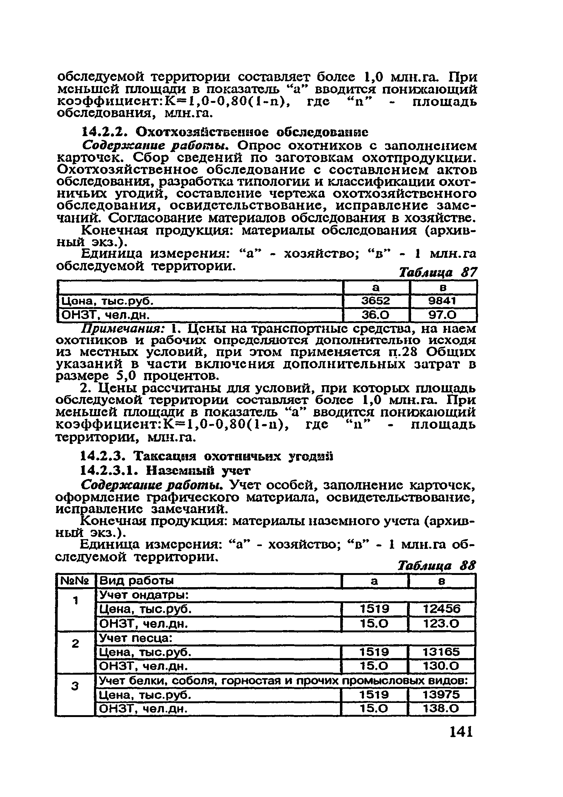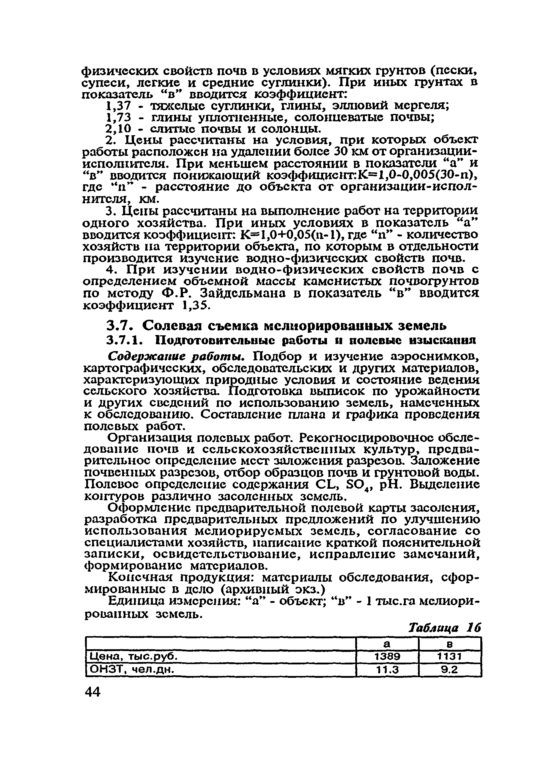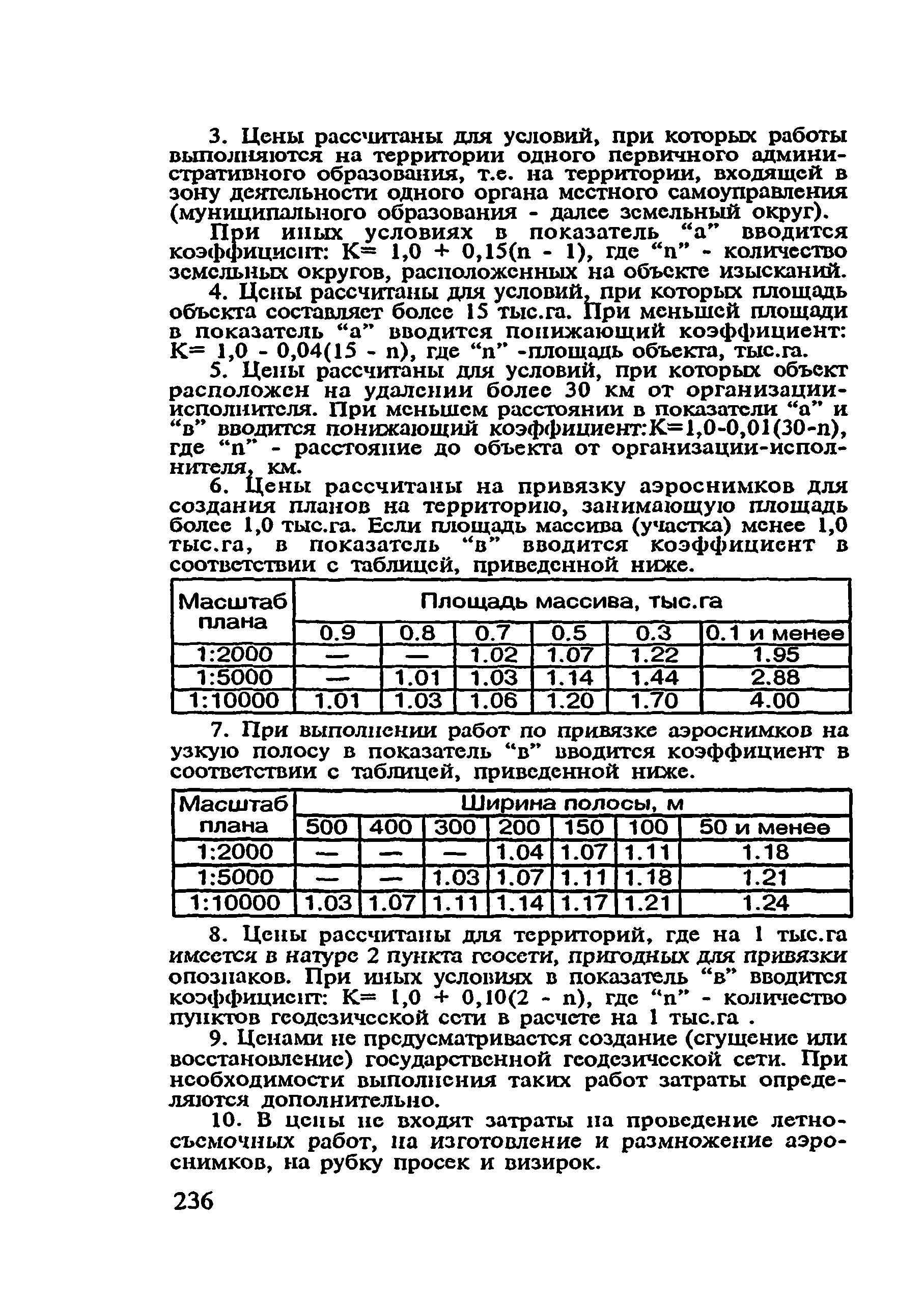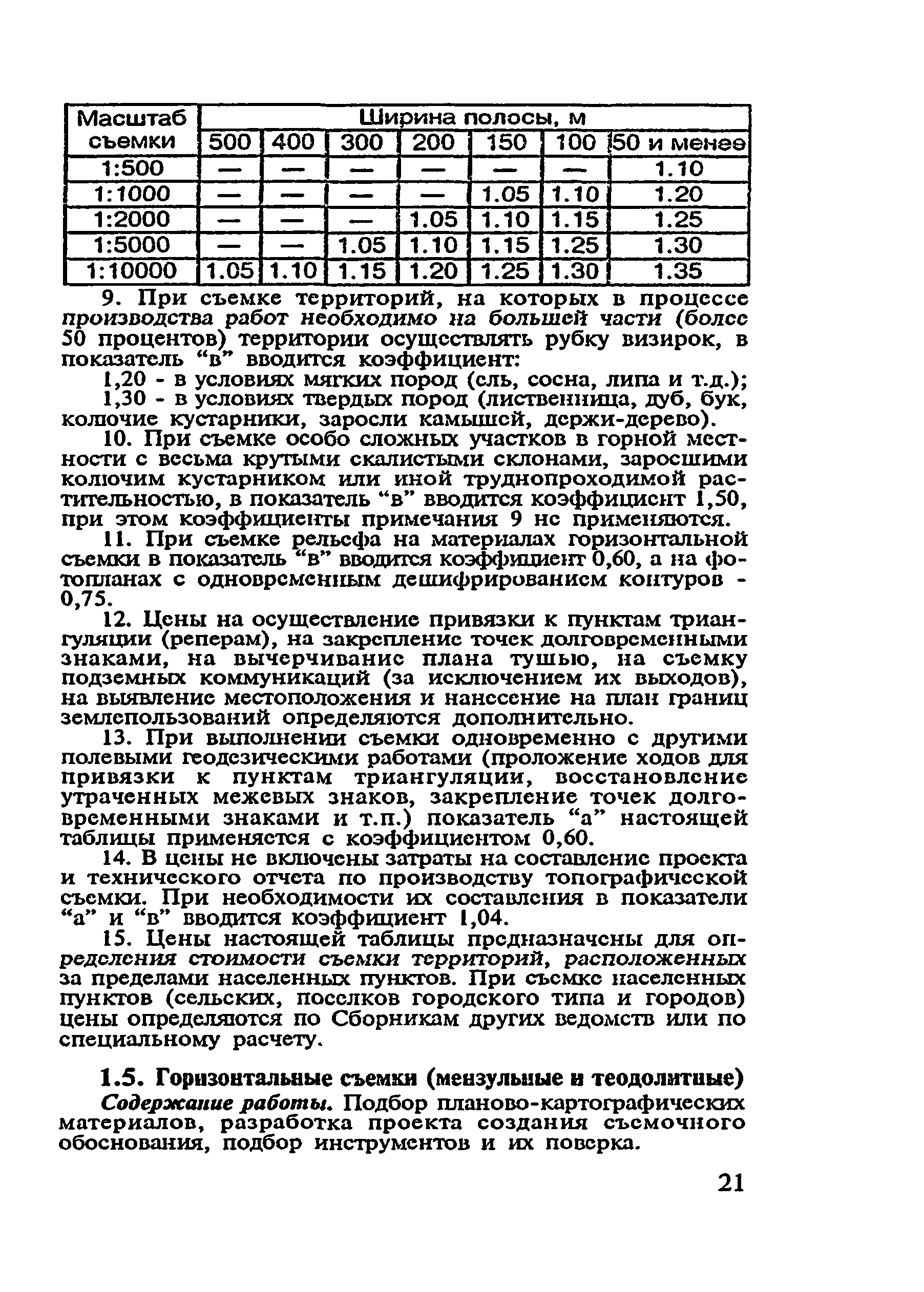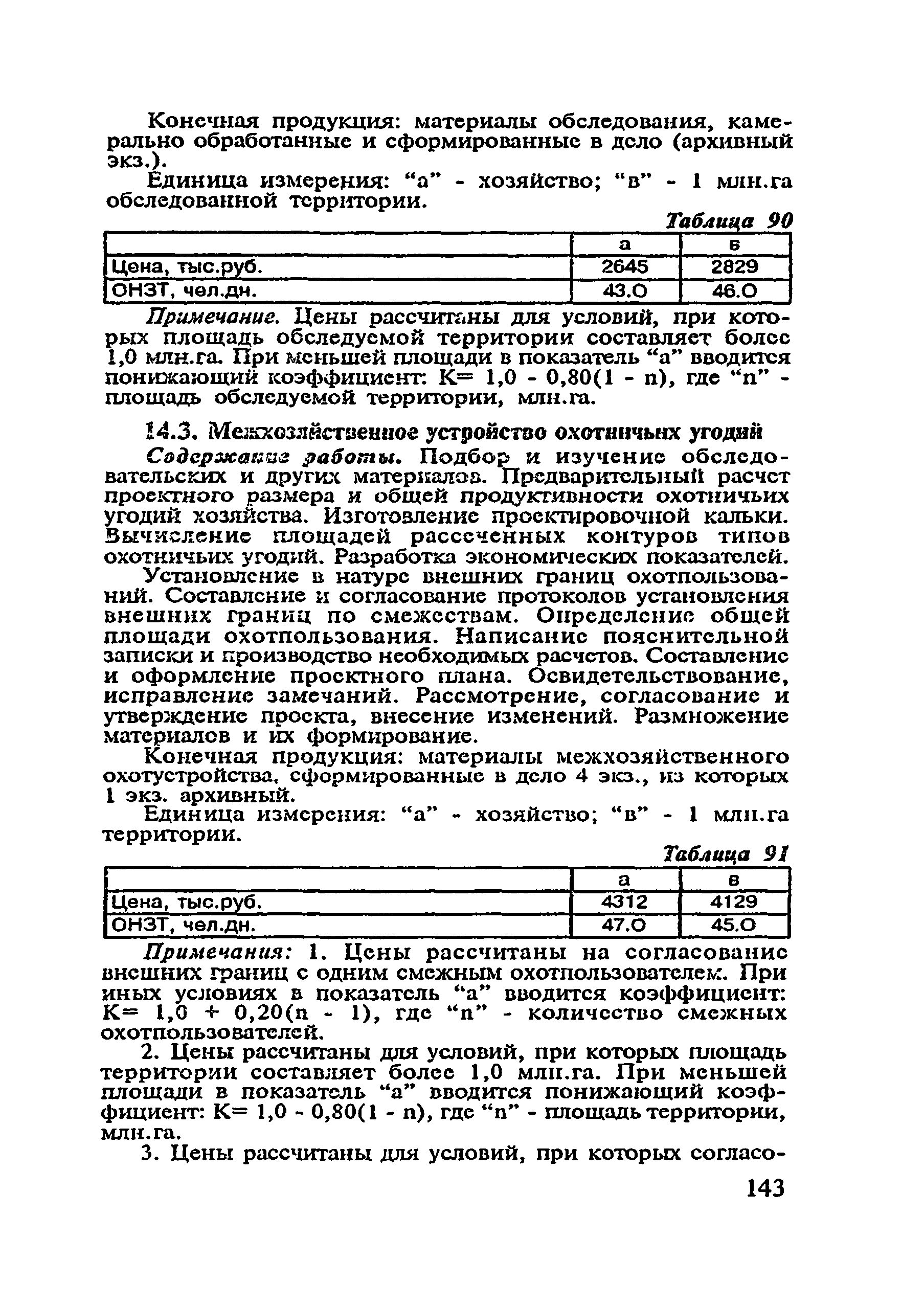 Сборник цен и общественно необходимых затрат труда (ОНЗТ) на изготовление проектной и изыскательской продукции землеустройства, земельного кадастра и мониторинга земель| Статус: | действует | | Название рус.: | Сборник цен и общественно необходимых затрат труда (ОНЗТ) на изготовление проектной и изыскательской продукции землеустройства, земельного кадастра и мониторинга земель | | Дата добавления в базу: | 01.09.2013 | | Дата актуализации: | 01.01.2021 | | Дата введения: | 01.01.1996 | | Область применения: | Сборник предназначен для установления нормативных затрат труда (ОНЗТ) и определения сметной стоимости работ при заключении договоров на изготовление проектной и изыскательской продукции землеустройства, земельного кадастра и мониторинга земель | | Оглавление: | Общие указания Часть I. Изыскания Глава 1. Топографо-геодезические изыскания Глава 2. Работы, сопутствующие геодезическим изысканиям Глава 3. Почвенно-мелиоративные изыскания Глава 4. Геоботанические и зоотехнические изыскания Часть II. Вычисление площадей, изготовление материалов для графического учета земель Глава 5. Вычисление площадей, изготовление материалов для графического учета земель Глава 6. Составление тематических карт и очерков по району, области (краю, республике) Часть III. Проектные работы по охране и использованию земель Глава 7. Схемы (прогнозы) по охране земельных ресурсов и окружающей среды Глава 8. Схемы по использованию земельных ресурсов Глава 9. Земельно-оценочные работы Часть IV. Межхозяйственное землеустройство Глава 10. Проектные работы по созданию новых хозяйств и перераспределению земель Глава 11. Землеустроительные работы по оформлению документов на право пользования землей Часть V. Проектные работы по организации территории хозяйств и разработке мероприятий по улучшению использования земель Глава 12. Разработка проектов по организации территории хозяйств Глава 13. Разработка мероприятий по улучшению земель и хозяйственной деятельности Глава 14. Землеустройство оленеводческих хозяйств и охотничьих угодий Часть VI. Разработка рабочих проектов Глава 15. Разработка рабочих проектов по защите почв от эрозии Глава 16. Разработка рабочих проектов по мелиорации земель Глава 17. Разработка рабочих проектов по строительству объектов хозяйственного назначения Часть VII. Землеустроительные работы по осуществлению проектных разработок Глава 18. Перенесение проектов землеустройства в натуру Глава 19. Контроль за освоением проектов и использованием земель Часть VIII. Чертежные работы, размножение и оформление материалов, разные работы Глава 20. Чертежные работы Глава 21. Картографические и множительные работы Глава 22. Оформительские работы Глава 23. Разные работы Часть IX. Аэрофотогеодезические работы Глава 24. Создание сельскохозяйственных планов и карт Глава 25. Создание топографических планов сельскохозяйственного назначения Глава 26. Создание планов сельских населенных пунктов Глава 27. Работы, сопутствующие аэрофотогеодезическим изысканиям Часть X. Отдельные виды проектной и изыскательской продукции, прочие работы Глава 28. Лабораторные анализы растительных образцов, другие виды проектно-изыскательских работ Глава 29. Разработка норм времени, затрат труда (ОНЗТ) и цен на изготовление проектной и изыскательской продукции Приложения | | Разработан: | Научно-методическ