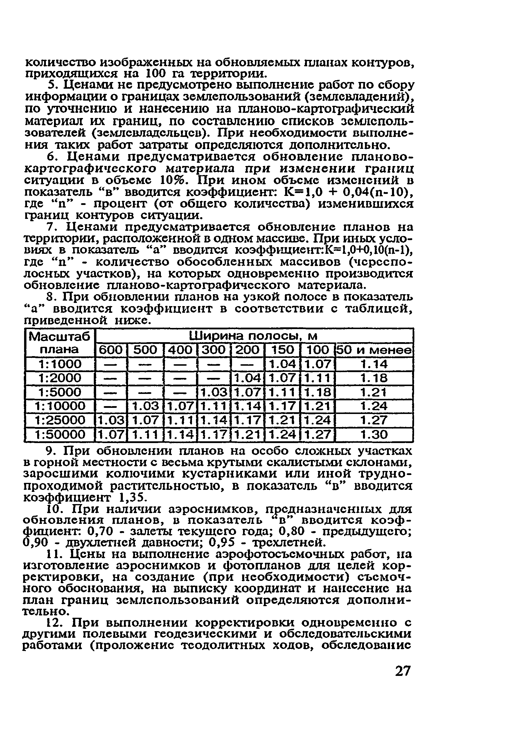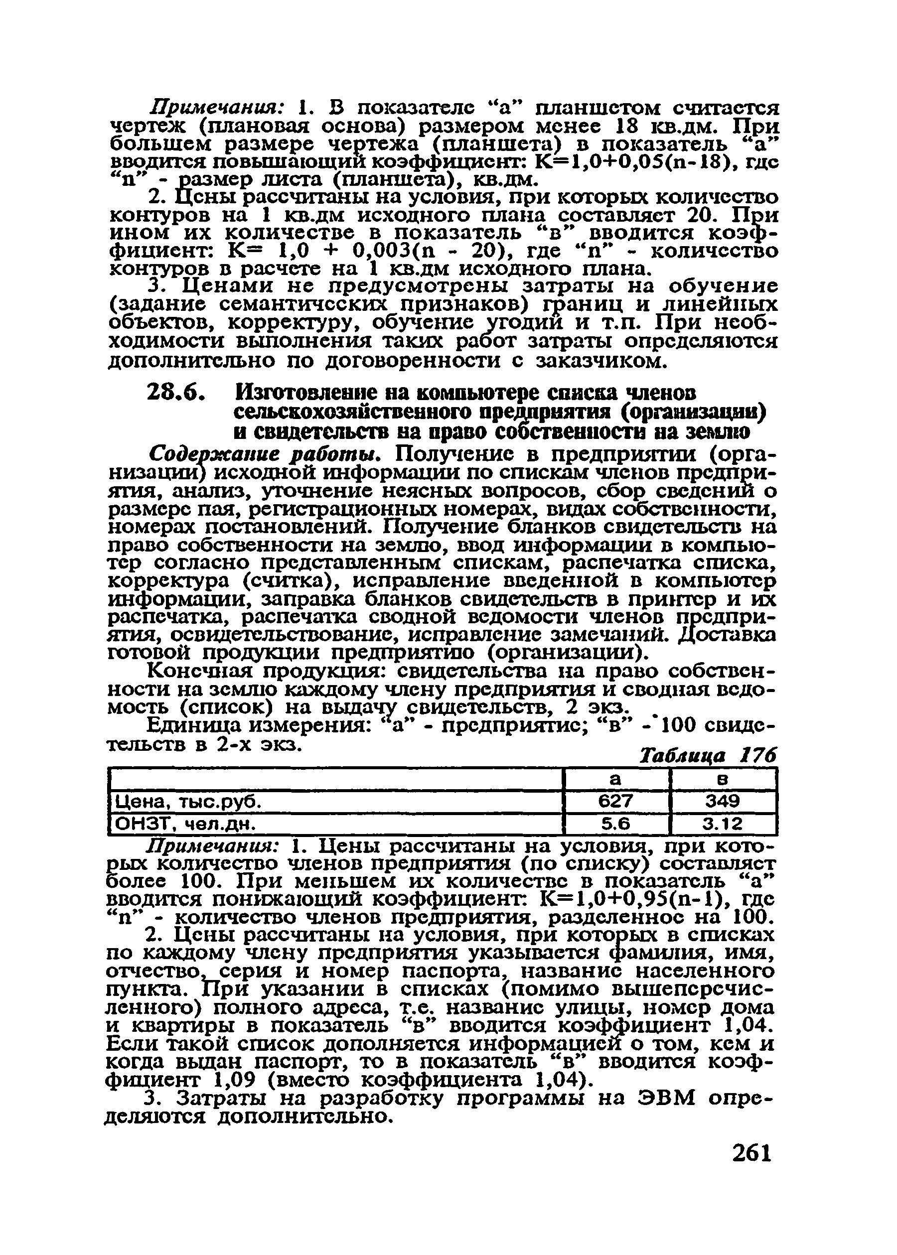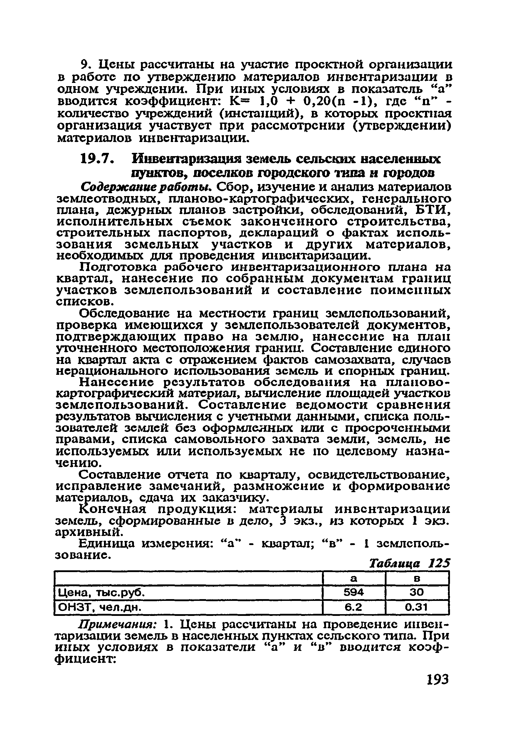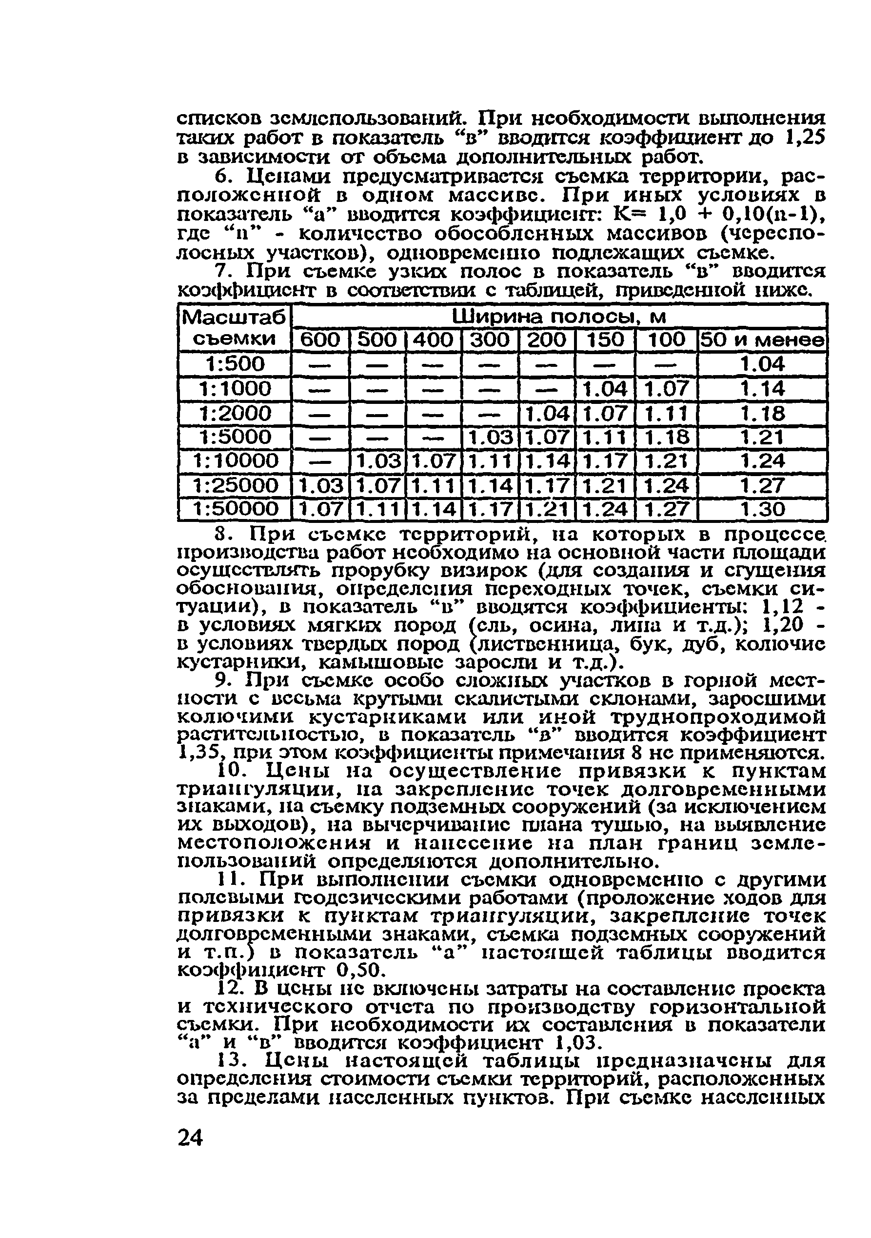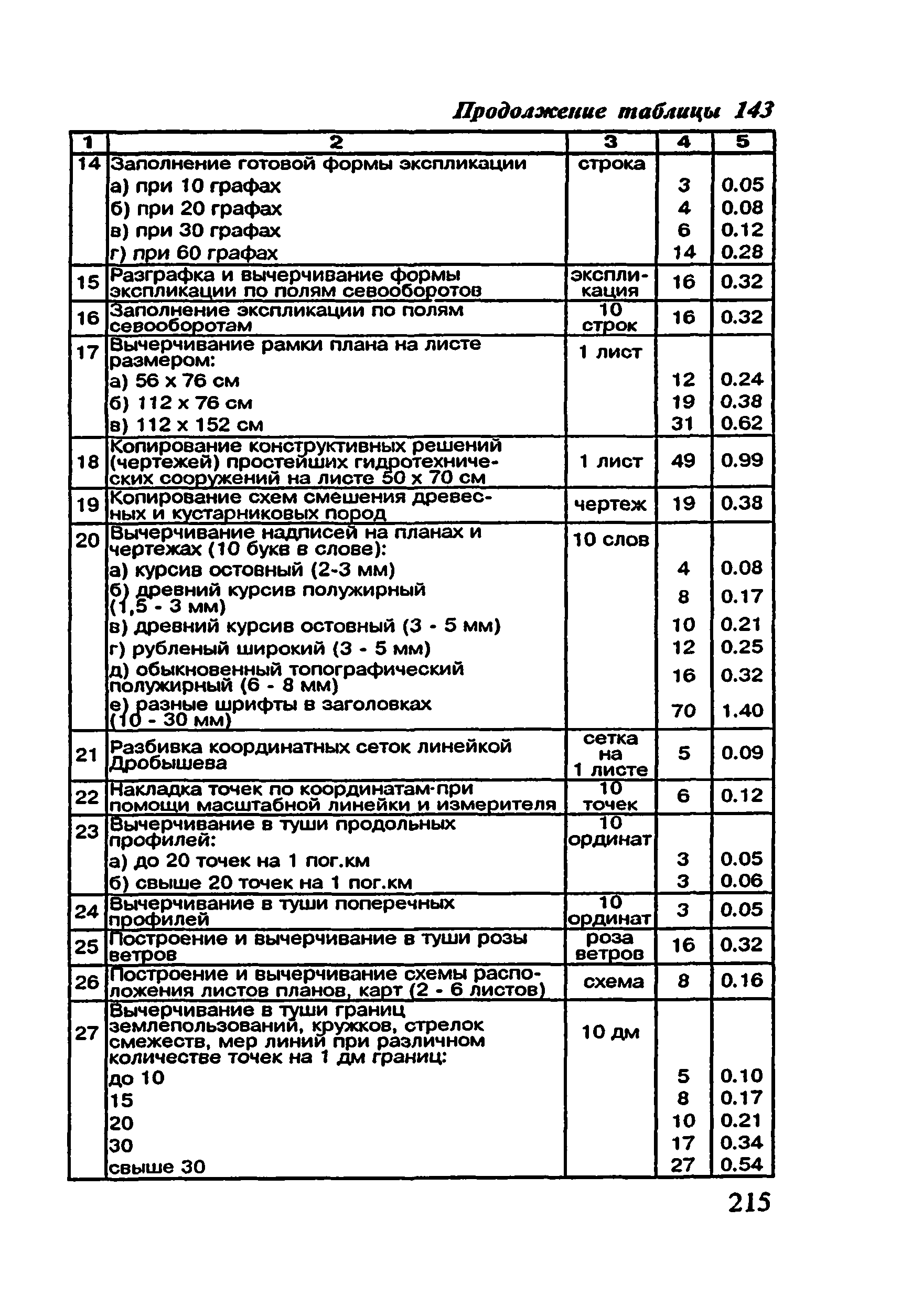 Сборник цен и общественно необходимых затрат труда (ОНЗТ) на изготовление проектной и изыскательской продукции землеустройства, земельного кадастра и мониторинга земель| Статус: | действует | | Название рус.: | Сборник цен и общественно необходимых затрат труда (ОНЗТ) на изготовление проектной и изыскательской продукции землеустройства, земельного кадастра и мониторинга земель | | Дата добавления в базу: | 01.09.2013 | | Дата актуализации: | 01.01.2021 | | Дата введения: | 01.01.1996 | | Область применения: | Сборник предназначен для установления нормативных затрат труда (ОНЗТ) и определения сметной стоимости работ при заключении договоров на изготовление проектной и изыскательской продукции землеустройства, земельного кадастра и мониторинга земель | | Оглавление: | Общие указания Часть I. Изыскания Глава 1. Топографо-геодезические изыскания Глава 2. Работы, сопутствующие геодезическим изысканиям Глава 3. Почвенно-мелиоративные изыскания Глава 4. Геоботанические и зоотехнические изыскания Часть II. Вычисление площадей, изготовление материалов для графического учета земель Глава 5. Вычисление площадей, изготовление материалов для графического учета земель Глава 6. Составление тематических карт и очерков по району, области (краю, республике) Часть III. Проектные работы по охране и использованию земель Глава 7. Схемы (прогнозы) по охране земельных ресурсов и окружающей среды Глава 8. Схемы по использованию земельных ресурсов Глава 9. Земельно-оценочные работы Часть IV. Межхозяйственное землеустройство Глава 10. Проектные работы по созданию новых хозяйств и перераспределению земель Глава 11. Землеустроительные работы по оформлению документов на право пользования землей Часть V. Проектные работы по организации территории хозяйств и разработке мероприятий по улучшению использования земель Глава 12. Разработка проектов по организации территории хозяйств Глава 13. Разработка мероприятий по улучшению земель и хозяйственной деятельности Глава 14. Землеустройство оленеводческих хозяйств и охотничьих угодий Часть VI. Разработка рабочих проектов Глава 15. Разработка рабочих проектов по защите почв от эрозии Глава 16. Разработка рабочих проектов по мелиорации земель Глава 17. Разработка рабочих проектов по строительству объектов хозяйственного назначения Часть VII. Землеустроительные работы по осуществлению проектных разработок Глава 18. Перенесение проектов землеустройства в натуру Глава 19. Контроль за освоением проектов и использованием земель Часть VIII. Чертежные работы, размножение и оформление материалов, разные работы Глава 20. Чертежные работы Глава 21. Картографические и множительные работы Глава 22. Оформительские работы Глава 23. Разные работы Часть IX. Аэрофотогеодезические работы Глава 24. Создание сельскохозяйственных планов и карт Глава 25. Создание топографических планов сельскохозяйственного назначения Глава 26. Создание планов сельских населенных пунктов Глава 27. Работы, сопутствующие аэрофотогеодезическим изысканиям Часть X. Отдельные виды проектной и изыскательской продукции, прочие работы Глава 28. Лабораторные анализы растительных образцов, другие виды проектно-изыскательских работ Глава 29. Разработка норм времени, затрат труда (ОНЗТ) и цен на изготовление проектной и изыскательской продукции Приложения | | Разработан: | Научно-методическ