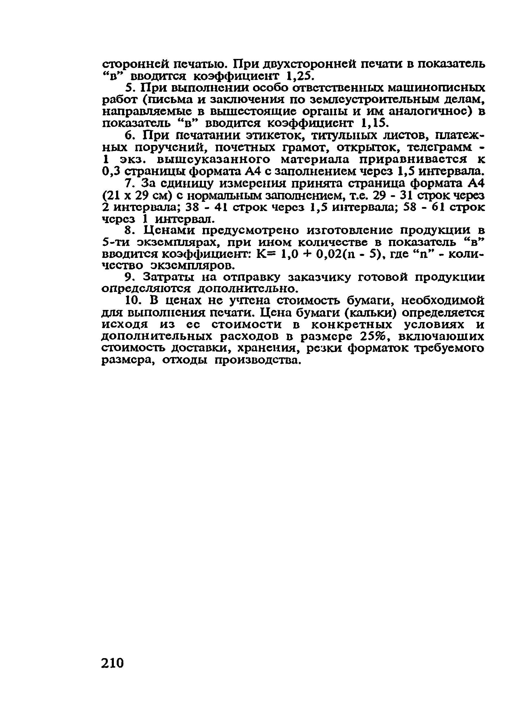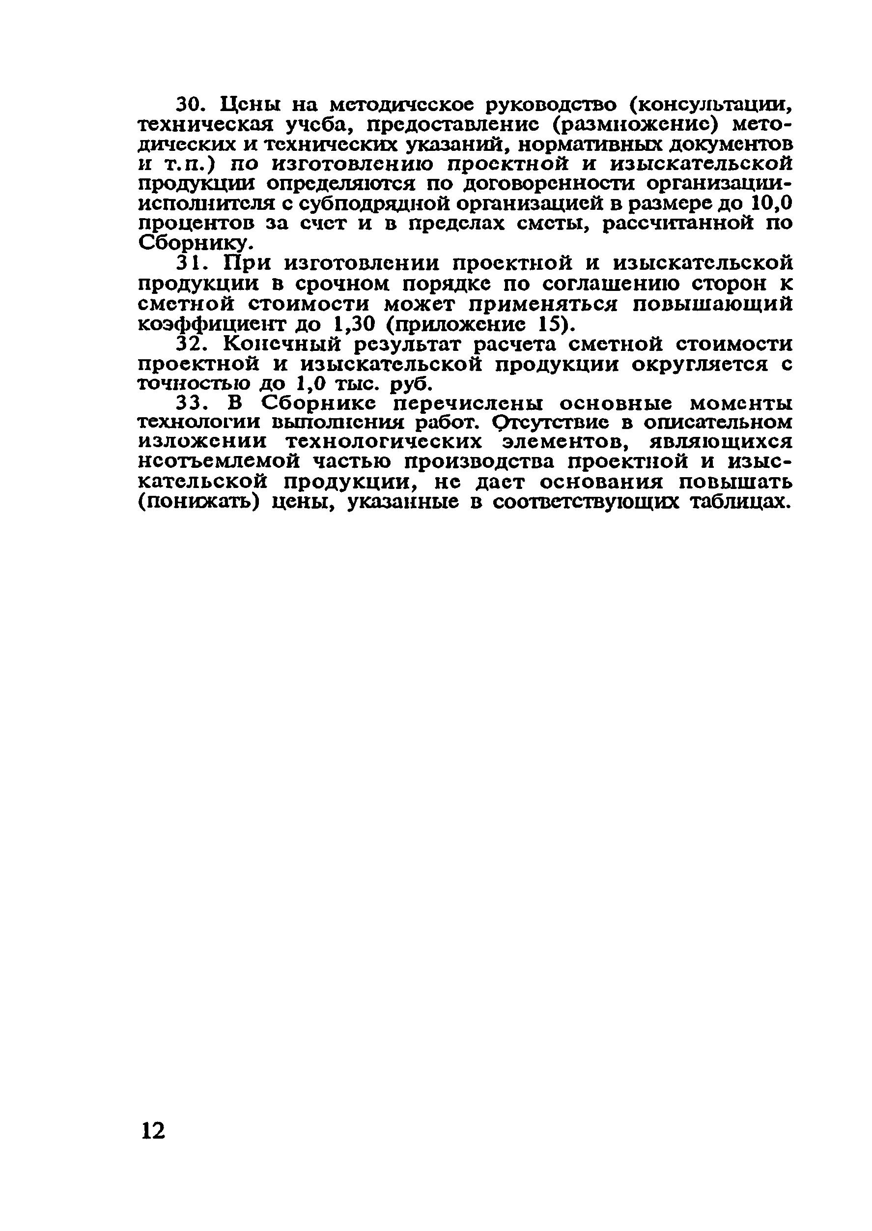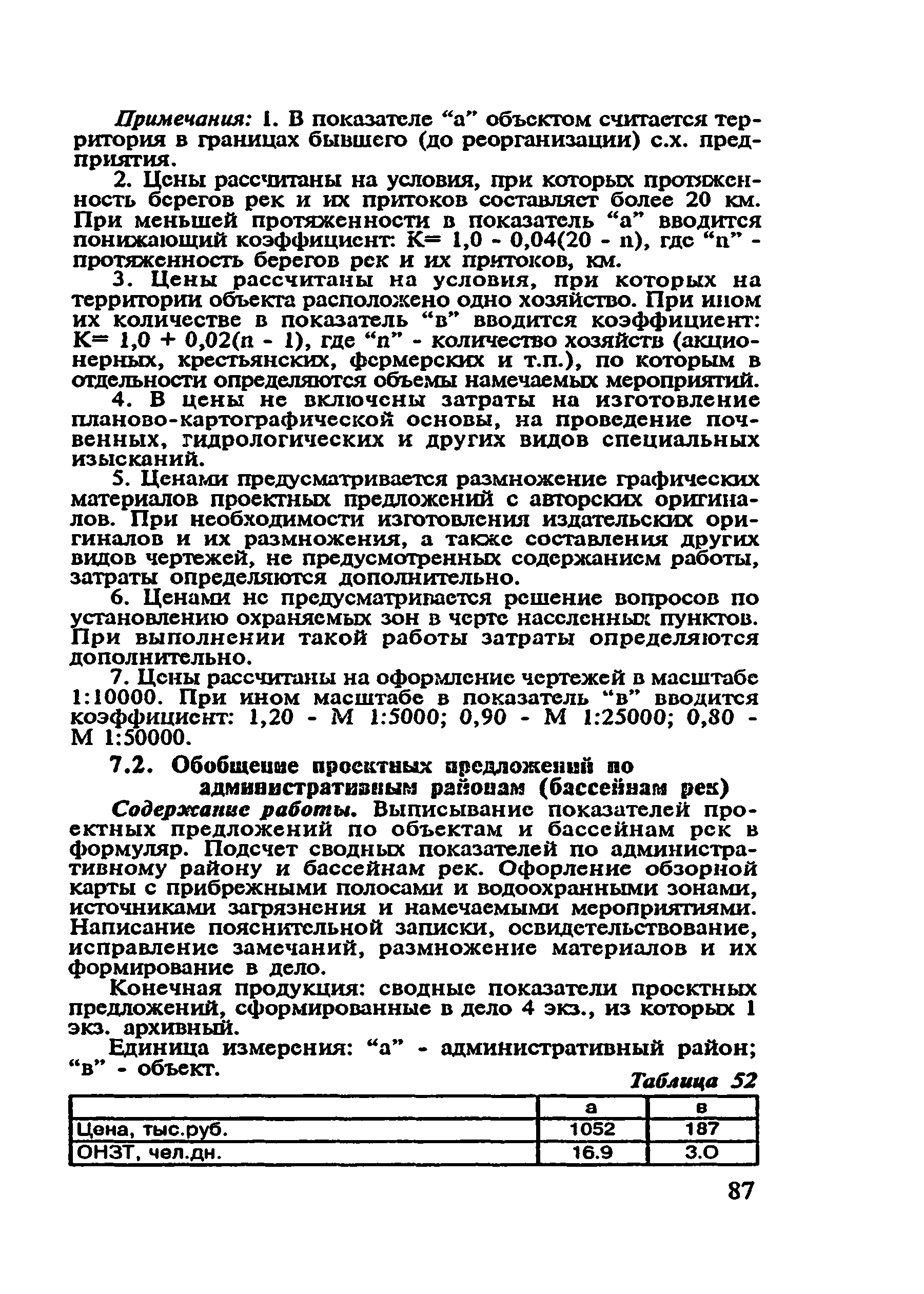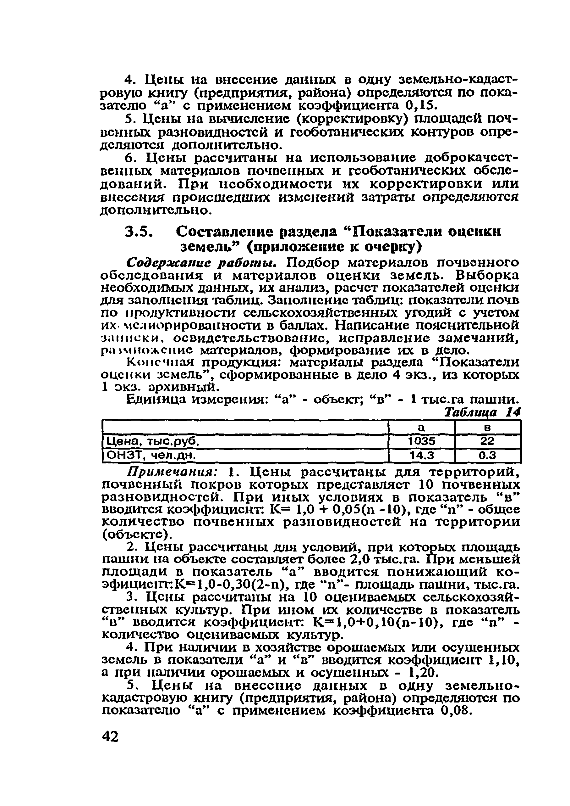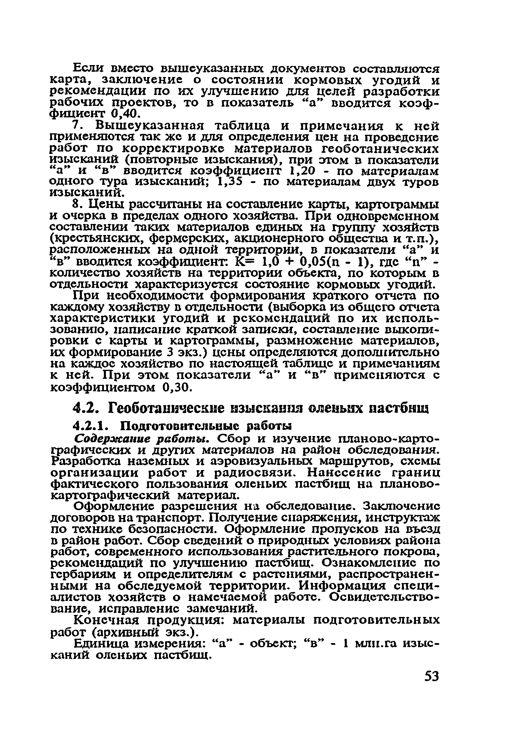 Сборник цен и общественно необходимых затрат труда (ОНЗТ) на изготовление проектной и изыскательской продукции землеустройства, земельного кадастра и мониторинга земель| Статус: | действует | | Название рус.: | Сборник цен и общественно необходимых затрат труда (ОНЗТ) на изготовление проектной и изыскательской продукции землеустройства, земельного кадастра и мониторинга земель | | Дата добавления в базу: | 01.09.2013 | | Дата актуализации: | 01.01.2021 | | Дата введения: | 01.01.1996 | | Область применения: | Сборник предназначен для установления нормативных затрат труда (ОНЗТ) и определения сметной стоимости работ при заключении договоров на изготовление проектной и изыскательской продукции землеустройства, земельного кадастра и мониторинга земель | | Оглавление: | Общие указания Часть I. Изыскания Глава 1. Топографо-геодезические изыскания Глава 2. Работы, сопутствующие геодезическим изысканиям Глава 3. Почвенно-мелиоративные изыскания Глава 4. Геоботанические и зоотехнические изыскания Часть II. Вычисление площадей, изготовление материалов для графического учета земель Глава 5. Вычисление площадей, изготовление материалов для графического учета земель Глава 6. Составление тематических карт и очерков по району, области (краю, республике) Часть III. Проектные работы по охране и использованию земель Глава 7. Схемы (прогнозы) по охране земельных ресурсов и окружающей среды Глава 8. Схемы по использованию земельных ресурсов Глава 9. Земельно-оценочные работы Часть IV. Межхозяйственное землеустройство Глава 10. Проектные работы по созданию новых хозяйств и перераспределению земель Глава 11. Землеустроительные работы по оформлению документов на право пользования землей Часть V. Проектные работы по организации территории хозяйств и разработке мероприятий по улучшению использования земель Глава 12. Разработка проектов по организации территории хозяйств Глава 13. Разработка мероприятий по улучшению земель и хозяйственной деятельности Глава 14. Землеустройство оленеводческих хозяйств и охотничьих угодий Часть VI. Разработка рабочих проектов Глава 15. Разработка рабочих проектов по защите почв от эрозии Глава 16. Разработка рабочих проектов по мелиорации земель Глава 17. Разработка рабочих проектов по строительству объектов хозяйственного назначения Часть VII. Землеустроительные работы по осуществлению проектных разработок Глава 18. Перенесение проектов землеустройства в натуру Глава 19. Контроль за освоением проектов и использованием земель Часть VIII. Чертежные работы, размножение и оформление материалов, разные работы Глава 20. Чертежные работы Глава 21. Картографические и множительные работы Глава 22. Оформительские работы Глава 23. Разные работы Часть IX. Аэрофотогеодезические работы Глава 24. Создание сельскохозяйственных планов и карт Глава 25. Создание топографических планов сельскохозяйственного назначения Глава 26. Создание планов сельских населенных пунктов Глава 27. Работы, сопутствующие аэрофотогеодезическим изысканиям Часть X. Отдельные виды проектной и изыскательской продукции, прочие работы Глава 28. Лабораторные анализы растительных образцов, другие виды проектно-изыскательских работ Глава 29. Разработка норм времени, затрат труда (ОНЗТ) и цен на изготовление проектной и изыскательской продукции Приложения | | Разработан: | Научно-методическ