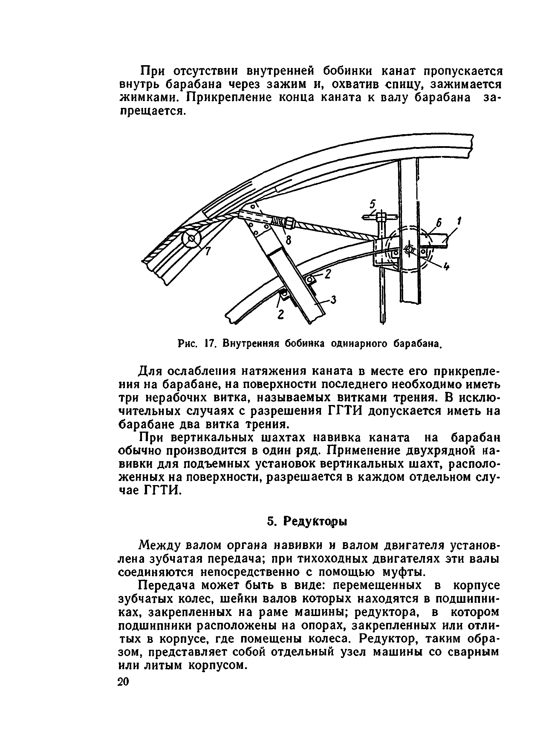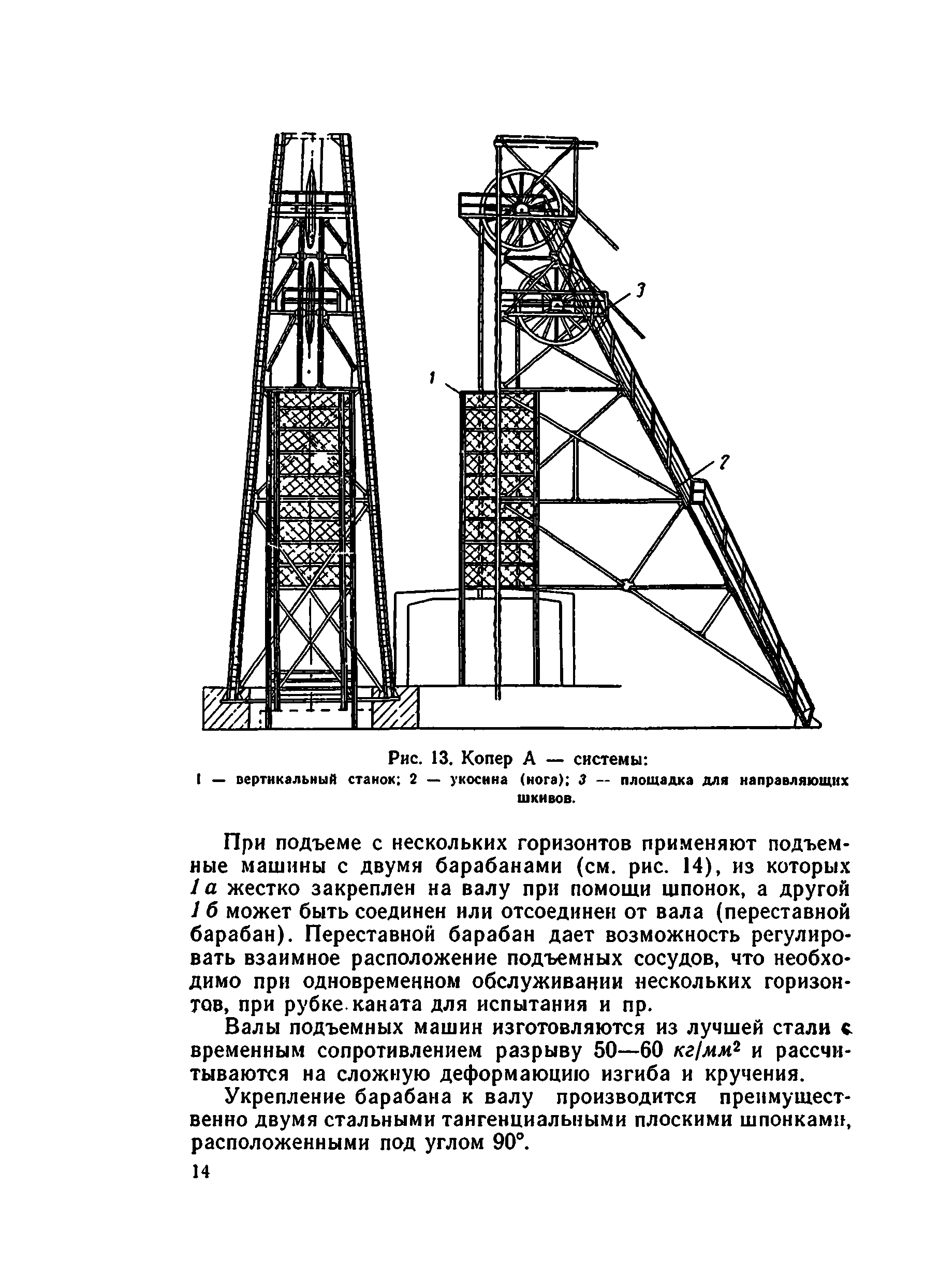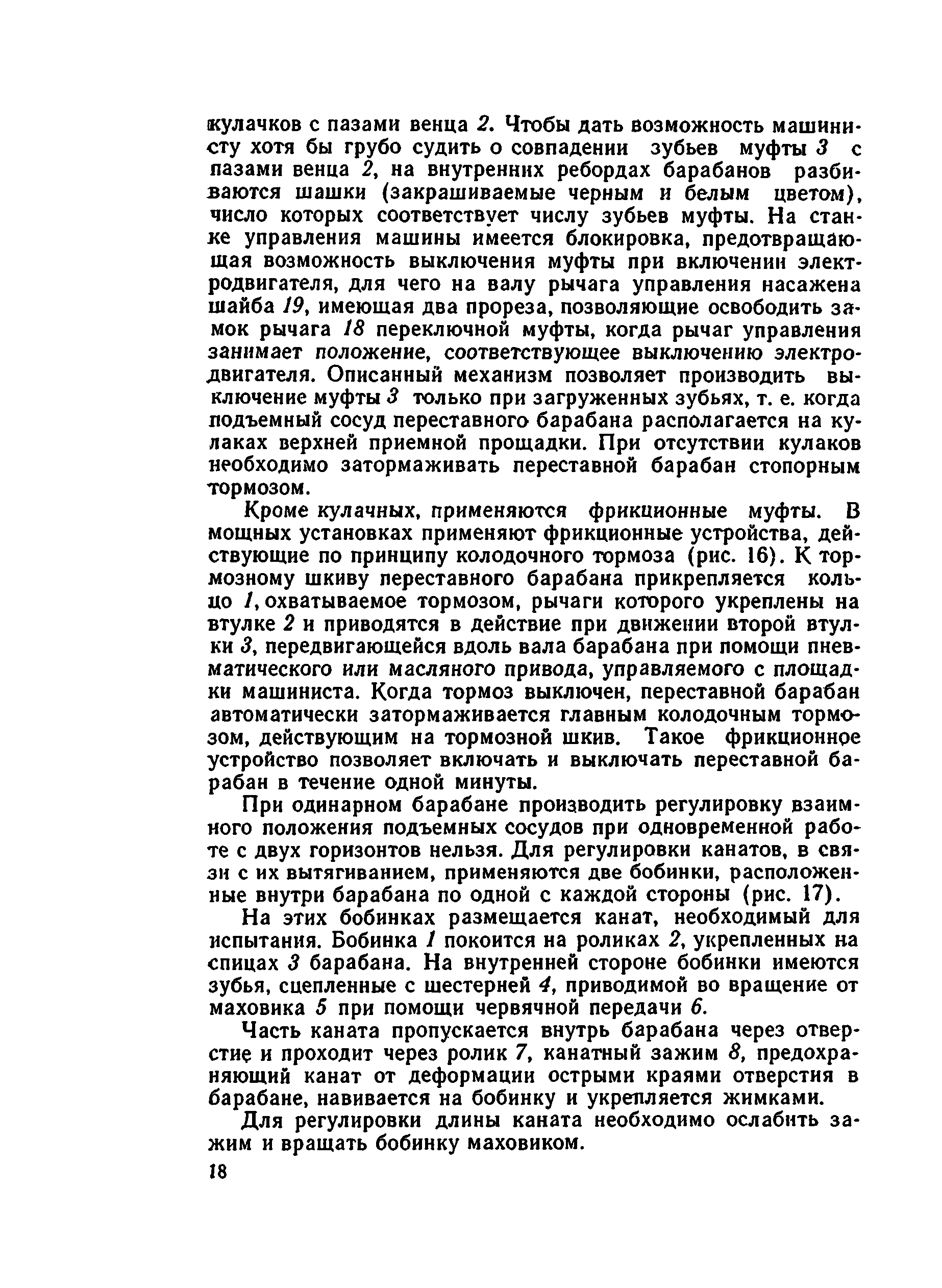 | Оглавление: | I. Краткие сведения о подъемных установках 1. Подъемные сосуды 2. Подъемные канаты 3. Копровые шкивы и копры 4. Подъемные машины 5. Редукторы 6. Тормоза 7. Указатели скорости и глубины 8. Предохранительная аппаратура подъемных машин 9. Принципиальная схема управления асинхронным двигателем подъемной установки 10. Сигнализация при шахтном подъеме II. Эксплуатация и безопасное обслуживание подъемных установок 1. Общие положения 2. Состояние машинного зала 3. Копры и направляющие шкивы 4. Канаты и прицепные устройства 5. Подъемные сосуды и устройства для загрузки и выгрузки их 6. Парашюты 7. Предохранительные устройства 8. Подъемные машины 9. Электрооборудование подъемной установки 10. Сигнализация при подъеме 11. Осмотр подъемной установки 12. Обслуживание подъемной установки 13. Спуск и подъем людей по шахтным стволам Литература |