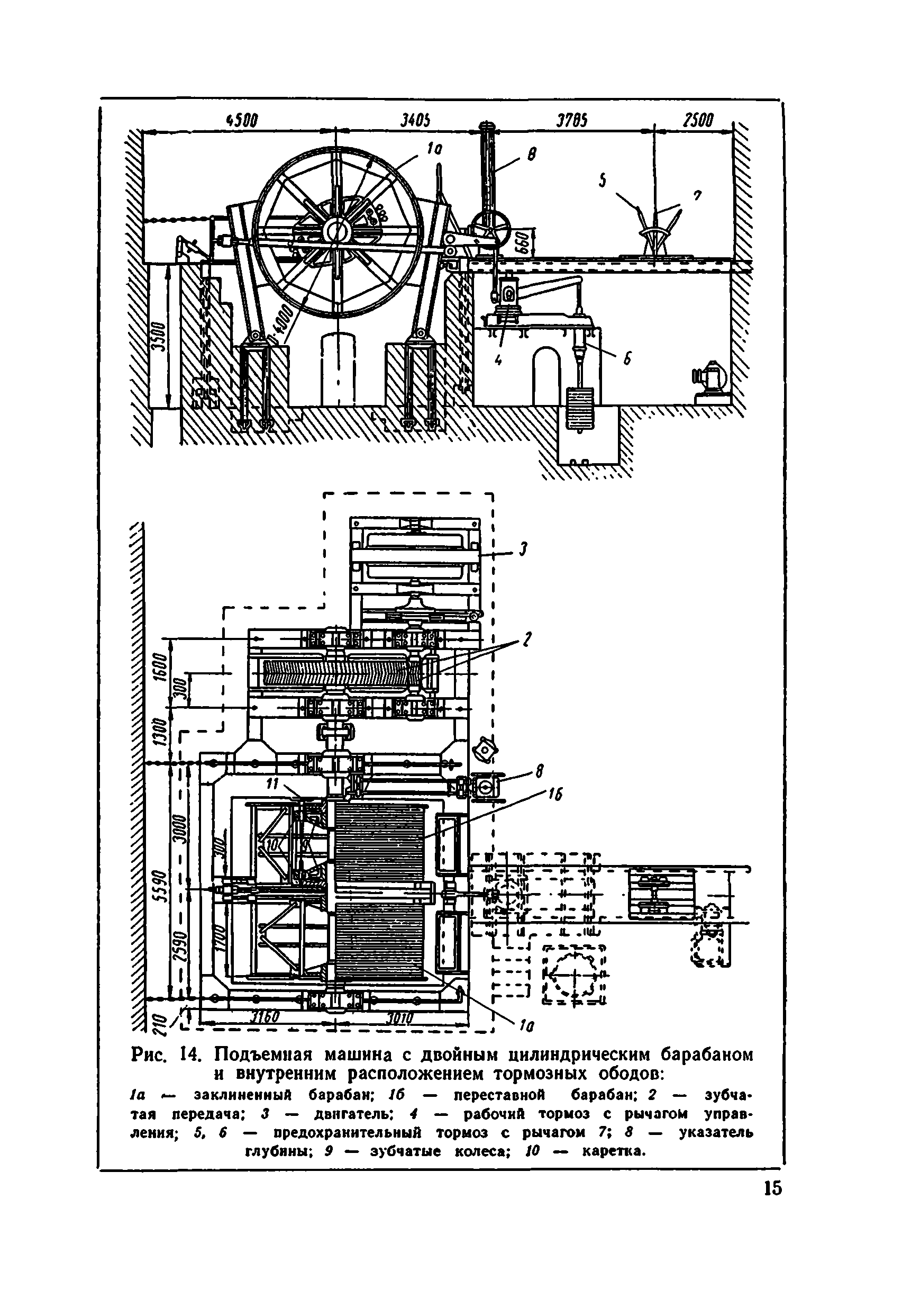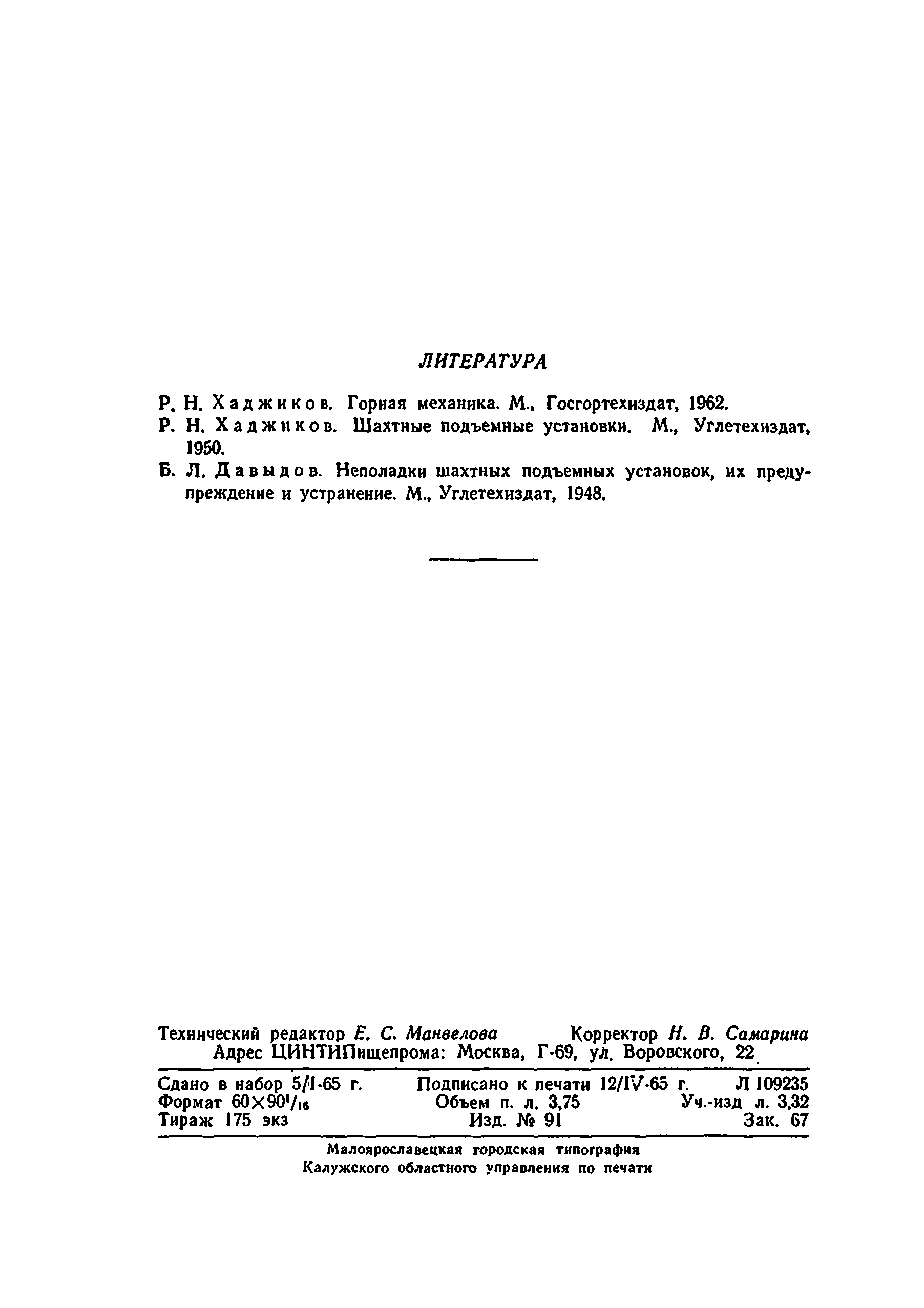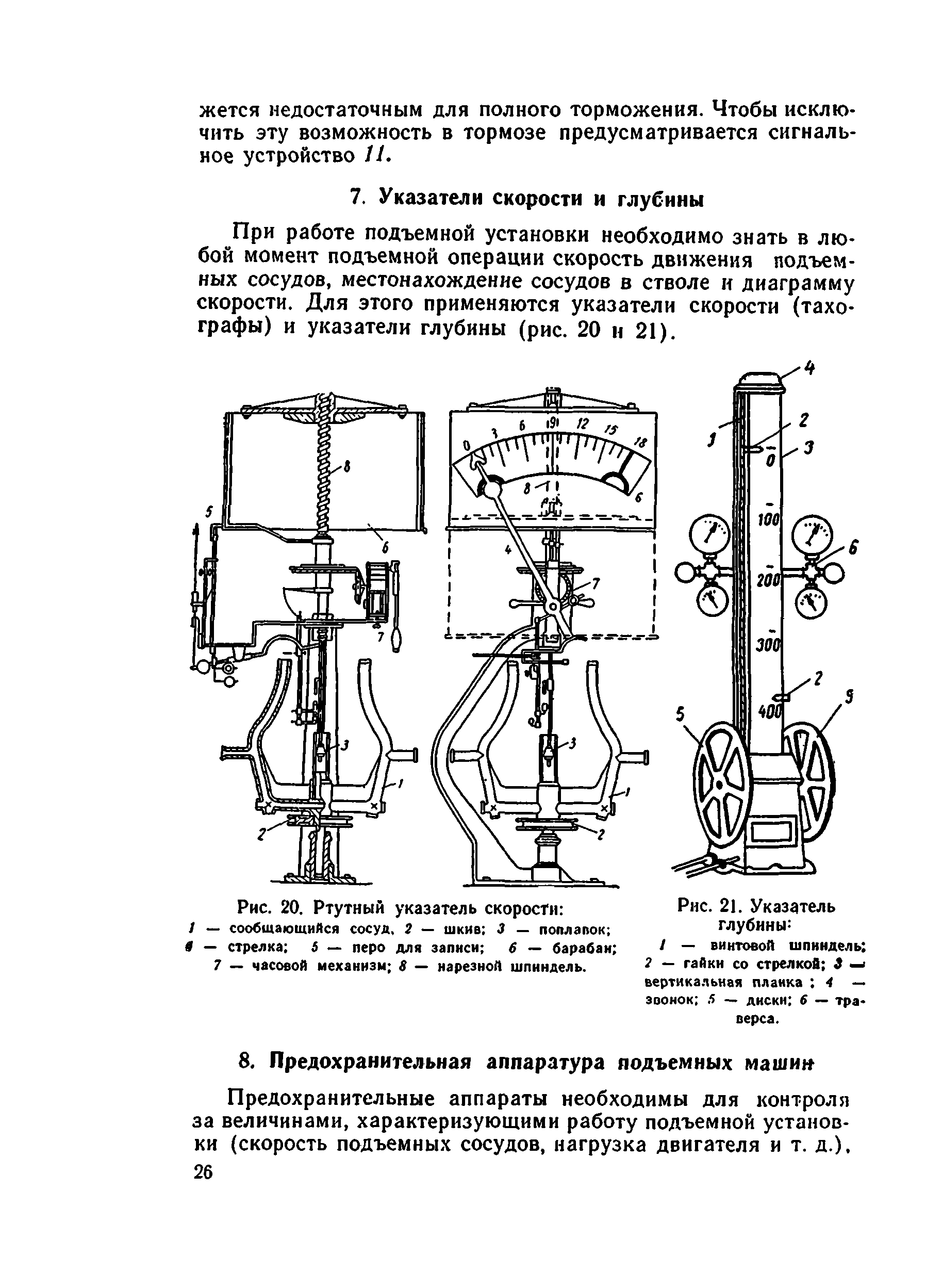 | Оглавление: | I. Краткие сведения о подъемных установках 1. Подъемные сосуды 2. Подъемные канаты 3. Копровые шкивы и копры 4. Подъемные машины 5. Редукторы 6. Тормоза 7. Указатели скорости и глубины 8. Предохранительная аппаратура подъемных машин 9. Принципиальная схема управления асинхронным двигателем подъемной установки 10. Сигнализация при шахтном подъеме II. Эксплуатация и безопасное обслуживание подъемных установок 1. Общие положения 2. Состояние машинного зала 3. Копры и направляющие шкивы 4. Канаты и прицепные устройства 5. Подъемные сосуды и устройства для загрузки и выгрузки их 6. Парашюты 7. Предохранительные устройства 8. Подъемные машины 9. Электрооборудование подъемной установки 10. Сигнализация при подъеме 11. Осмотр подъемной установки 12. Обслуживание подъемной установки 13. Спуск и подъем людей по шахтным стволам Литература |