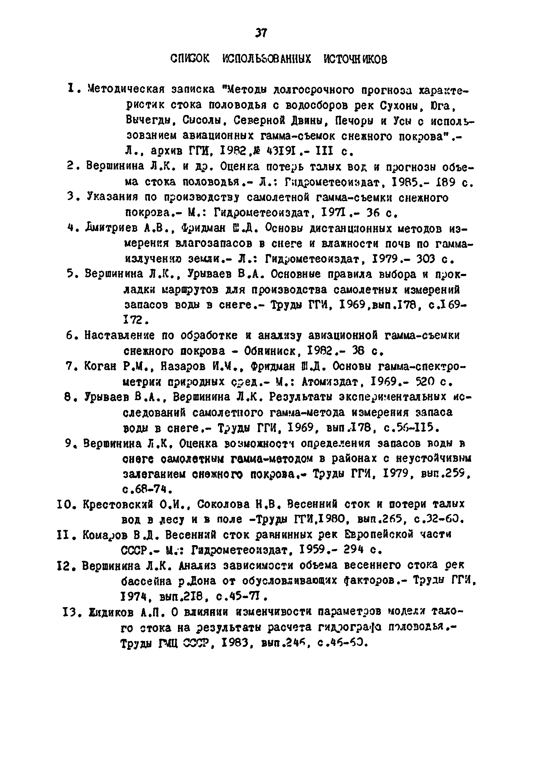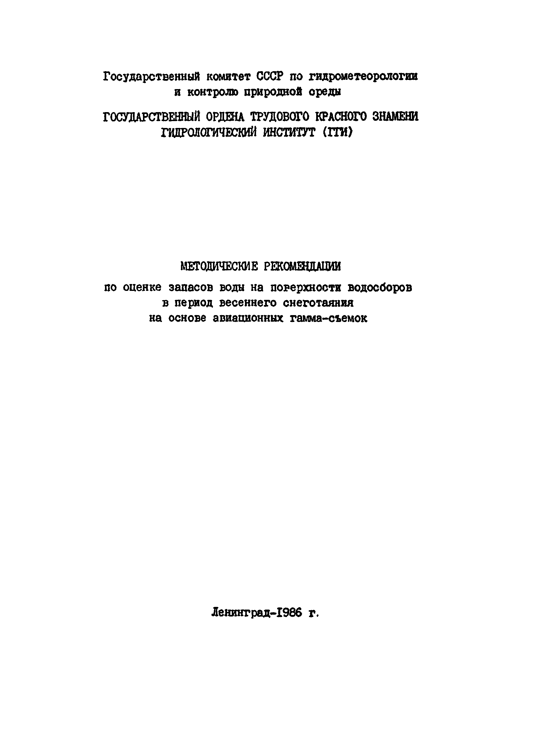 Методические рекомендации по оценке запасов воды на поверхности водооборота в период весеннего снеготаяния на основе авиационных гамма-съемок| Статус: | действует | | Название рус.: | Методические рекомендации по оценке запасов воды на поверхности водооборота в период весеннего снеготаяния на основе авиационных гамма-съемок | | Дата добавления в базу: | 01.09.2013 | | Дата актуализации: | 01.01.2021 | | Дата введения: | 03.01.1986 | | Оглавление: | Введение 1. Основа метода гамма-съемки снежного покрова и влажности почв 2. Уровни гамма-поля земной поверхности и их изменчивость 3. Методы оценки запасов воды на поверхности водосборов в период снеготаяния Заключение Список использованных источников |