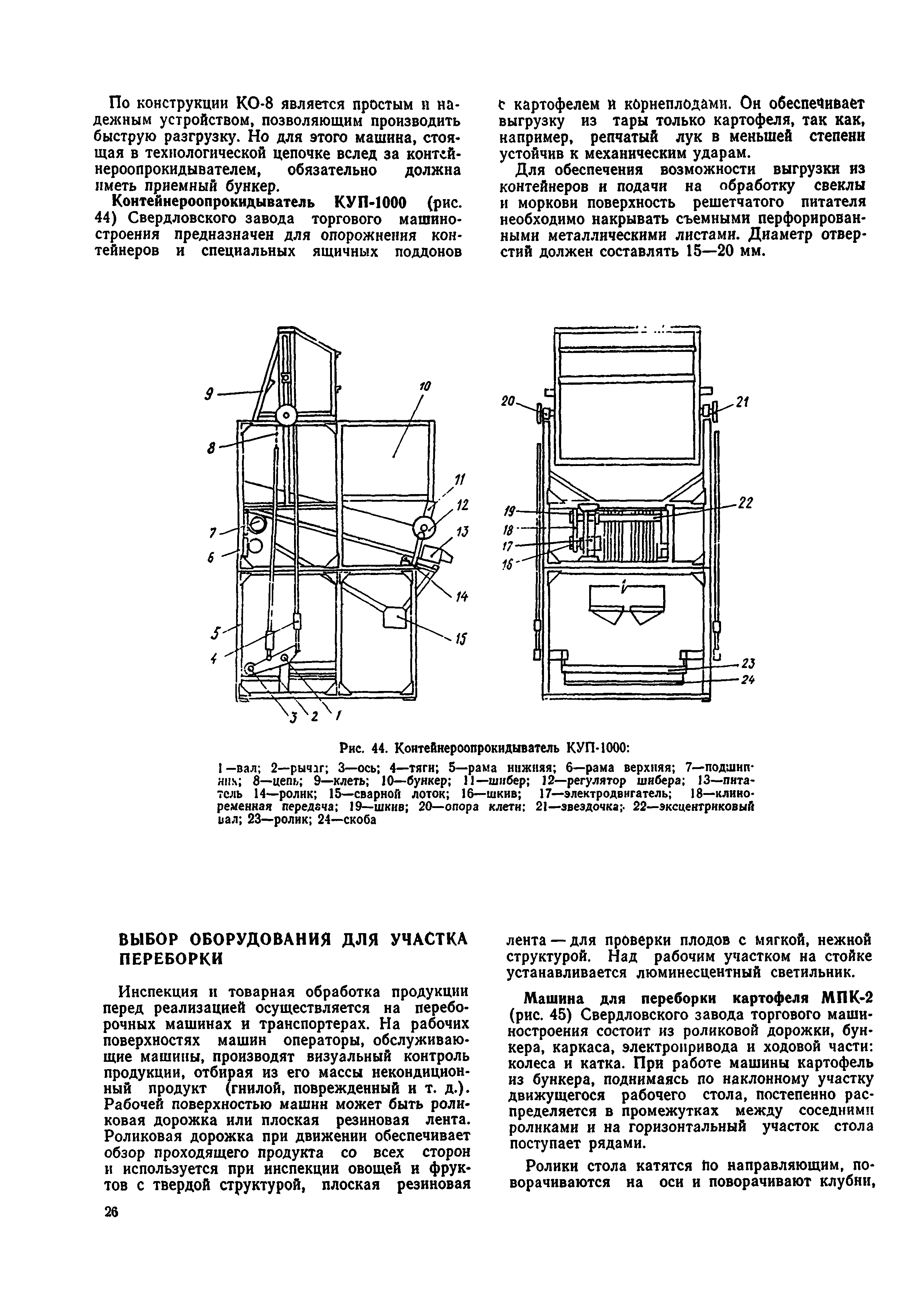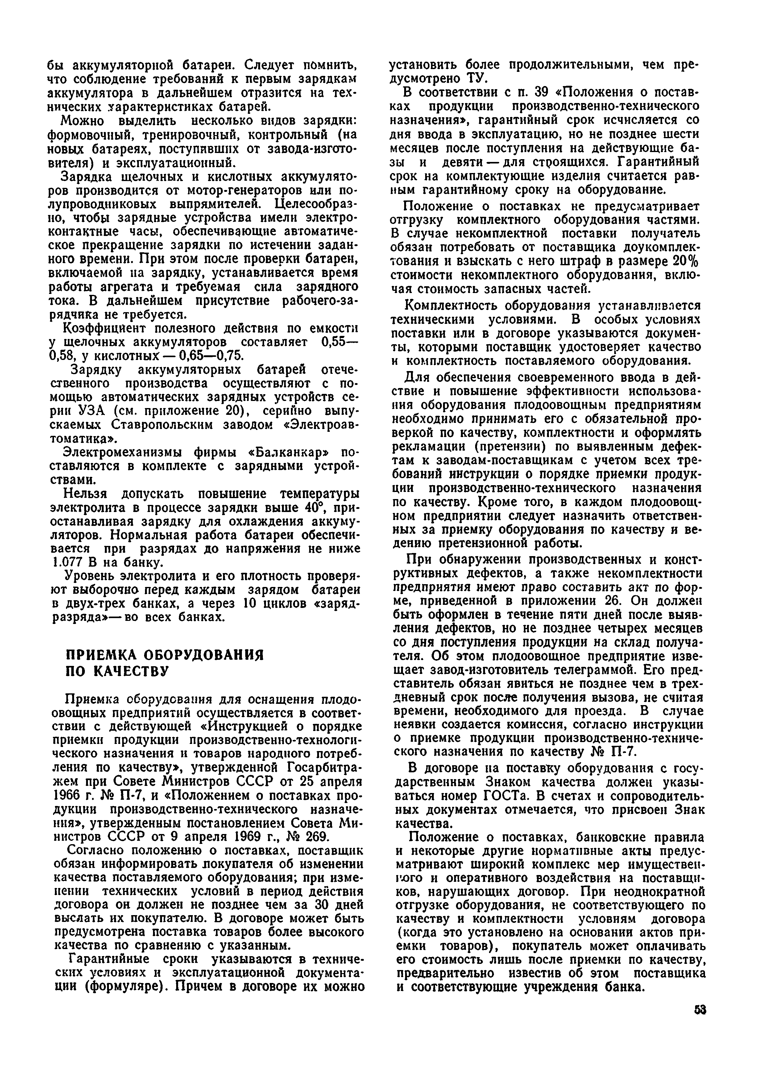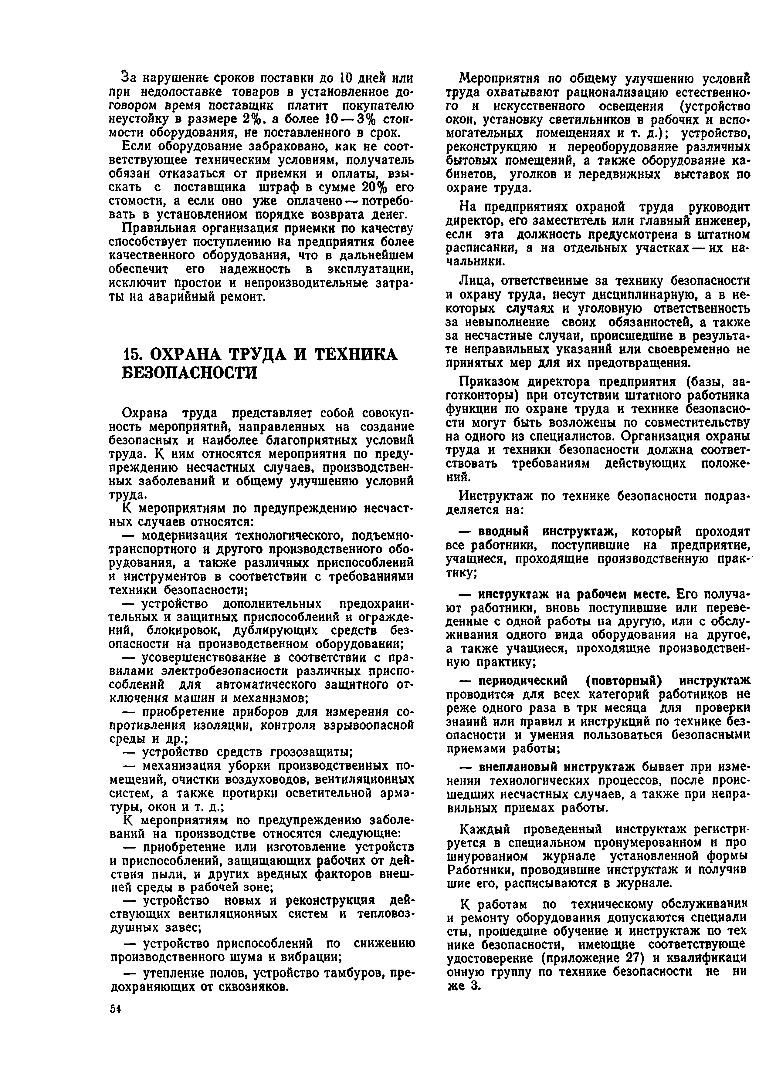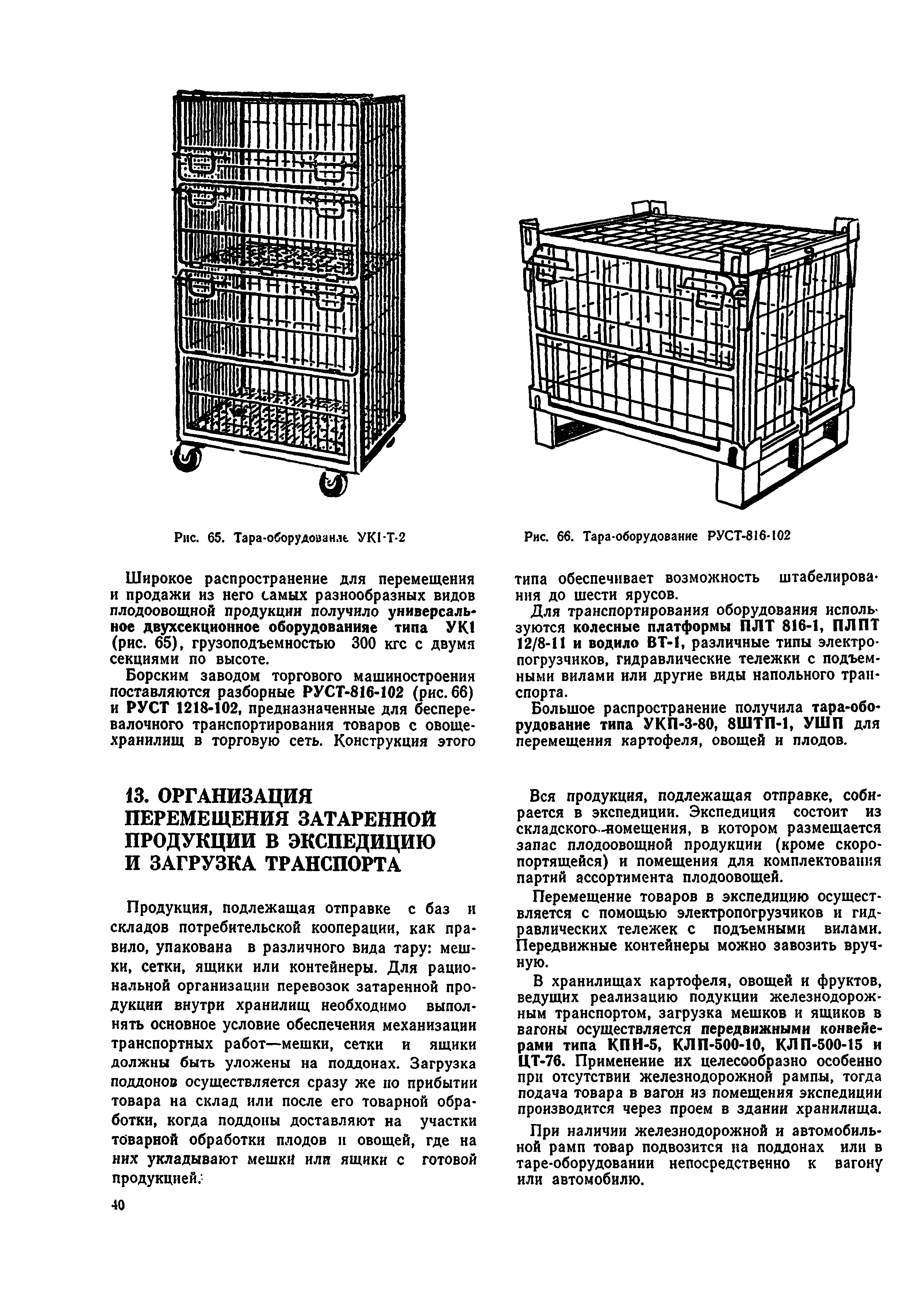 Методические рекомендации по повышению эффективности использования технологического, подъемно-транспортного и холодильного оборудования хранилищ картофеля, овощей и фруктов| Статус: | действует | | Название рус.: | Методические рекомендации по повышению эффективности использования технологического, подъемно-транспортного и холодильного оборудования хранилищ картофеля, овощей и фруктов | | Дата добавления в базу: | 01.09.2013 | | Дата актуализации: | 01.01.2021 | | Дата введения: | 03.02.1982 | | Оглавление: | 1. Введение 2. Способы хранения и основные типы хранилищ картофеля и овощей 3. Рациональные схемы механизации работ с продукцией, хранящейся "навалом" 4. Механизация разгрузки продукции, поступающей в мягкой таре 5. Механизация разгрузки продукции, поступающей в ящиках 6. Механизация разгрузки продукции, поступающей в контейнерах 7. Механизация работы с бочковым товаром 8. Типы контейнеров для хранения плодоовощной продукции 9. Электропогрузчики 10. Средства малой механизации транспортных работ 11. Товарная обработка плодоовощной продукции 12. Тара-оборудование 13. Организация перемещения затаренной продукции в экспедицию и загрузка транспорта 14. Организация эксплуатации оборудования 15. Охрана труда и техника безопасности | | Утверждён: | 03.02.1982 Центросоюз (Tsentrosoyuz 2, п.2)