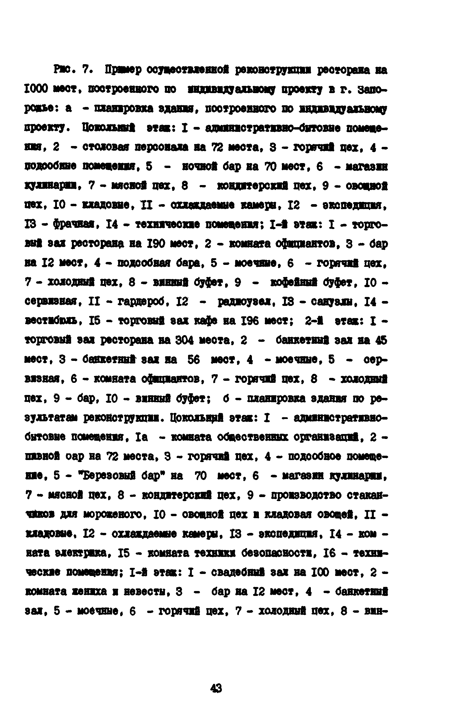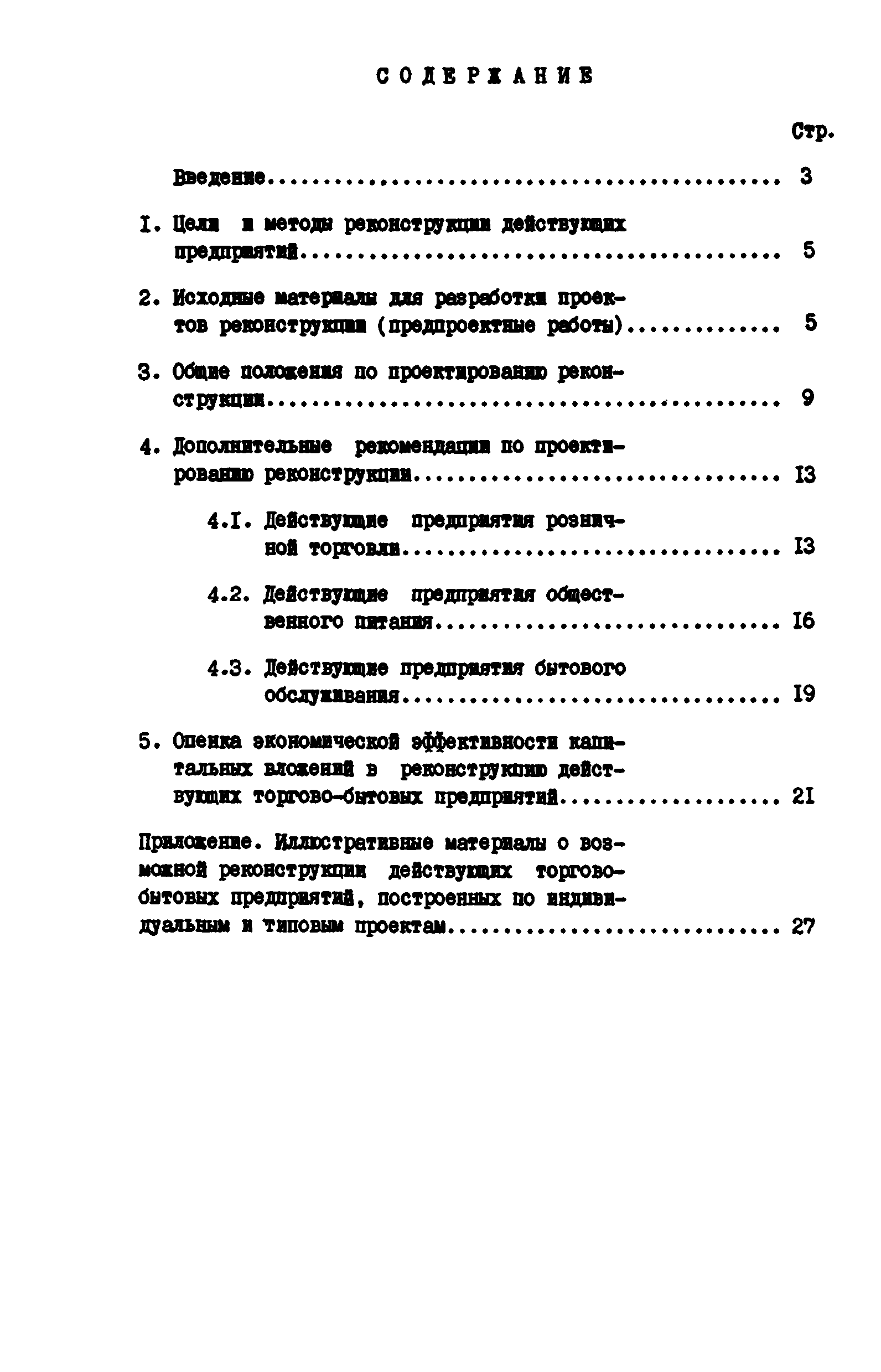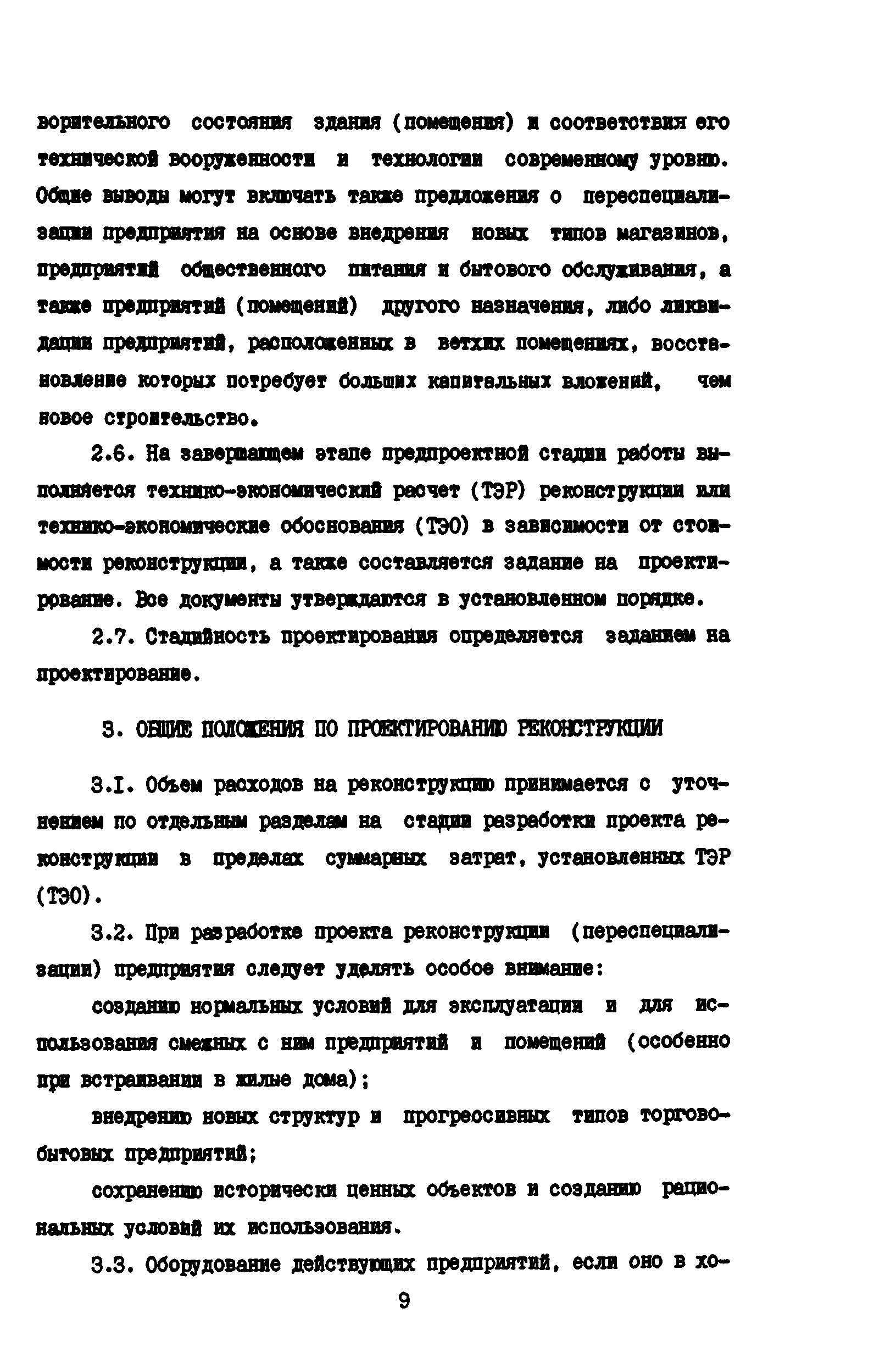 | Оглавление: | Введение 1. Цели и методы реконструкции действующих предприятий 2. Исходные материалы для разработки проектов реконструкции (предпроектные работы) 3. Общие положения по проектированию реконструкции 4. Дополнительные рекомендации по проектированию реконструкции 5. Оценка экономической эффективности капитальных вложений в реконструкцию действующих торгово-бытовых предприятий Приложение. Иллюстративные материалы о возможной реконструкции действующих торгово-бытовых предприятий |