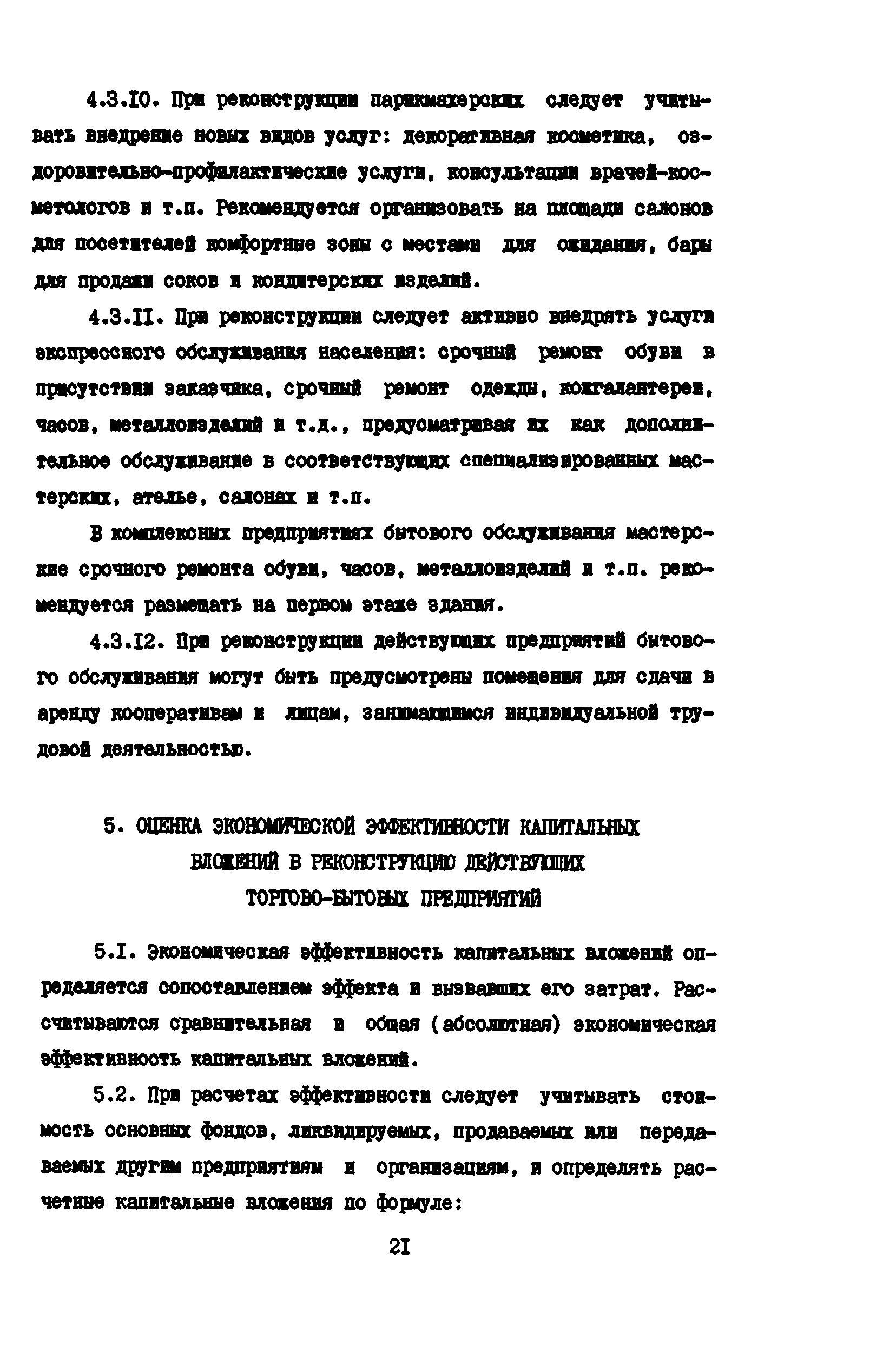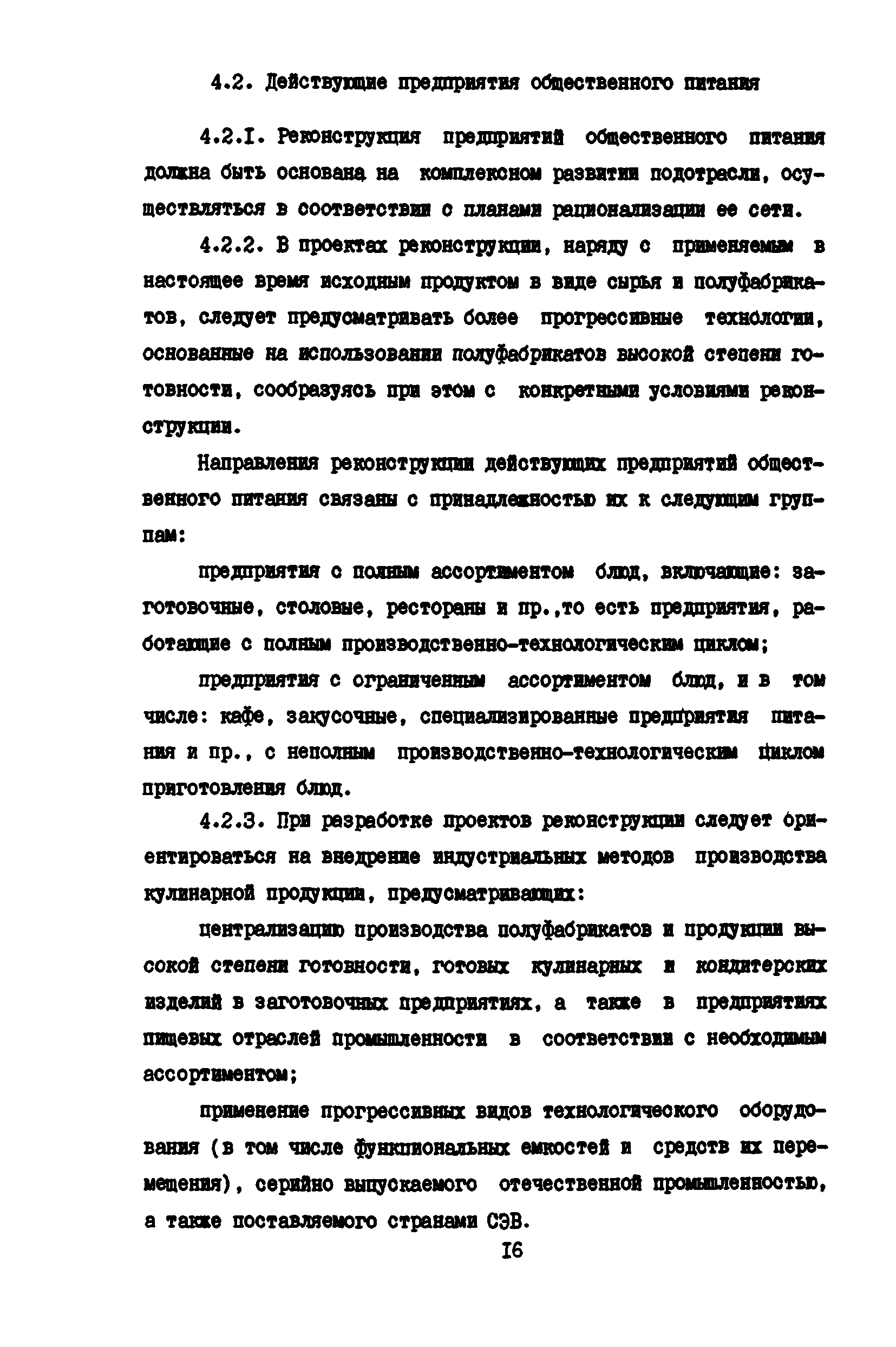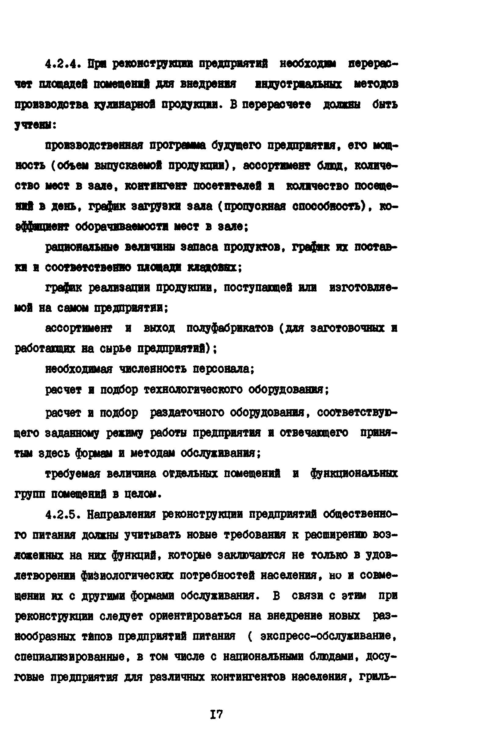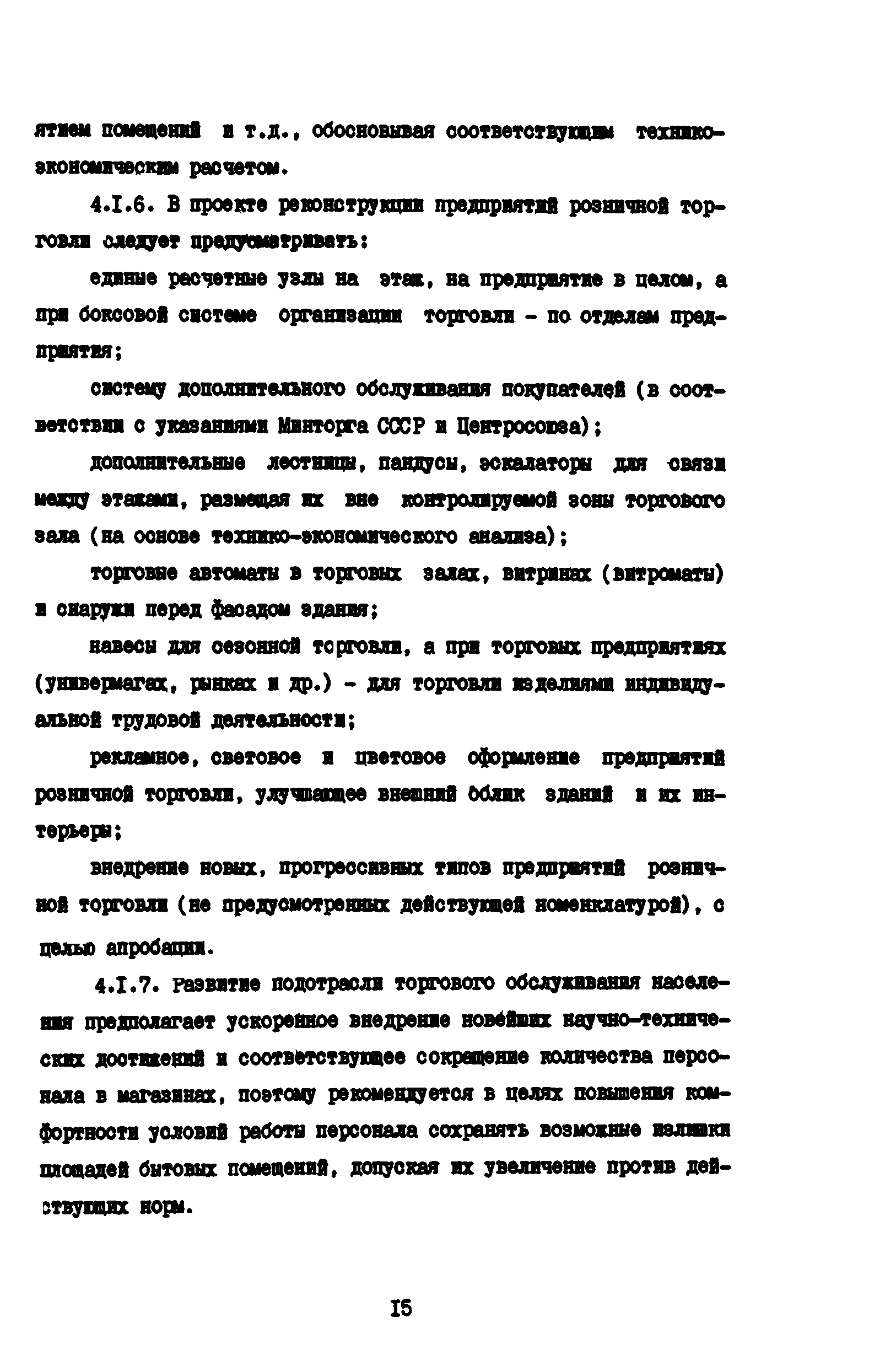 | Оглавление: | Введение 1. Цели и методы реконструкции действующих предприятий 2. Исходные материалы для разработки проектов реконструкции (предпроектные работы) 3. Общие положения по проектированию реконструкции 4. Дополнительные рекомендации по проектированию реконструкции 5. Оценка экономической эффективности капитальных вложений в реконструкцию действующих торгово-бытовых предприятий Приложение. Иллюстративные материалы о возможной реконструкции действующих торгово-бытовых предприятий |