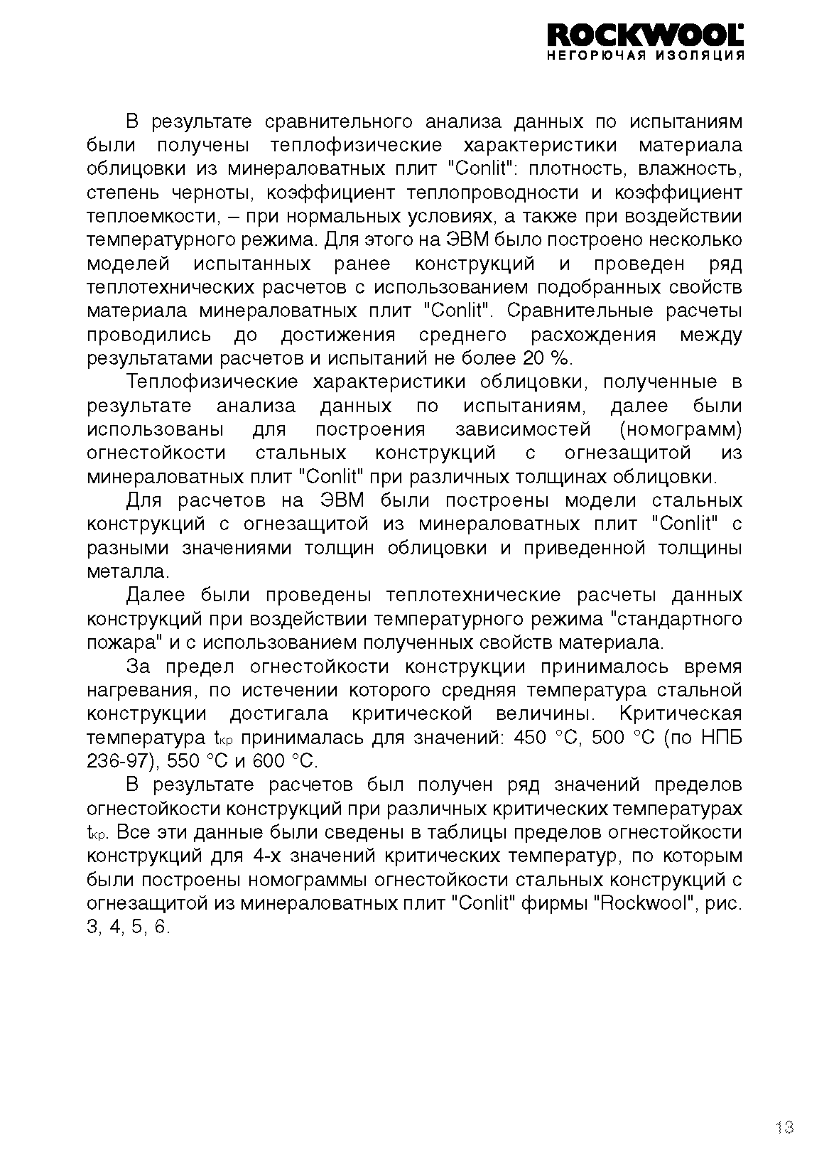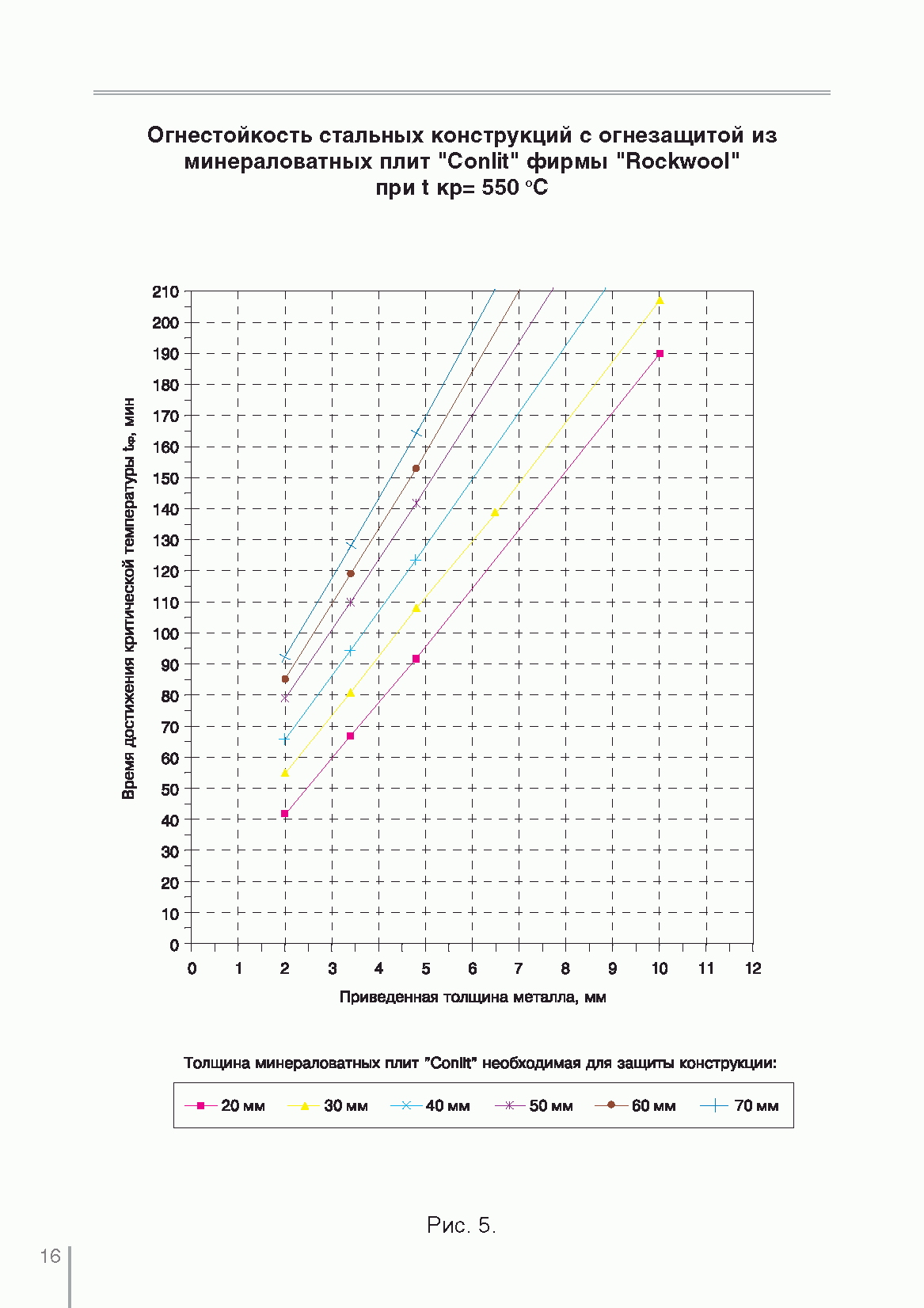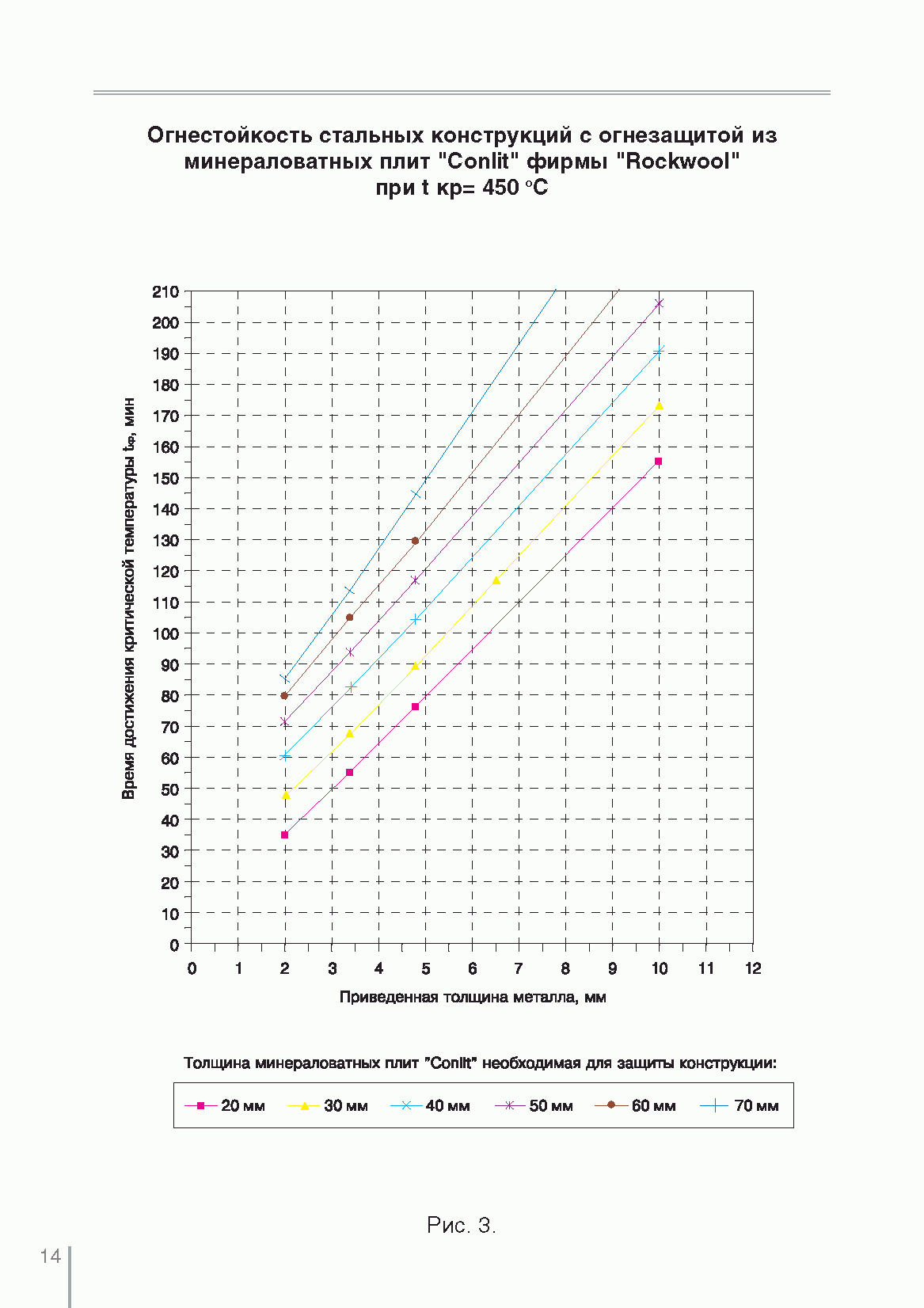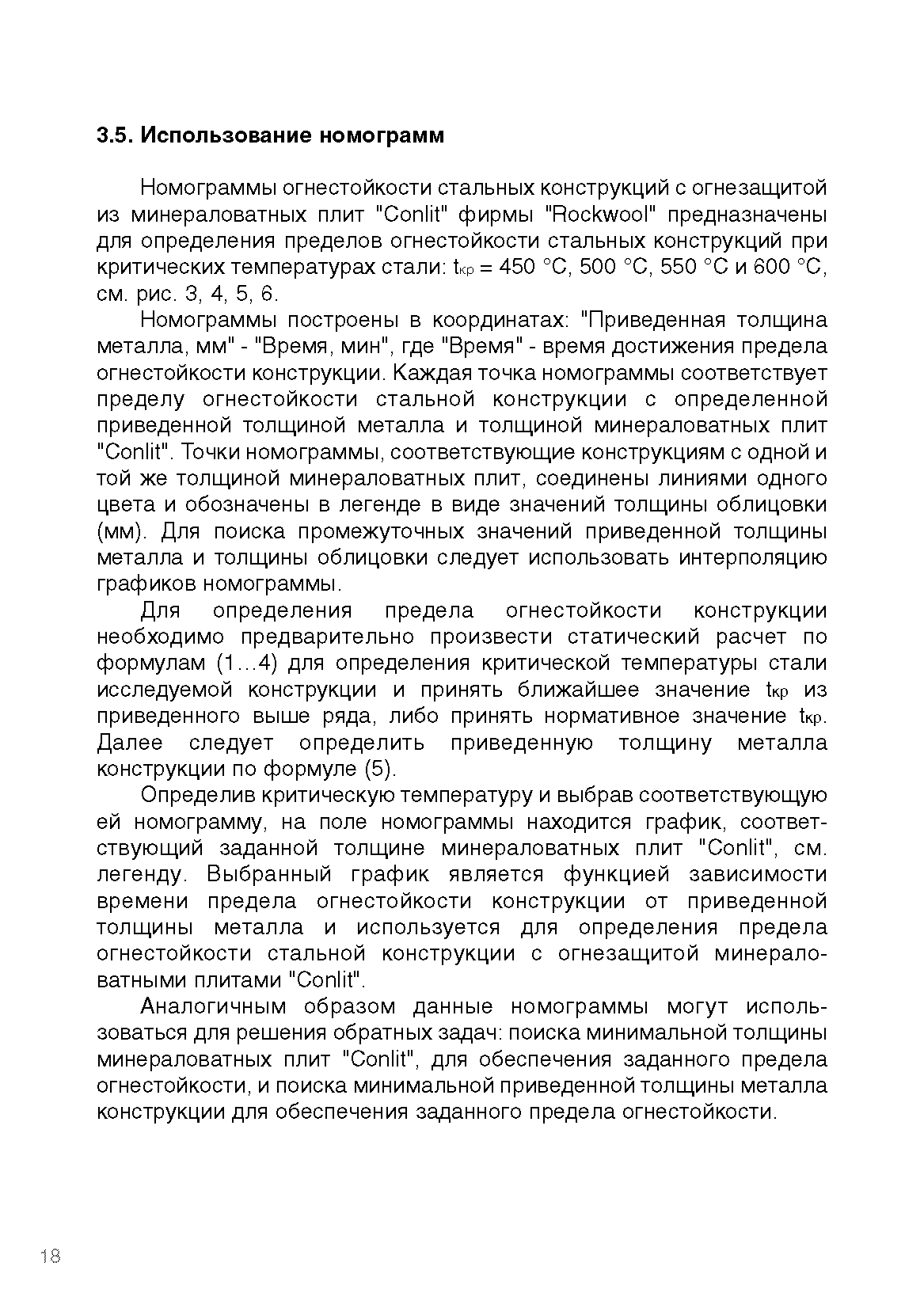 | Оглавление: | Введение 1. Общие положения 2. Статический расчет 3. Номограммы огнестойкости стальных конструкций с огнезащитой минераловатными плитами "Conlit" 4. Пример расчета предела огнестойкости стальной колонны с огнезащитой минераловатными плитами "Conlit" Приложение. Общие положения теплотехнического расчета стальных конструкций с огнезащитой |