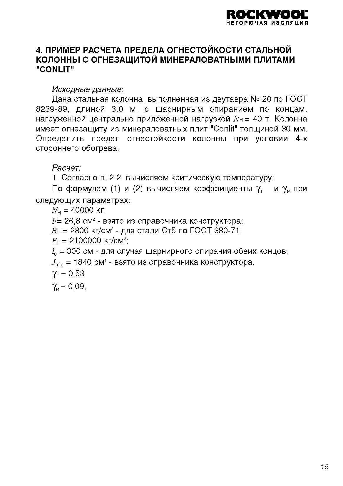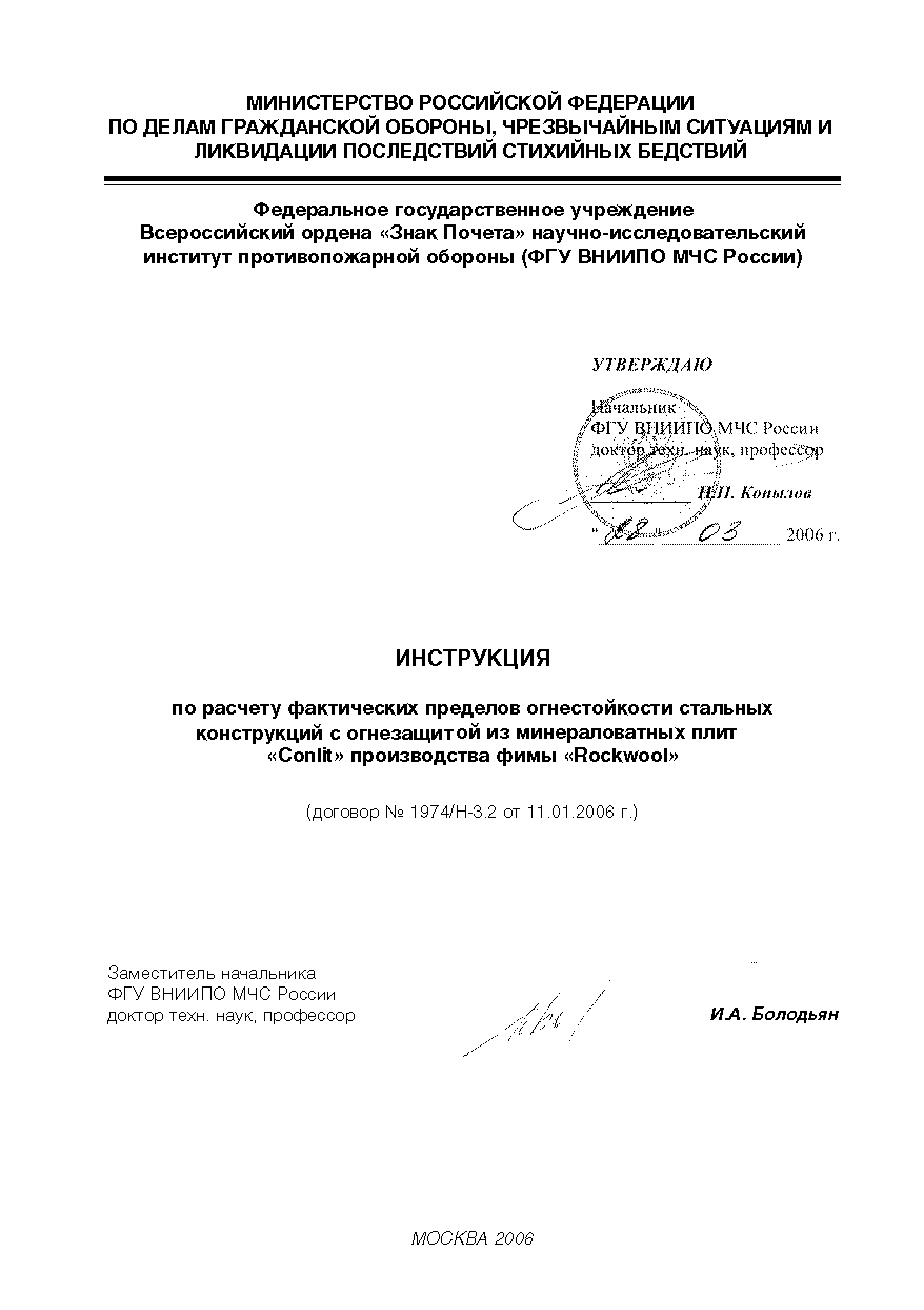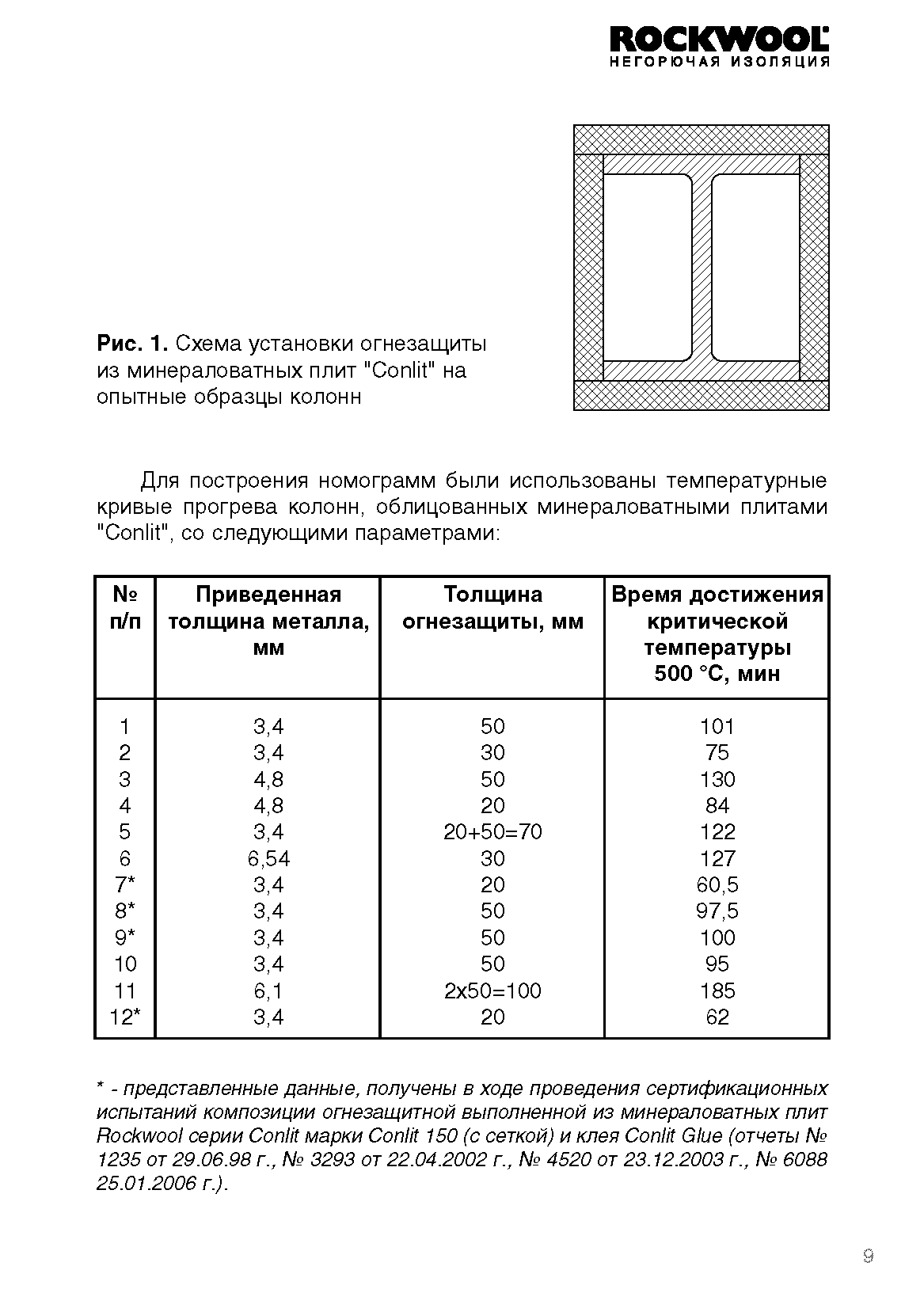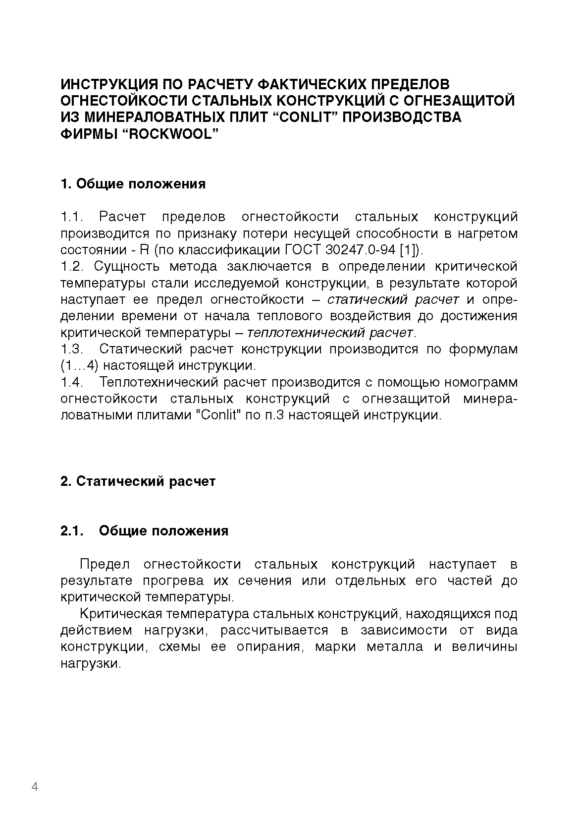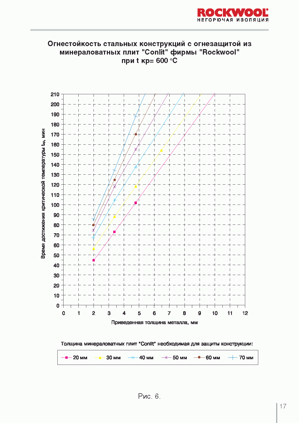 | Оглавление: | Введение 1. Общие положения 2. Статический расчет 3. Номограммы огнестойкости стальных конструкций с огнезащитой минераловатными плитами "Conlit" 4. Пример расчета предела огнестойкости стальной колонны с огнезащитой минераловатными плитами "Conlit" Приложение. Общие положения теплотехнического расчета стальных конструкций с огнезащитой |