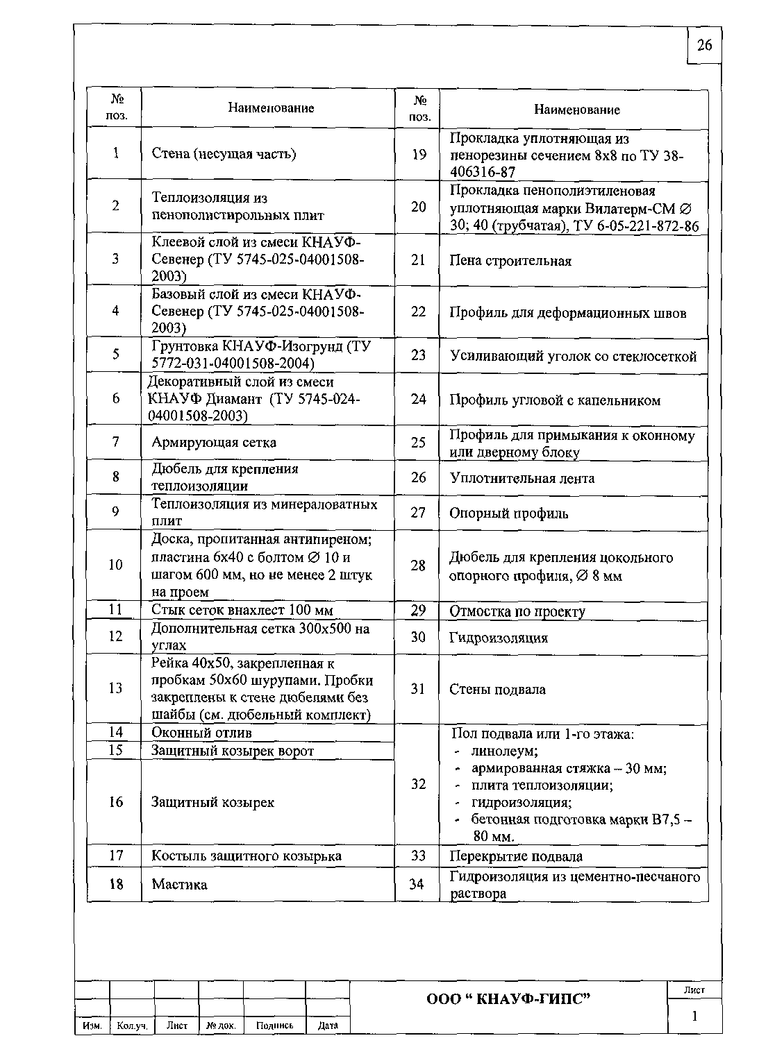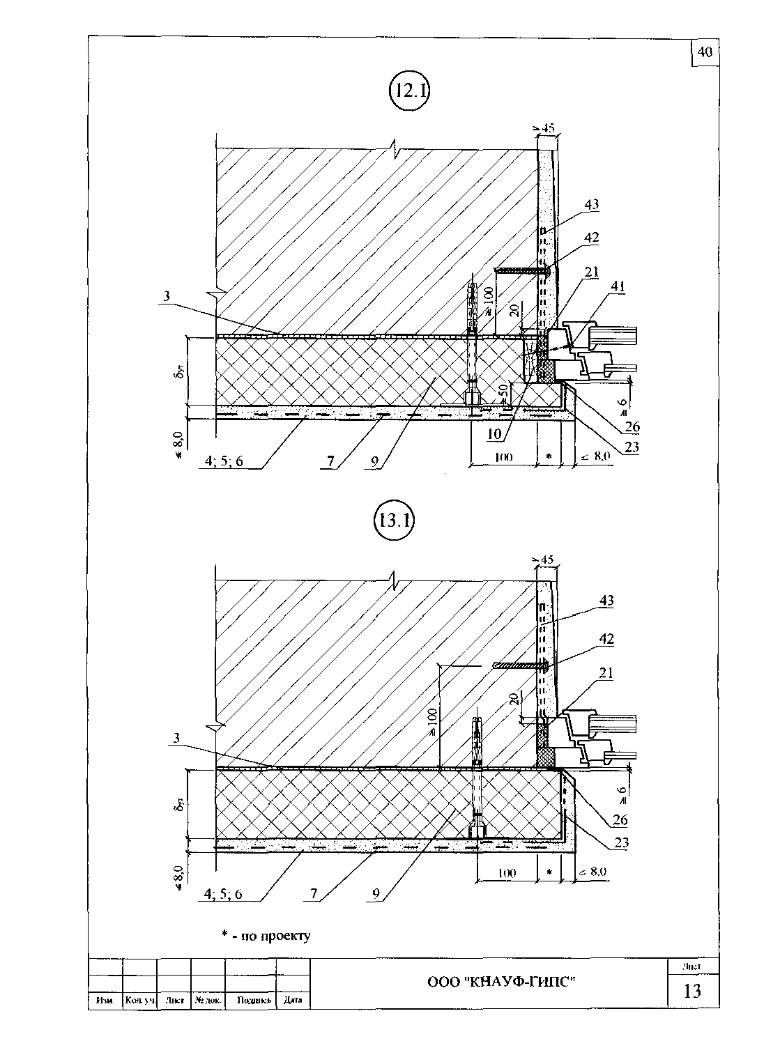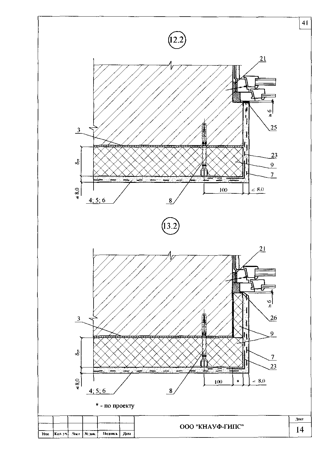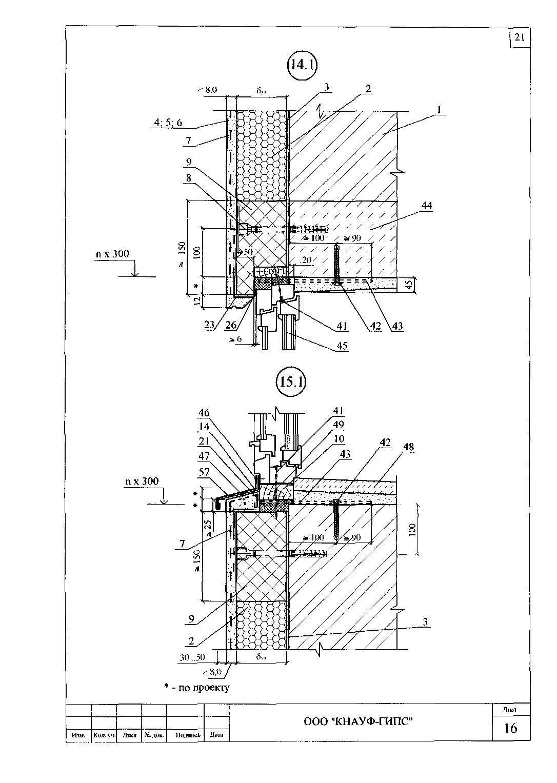 Альбом технических решений. Системы наружной теплоизоляции фасадов зданий "КНАУФ-Теплая стена" I и "КНАУФ-Теплая стена"II| Статус: | действует | | Название рус.: | Альбом технических решений. Системы наружной теплоизоляции фасадов зданий "КНАУФ-Теплая стена" I и "КНАУФ-Теплая стена"II | | Дата добавления в базу: | 01.09.2013 | | Дата актуализации: | 01.01.2021 | | Оглавление: | 1. Часть 1:Узлы системы "КНАУФ-Теплая стена" I с теплоизоляцией из пенополистирола 2. Часть 2:Узлы системы "КНАУФ-Теплая стена"II с теплоизоляцией из минераловатных плит 3. Схемы установки дюбелей | | Нормативные ссылки: | |