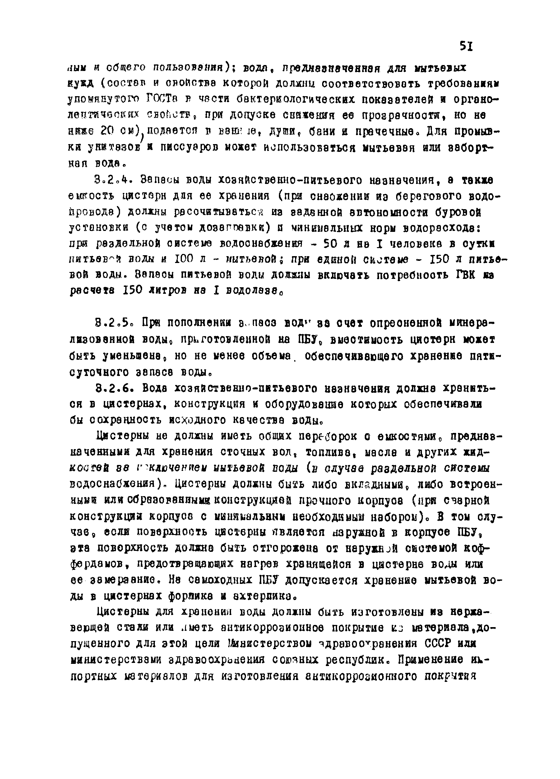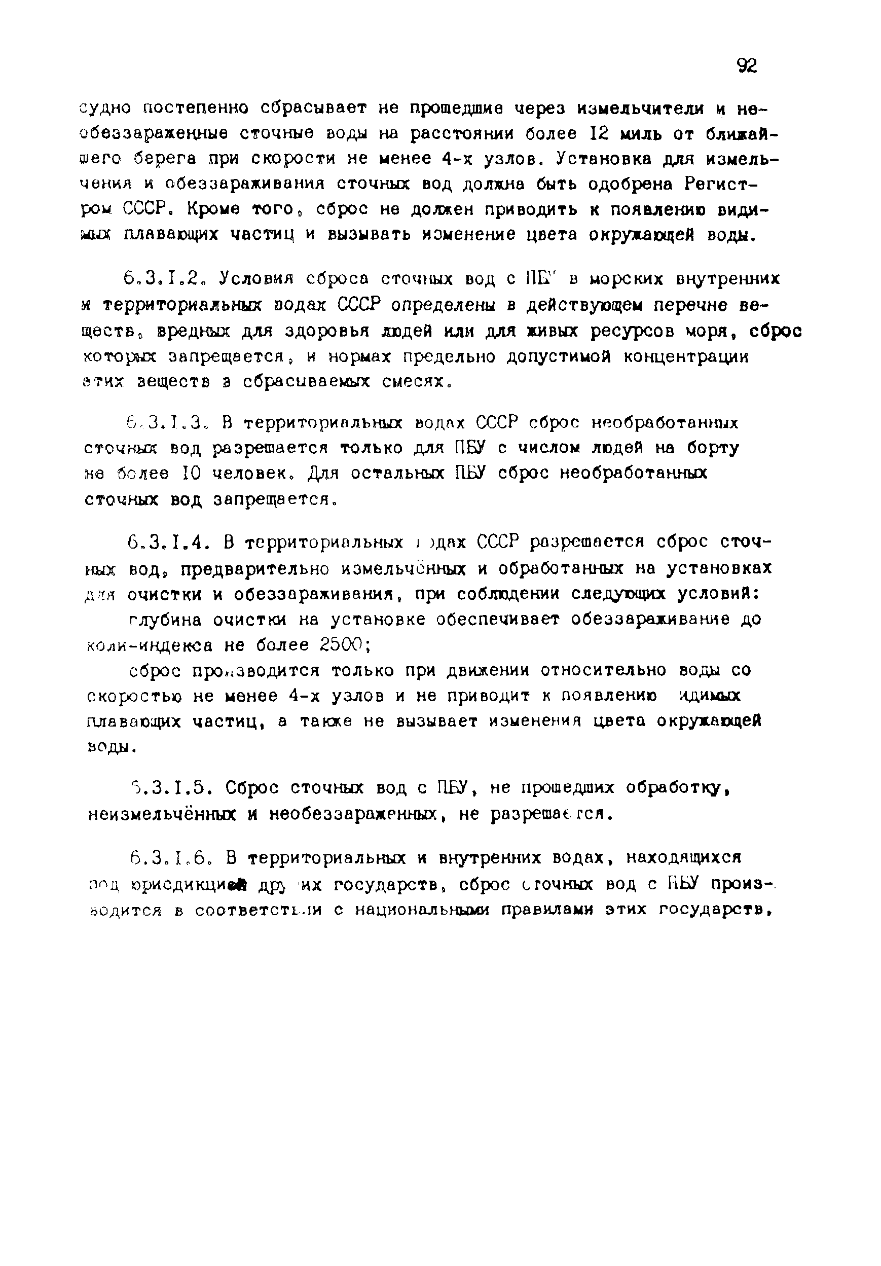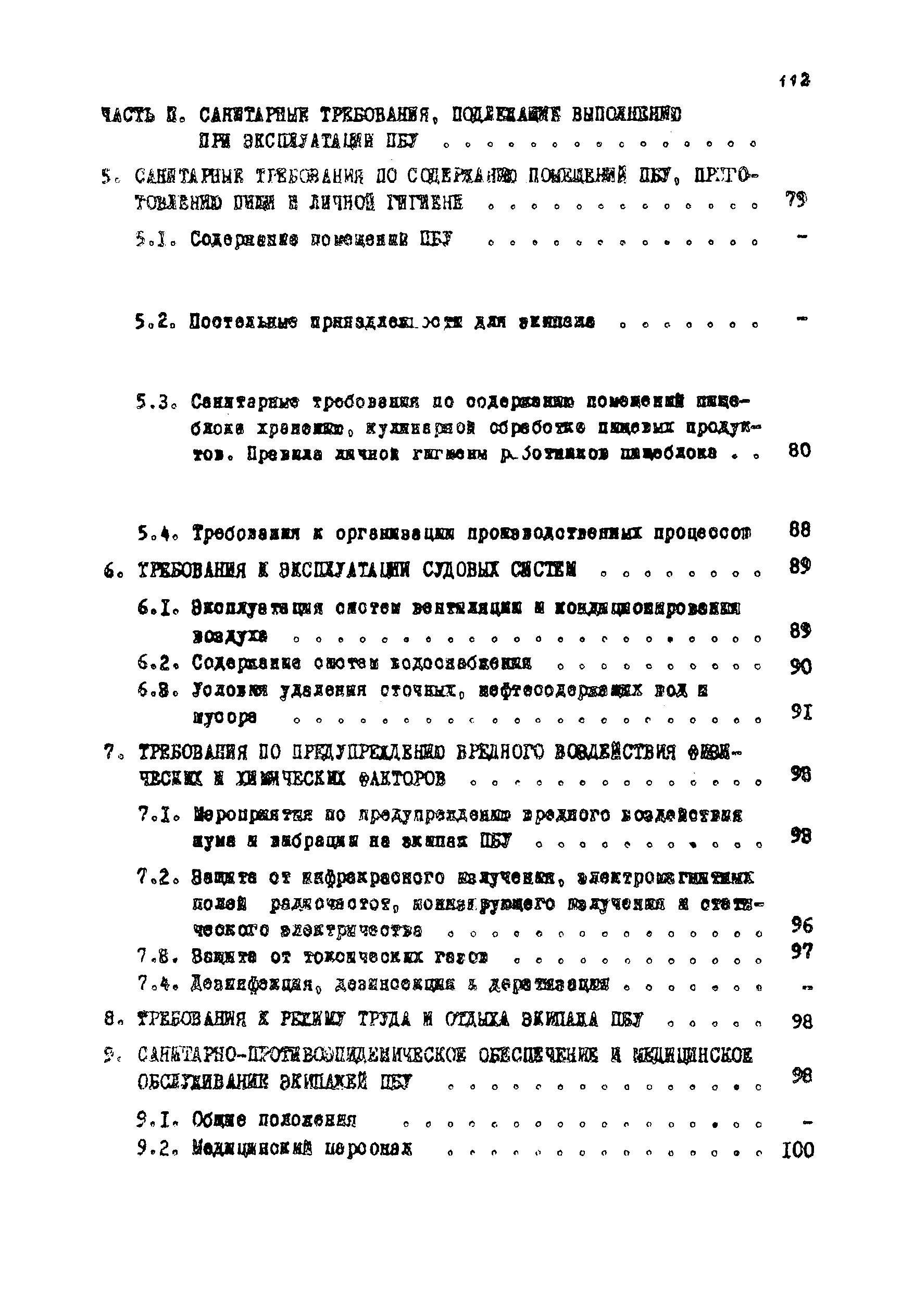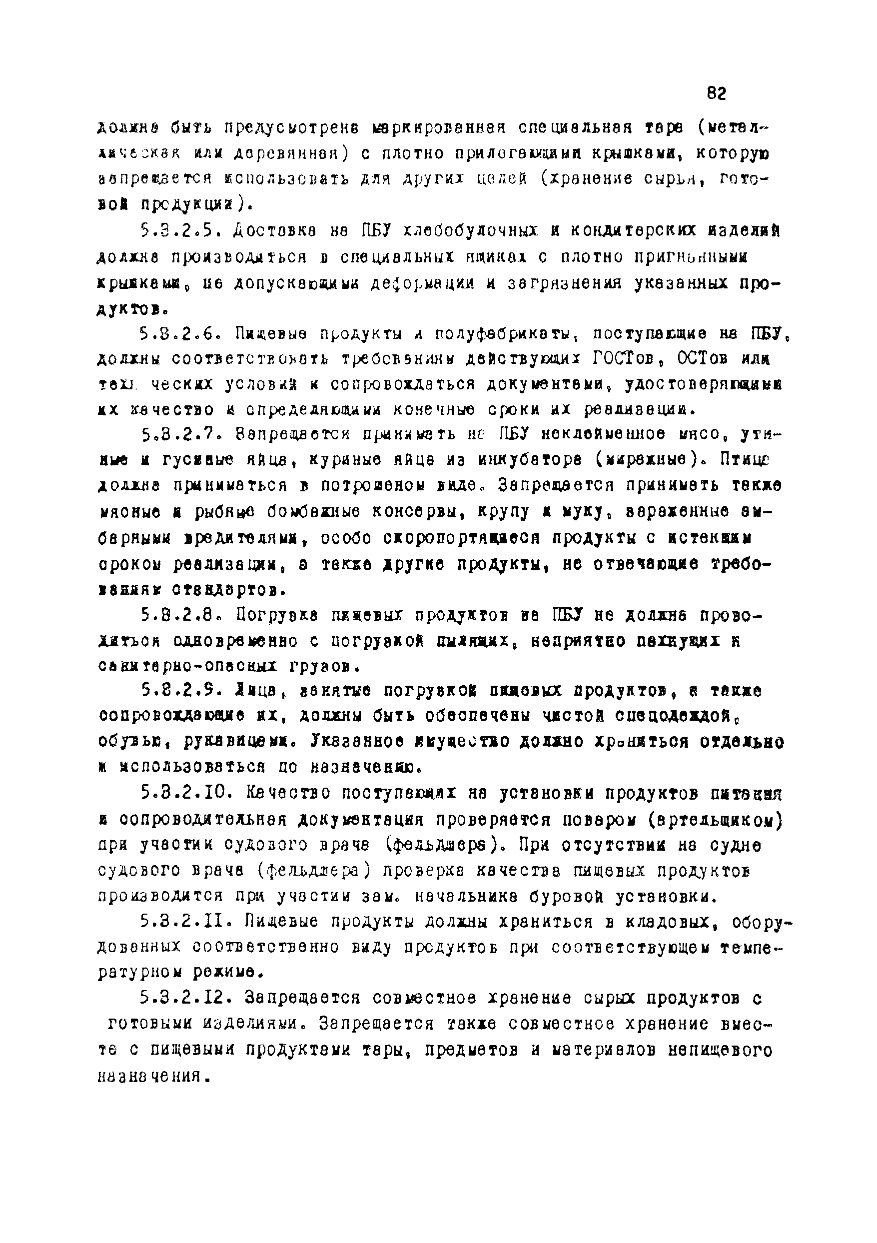 Санитарные правила для плавучих буровых установок| Статус: | отменен в рф | | Название рус.: | Санитарные правила для плавучих буровых установок | | Дата добавления в базу: | 01.09.2013 | | Дата актуализации: | 01.01.2021 | | Дата введения: | 01.01.1987 | | Дата окончания срока действия: | 29.04.2020 | | Область применения: | Правила устанавливают основные санитарно-гигиенические требования по устройству и оборудованию помещений, систем технологического комплекса при проектировании, строительстве, переоборудовании и ремонте плавучих буровых установок, предназначенных для выполнения буровых работ с целью разведки или добычи полезных ресурсов морского дна, а также требования по содержанию ПБУ при эксплуатации в целях создания благоприятных условий для труда, быта и отдыха экипажа, охраны окружающей среды. Действие Правил распространяется на самоходные и несамоходные ПБУ. На все остальные суда Мингазпрома распространяется действие "Санитарных правил для морских судов СССР", № 2641-82. | | Оглавление: | 1. Общие положения 1.1. Назначение и область применения Правил 1.2. Ответственность и контроль за выполнением требований Правил 1.3. Категория ПБУ 1.4. Определения и пояснения Часть 1. Требования к проектированию, строительству, переоборудованию и ремонту ПБУ 2. Помещения ПБУ 2.1. Общие положения 2.2. Жилые помещения 2.3. Общественные помещения 2.4. Санитарно-бытовые помещения 2.5. Санитарно-гигиенические помещения 2.6. Помещения медицинского назначения 2.7. Помещения пищевого блока и продовольственных кладовых 2.8. Служебные помещения 2.9. Помещения энергетических отделений 2.10. Помещения технологического комплекса 3. Системы ПБУ 3.1. Системы отопления, вентиляции и кондиционирования воздуха 3.2. Системы водоснабжения 3.3. Сточные системы 3.4. Устройства для сбора, обработки и удаления мусора 3.5. Система нефтесодержащих вод 3.6. Освещение 4. Защита от вредного воздействия физических и химических факторов 4.1. Защита от вредного воздействия шума и вибрации 4.2. Защита от инфракрасного излучения 4.3. Защита от электромагнитных полей 4.4. Защита от ионизирующих излучений 4.5. Требования к синтетическим полимерным материалам Часть 2. Санитарные требования, подлежащие выполнению при эксплуатации ПБУ 5. Санитарные требования по содержанию помещений ПБУ, приготовлению пищи и личной гигиене 5.1. Содержание помещений ПБУ 5.2. Постельные принадлежности для экипажа 5.3. Санитарные требования по содержанию помещений пищеблока, хранению, кулинарной обработке пищевых продуктов. Правила личной гигиены работников пищеблока 5.4. Требования к организации производственных процессов 6. Требования к эксплуатации судовых систем 6.1. Эксплуатация систем вентиляции и кондиционирования воздуха 6.2. Содержание систем водоснабжения 6.3. Условия удаления сточных, нефтесодержащих вод и мусора 7. Требования по предупреждению вредного воздействия физических и химических факторов 7.1. Мероприятия по предупреждению вредного воздействия шума и вибрации на экипаж ПБУ 7.2. Защита от инфракрасного излучения, электромагнитных полей радиочастот, ионизирующего излучения и статического электричества 7.3. Защита от токсических газов 7.4. Дезинфекция, дезинсекция и дератизация 8. Требования к режиму труда и отдыха экипажа ПБУ 9. Санитарно-противоэпидемическое обеспечение и медицинское обслуживание экипажей ПБУ 9.1. Общие положения 9.2. М