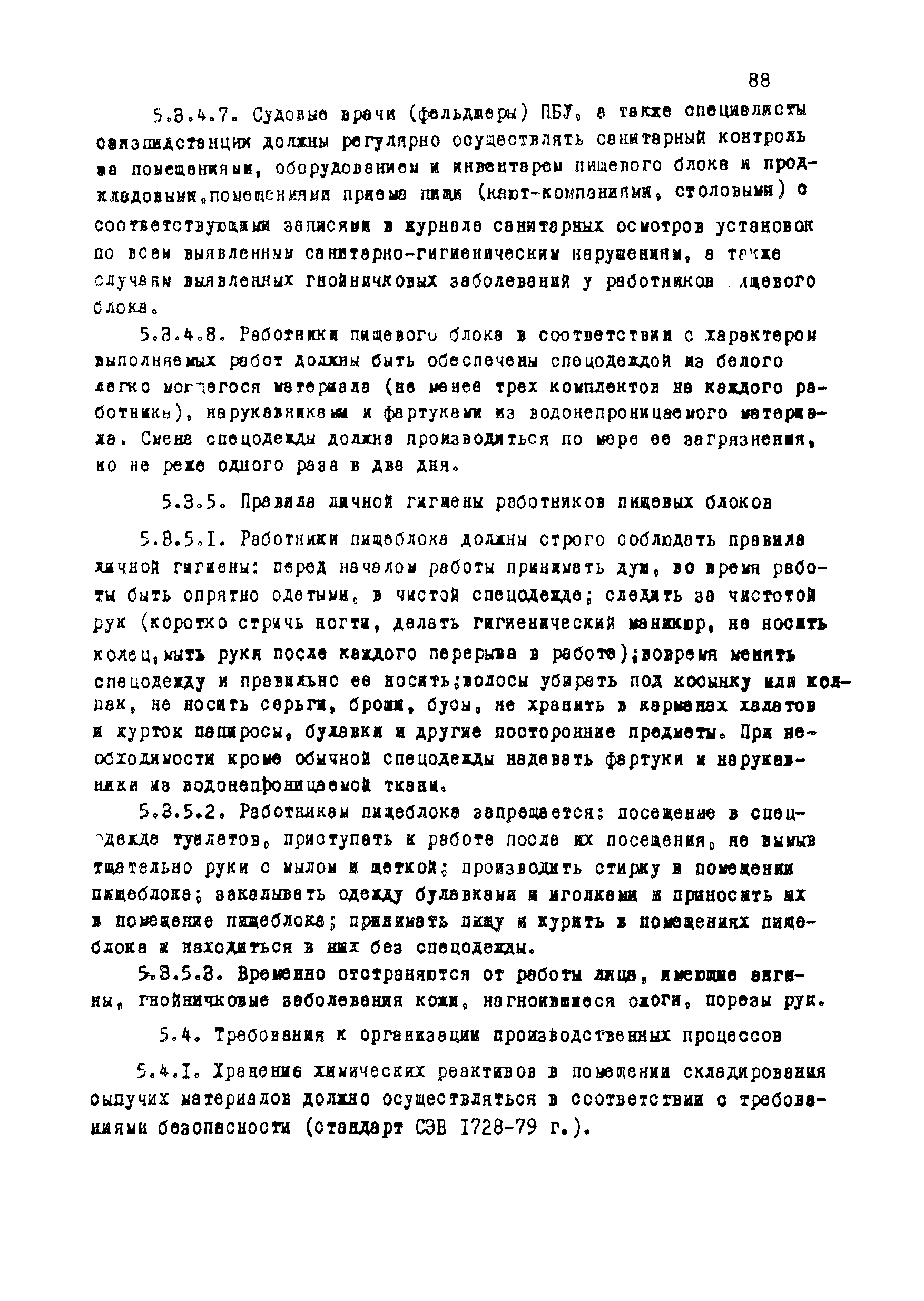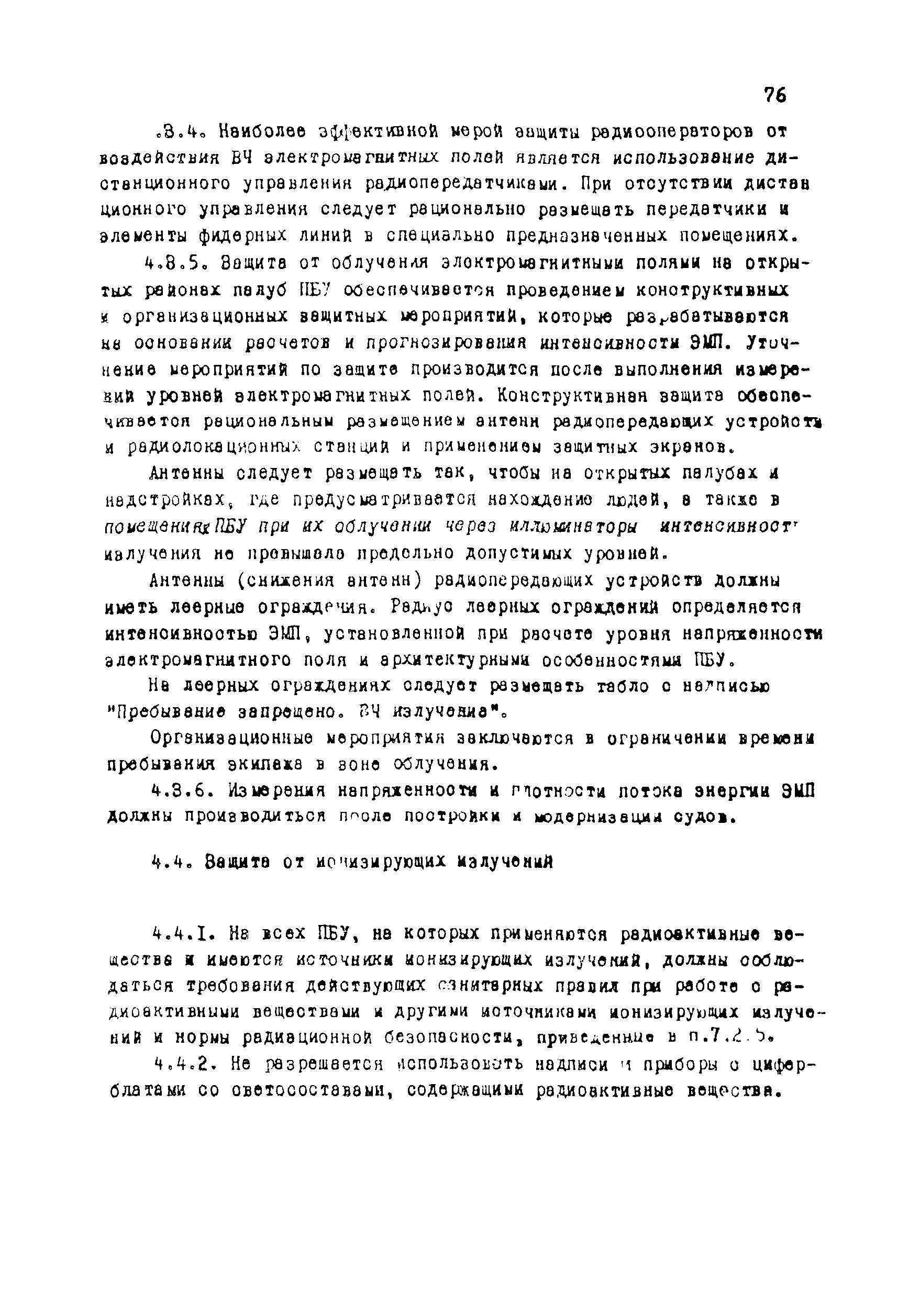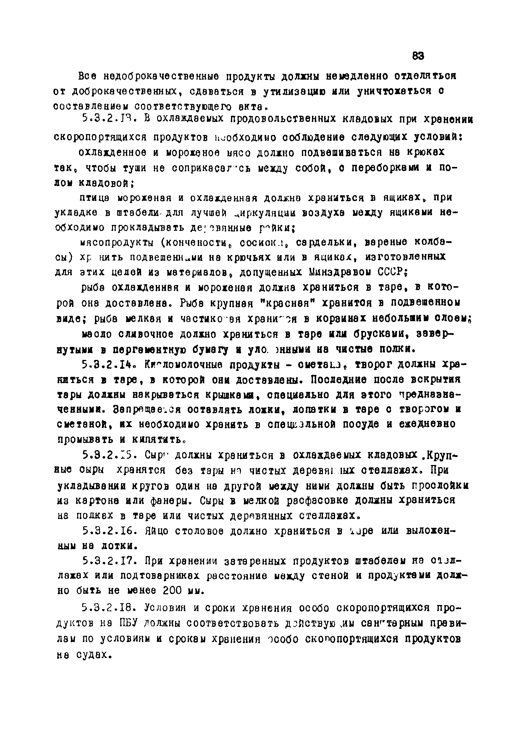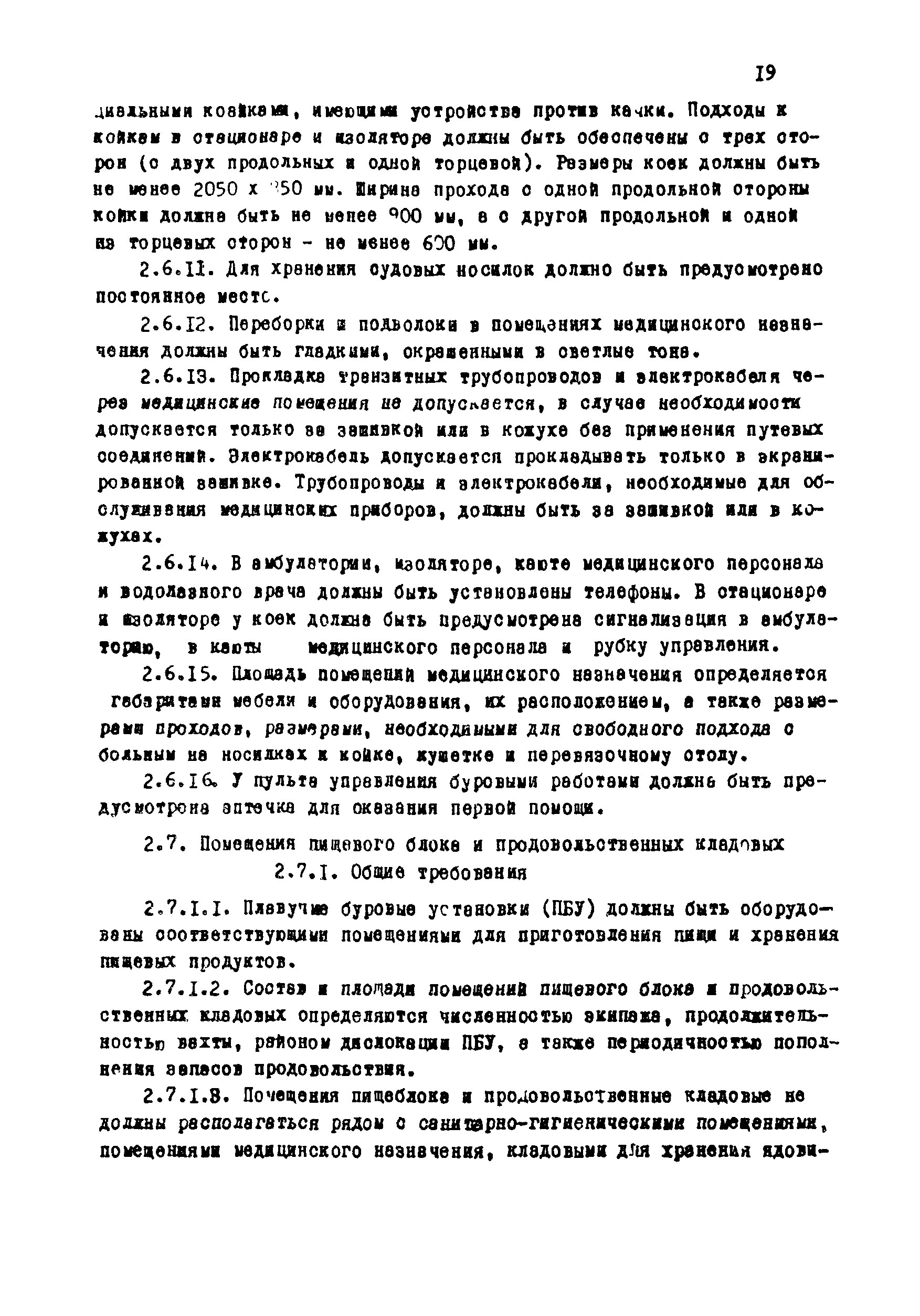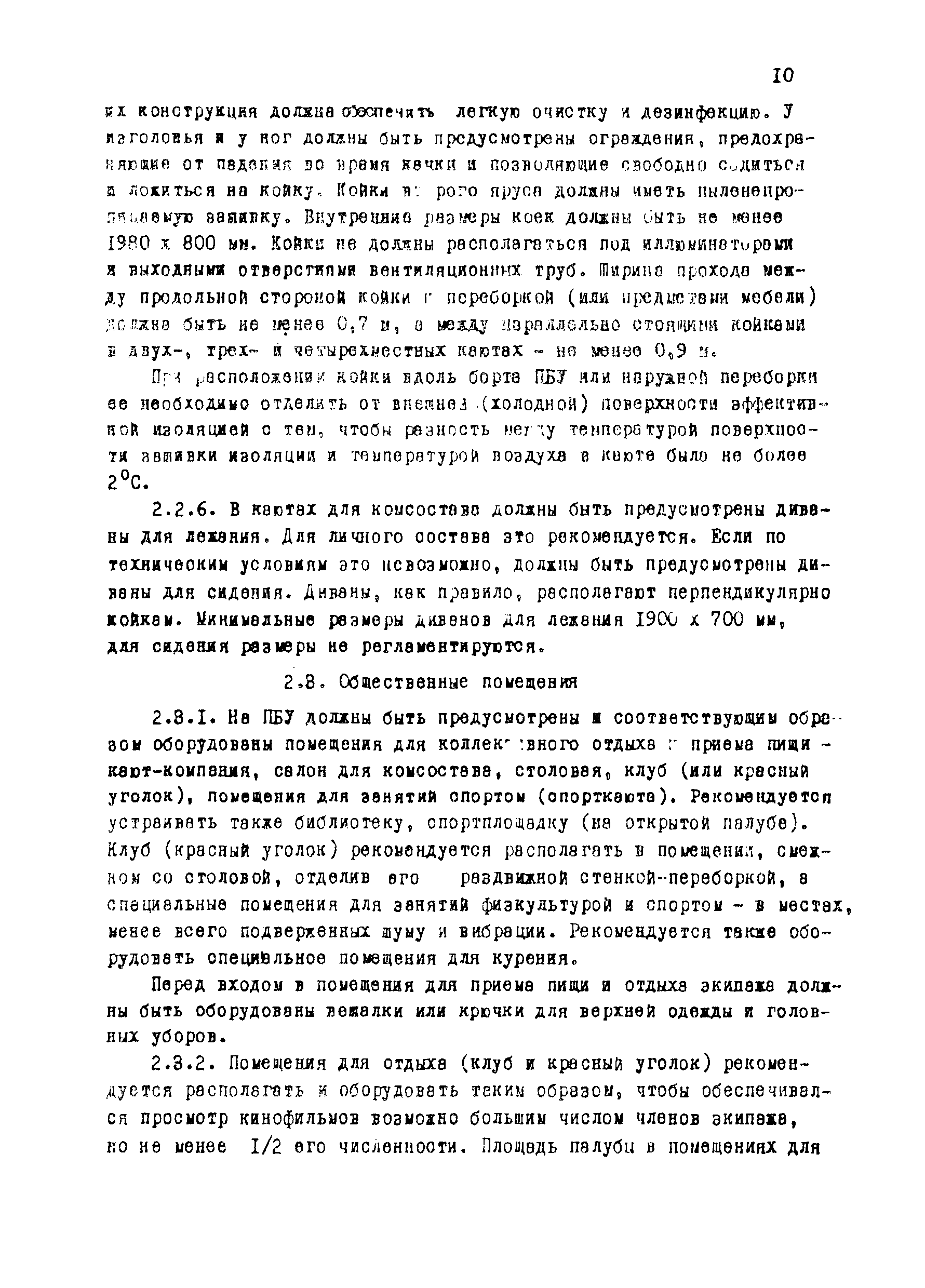 Санитарные правила для плавучих буровых установок| Статус: | отменен в рф | | Название рус.: | Санитарные правила для плавучих буровых установок | | Дата добавления в базу: | 01.09.2013 | | Дата актуализации: | 01.01.2021 | | Дата введения: | 01.01.1987 | | Дата окончания срока действия: | 29.04.2020 | | Область применения: | Правила устанавливают основные санитарно-гигиенические требования по устройству и оборудованию помещений, систем технологического комплекса при проектировании, строительстве, переоборудовании и ремонте плавучих буровых установок, предназначенных для выполнения буровых работ с целью разведки или добычи полезных ресурсов морского дна, а также требования по содержанию ПБУ при эксплуатации в целях создания благоприятных условий для труда, быта и отдыха экипажа, охраны окружающей среды. Действие Правил распространяется на самоходные и несамоходные ПБУ. На все остальные суда Мингазпрома распространяется действие "Санитарных правил для морских судов СССР", № 2641-82. | | Оглавление: | 1. Общие положения 1.1. Назначение и область применения Правил 1.2. Ответственность и контроль за выполнением требований Правил 1.3. Категория ПБУ 1.4. Определения и пояснения Часть 1. Требования к проектированию, строительству, переоборудованию и ремонту ПБУ 2. Помещения ПБУ 2.1. Общие положения 2.2. Жилые помещения 2.3. Общественные помещения 2.4. Санитарно-бытовые помещения 2.5. Санитарно-гигиенические помещения 2.6. Помещения медицинского назначения 2.7. Помещения пищевого блока и продовольственных кладовых 2.8. Служебные помещения 2.9. Помещения энергетических отделений 2.10. Помещения технологического комплекса 3. Системы ПБУ 3.1. Системы отопления, вентиляции и кондиционирования воздуха 3.2. Системы водоснабжения 3.3. Сточные системы 3.4. Устройства для сбора, обработки и удаления мусора 3.5. Система нефтесодержащих вод 3.6. Освещение 4. Защита от вредного воздействия физических и химических факторов 4.1. Защита от вредного воздействия шума и вибрации 4.2. Защита от инфракрасного излучения 4.3. Защита от электромагнитных полей 4.4. Защита от ионизирующих излучений 4.5. Требования к синтетическим полимерным материалам Часть 2. Санитарные требования, подлежащие выполнению при эксплуатации ПБУ 5. Санитарные требования по содержанию помещений ПБУ, приготовлению пищи и личной гигиене 5.1. Содержание помещений ПБУ 5.2. Постельные принадлежности для экипажа 5.3. Санитарные требования по содержанию помещений пищеблока, хранению, кулинарной обработке пищевых продуктов. Правила личной гигиены работников пищеблока 5.4. Требования к организации производственных процессов 6. Требования к эксплуатации судовых систем 6.1. Эксплуатация систем вентиляции и кондиционирования воздуха 6.2. Содержание систем водоснабжения 6.3. Условия удаления сточных, нефтесодержащих вод и мусора 7. Требования по предупреждению вредного воздействия физических и химических факторов 7.1. Мероприятия по предупреждению вредного воздействия шума и вибрации на экипаж ПБУ 7.2. Защита от инфракрасного излучения, электромагнитных полей радиочастот, ионизирующего излучения и статического электричества 7.3. Защита от токсических газов 7.4. Дезинфекция, дезинсекция и дератизация 8. Требования к режиму труда и отдыха экипажа ПБУ 9. Санитарно-противоэпидемическое обеспечение и медицинское обслуживание экипажей ПБУ 9.1. Общие положения 9.2. М