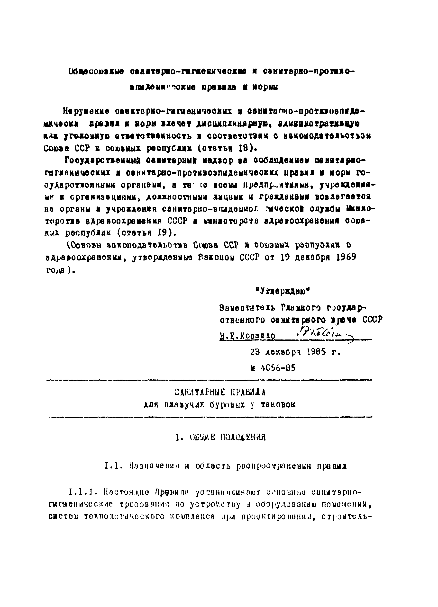 | | Утверждён: | 23.12.1985 Зам. Главного Государственного санитарного врача СССР (USSR Deputy Chief Public Health Officer 4056-85)