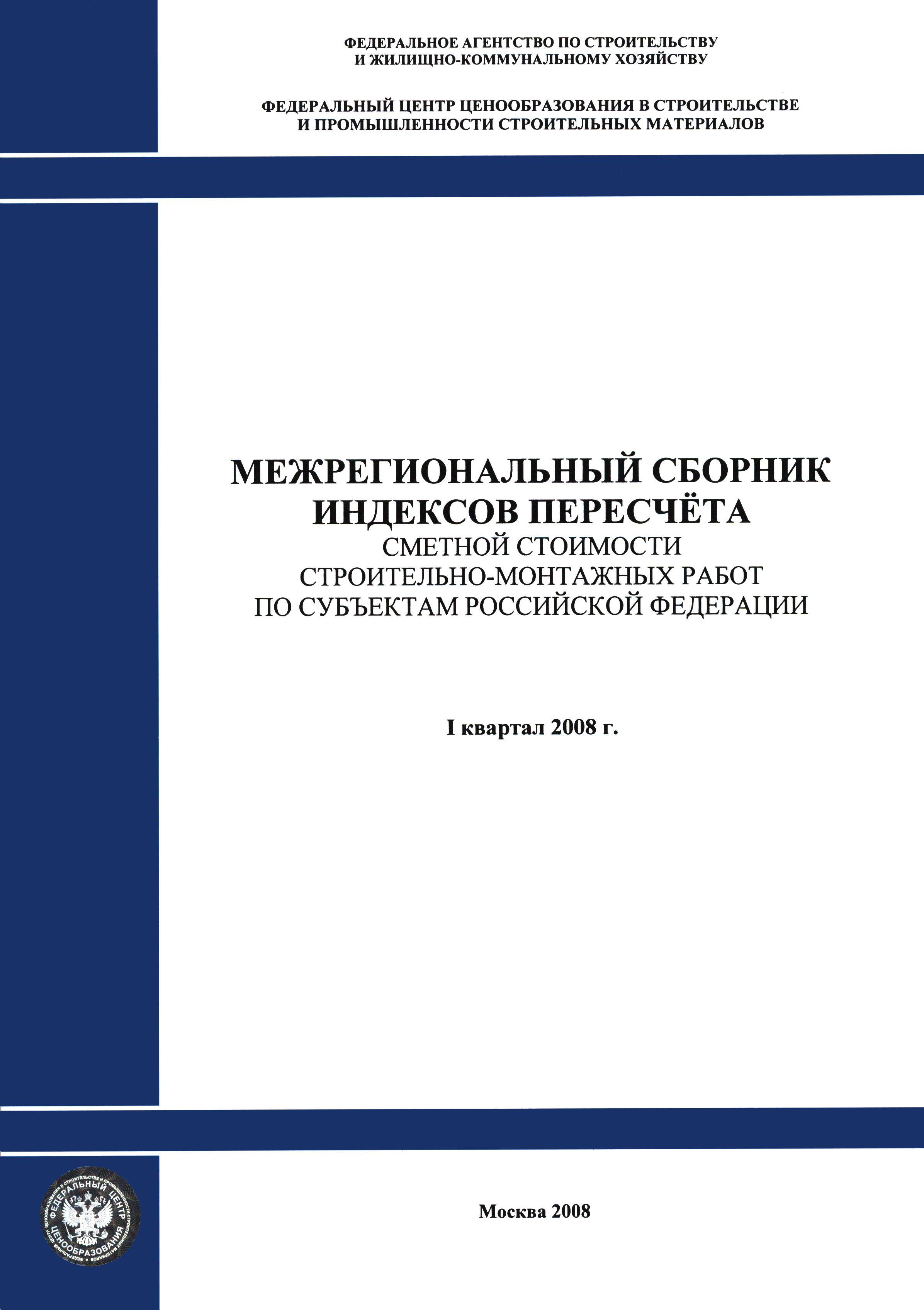 Скачать Межрегиональный сборник индексов пересчета сметной стоимости строительно-монтажных работ по субъектам Российской Федерации на I квартал 2008 г.Дата актуализации: 01.01.2021