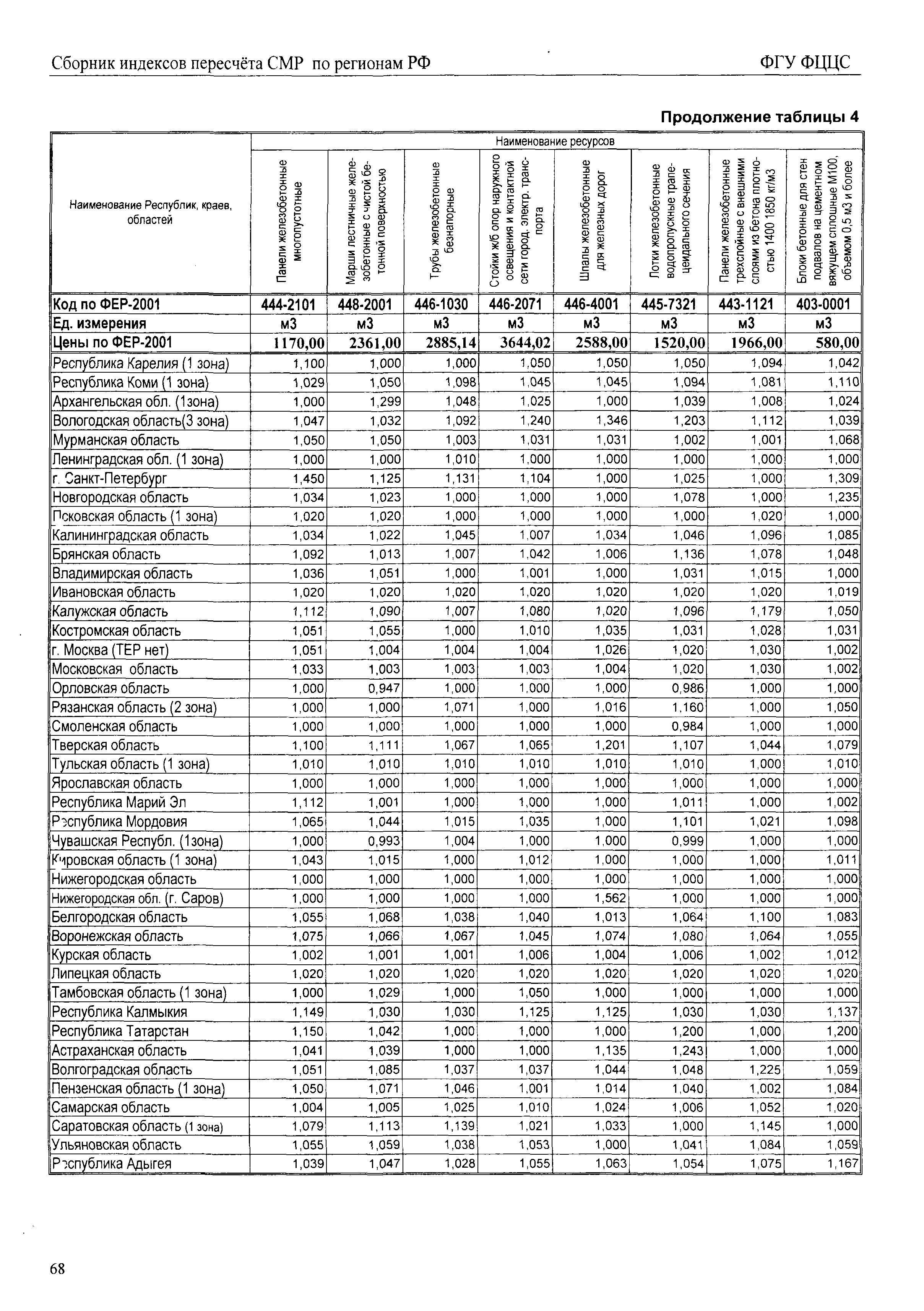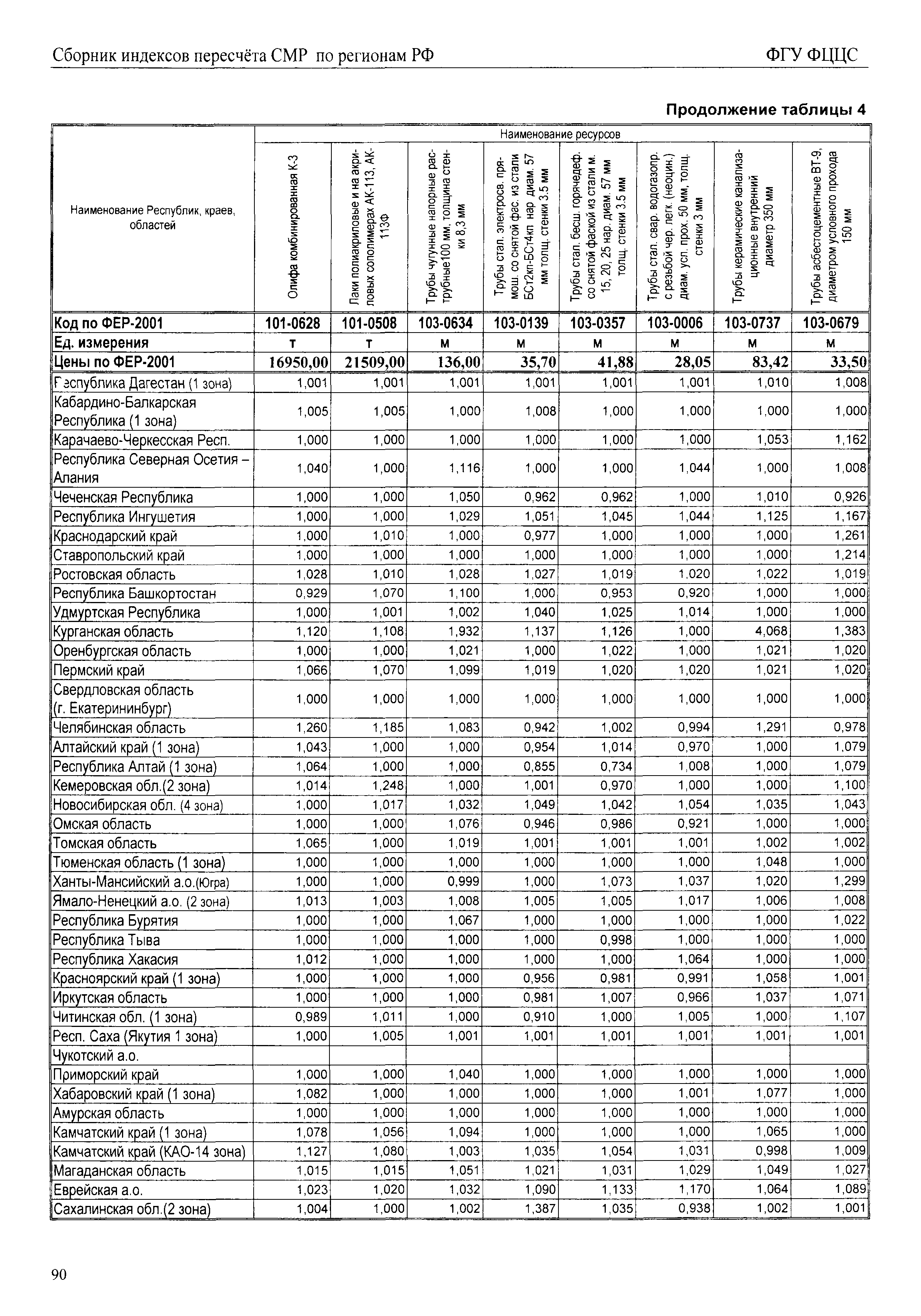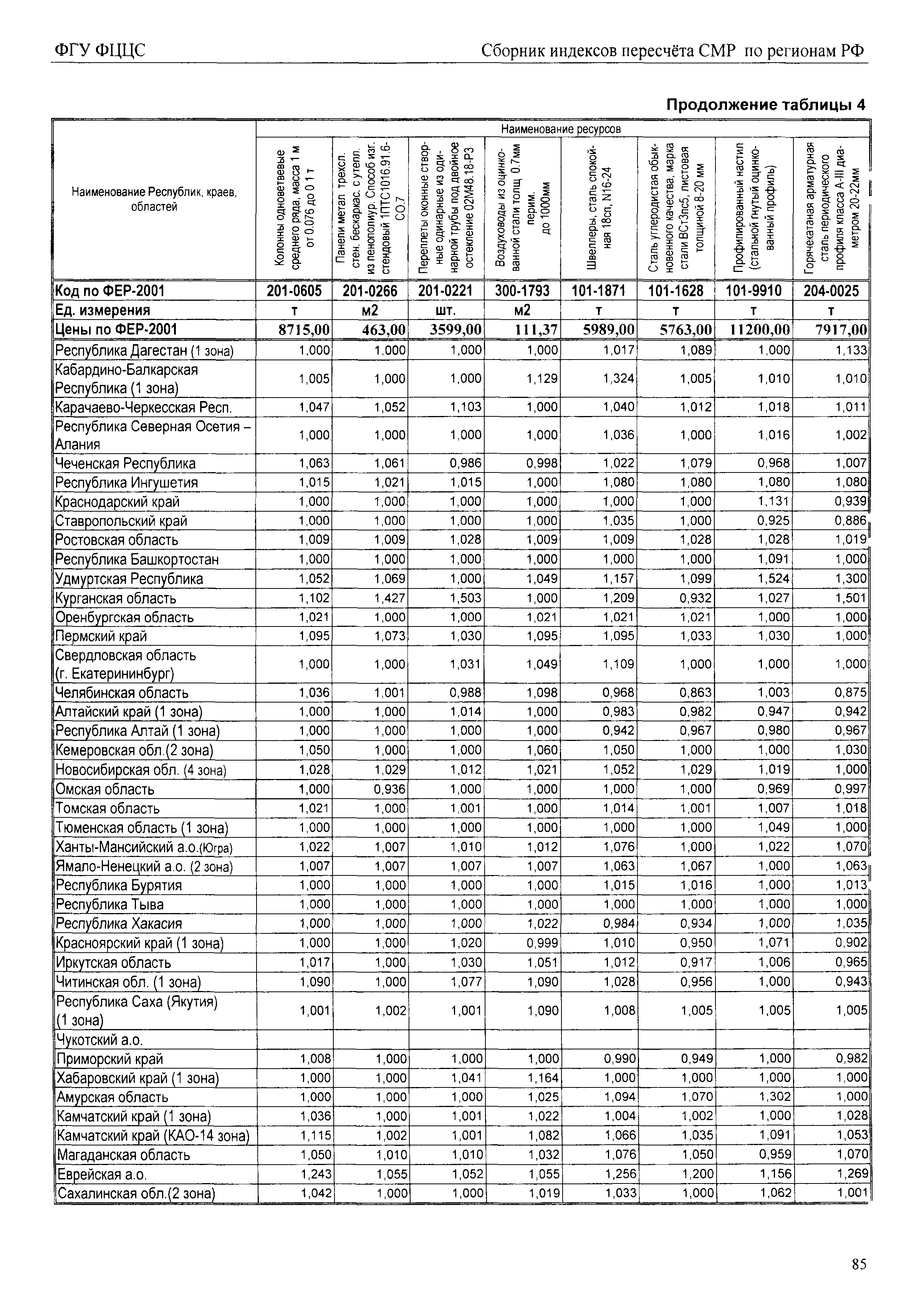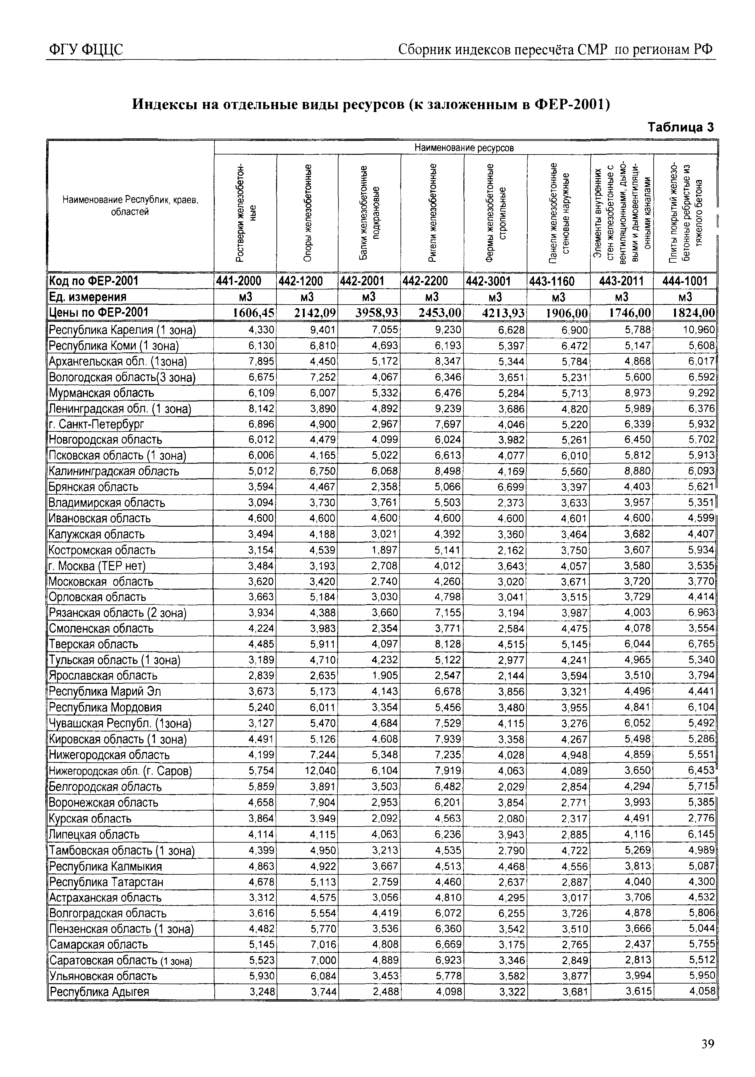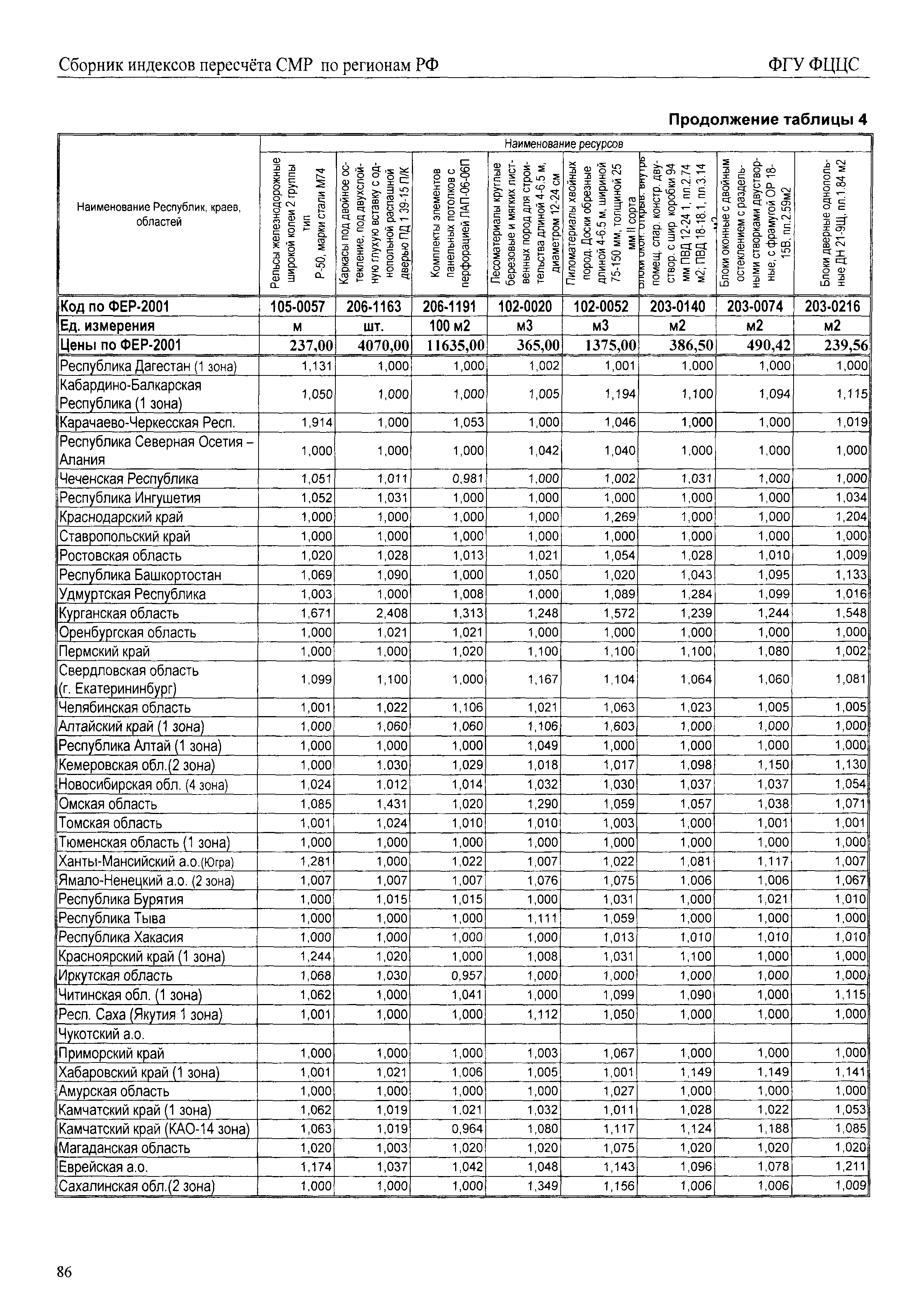 Межрегиональный сборник индексов пересчета сметной стоимости строительно-монтажных работ по субъектам Российской Федерации на I квартал 2008 г.| Статус: | не действует | | Название рус.: | Межрегиональный сборник индексов пересчета сметной стоимости строительно-монтажных работ по субъектам Российской Федерации на I квартал 2008 г. | | Дата добавления в базу: | 01.09.2013 | | Дата актуализации: | 01.09.2013 | | Область применения: | В сборнике приведены сводные таблицы текущих (I квартал 2008 г.) региональных цен на основные ресурсы, применяемые в строительстве, региональные индексы пересчета базисной стоимости строительно-монтажных работ, определяемой с использованием сборников новой сметно-нормативной базы (ФЕР-2001, ТЕР-2001), в территориальный текущий уровень. Индексы разработаны по единой методике, на основании отчетных данных региональных органов по ценообразованию в строительстве о стоимости строительных ресурсов в регионе. | | Оглавление: | Общая часть Техническая часть (к таблицам 1, 2, 3, 4) Цены на строительную продукцию в I квартале 2008г. Анализ роста индексов и стоимости 1 м2 по регионам РФ в I кв. 2008 г. Таблица А Расчетная стоимость 1 м2 общей площади жилья, индексы (без НДС) по регионам Российской Федерации на основании отчетных данных региональных органов по ценообразованию в строительстве за I квартал 2008 г. Таблица 1 Сметная стоимость строительных ресурсов (без НДС) в руб. Таблица 2 Индексы на отдельные виды ресурсов (к заложенным в ФЕР-2001). Таблица 3 Индексы роста стоимости строительных ресурсов к предыдущему кварталу. Таблица 4 Региональные индексы к ФЕР-2001 по видам строительства (без НДС). Таблица 5 Индексы на технологическое оборудование за I квартал 2008 г. Индексы на прочие работы и затраты за I квартал 2008 г. |