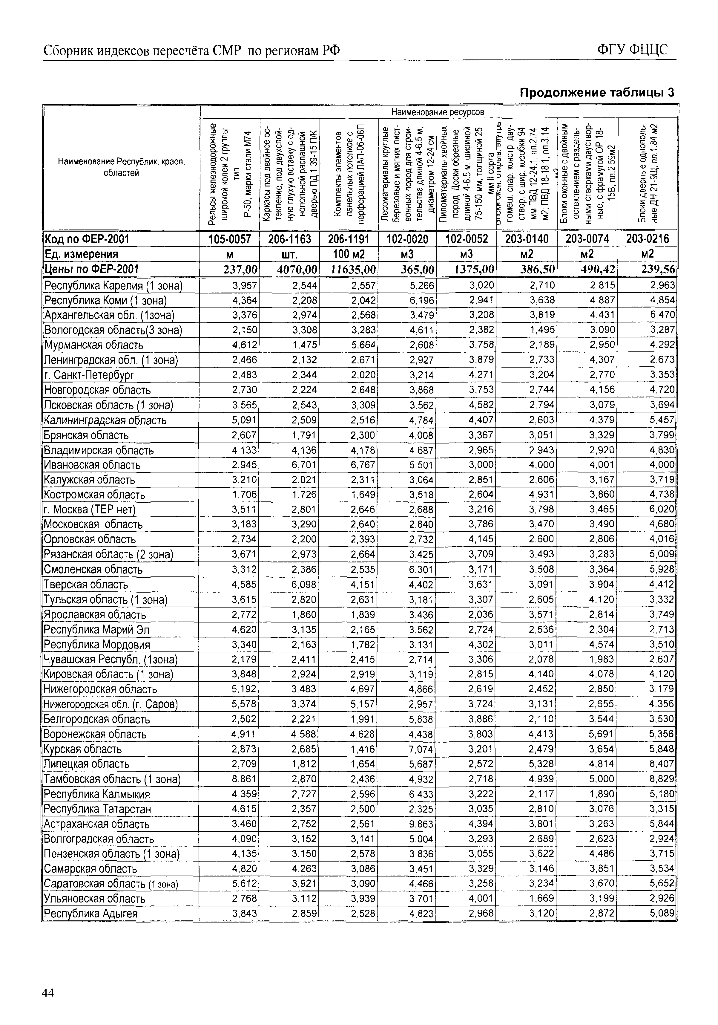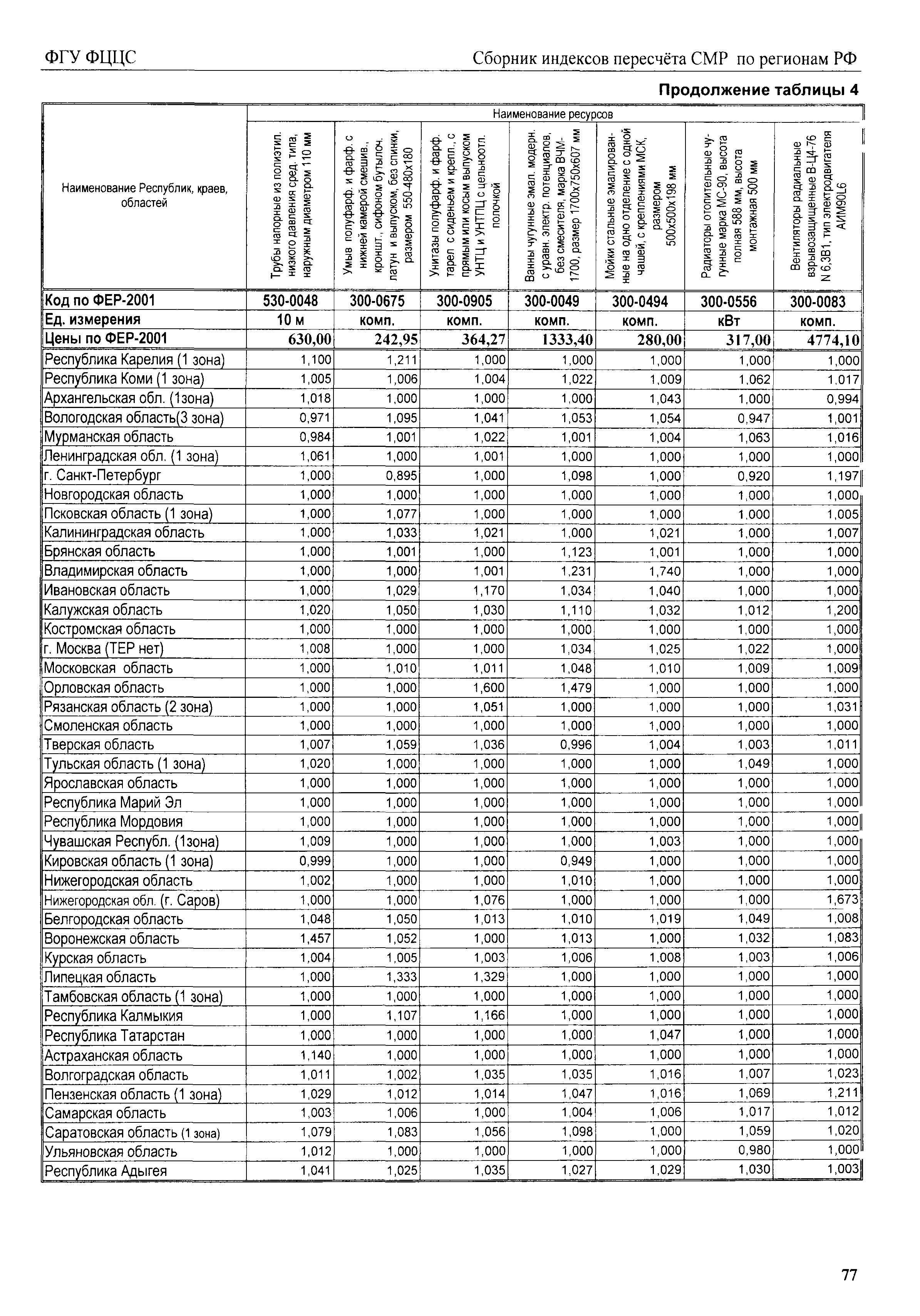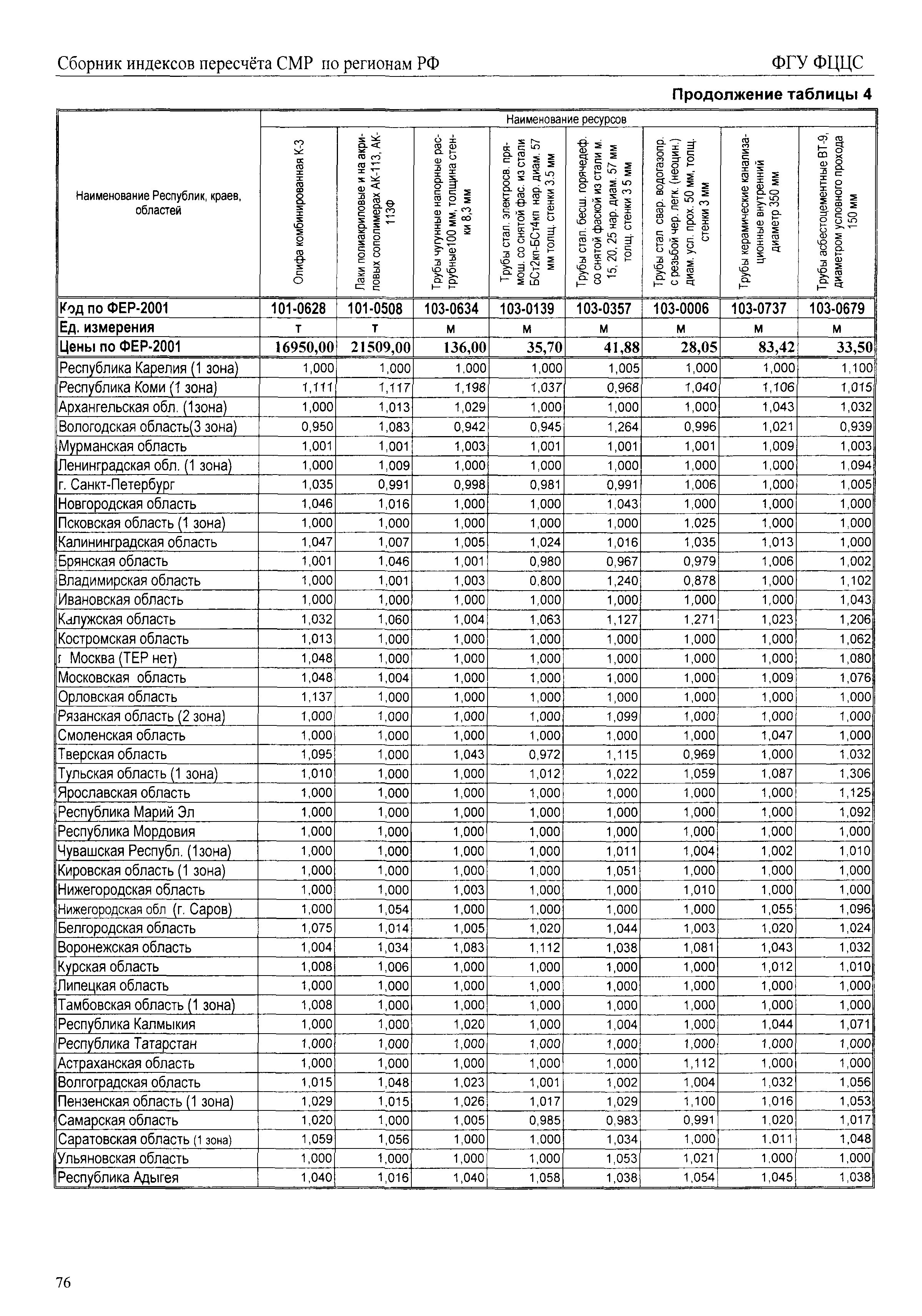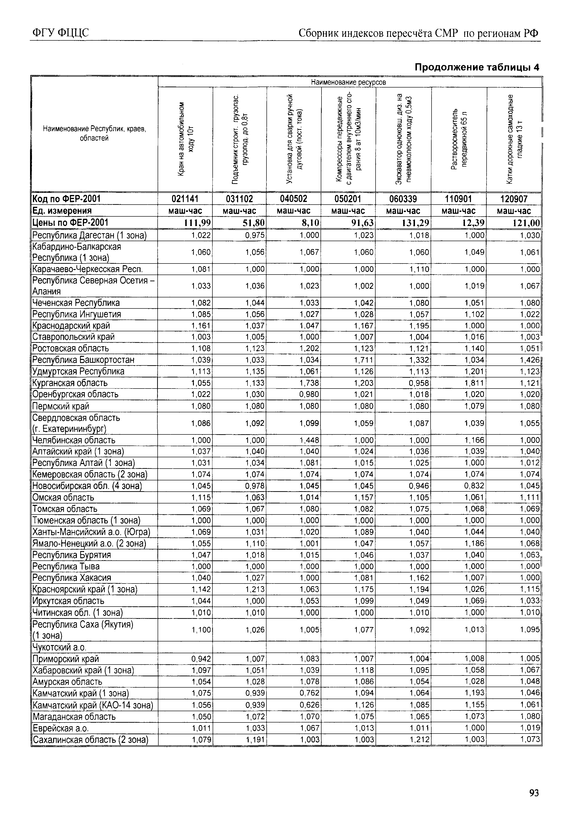 Межрегиональный сборник индексов пересчета сметной стоимости строительно-монтажных работ по субъектам Российской Федерации на I квартал 2008 г.| Статус: | не действует | | Название рус.: | Межрегиональный сборник индексов пересчета сметной стоимости строительно-монтажных работ по субъектам Российской Федерации на I квартал 2008 г. | | Дата добавления в базу: | 01.09.2013 | | Дата актуализации: | 01.09.2013 | | Область применения: | В сборнике приведены сводные таблицы текущих (I квартал 2008 г.) региональных цен на основные ресурсы, применяемые в строительстве, региональные индексы пересчета базисной стоимости строительно-монтажных работ, определяемой с использованием сборников новой сметно-нормативной базы (ФЕР-2001, ТЕР-2001), в территориальный текущий уровень. Индексы разработаны по единой методике, на основании отчетных данных региональных органов по ценообразованию в строительстве о стоимости строительных ресурсов в регионе. | | Оглавление: | Общая часть Техническая часть (к таблицам 1, 2, 3, 4) Цены на строительную продукцию в I квартале 2008г. Анализ роста индексов и стоимости 1 м2 по регионам РФ в I кв. 2008 г. Таблица А Расчетная стоимость 1 м2 общей площади жилья, индексы (без НДС) по регионам Российской Федерации на основании отчетных данных региональных органов по ценообразованию в строительстве за I квартал 2008 г. Таблица 1 Сметная стоимость строительных ресурсов (без НДС) в руб. Таблица 2 Индексы на отдельные виды ресурсов (к заложенным в ФЕР-2001). Таблица 3 Индексы роста стоимости строительных ресурсов к предыдущему кварталу. Таблица 4 Региональные индексы к ФЕР-2001 по видам строительства (без НДС). Таблица 5 Индексы на технологическое оборудование за I квартал 2008 г. Индексы на прочие работы и затраты за I квартал 2008 г. |