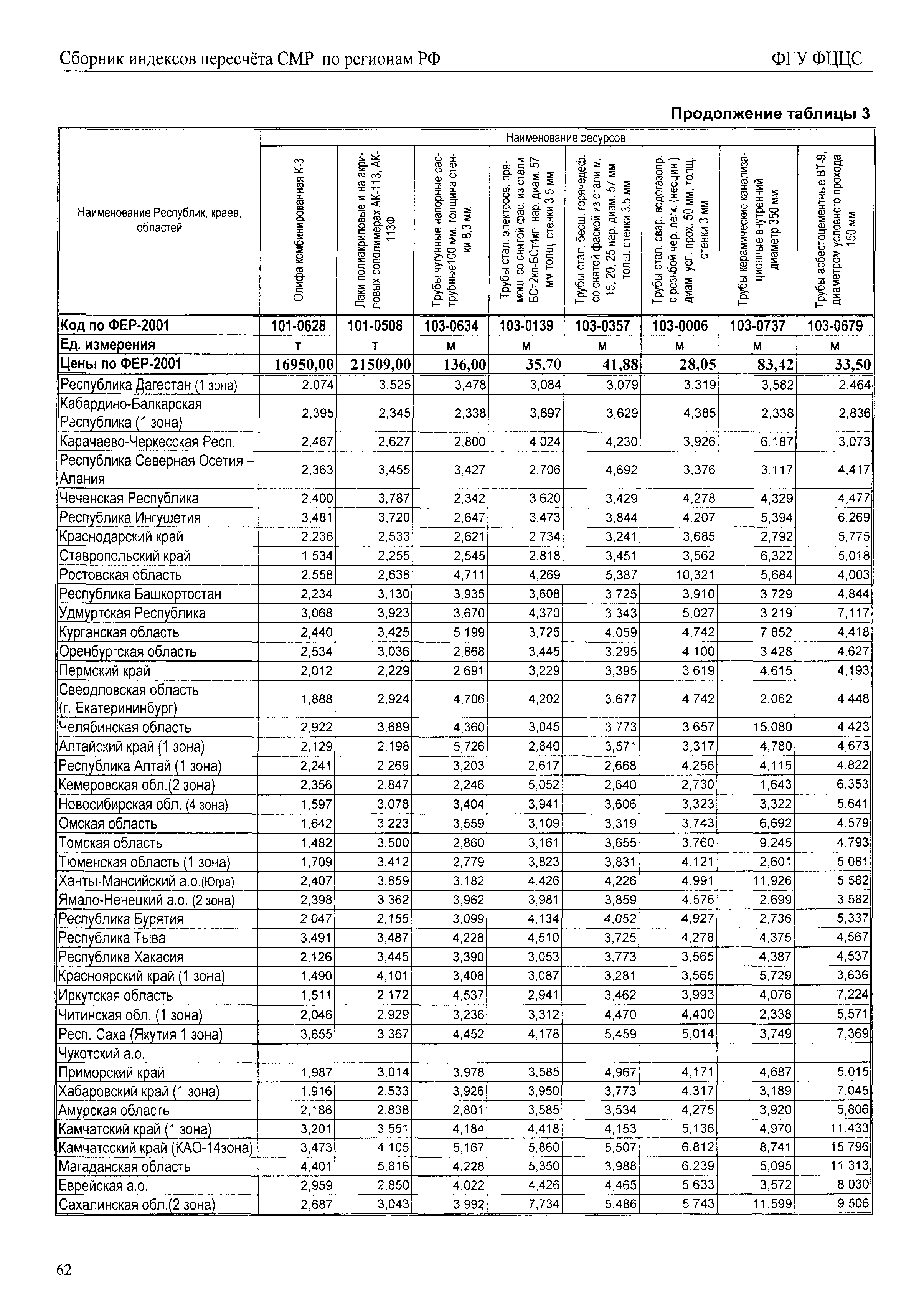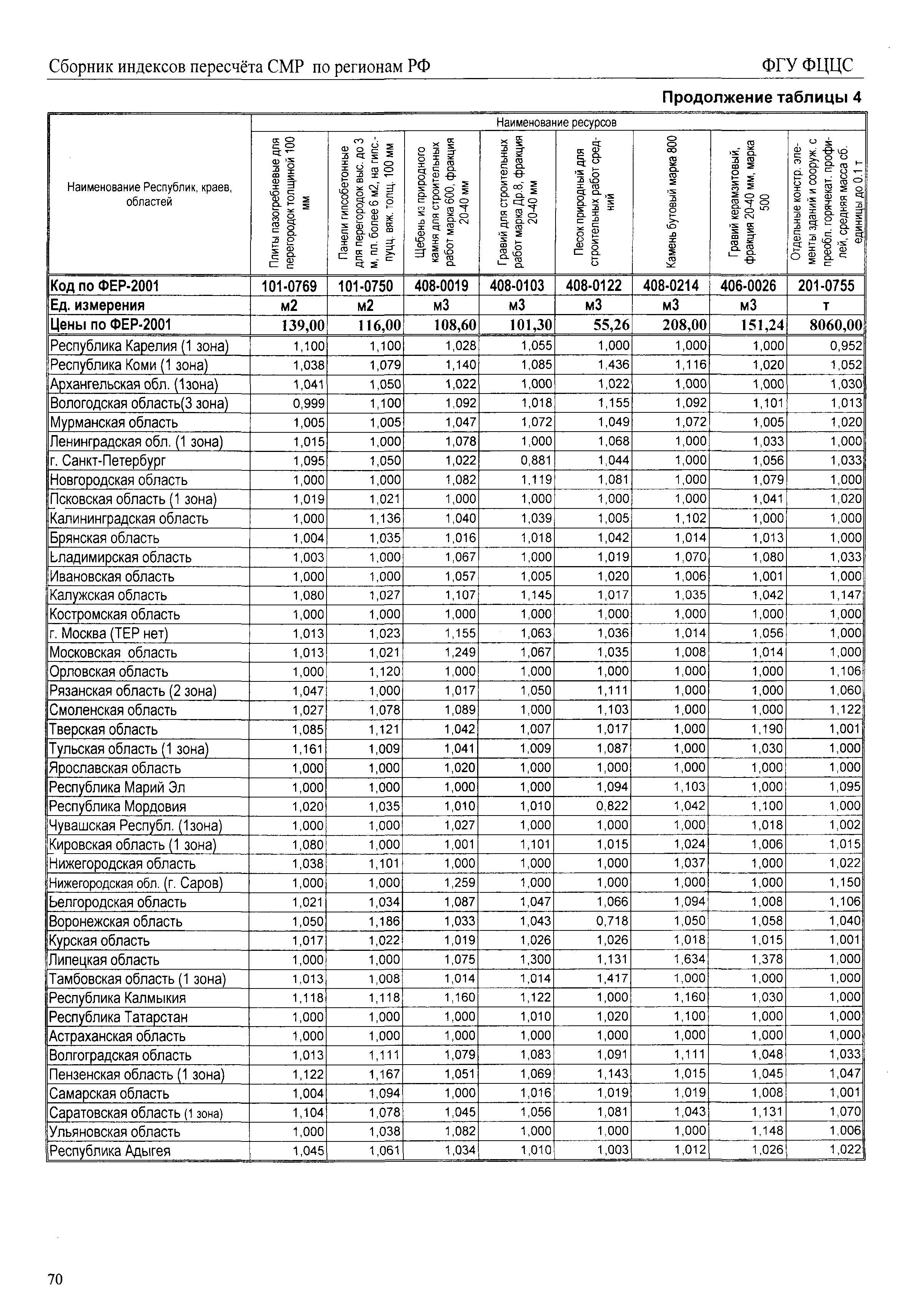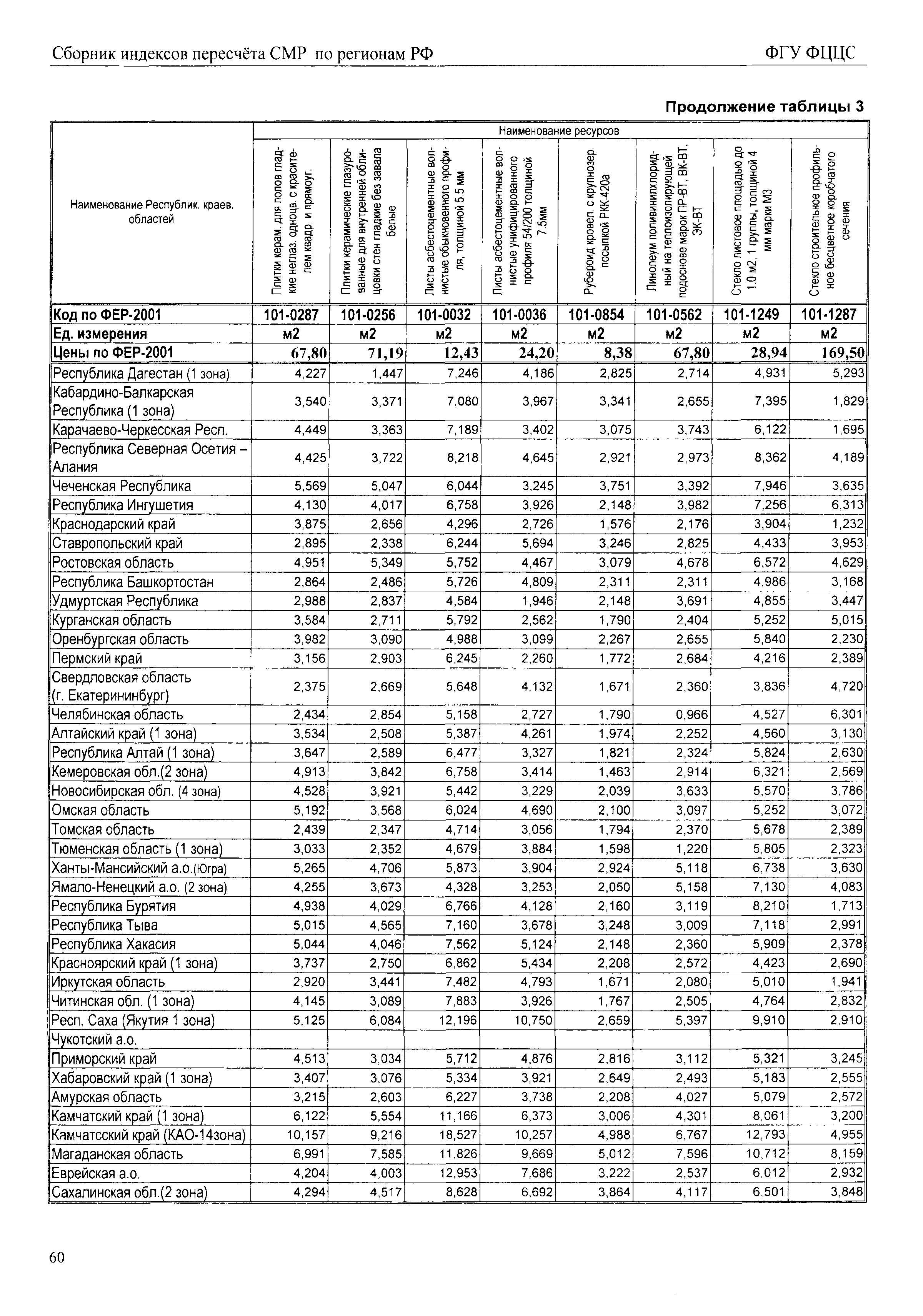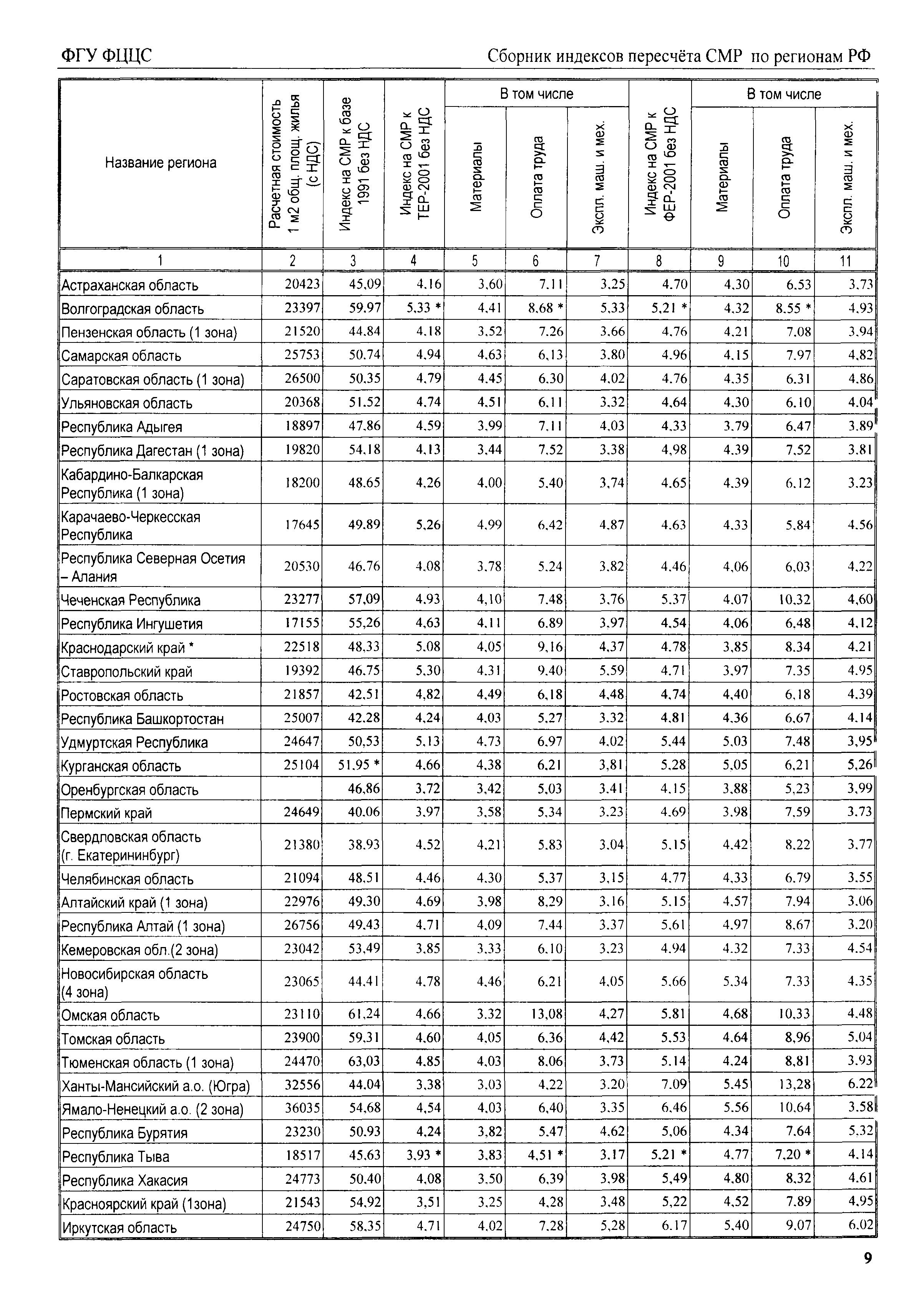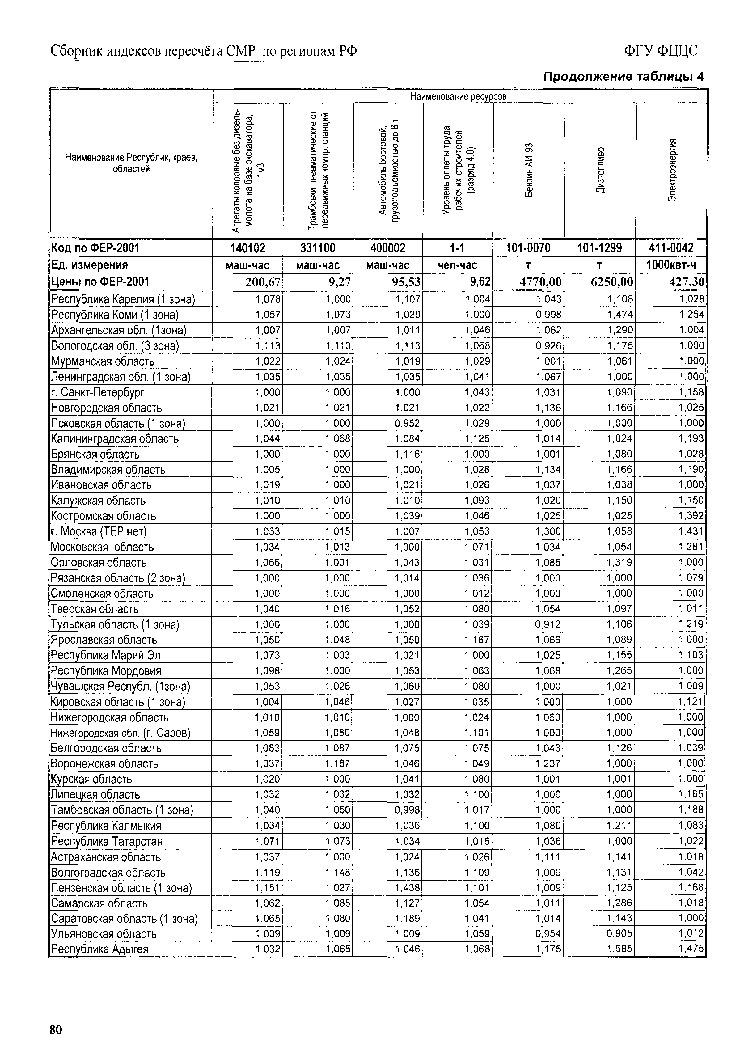 Межрегиональный сборник индексов пересчета сметной стоимости строительно-монтажных работ по субъектам Российской Федерации на I квартал 2008 г.| Статус: | не действует | | Название рус.: | Межрегиональный сборник индексов пересчета сметной стоимости строительно-монтажных работ по субъектам Российской Федерации на I квартал 2008 г. | | Дата добавления в базу: | 01.09.2013 | | Дата актуализации: | 01.09.2013 | | Область применения: | В сборнике приведены сводные таблицы текущих (I квартал 2008 г.) региональных цен на основные ресурсы, применяемые в строительстве, региональные индексы пересчета базисной стоимости строительно-монтажных работ, определяемой с использованием сборников новой сметно-нормативной базы (ФЕР-2001, ТЕР-2001), в территориальный текущий уровень. Индексы разработаны по единой методике, на основании отчетных данных региональных органов по ценообразованию в строительстве о стоимости строительных ресурсов в регионе. | | Оглавление: | Общая часть Техническая часть (к таблицам 1, 2, 3, 4) Цены на строительную продукцию в I квартале 2008г. Анализ роста индексов и стоимости 1 м2 по регионам РФ в I кв. 2008 г. Таблица А Расчетная стоимость 1 м2 общей площади жилья, индексы (без НДС) по регионам Российской Федерации на основании отчетных данных региональных органов по ценообразованию в строительстве за I квартал 2008 г. Таблица 1 Сметная стоимость строительных ресурсов (без НДС) в руб. Таблица 2 Индексы на отдельные виды ресурсов (к заложенным в ФЕР-2001). Таблица 3 Индексы роста стоимости строительных ресурсов к предыдущему кварталу. Таблица 4 Региональные индексы к ФЕР-2001 по видам строительства (без НДС). Таблица 5 Индексы на технологическое оборудование за I квартал 2008 г. Индексы на прочие работы и затраты за I квартал 2008 г. |