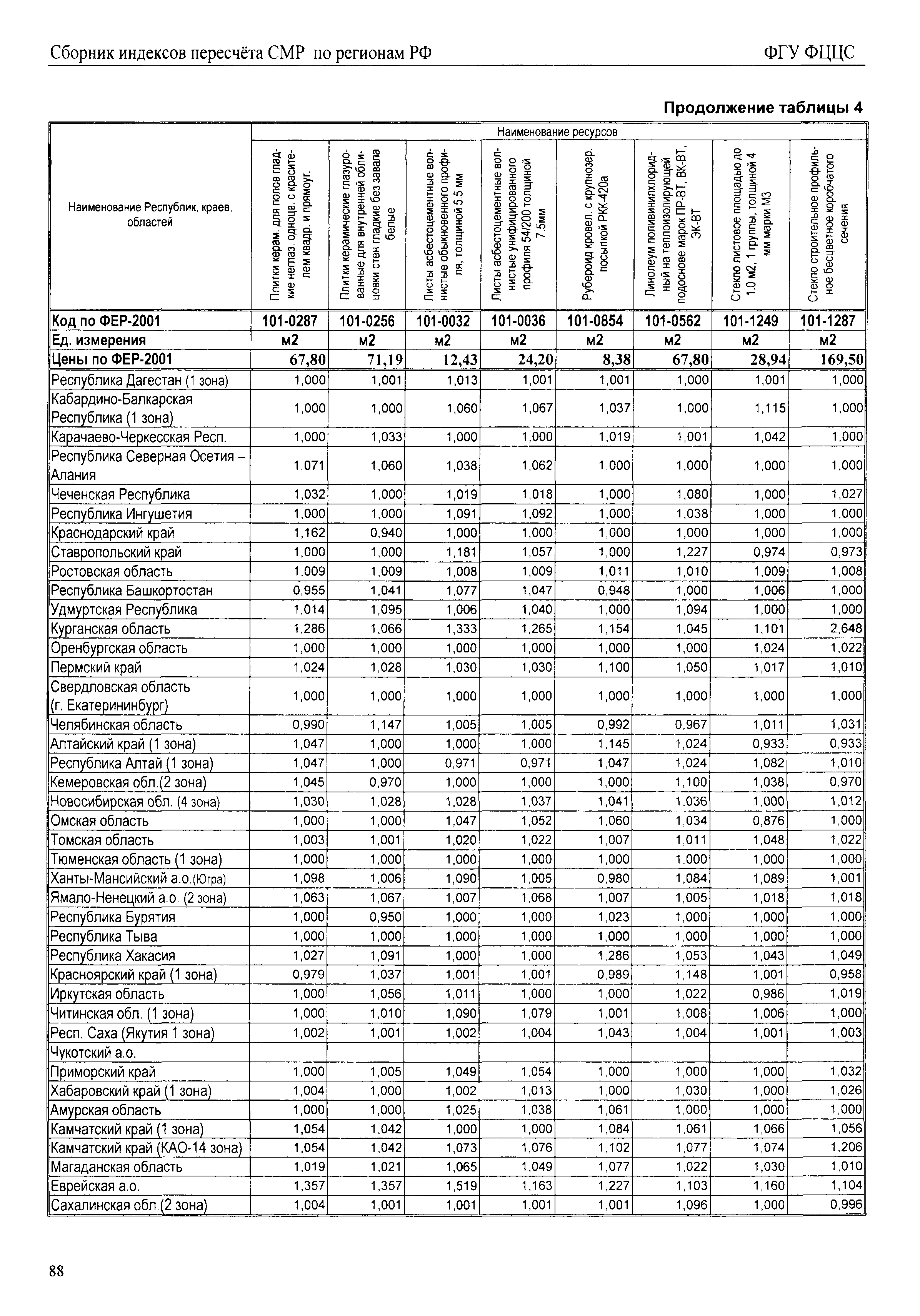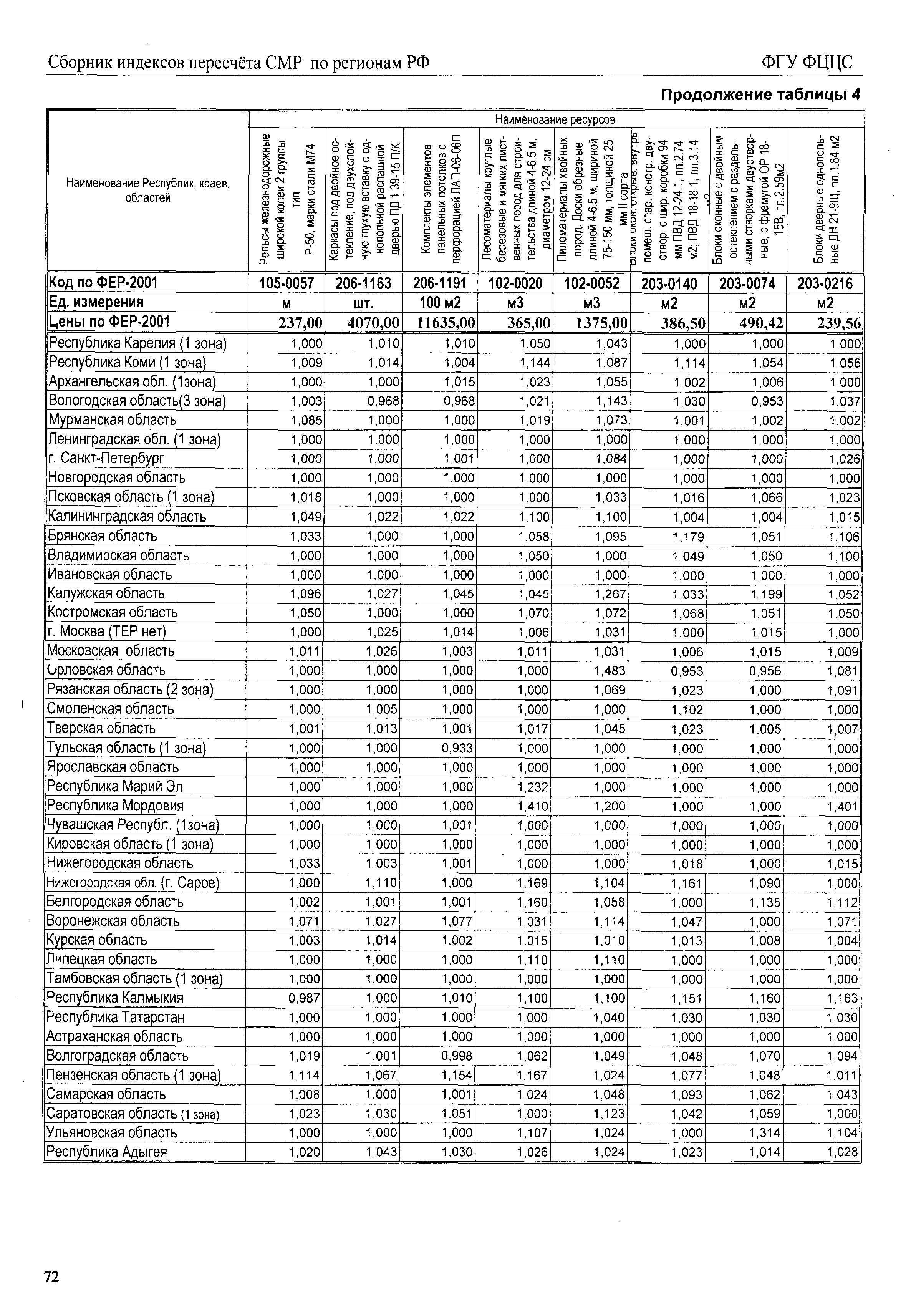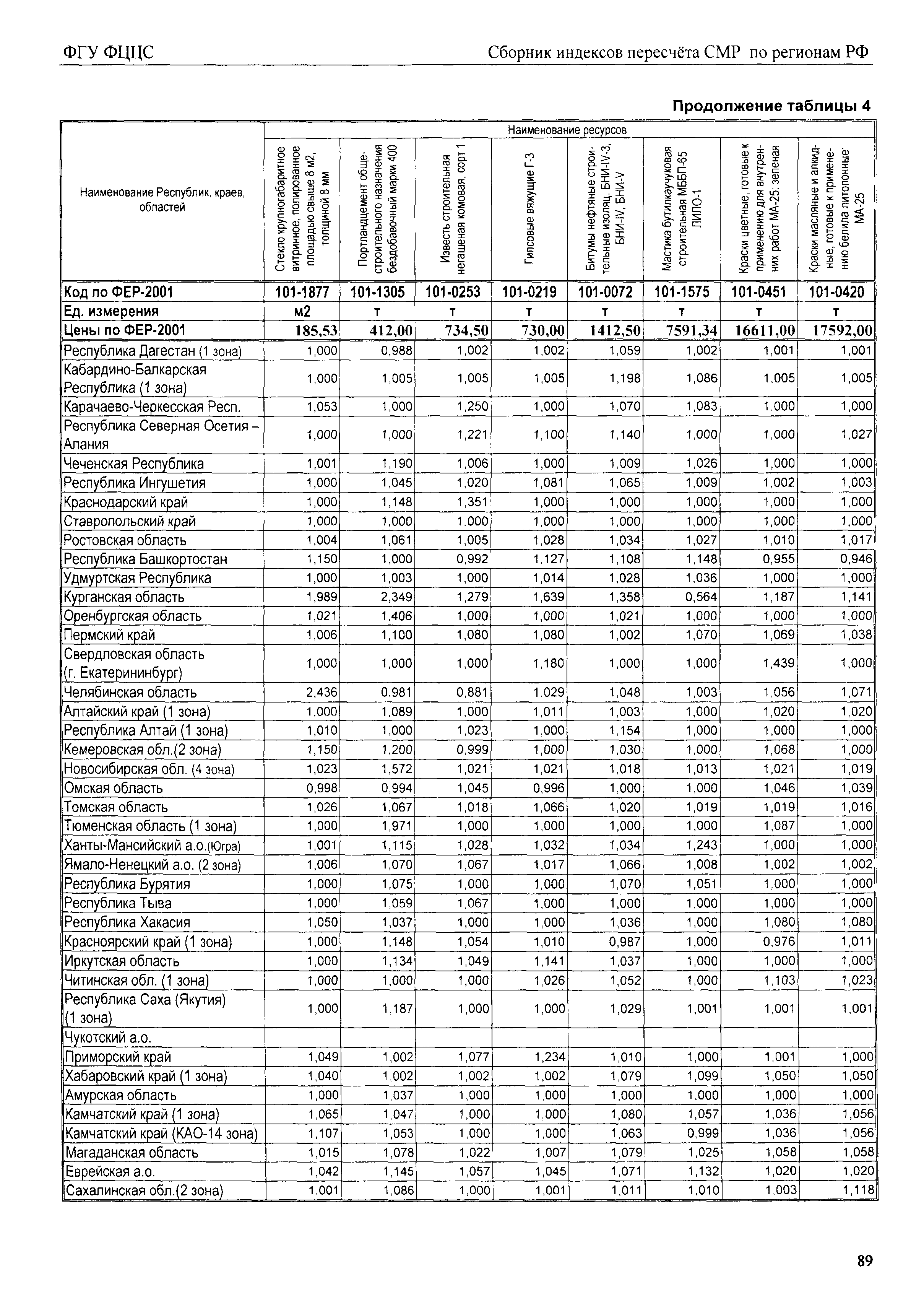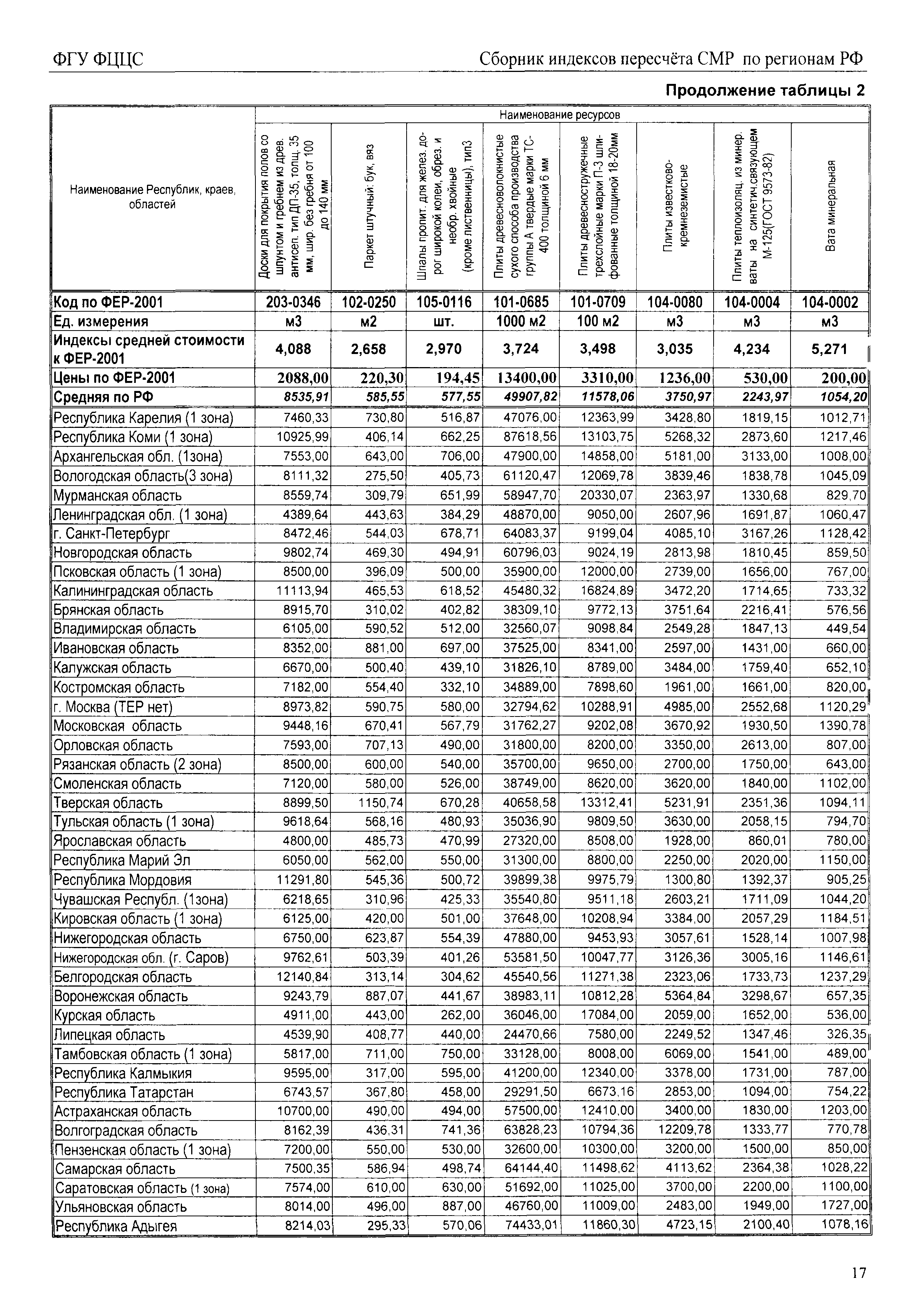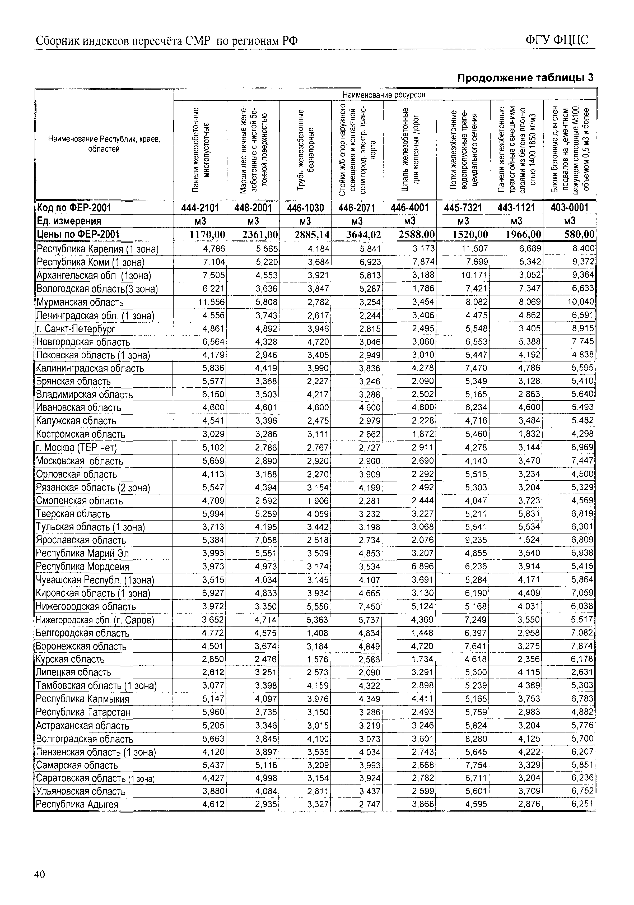 Межрегиональный сборник индексов пересчета сметной стоимости строительно-монтажных работ по субъектам Российской Федерации на I квартал 2008 г.| Статус: | не действует | | Название рус.: | Межрегиональный сборник индексов пересчета сметной стоимости строительно-монтажных работ по субъектам Российской Федерации на I квартал 2008 г. | | Дата добавления в базу: | 01.09.2013 | | Дата актуализации: | 01.09.2013 | | Область применения: | В сборнике приведены сводные таблицы текущих (I квартал 2008 г.) региональных цен на основные ресурсы, применяемые в строительстве, региональные индексы пересчета базисной стоимости строительно-монтажных работ, определяемой с использованием сборников новой сметно-нормативной базы (ФЕР-2001, ТЕР-2001), в территориальный текущий уровень. Индексы разработаны по единой методике, на основании отчетных данных региональных органов по ценообразованию в строительстве о стоимости строительных ресурсов в регионе. | | Оглавление: | Общая часть Техническая часть (к таблицам 1, 2, 3, 4) Цены на строительную продукцию в I квартале 2008г. Анализ роста индексов и стоимости 1 м2 по регионам РФ в I кв. 2008 г. Таблица А Расчетная стоимость 1 м2 общей площади жилья, индексы (без НДС) по регионам Российской Федерации на основании отчетных данных региональных органов по ценообразованию в строительстве за I квартал 2008 г. Таблица 1 Сметная стоимость строительных ресурсов (без НДС) в руб. Таблица 2 Индексы на отдельные виды ресурсов (к заложенным в ФЕР-2001). Таблица 3 Индексы роста стоимости строительных ресурсов к предыдущему кварталу. Таблица 4 Региональные индексы к ФЕР-2001 по видам строительства (без НДС). Таблица 5 Индексы на технологическое оборудование за I квартал 2008 г. Индексы на прочие работы и затраты за I квартал 2008 г. |