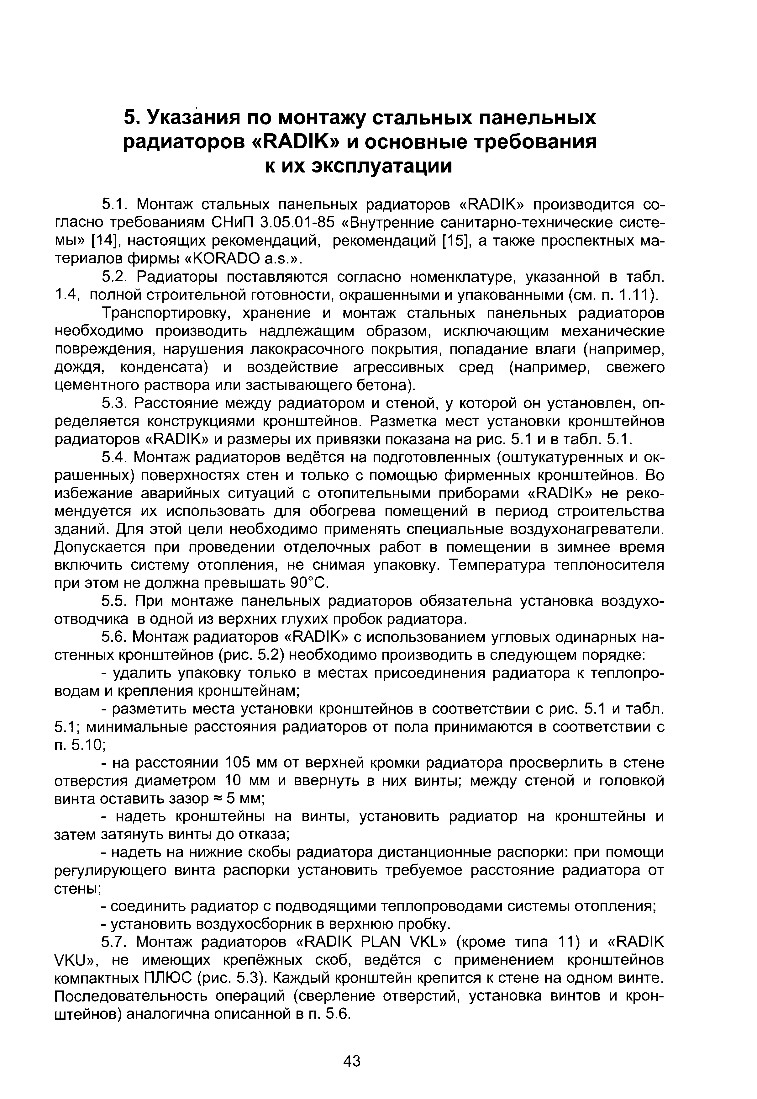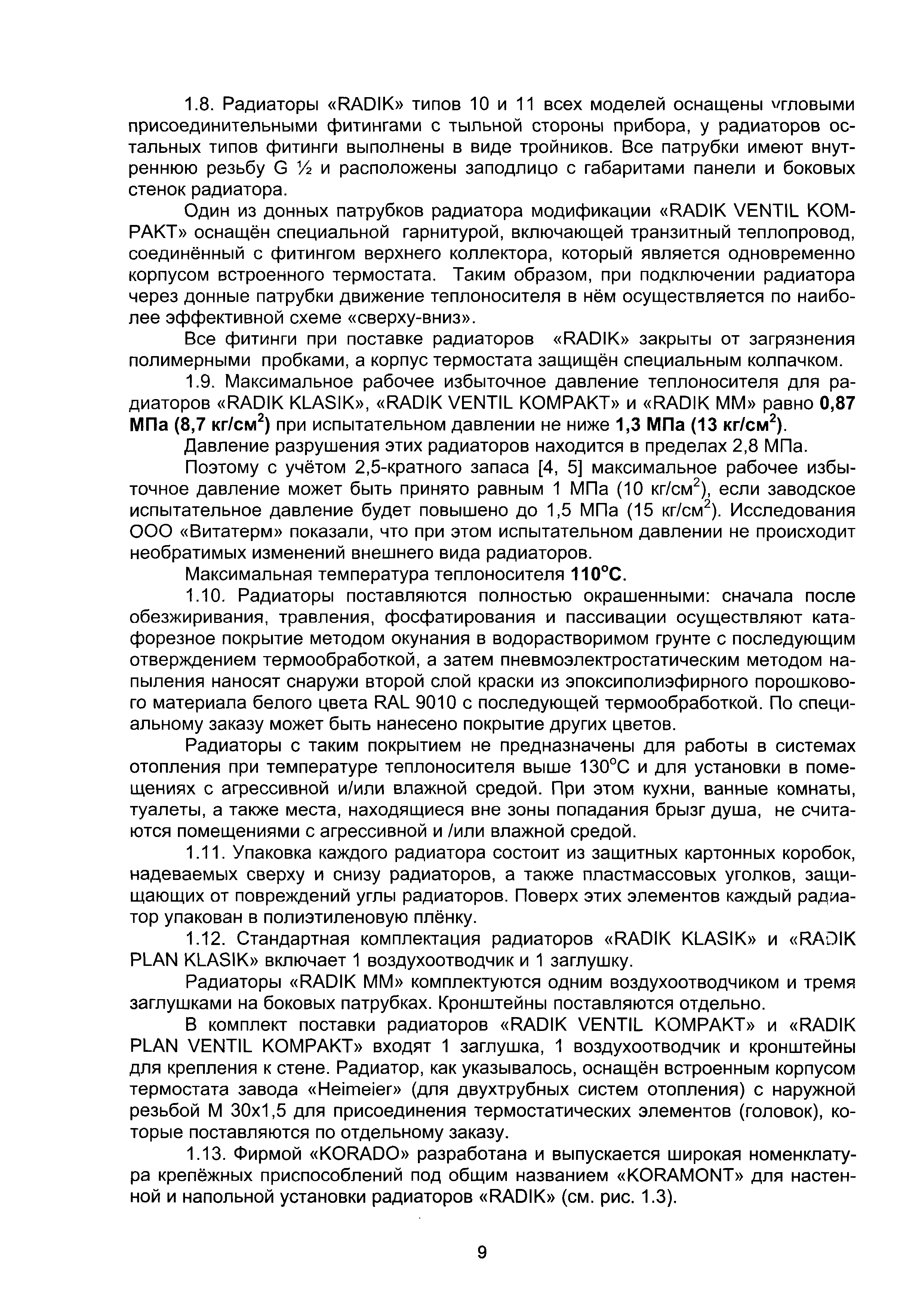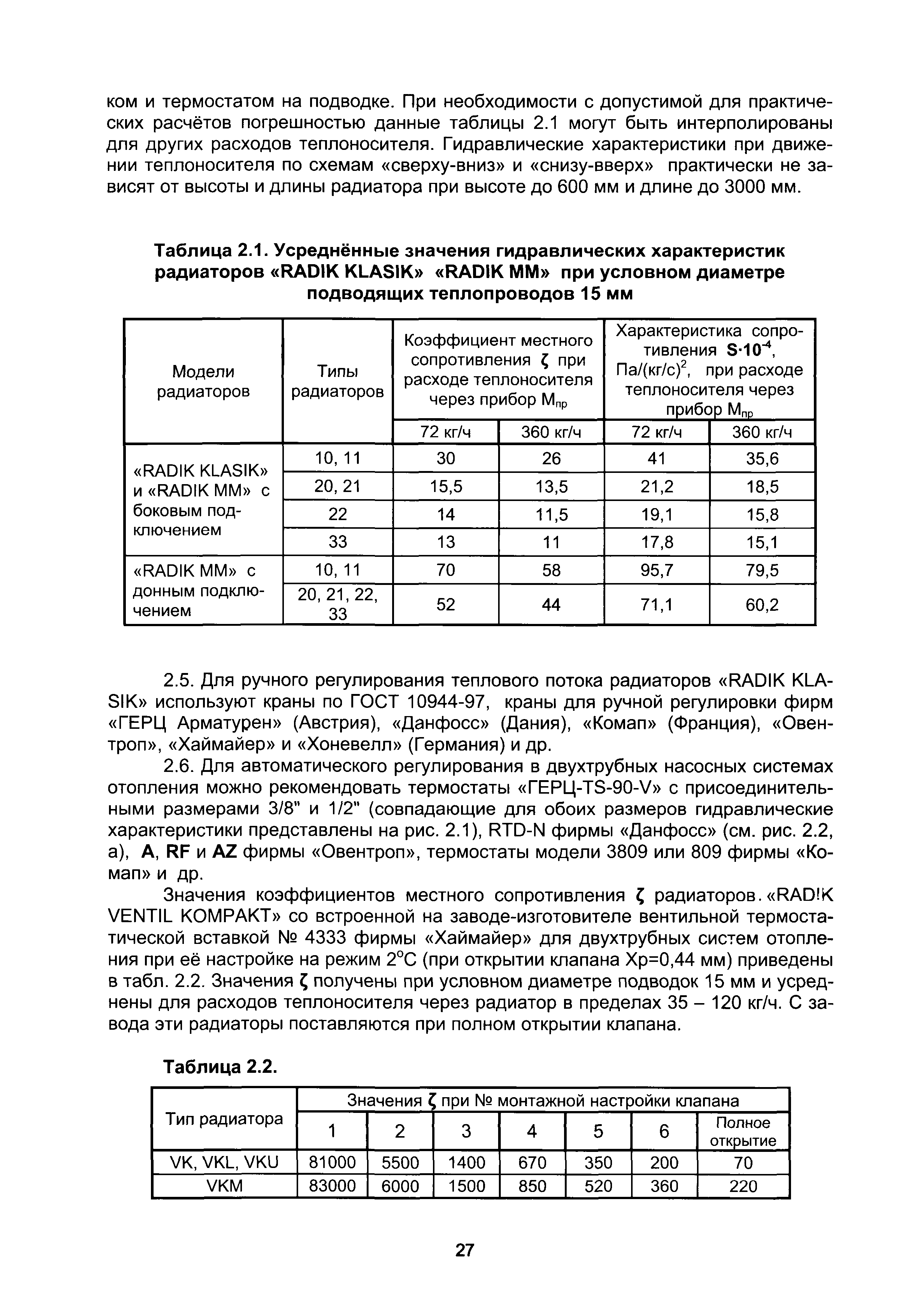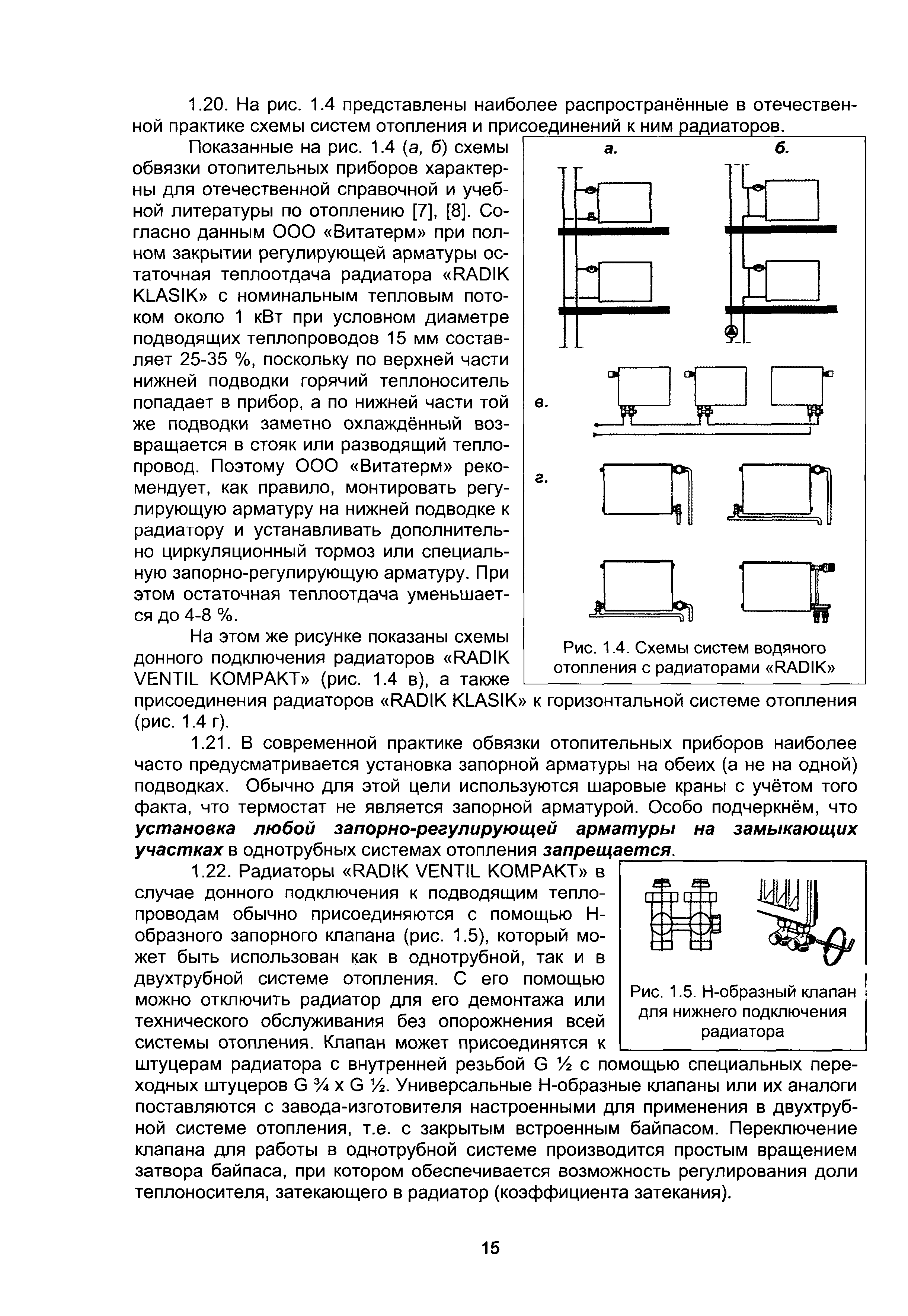 Рекомендации по применению стальных панельных радиаторов "Radik" (вторая редакция)| Статус: | действует | | Название рус.: | Рекомендации по применению стальных панельных радиаторов "Radik" (вторая редакция) | | Дата добавления в базу: | 01.09.2013 | | Дата актуализации: | 01.01.2021 | | Оглавление: | 1. Основные технические характеристики стальных панельных радиаторов "RADIK" 2. Гидравлический расчет 3. Тепловой расчет 4. Пример расчёта этажестояка однотрубной системы водяного отопления 5. Указания по монтажу стальных панельных радиаторов фирмы "RADIK" и основные требования к их эксплуатации 6. Список используемой литературы Приложение 1 Приложение 2 Приложение 3 | | Разработан: | ООО ВИТАТЕРМ