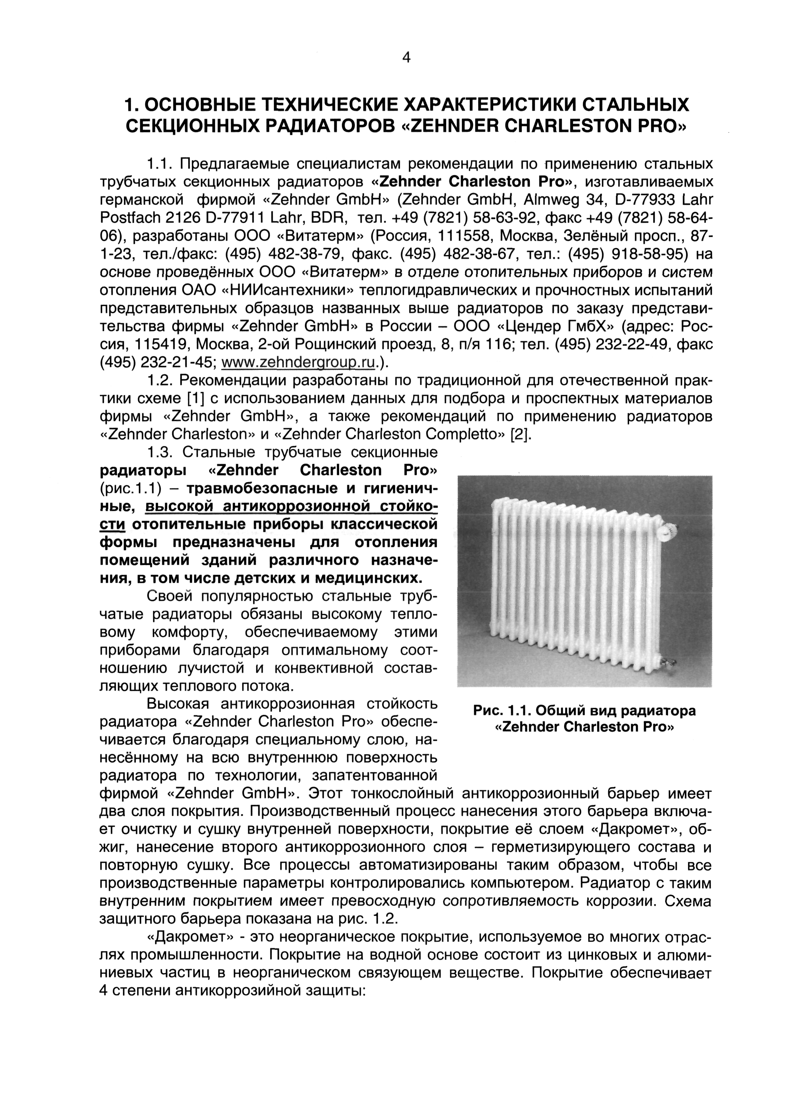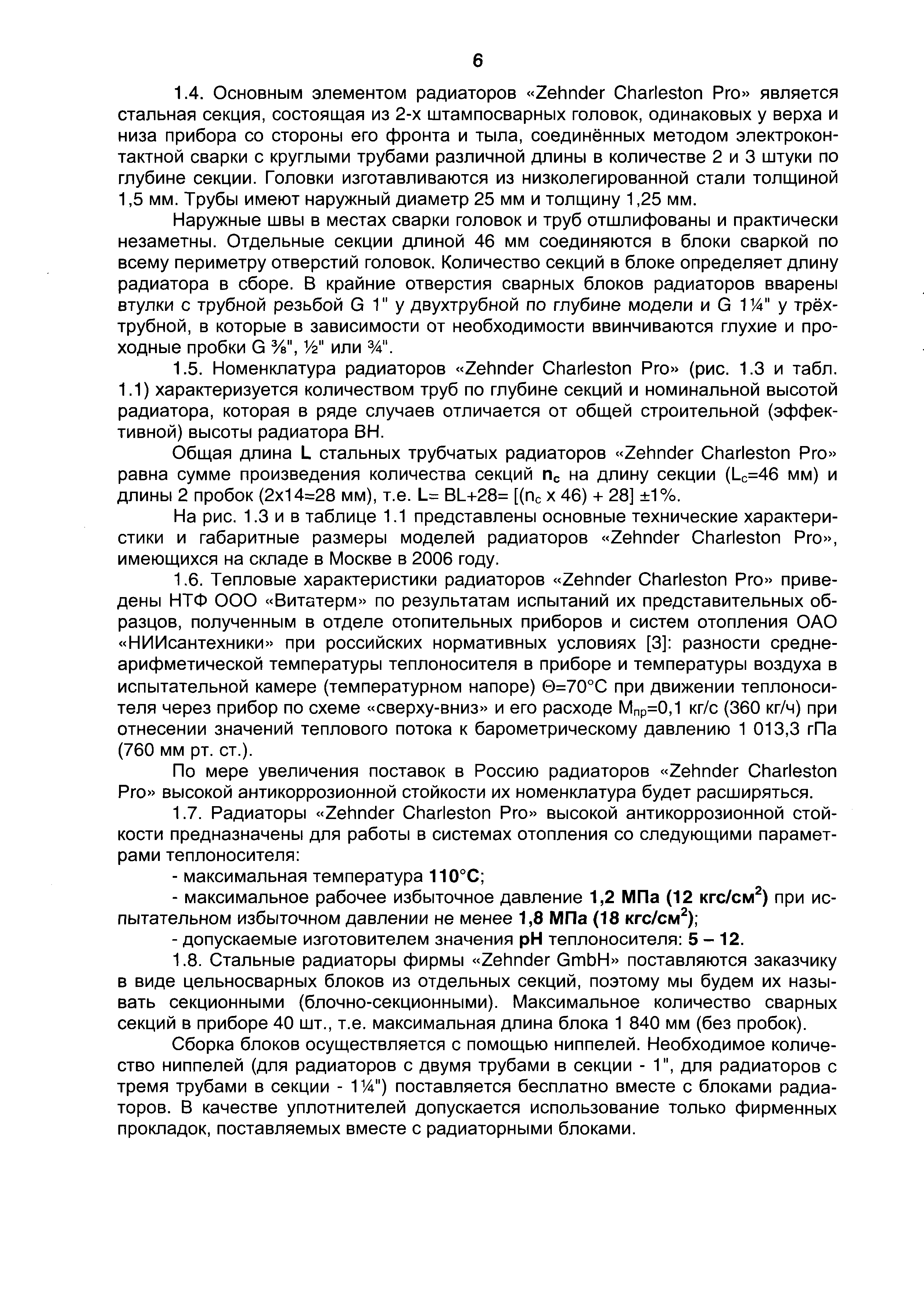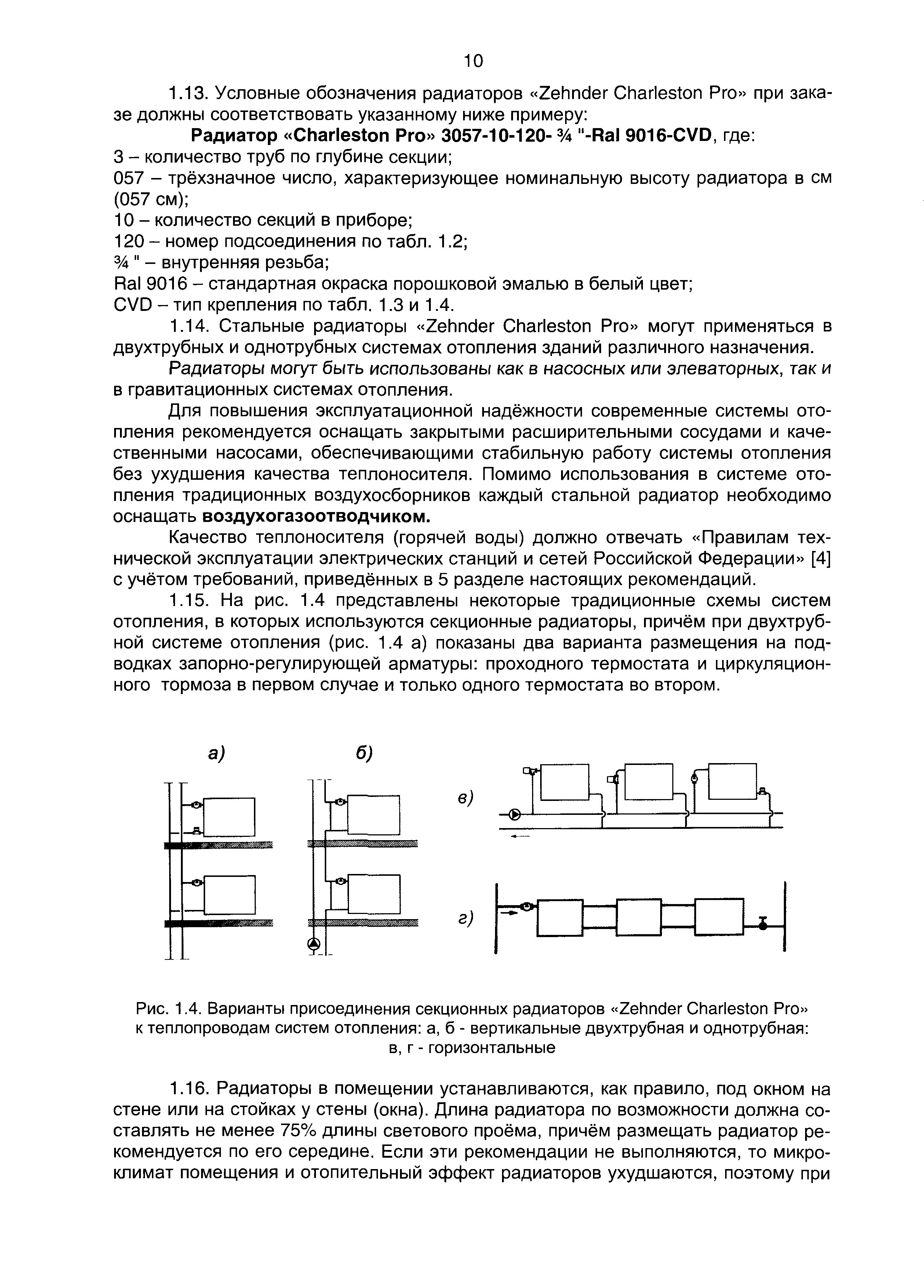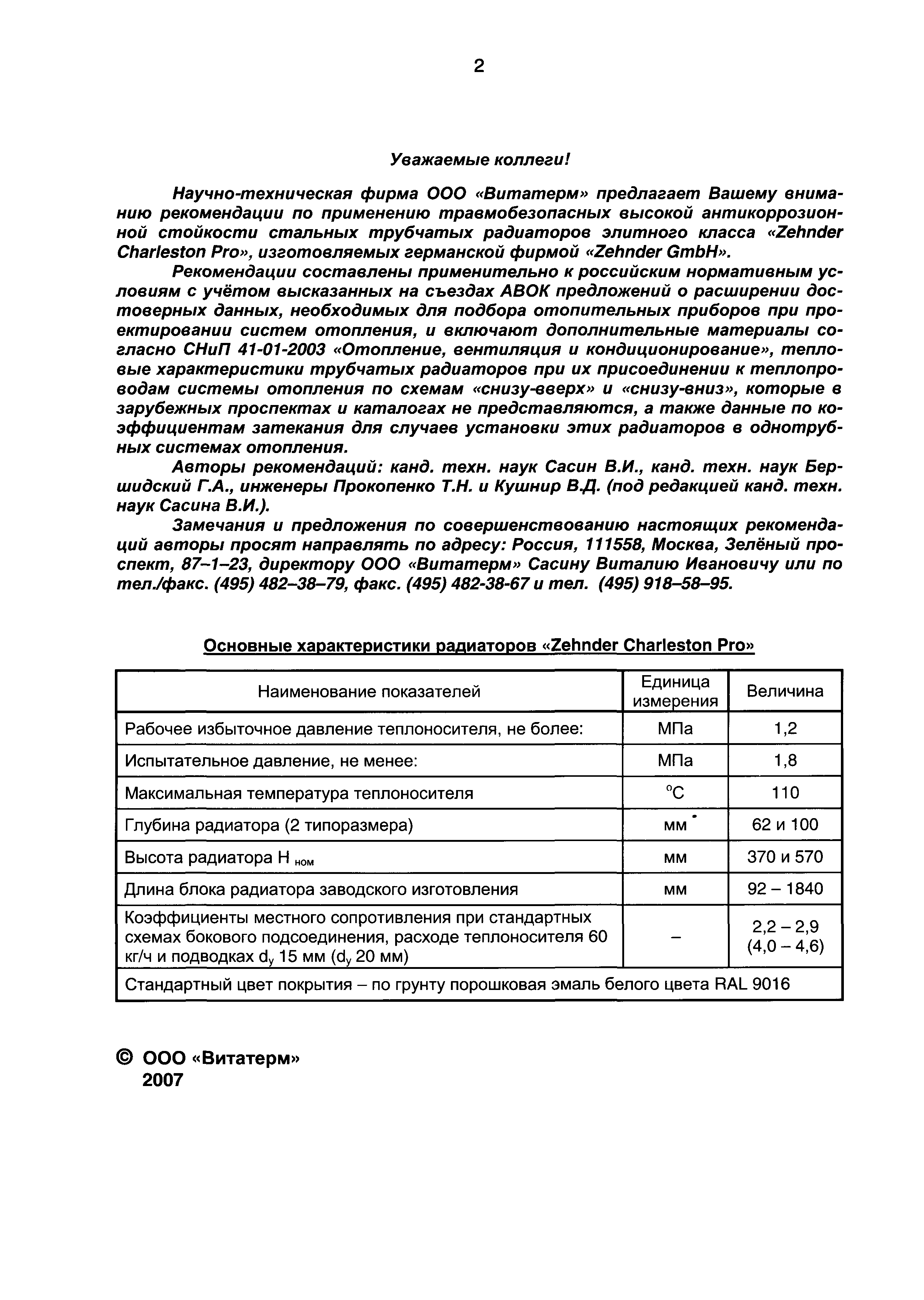 Рекомендации по применению стальных секционных трубчатых радиаторов "Zehnder Charleston Pro"| Статус: | действует | | Название рус.: | Рекомендации по применению стальных секционных трубчатых радиаторов "Zehnder Charleston Pro" | | Дата добавления в базу: | 01.09.2013 | | Дата актуализации: | 01.01.2021 | | Оглавление: | 1. Основные технические характеристики стальных секционных радиаторов "Zender Charleston Pro" 2. Гидравлический расчет 3. Тепловой расчет 4. Пример расчёта 5. Указания по монтажу стальных секционных радиаторов фирмы "Zehnder Charleston Pro" и основные требования к их эксплуатации 6. Список используемой литературы Приложение 1 Приложение 2 Приложение 3 | | Разработан: | ООО ВИТАТЕРМ