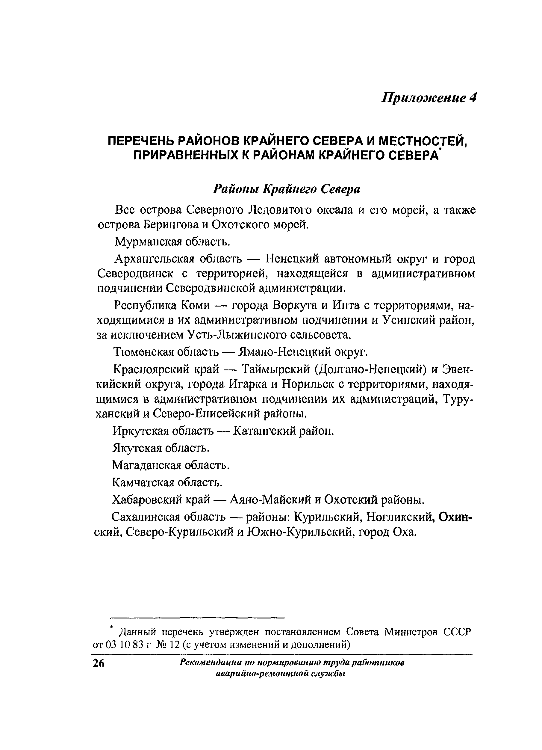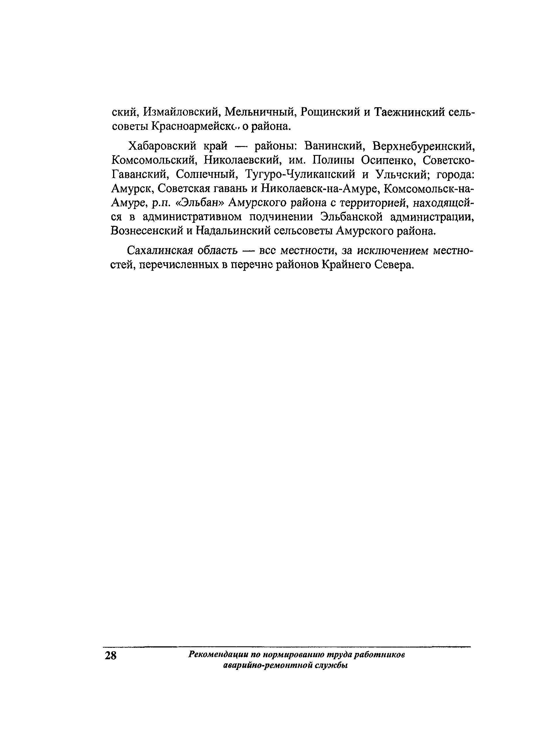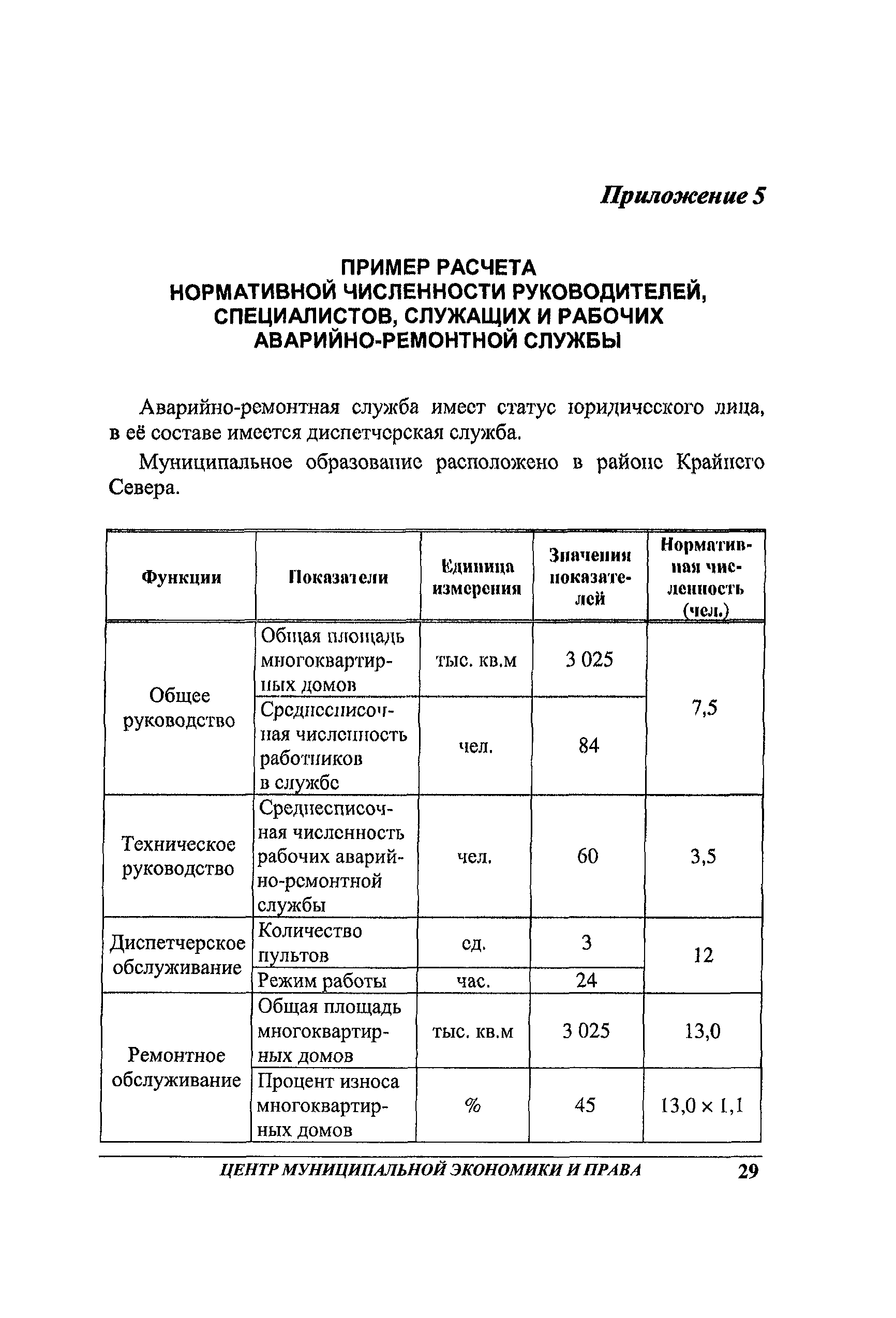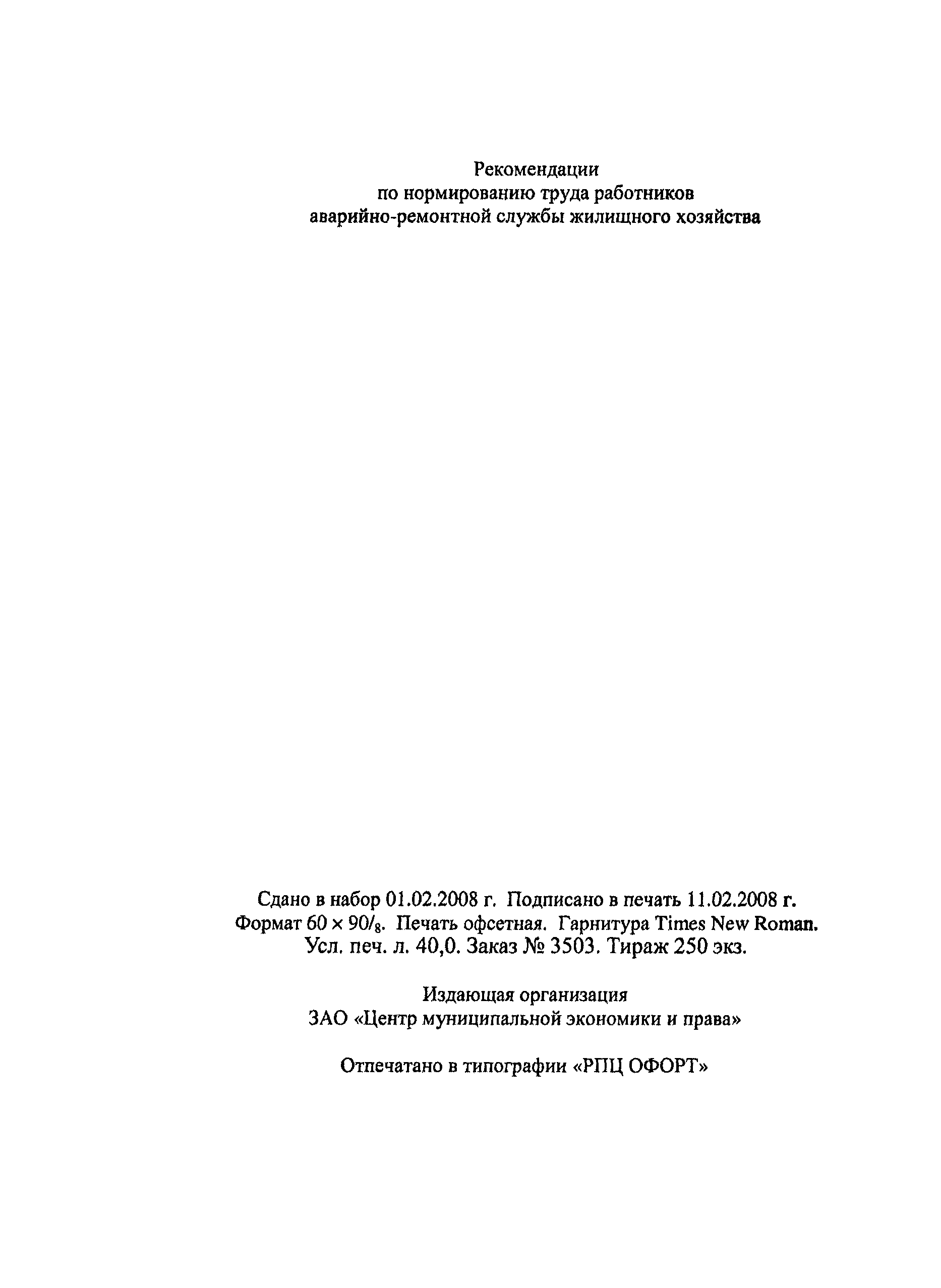 Рекомендации по нормированию труда работников аварийно-ремонтной службы жилищного хозяйства| Статус: | не действует | | Название рус.: | Рекомендации по нормированию труда работников аварийно-ремонтной службы жилищного хозяйства | | Дата добавления в базу: | 01.09.2013 | | Дата актуализации: | 01.09.2013 | | Область применения: | Предназначены для АРС, имеющих статус юридического лица независимо от формы собственности, а также для подразделений, входящих в состав организаций, занятых содержанием и ремонтом общего имущества многоквартирных домов. | | Оглавление: | 1 Общие положения 2 Организация работ аварийно-ремонтной службы жилищного хозяйства 3 Нормативы численности Приложение 1. Пример расчета коэффициента невыходов Приложение 2. Рекомендуемое распределение нормативной численности рабочих аварийно-ремонтной службы по профессиям Приложение 3. Перечень районов температурных зон по РФ Приложение 4. Перечень районов Крайнего Севера и местностей, приравненных к районам Крайнего Севера Приложение 5. Пример расчета нормативной численности руководителей, специалистов, служащих и рабочих аварийно-ремонтной службы Приложение 6. Перечень нормативных материалов, которые могут быть использованы для нормирования труда рабочих, имеющихся в АРС, но не вошедших в настоящий сборник |