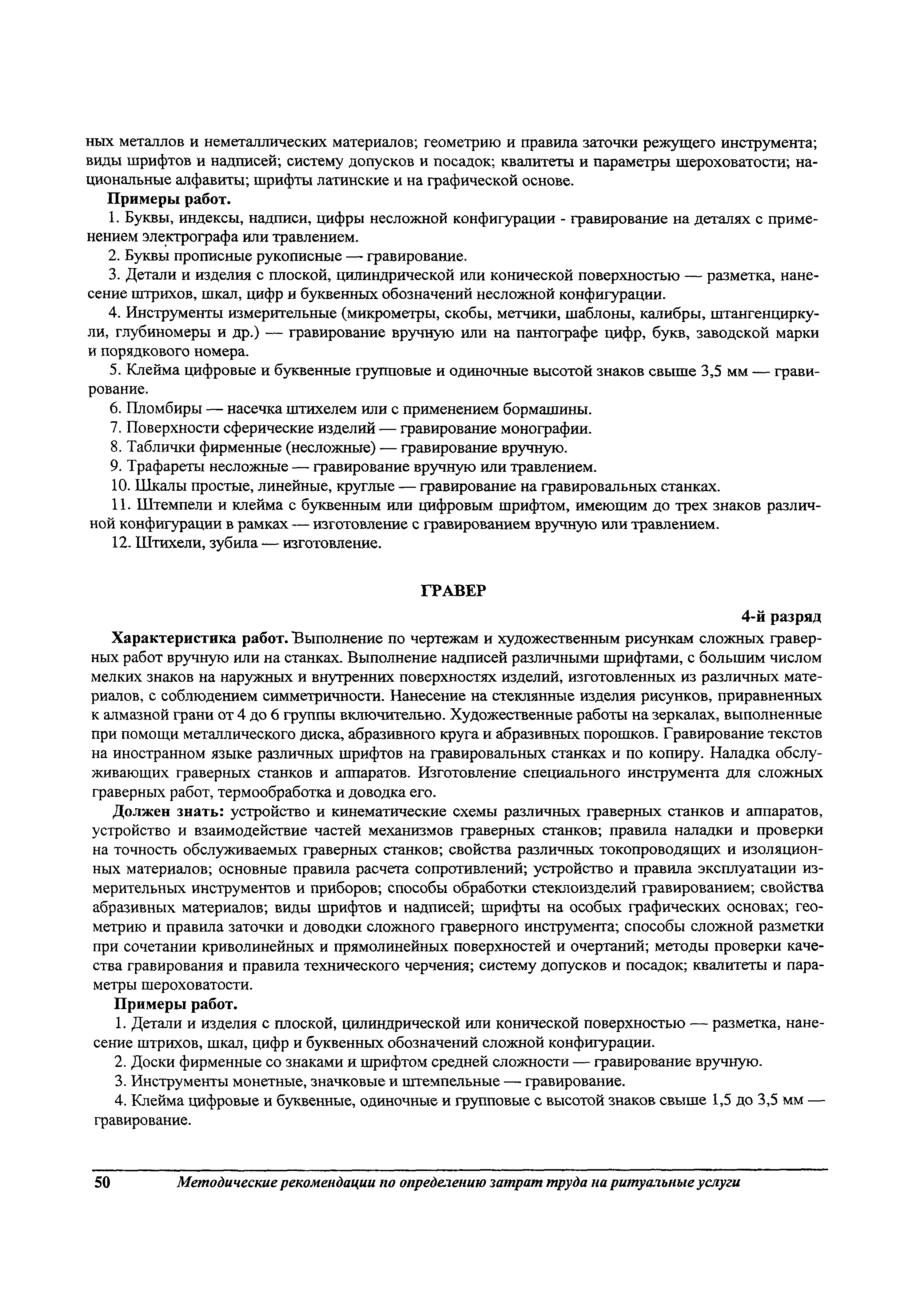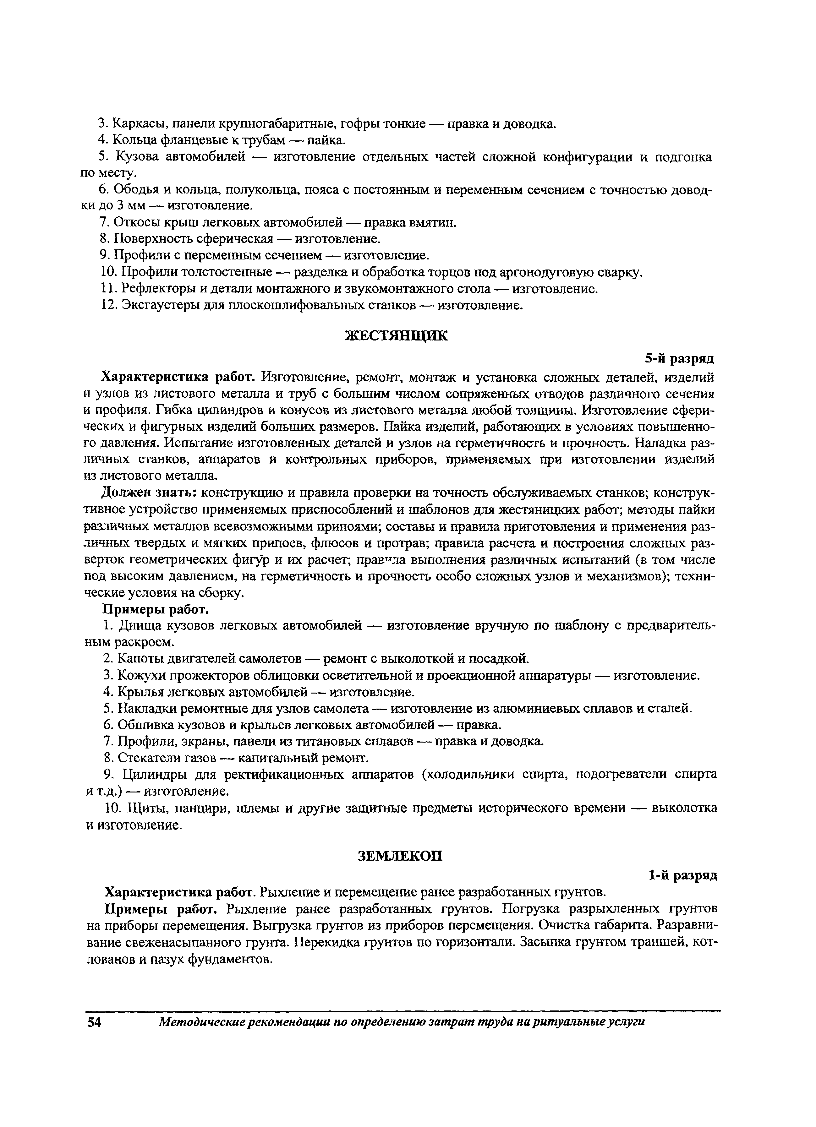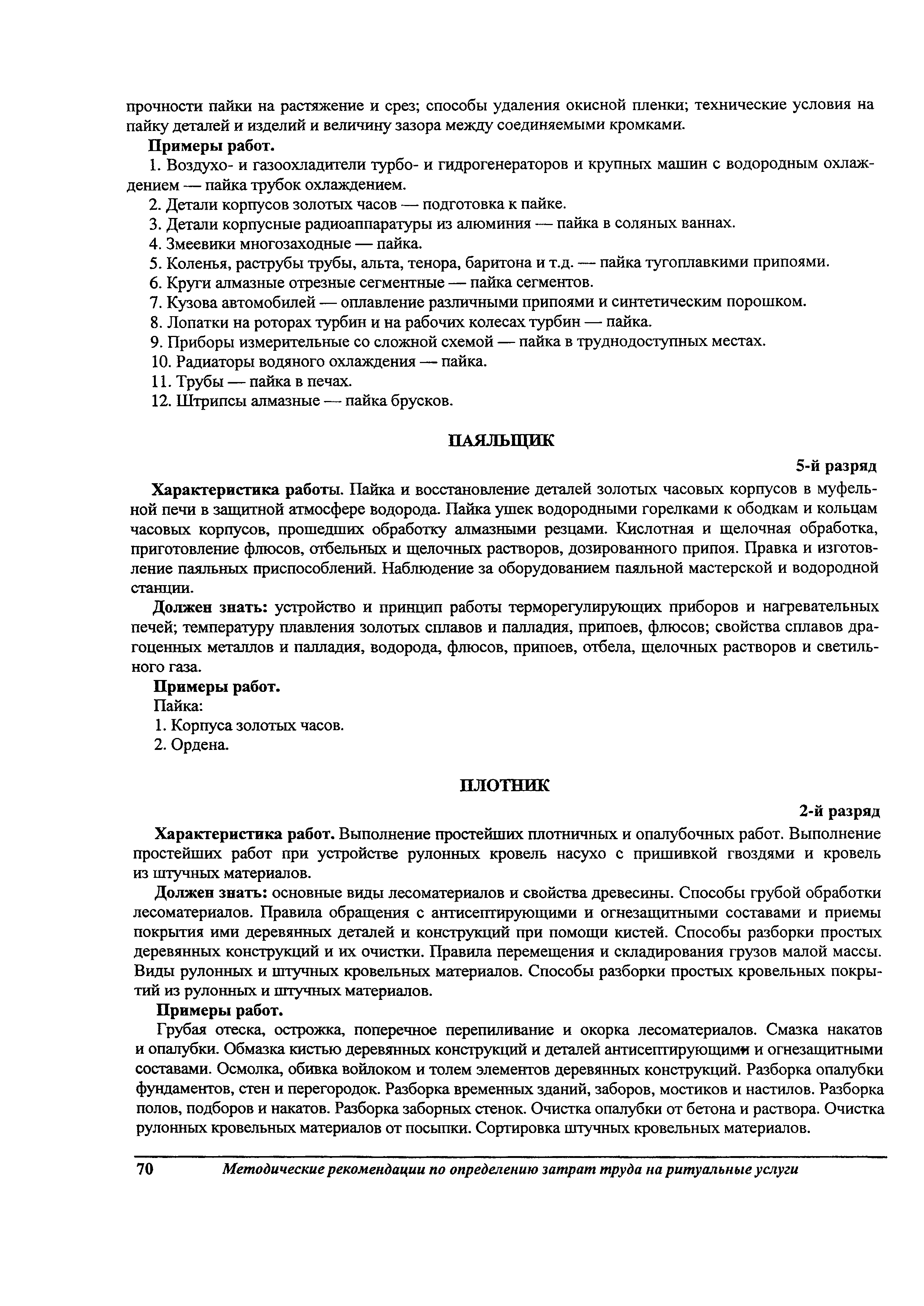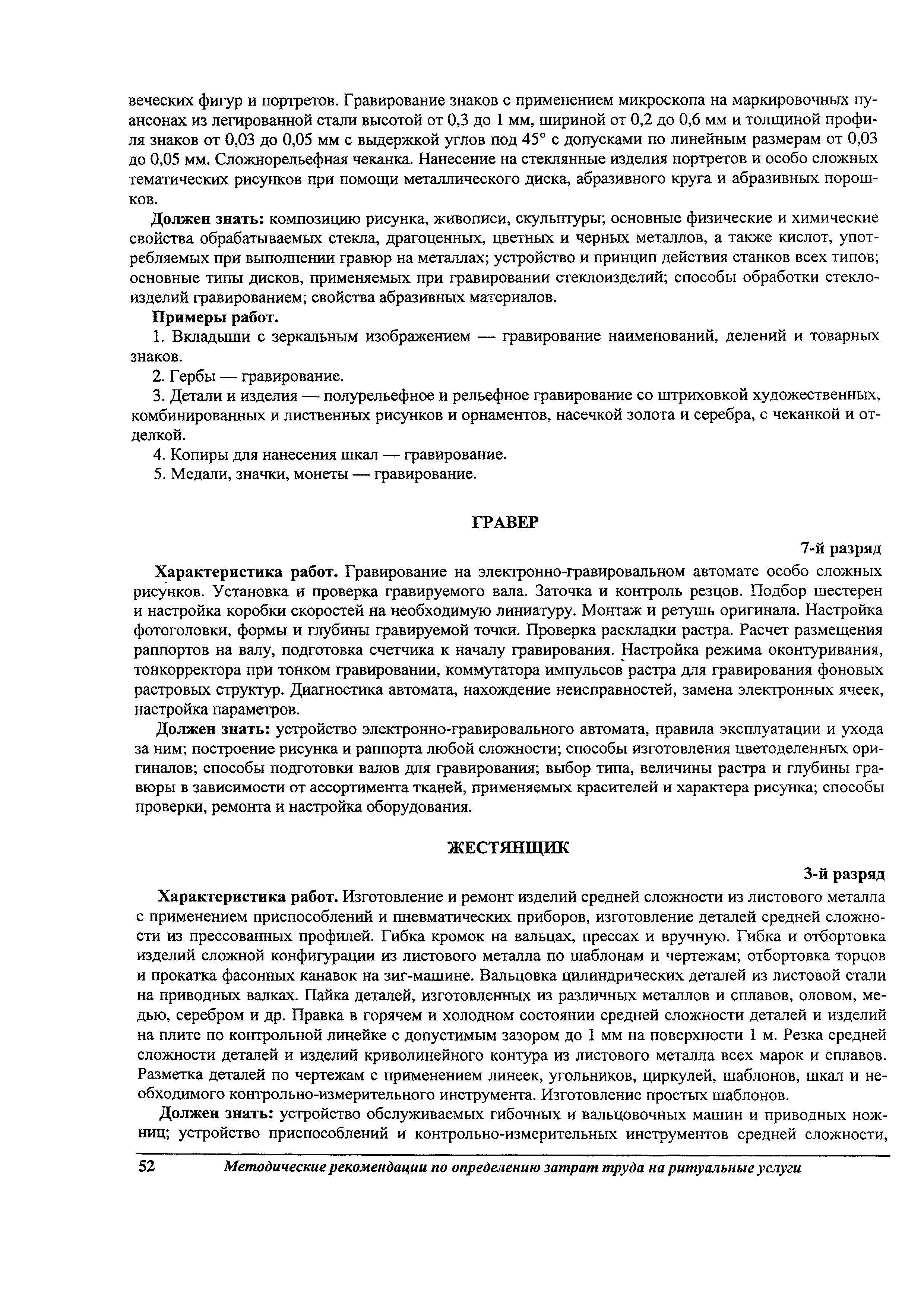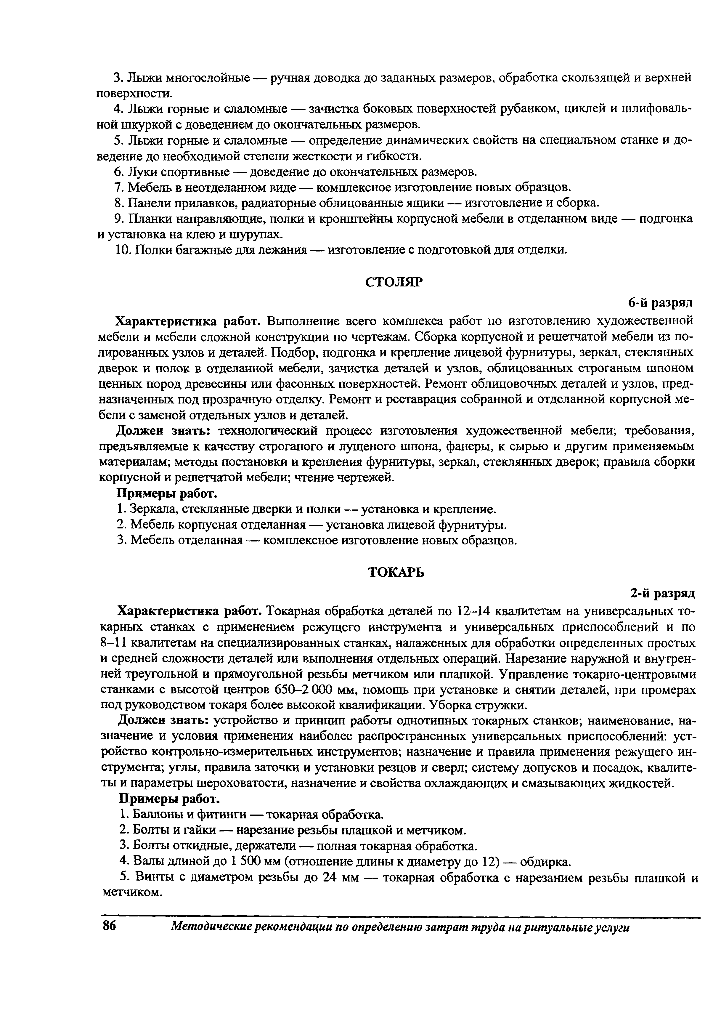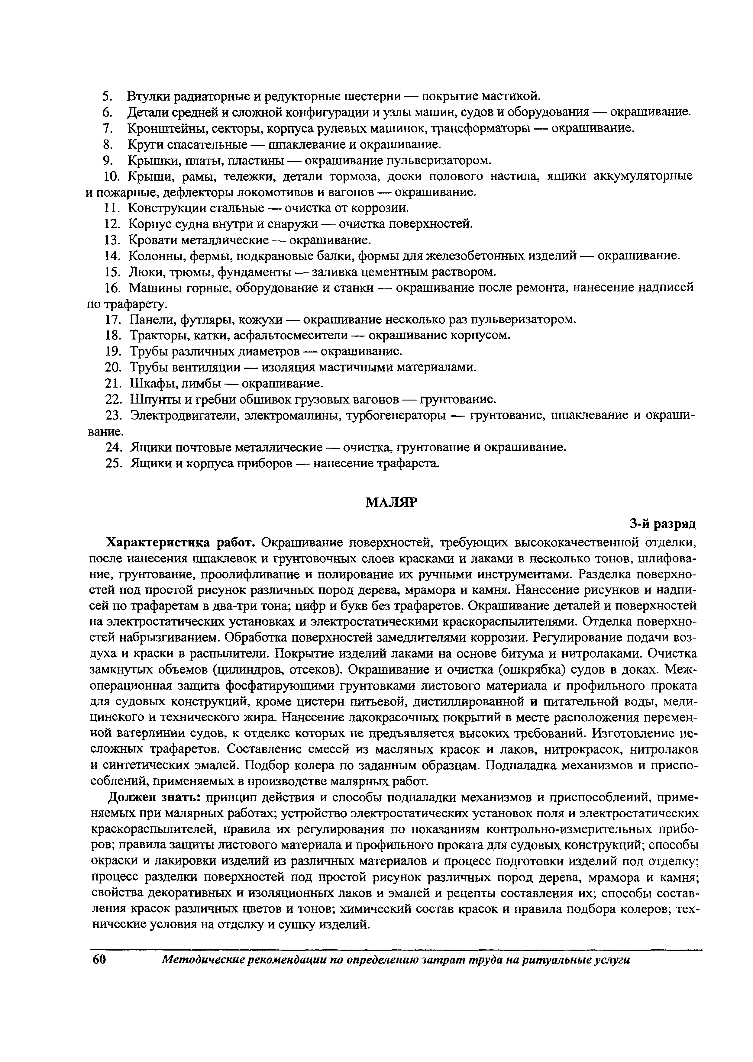 Методические рекомендации по определению затрат труда на оказание ритуальных услуг| Статус: | не действует | | Название рус.: | Методические рекомендации по определению затрат труда на оказание ритуальных услуг | | Дата добавления в базу: | 01.09.2013 | | Дата актуализации: | 01.09.2013 | | Область применения: | Предназначены для определения стоимости ритуальных услуг, финансируемых за счет средств бюджетов Российской Федерации и местных бюджетов (гарантируемый перечень услуг по погребению), а также определения стоимости услуг, предоставляемых сверх гарантированного перечня услуг по погребению за счет средств лица, взявшего на себя обязанность осуществить погребение умершего. | | Оглавление: | 1 Общая часть 2 Нормативная часть 2.1. Нормы обслуживания на работы по ритуальному обслуживанию населения 2.2. Нормы времени на работы по ритуальному обслуживанию населения 2.3. Тарифно-квалификационные характеристики работников ритуального обслуживания населения |