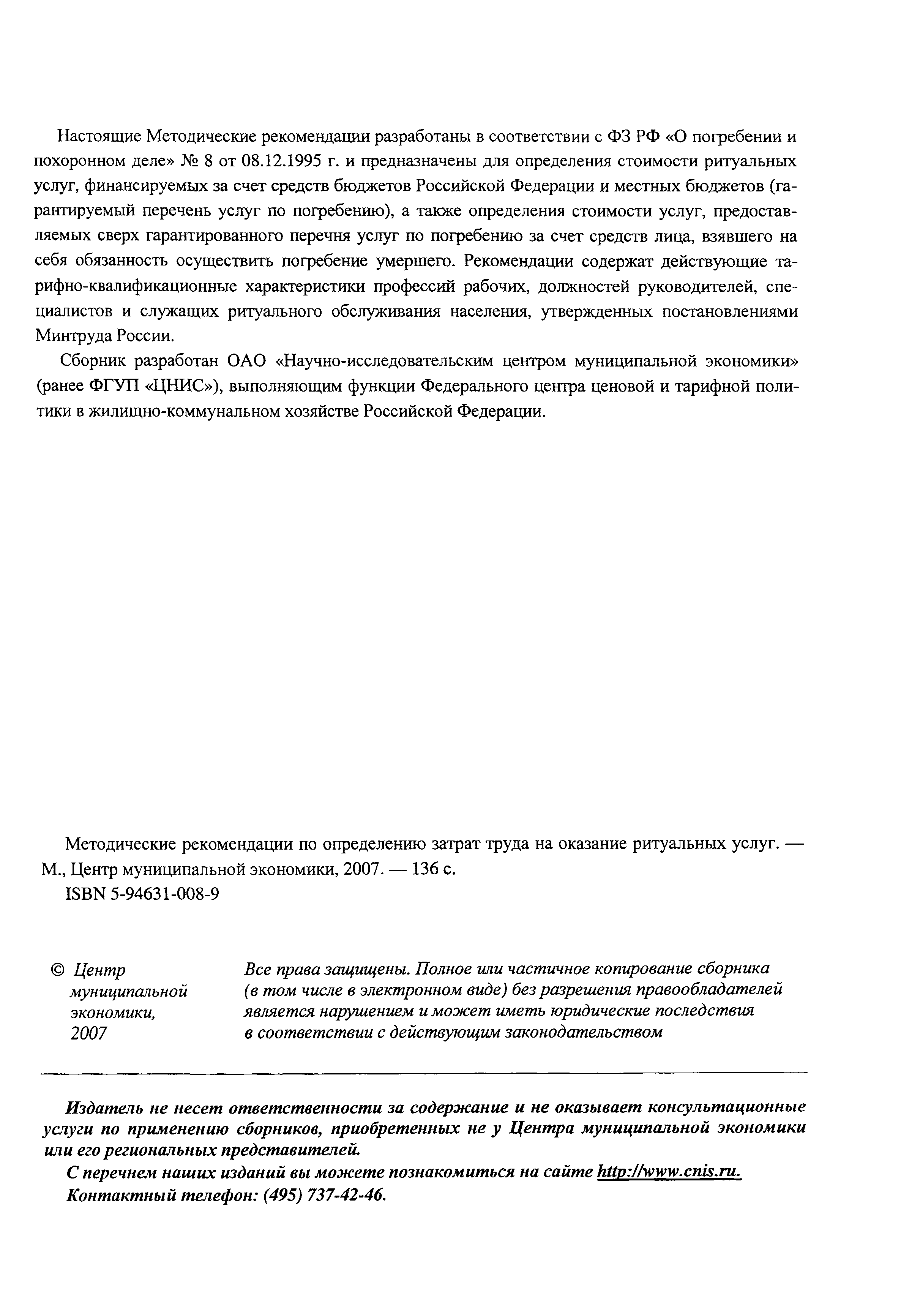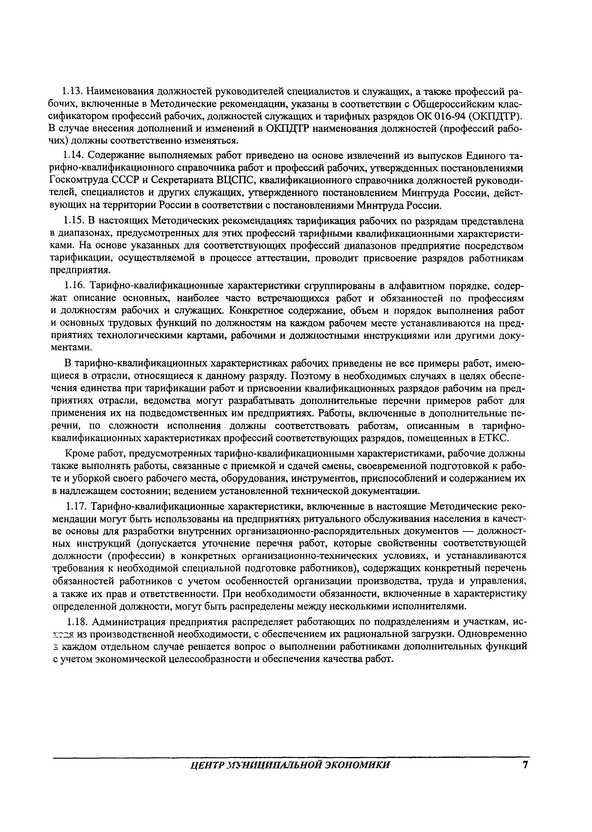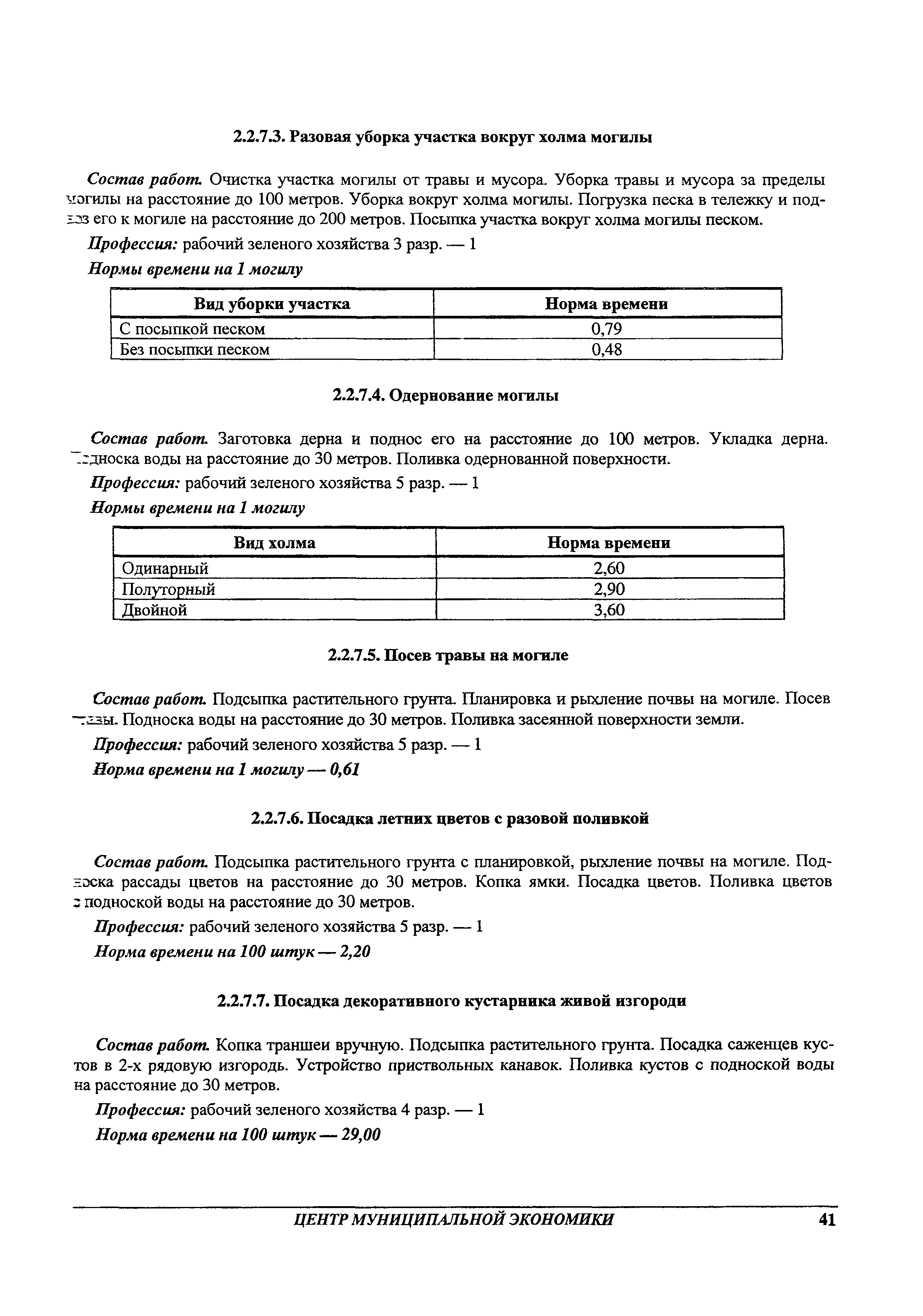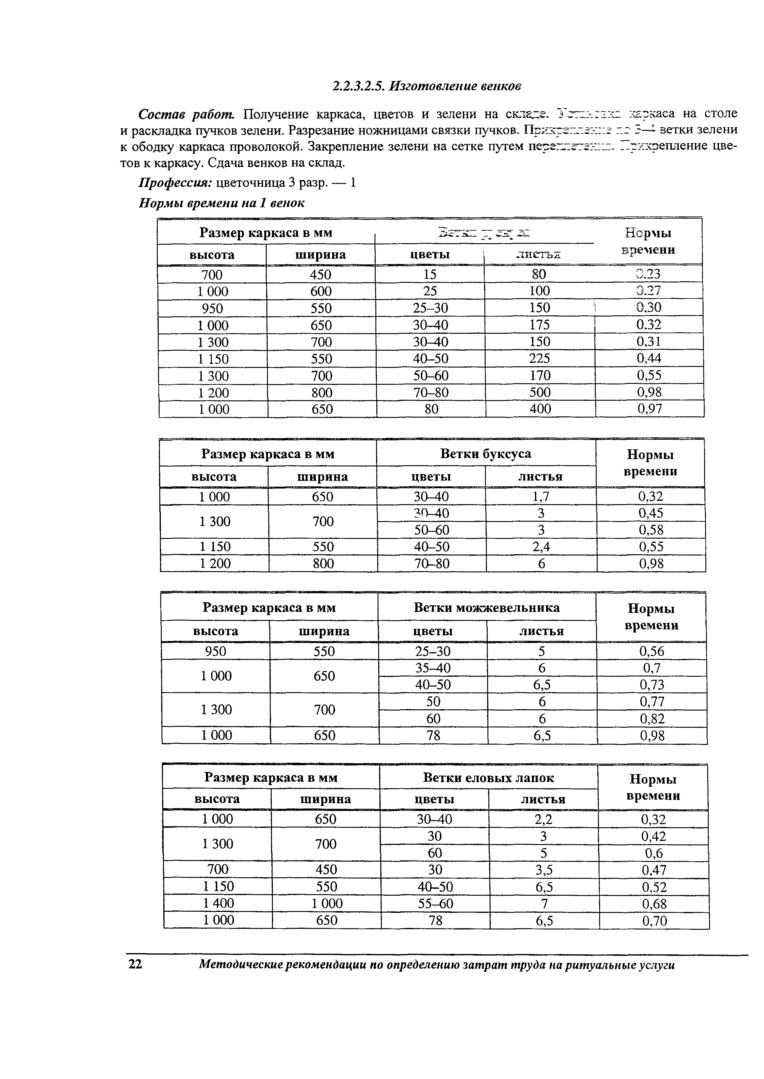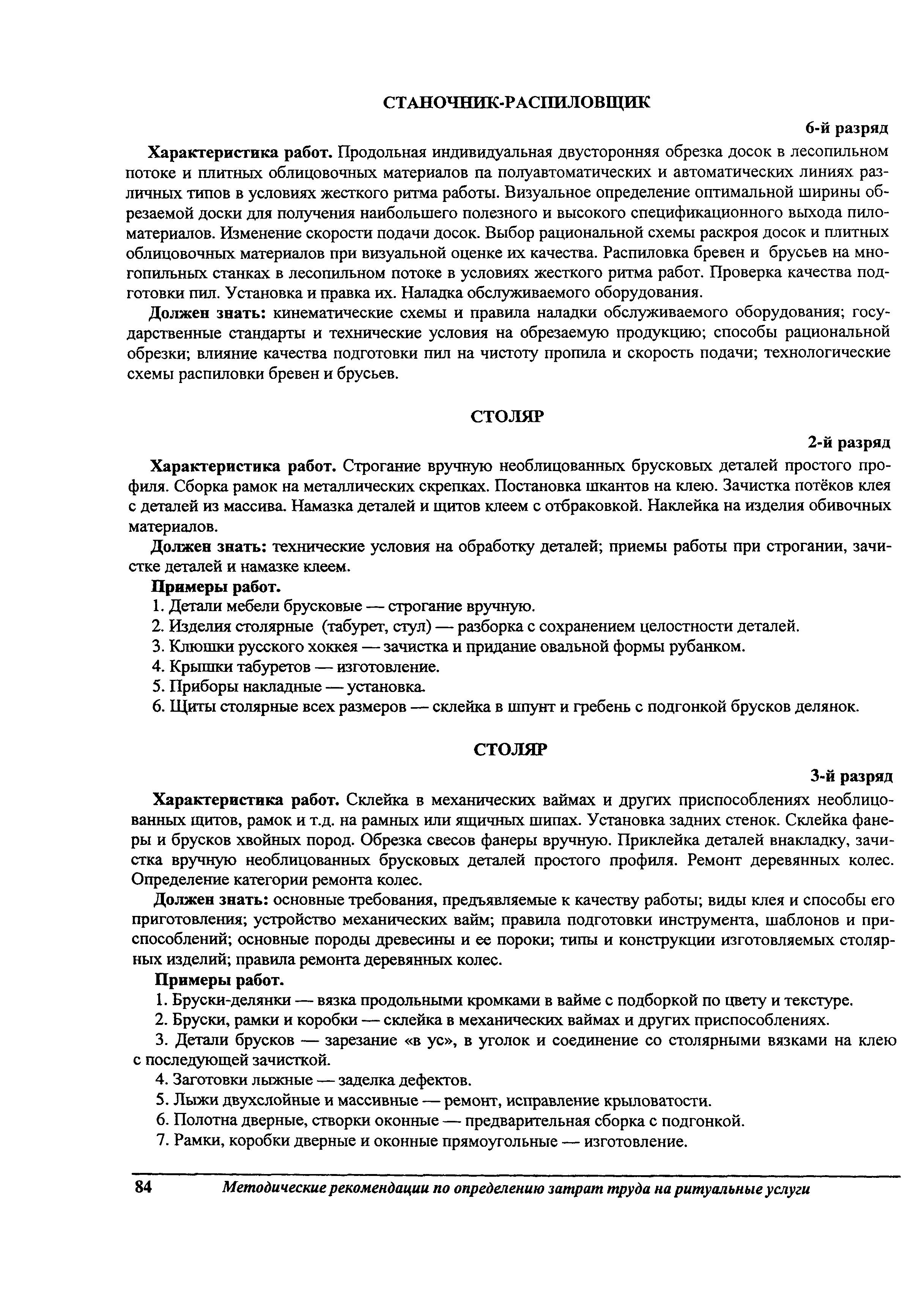 Методические рекомендации по определению затрат труда на оказание ритуальных услуг| Статус: | не действует | | Название рус.: | Методические рекомендации по определению затрат труда на оказание ритуальных услуг | | Дата добавления в базу: | 01.09.2013 | | Дата актуализации: | 01.09.2013 | | Область применения: | Предназначены для определения стоимости ритуальных услуг, финансируемых за счет средств бюджетов Российской Федерации и местных бюджетов (гарантируемый перечень услуг по погребению), а также определения стоимости услуг, предоставляемых сверх гарантированного перечня услуг по погребению за счет средств лица, взявшего на себя обязанность осуществить погребение умершего. | | Оглавление: | 1 Общая часть 2 Нормативная часть 2.1. Нормы обслуживания на работы по ритуальному обслуживанию населения 2.2. Нормы времени на работы по ритуальному обслуживанию населения 2.3. Тарифно-квалификационные характеристики работников ритуального обслуживания населения |