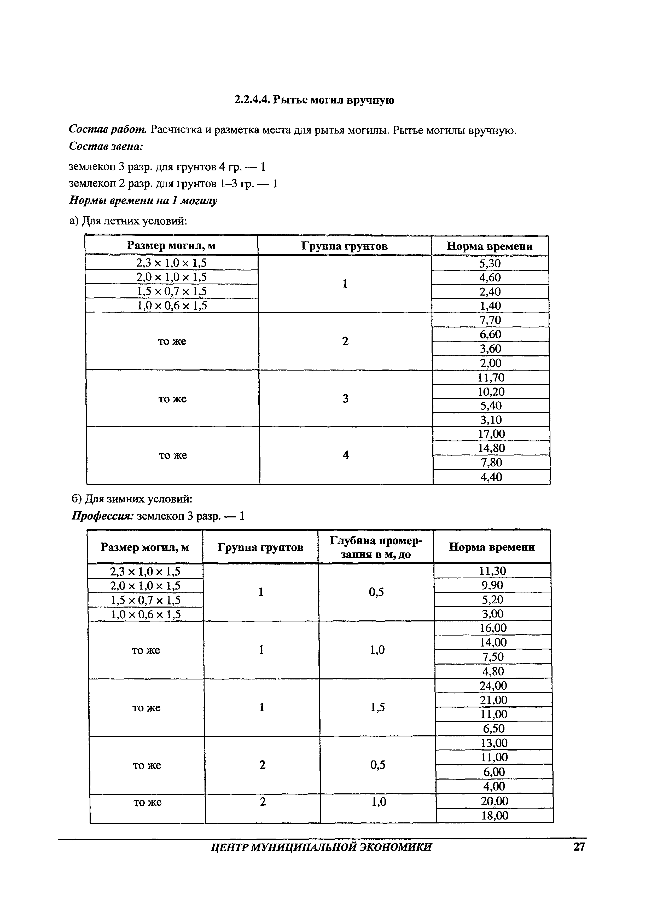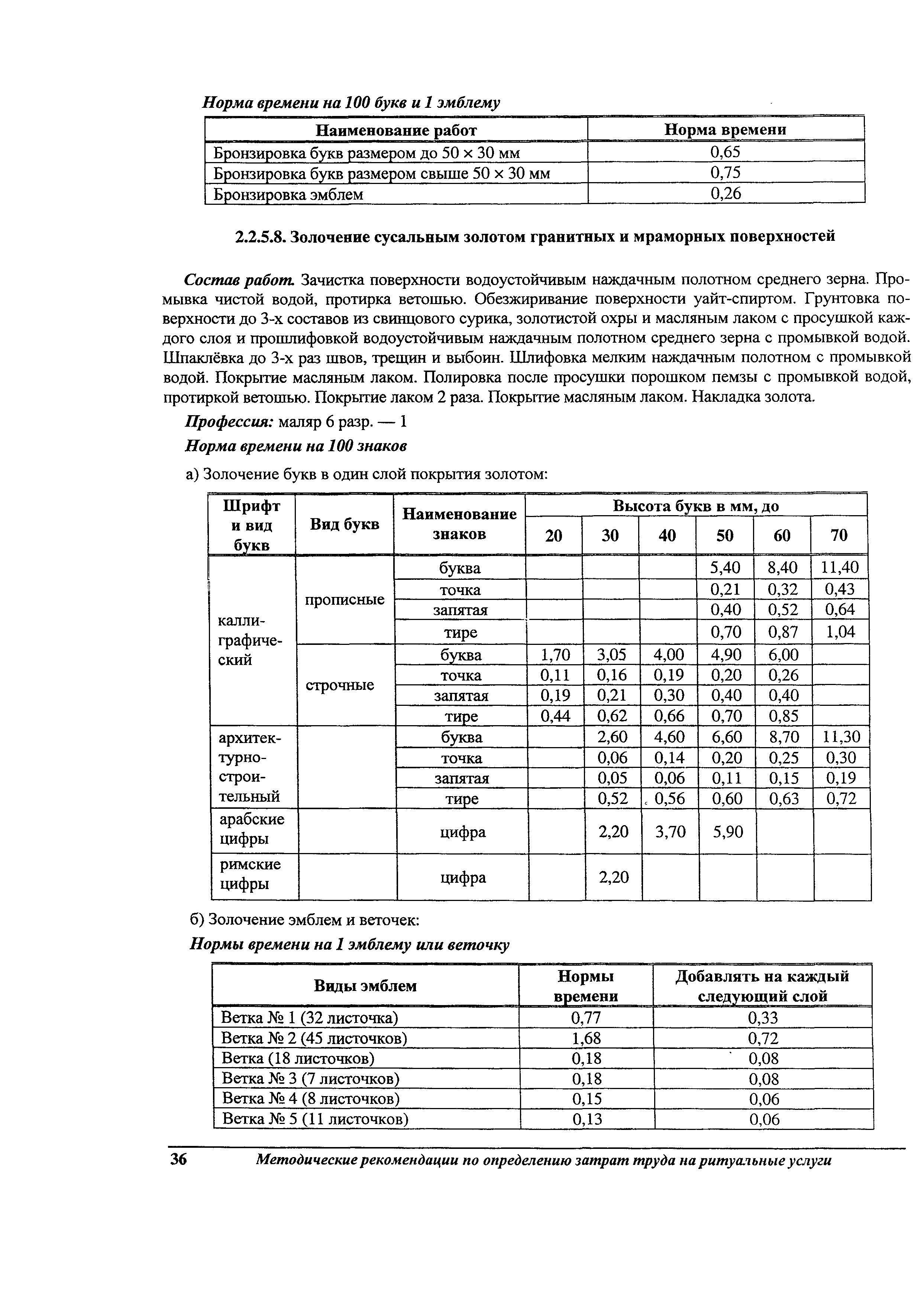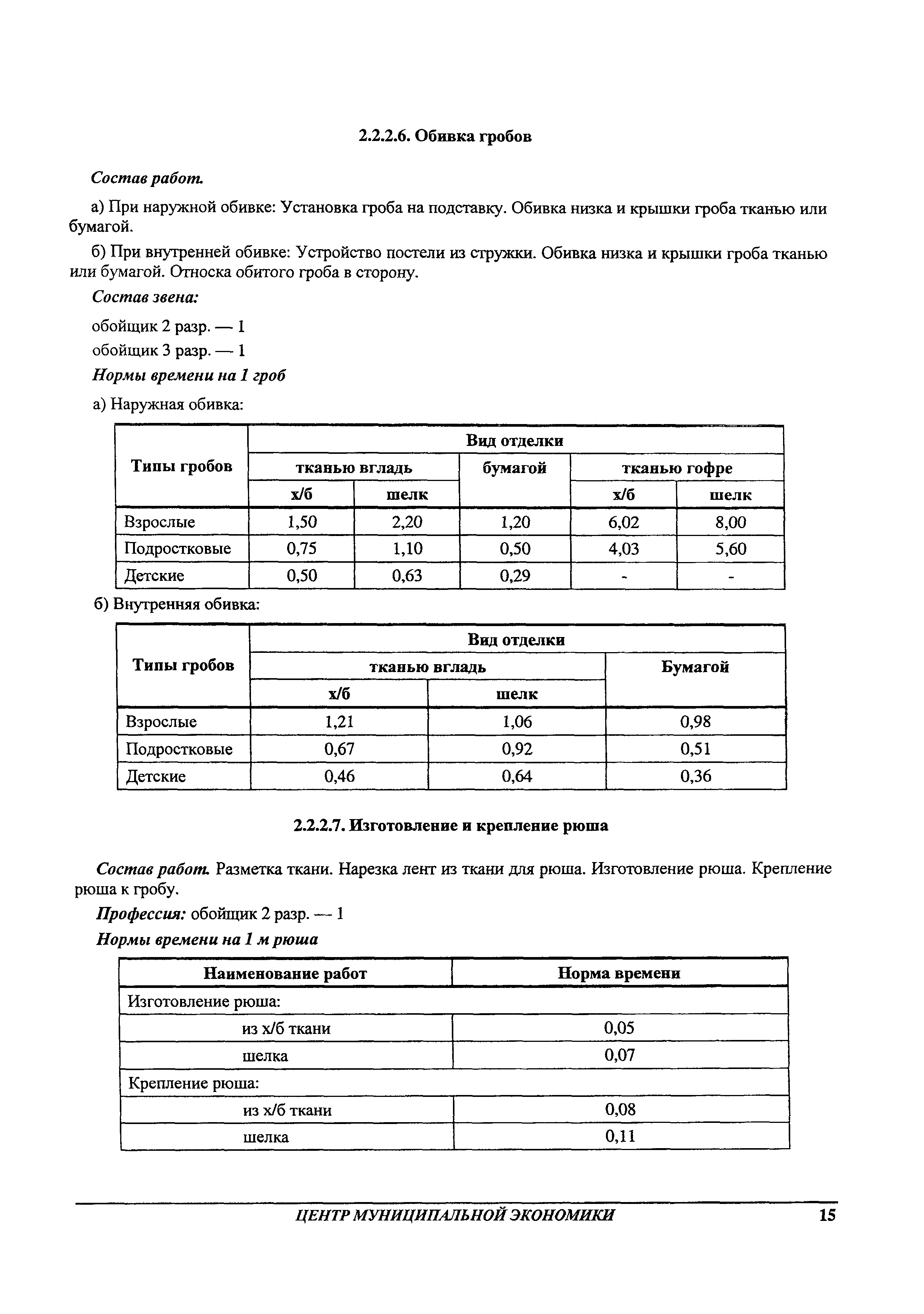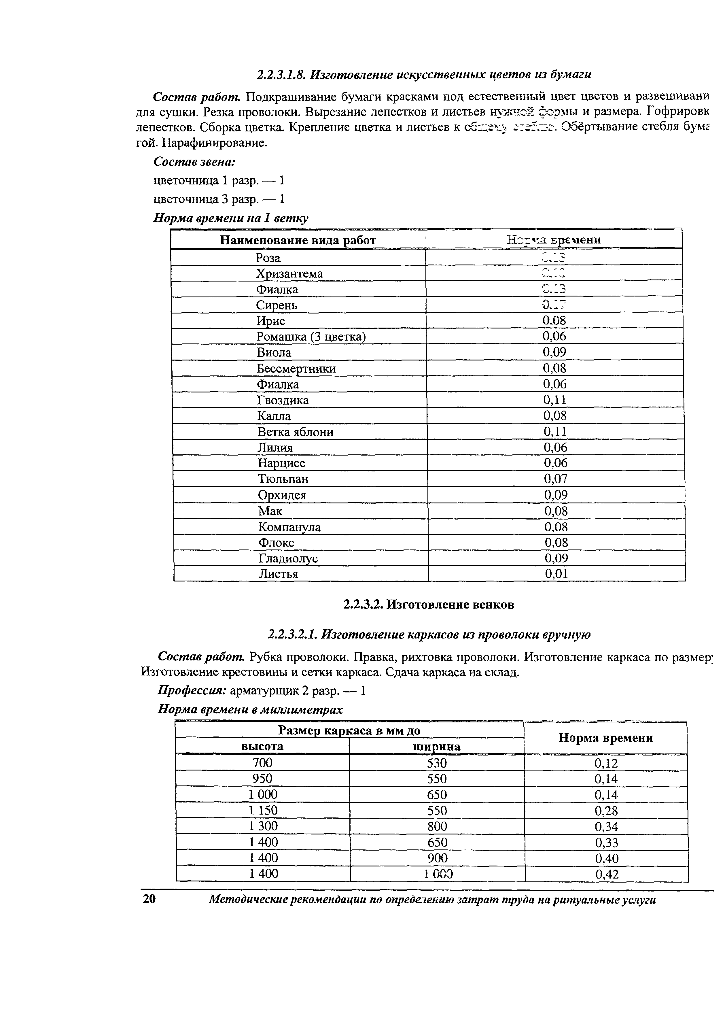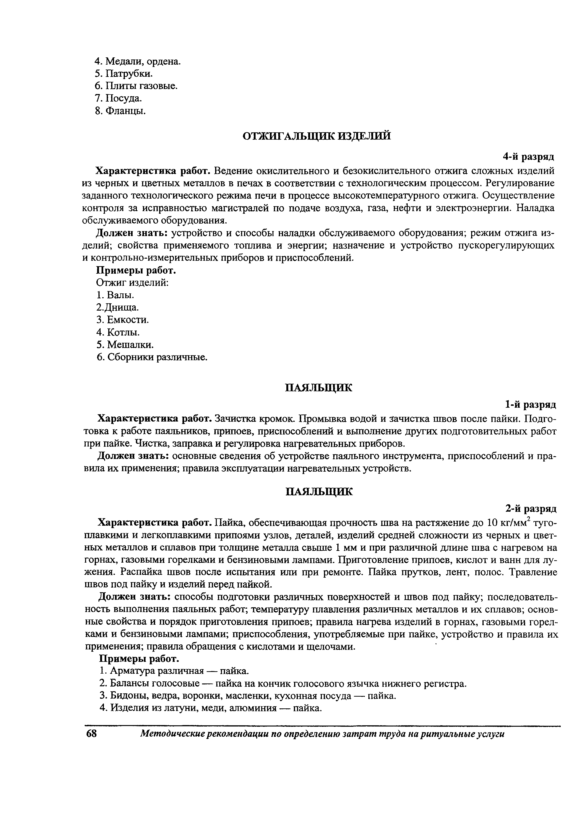 Методические рекомендации по определению затрат труда на оказание ритуальных услуг| Статус: | не действует | | Название рус.: | Методические рекомендации по определению затрат труда на оказание ритуальных услуг | | Дата добавления в базу: | 01.09.2013 | | Дата актуализации: | 01.09.2013 | | Область применения: | Предназначены для определения стоимости ритуальных услуг, финансируемых за счет средств бюджетов Российской Федерации и местных бюджетов (гарантируемый перечень услуг по погребению), а также определения стоимости услуг, предоставляемых сверх гарантированного перечня услуг по погребению за счет средств лица, взявшего на себя обязанность осуществить погребение умершего. | | Оглавление: | 1 Общая часть 2 Нормативная часть 2.1. Нормы обслуживания на работы по ритуальному обслуживанию населения 2.2. Нормы времени на работы по ритуальному обслуживанию населения 2.3. Тарифно-квалификационные характеристики работников ритуального обслуживания населения |