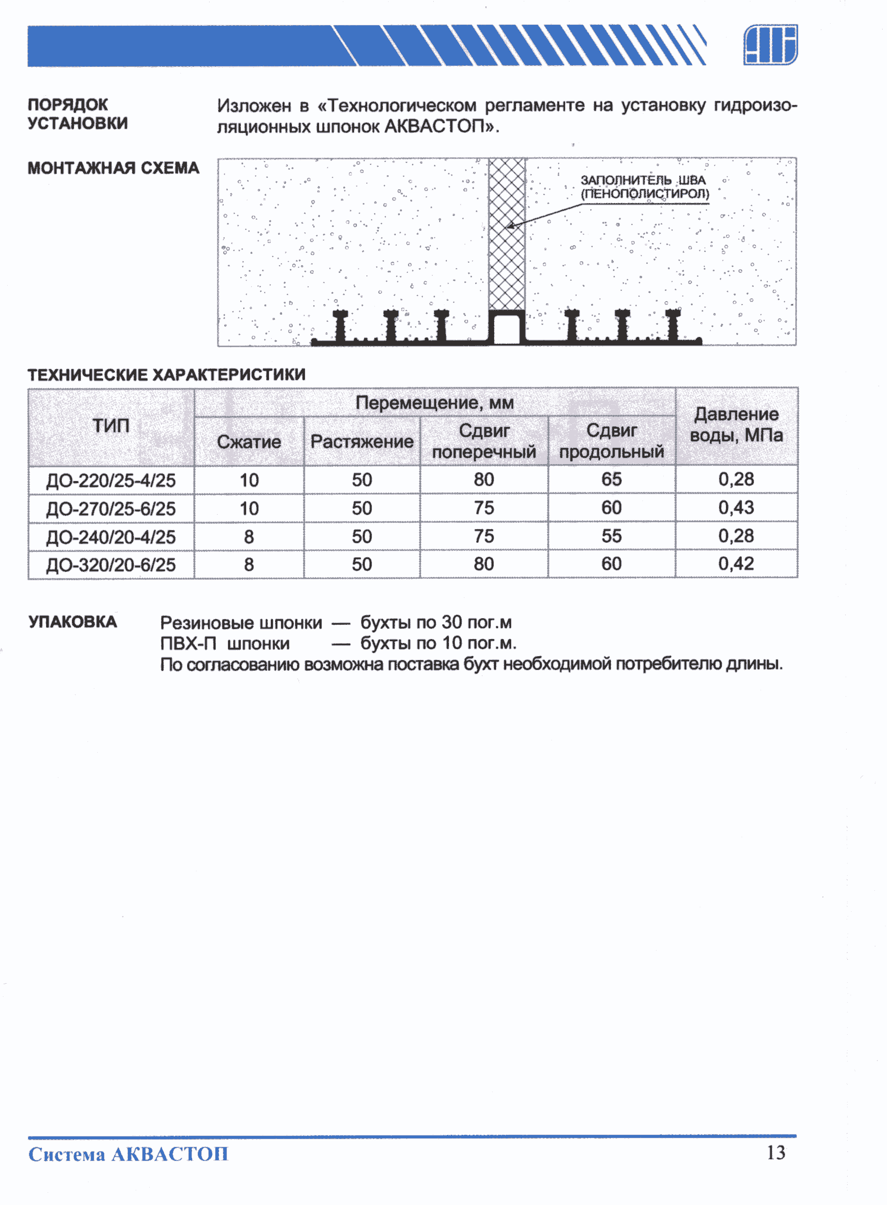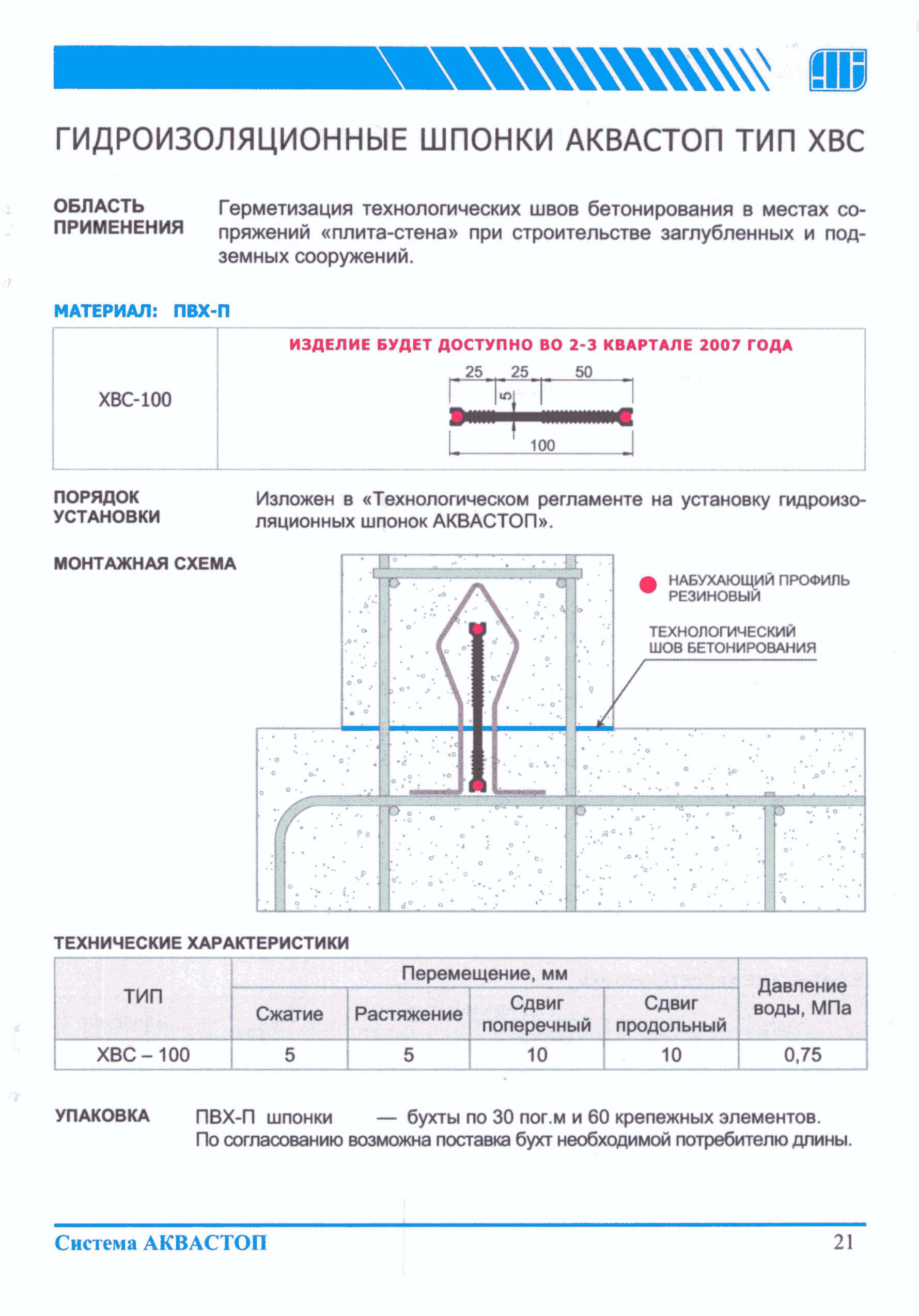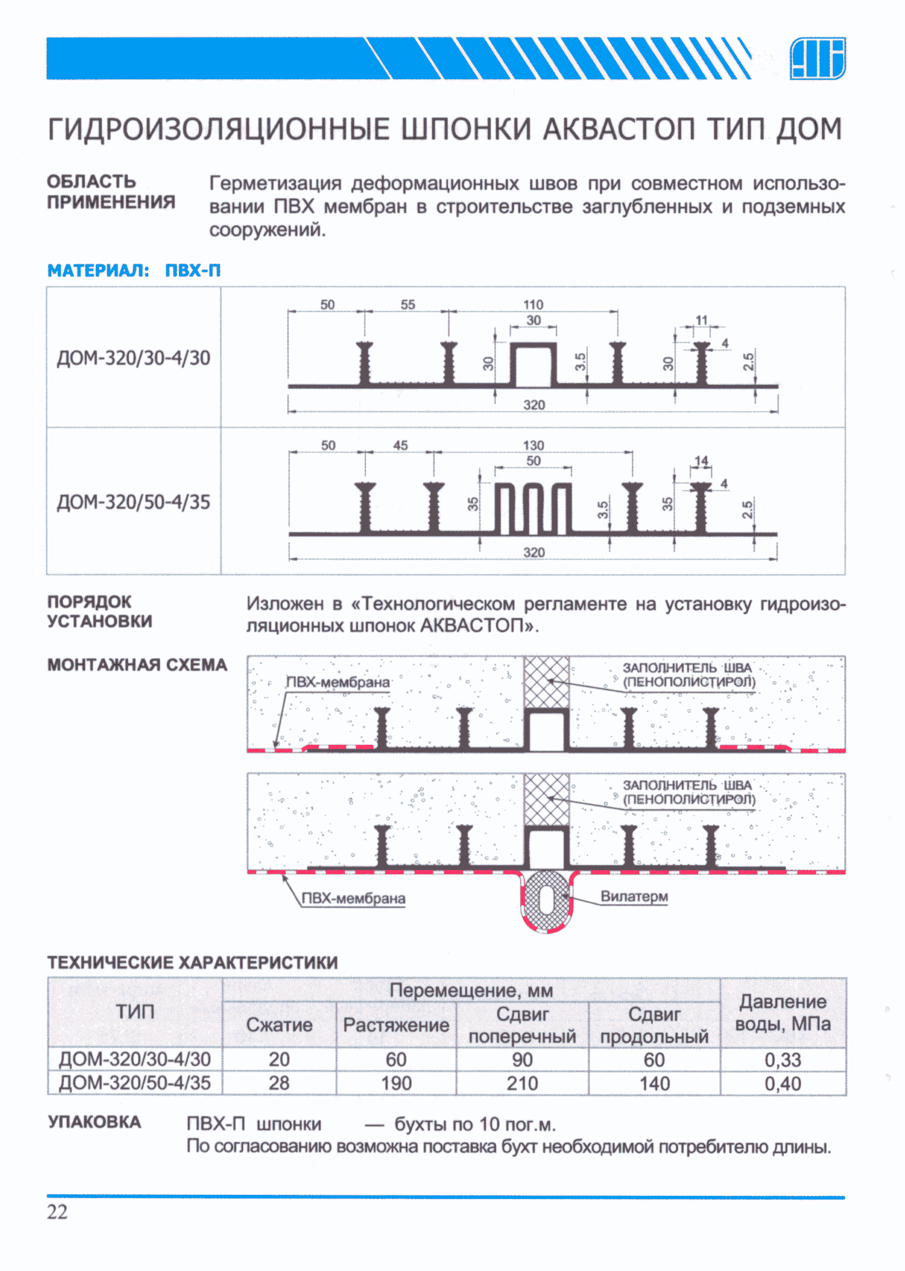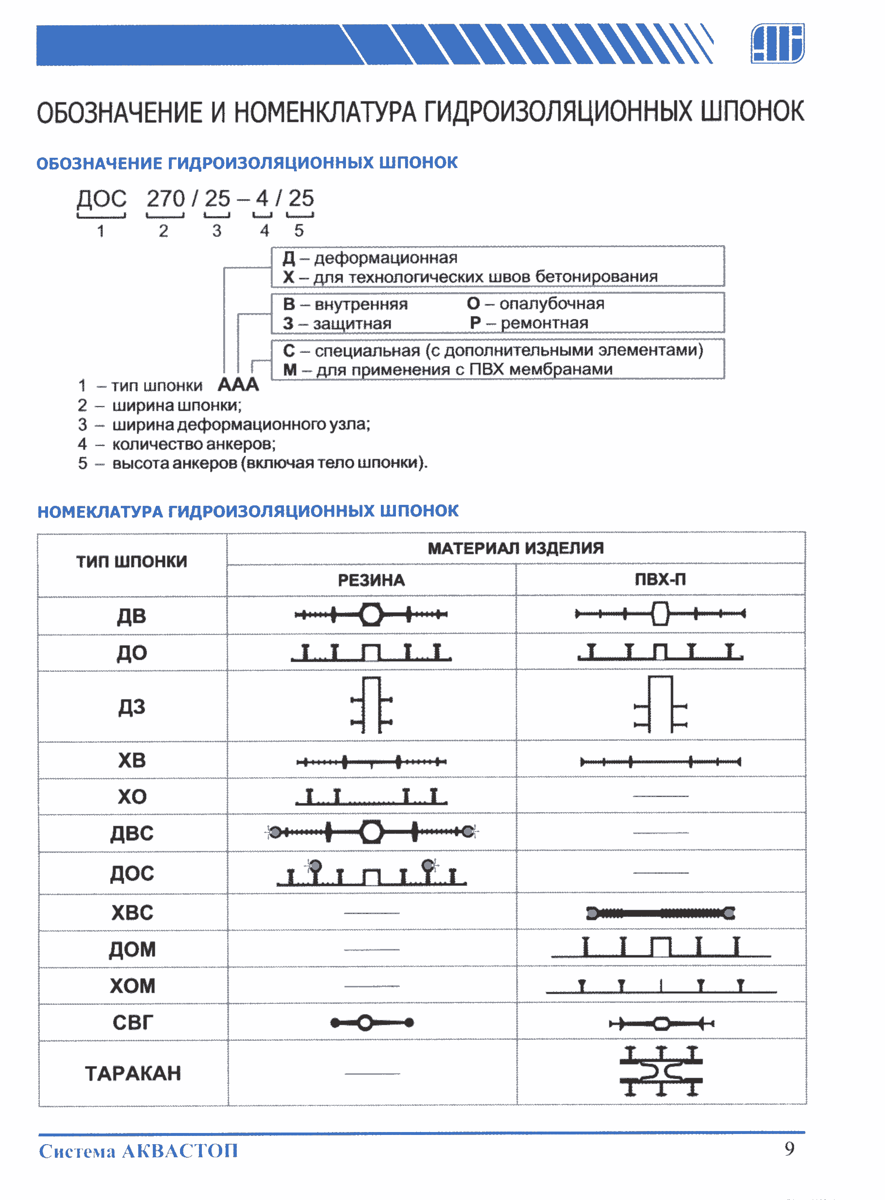 | Оглавление: | Общие положения Технические данные материалов изделий Обозначение и номенклатура гидроизоляционных шпонок Гидроизоляционные шпонки АКВАСТОП тип ДВ Гидроизоляционные шпонки АКВАСТОП тип ДО Гидроизоляционные шпонки АКВАСТОП тип ДЗ Гидроизоляционные шпонки АКВАСТОП тип ХВ Гидроизоляционные шпонки АКВАСТОП тип ХО Гидроизоляционные шпонки АКВАСТОП тип ДВС Гидроизоляционные шпонки АКВАСТОП тип ДОС Гидроизоляционные шпонки АКВАСТОП тип ХВС Гидроизоляционные шпонки АКВАСТОП тип ДОМ Гидроизоляционные шпонки АКВАСТОП тип ХОМ Гидроизоляционные шпонки АКВАСТОП тип ДР Гидроизоляционные шпонки АКВАСТОП тип ТАРАКАН Профильное уплотнение АКВАСТОП тип СВГ Профильное уплотнение АКВАСТОП тип ЕЛОЧКА Деформационные швы АКВАСТОП тип ДШВ Деформационные швы АКВАСТОП тип ДШН Деформационные швы АКВАСТОП тип ДШС Декоративный профиль АКВАСТОП тип ПС Система АКВАСТОП ГЕРМОШОВ Система АКВАСТОП ИНЖЕКТО |