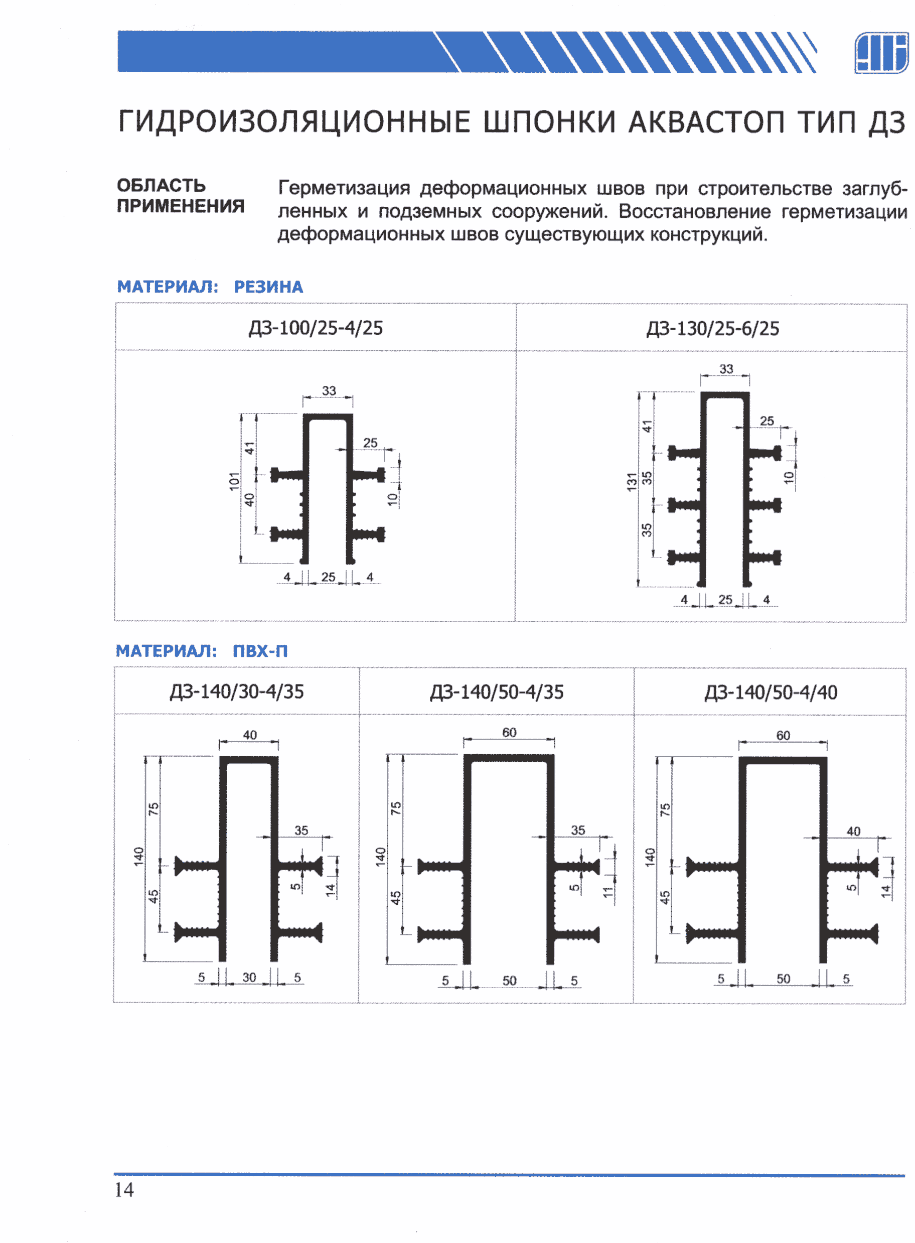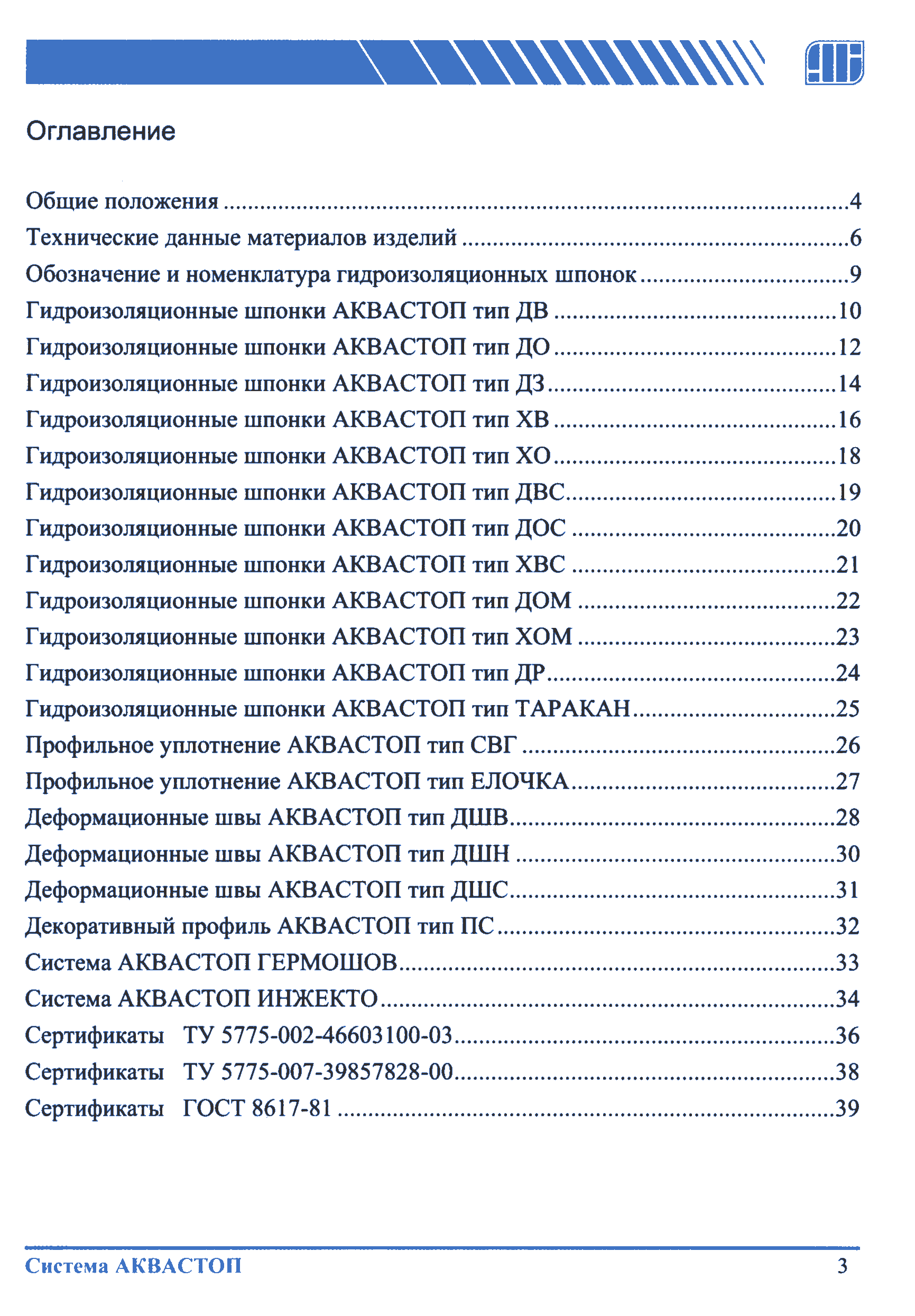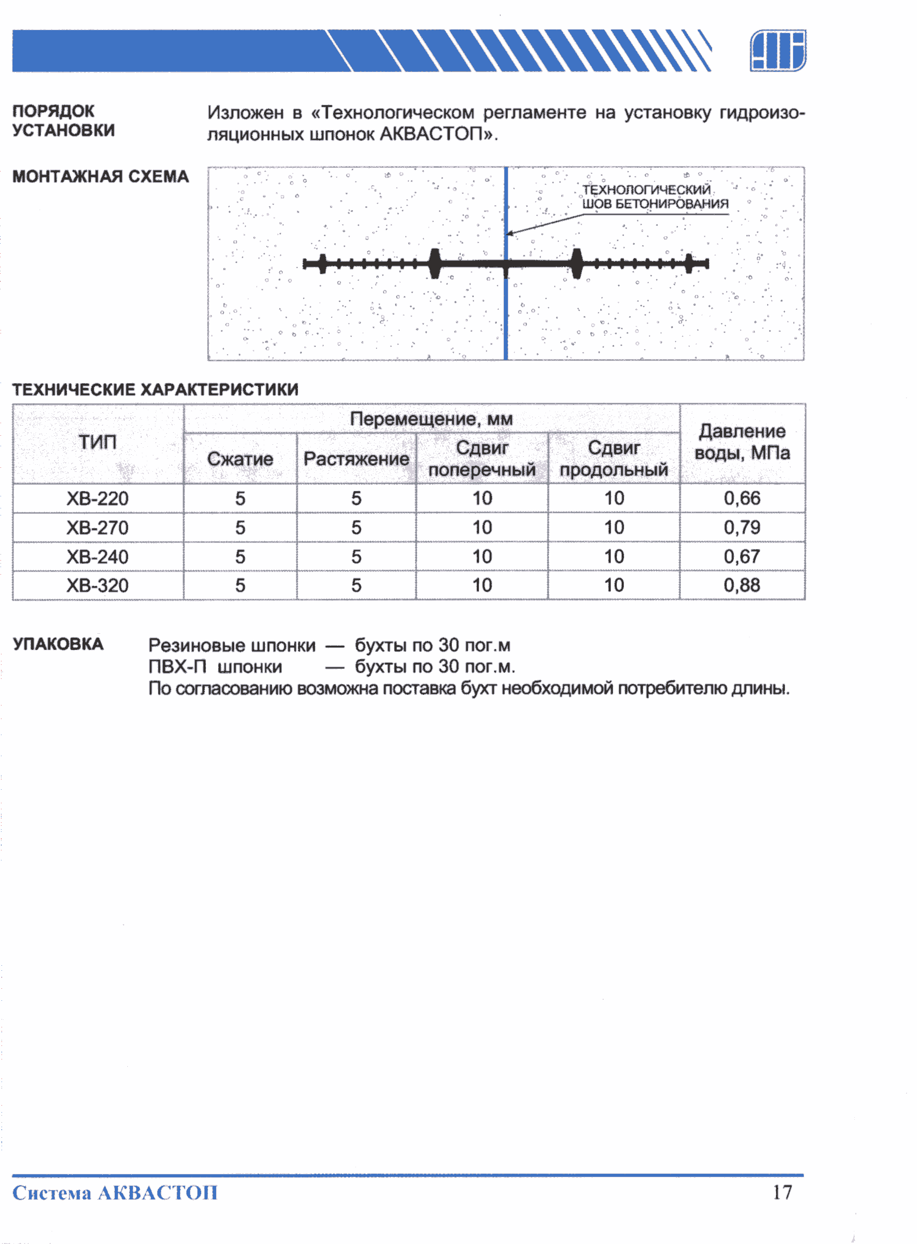 | Оглавление: | Общие положения Технические данные материалов изделий Обозначение и номенклатура гидроизоляционных шпонок Гидроизоляционные шпонки АКВАСТОП тип ДВ Гидроизоляционные шпонки АКВАСТОП тип ДО Гидроизоляционные шпонки АКВАСТОП тип ДЗ Гидроизоляционные шпонки АКВАСТОП тип ХВ Гидроизоляционные шпонки АКВАСТОП тип ХО Гидроизоляционные шпонки АКВАСТОП тип ДВС Гидроизоляционные шпонки АКВАСТОП тип ДОС Гидроизоляционные шпонки АКВАСТОП тип ХВС Гидроизоляционные шпонки АКВАСТОП тип ДОМ Гидроизоляционные шпонки АКВАСТОП тип ХОМ Гидроизоляционные шпонки АКВАСТОП тип ДР Гидроизоляционные шпонки АКВАСТОП тип ТАРАКАН Профильное уплотнение АКВАСТОП тип СВГ Профильное уплотнение АКВАСТОП тип ЕЛОЧКА Деформационные швы АКВАСТОП тип ДШВ Деформационные швы АКВАСТОП тип ДШН Деформационные швы АКВАСТОП тип ДШС Декоративный профиль АКВАСТОП тип ПС Система АКВАСТОП ГЕРМОШОВ Система АКВАСТОП ИНЖЕКТО |