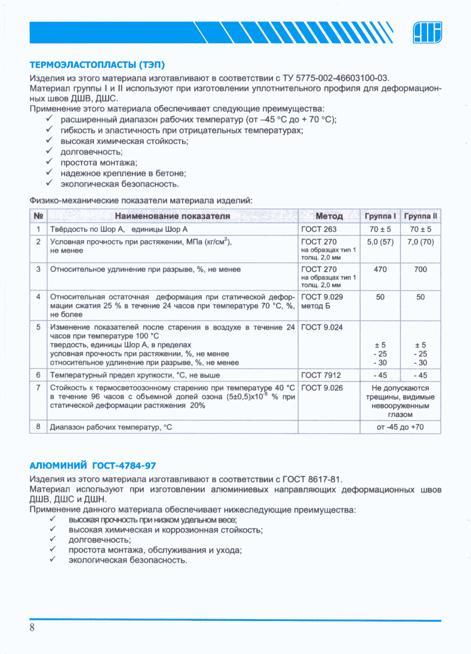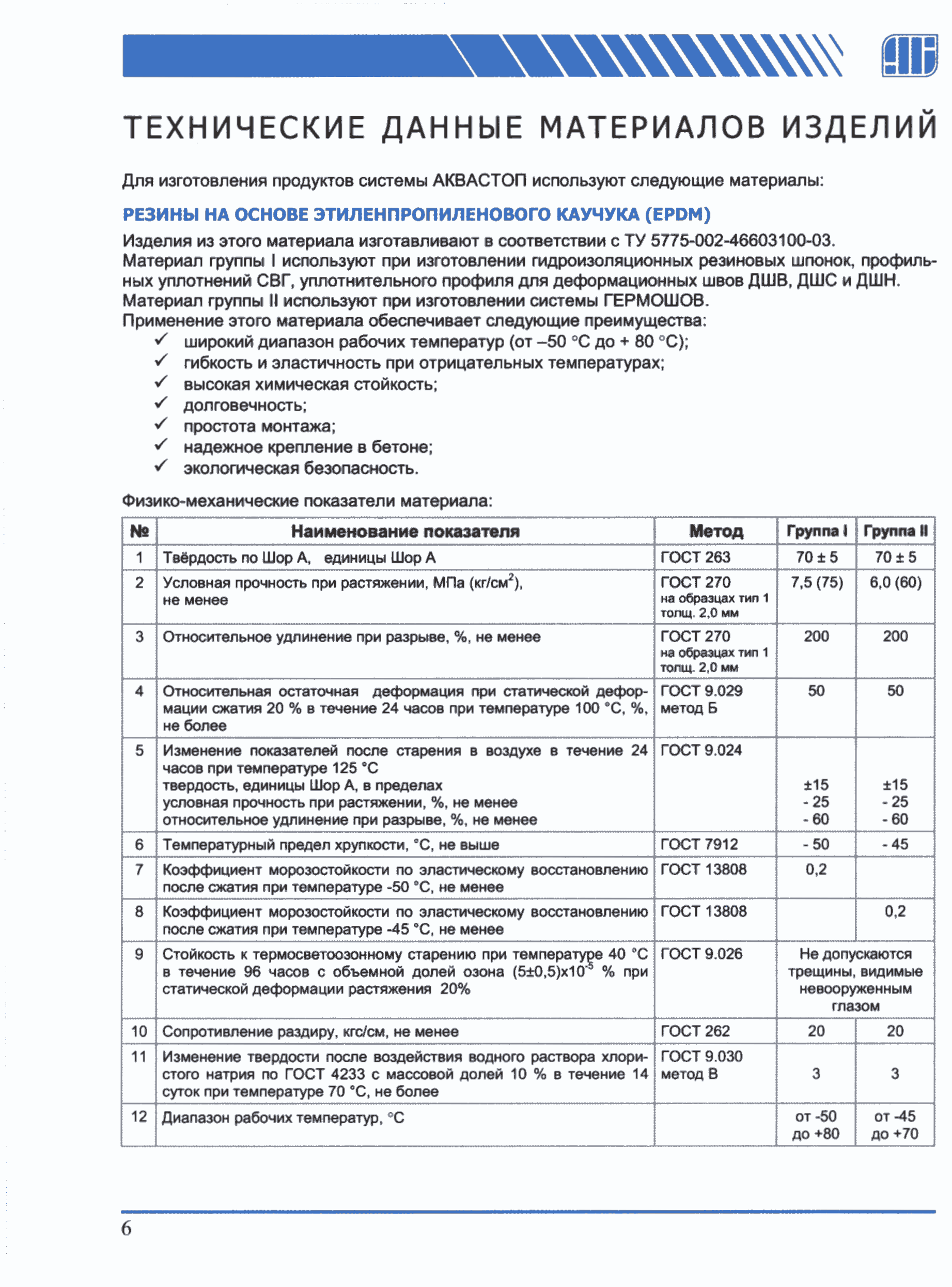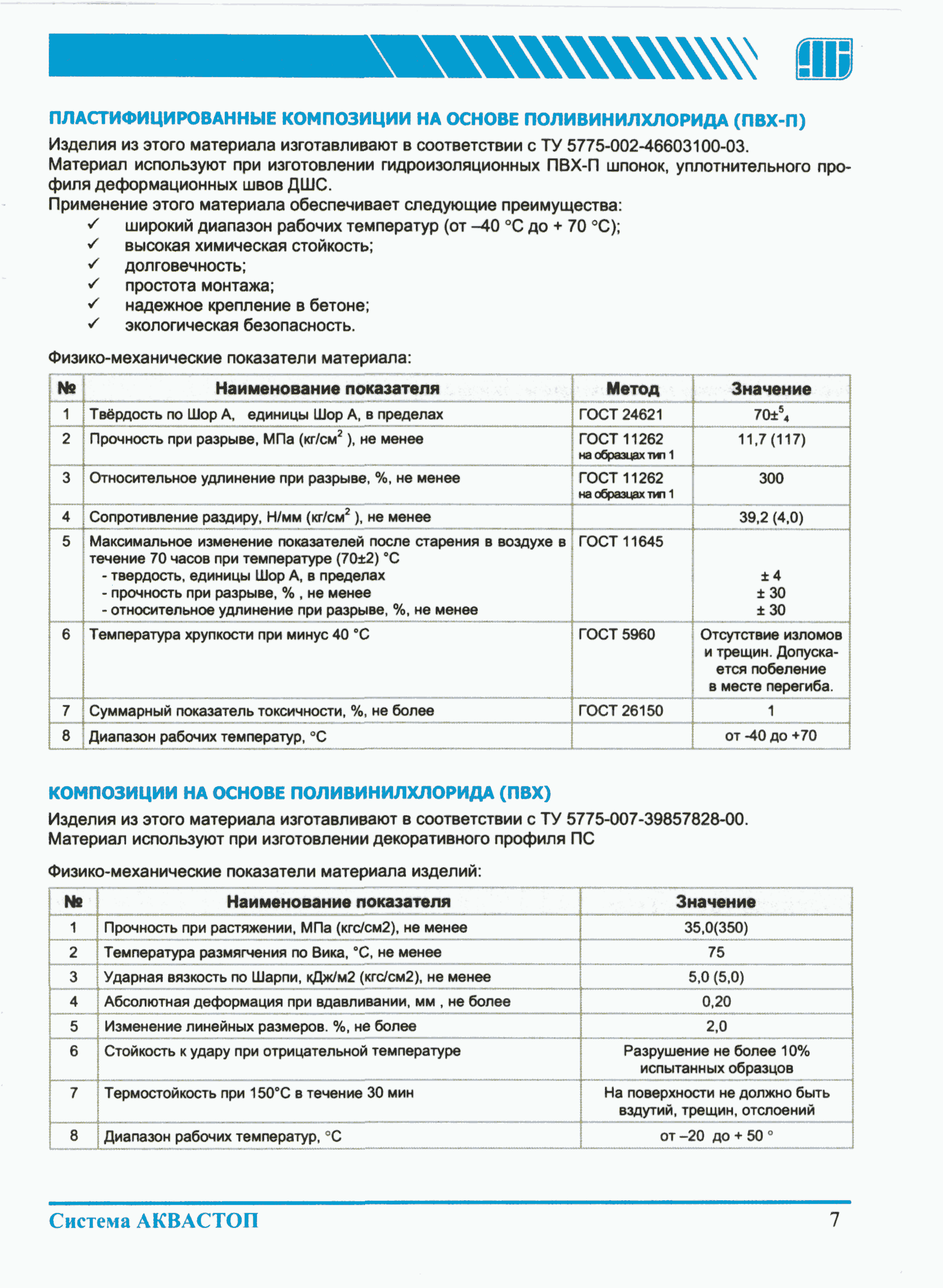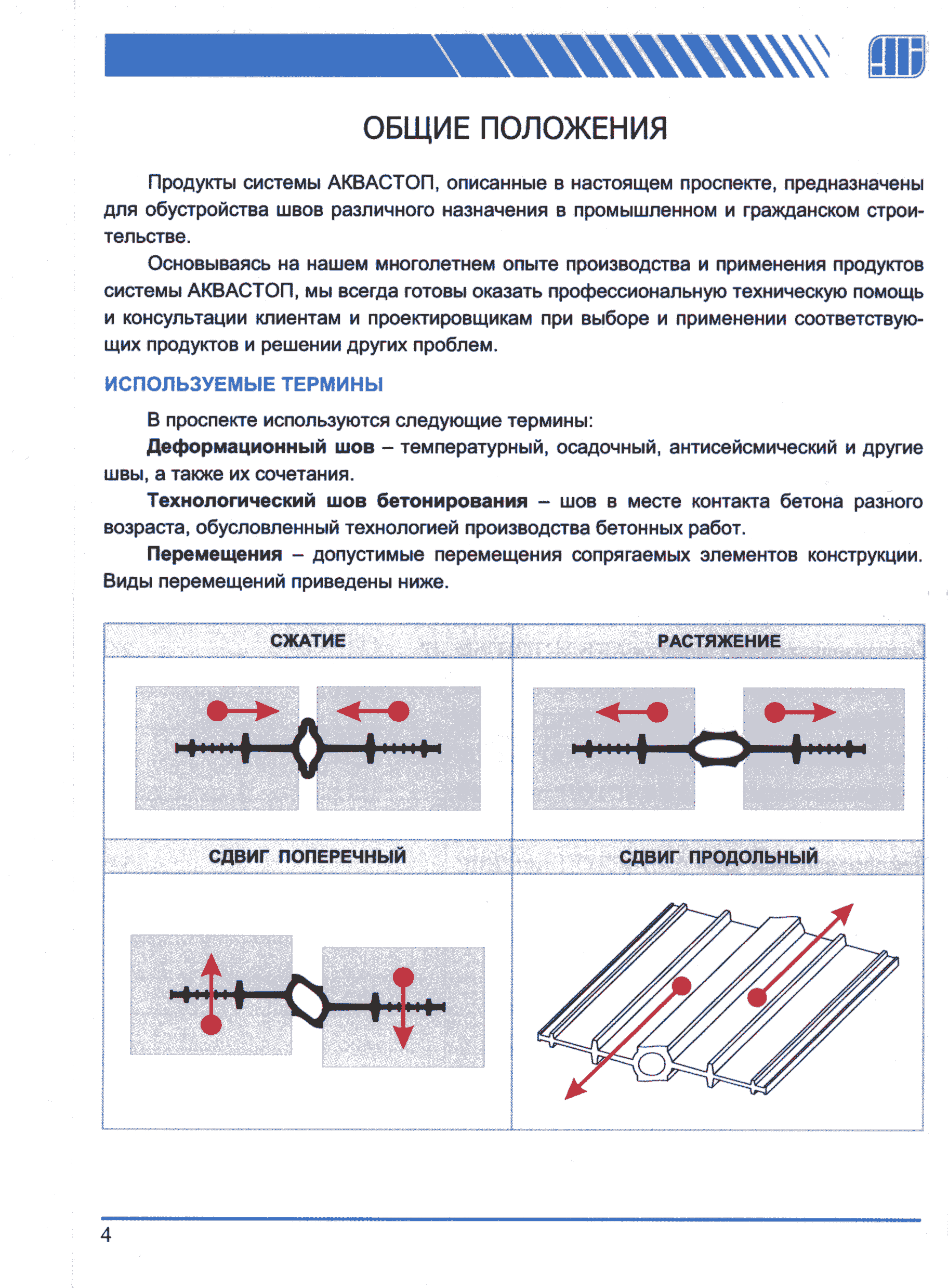| Оглавление: | Общие положения Технические данные материалов изделий Обозначение и номенклатура гидроизоляционных шпонок Гидроизоляционные шпонки АКВАСТОП тип ДВ Гидроизоляционные шпонки АКВАСТОП тип ДО Гидроизоляционные шпонки АКВАСТОП тип ДЗ Гидроизоляционные шпонки АКВАСТОП тип ХВ Гидроизоляционные шпонки АКВАСТОП тип ХО Гидроизоляционные шпонки АКВАСТОП тип ДВС Гидроизоляционные шпонки АКВАСТОП тип ДОС Гидроизоляционные шпонки АКВАСТОП тип ХВС Гидроизоляционные шпонки АКВАСТОП тип ДОМ Гидроизоляционные шпонки АКВАСТОП тип ХОМ Гидроизоляционные шпонки АКВАСТОП тип ДР Гидроизоляционные шпонки АКВАСТОП тип ТАРАКАН Профильное уплотнение АКВАСТОП тип СВГ Профильное уплотнение АКВАСТОП тип ЕЛОЧКА Деформационные швы АКВАСТОП тип ДШВ Деформационные швы АКВАСТОП тип ДШН Деформационные швы АКВАСТОП тип ДШС Декоративный профиль АКВАСТОП тип ПС Система АКВАСТОП ГЕРМОШОВ Система АКВАСТОП ИНЖЕКТО |