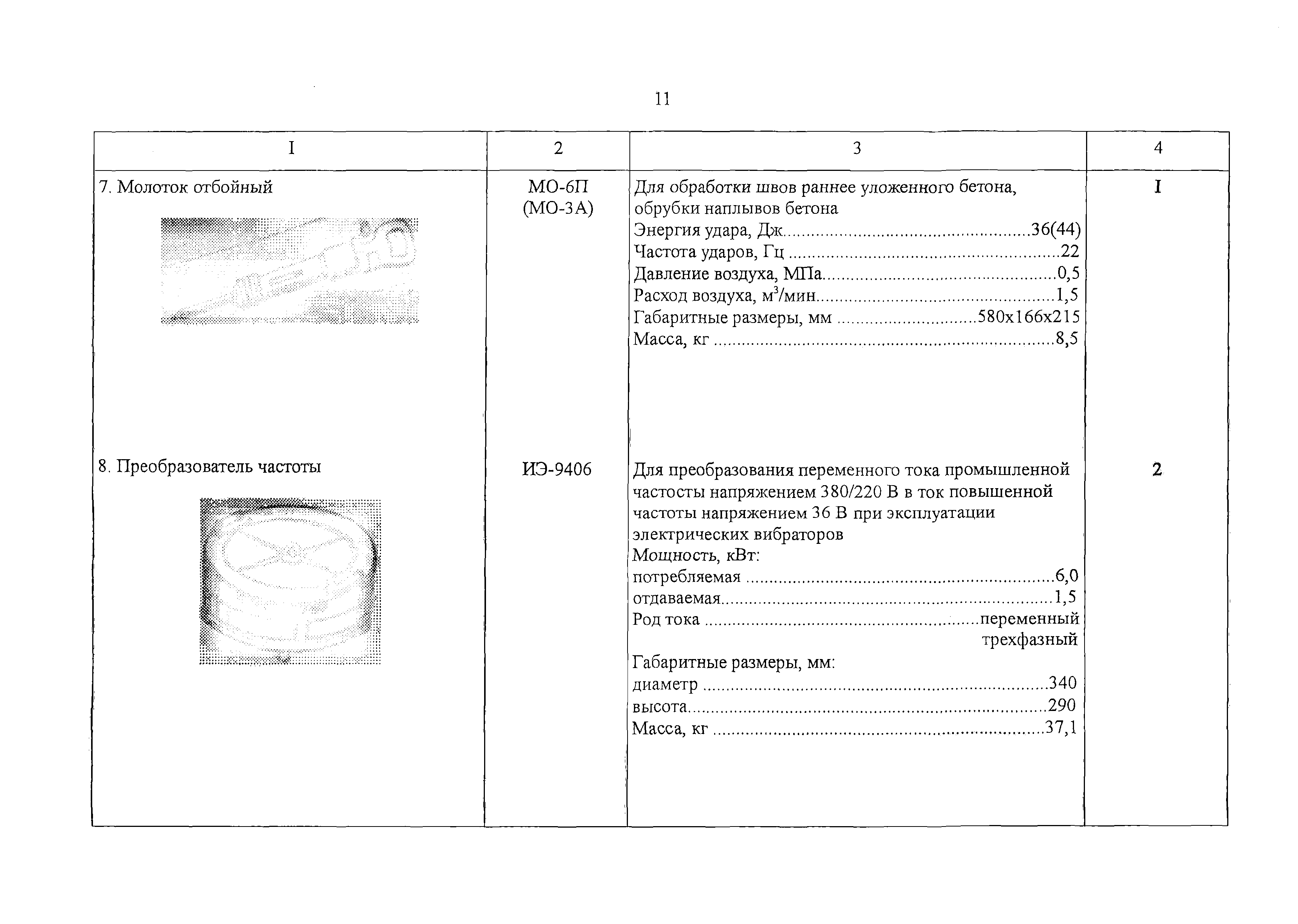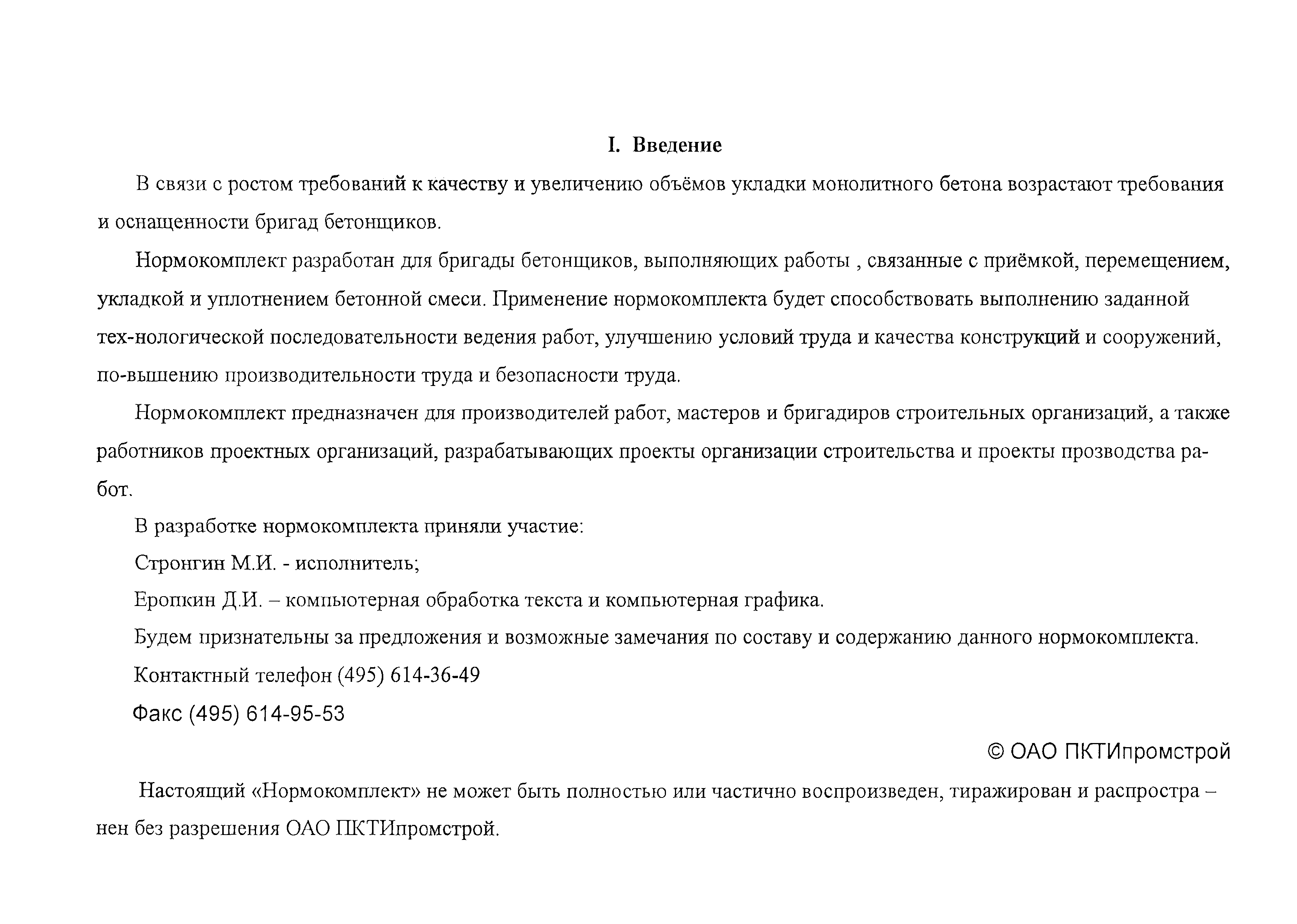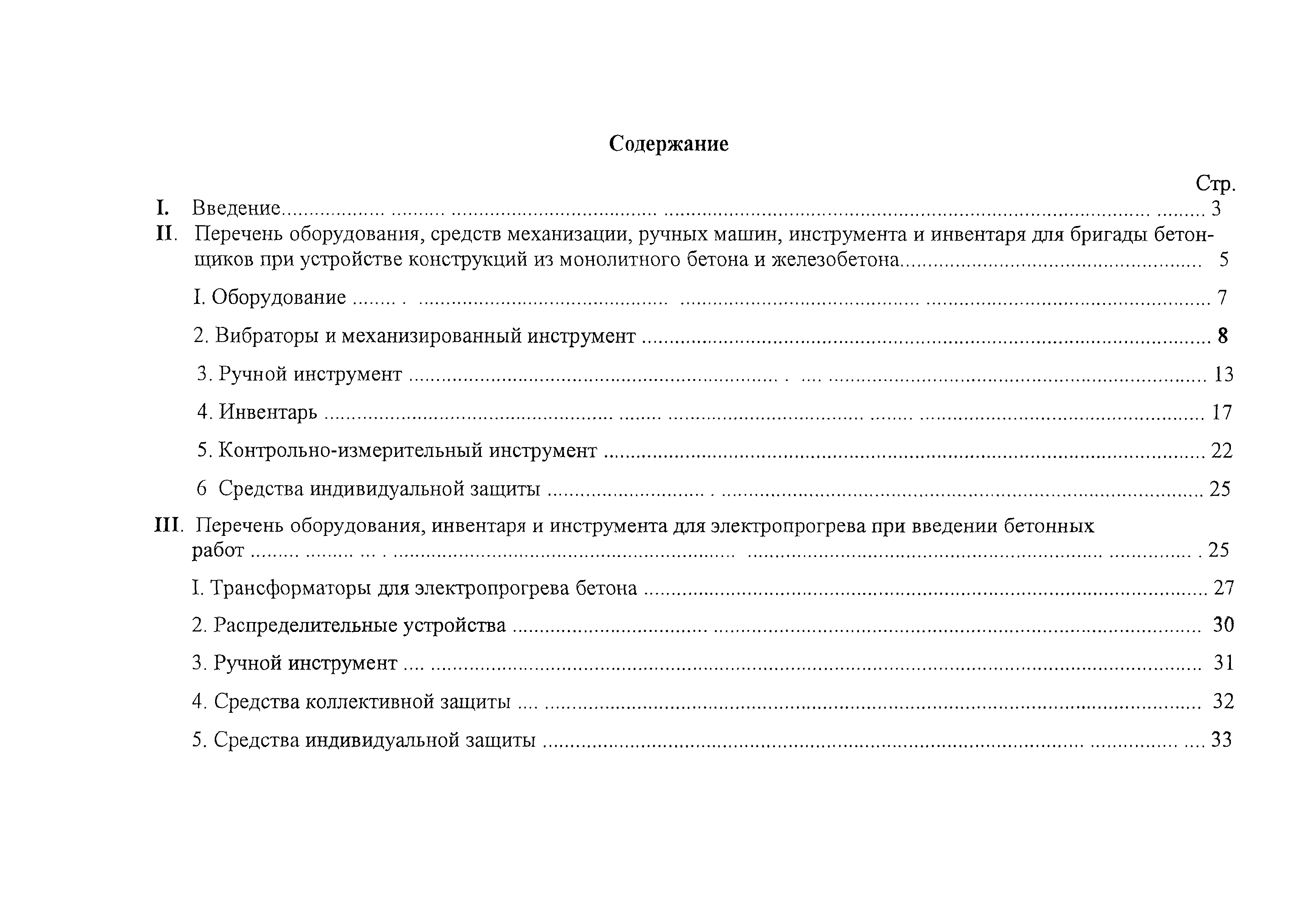 | Оглавление: | I. Введение II. Перечень оборудования, средств механизации, ручных машин, инструмента и инвентаря для бригады бетонщиков при устройстве конструкций из монолитного бетона и железобетона 1. Оборудование 2. Вибраторы и механизированный инструмент 3. Ручной инструмент 4. Инвентарь 5. Контрольно-измерительный инструмент 6. Средства индивидуальной защиты III. Перечень оборудования, инвентаря и инструмента для электропрогрева при введении бетонных работ 1. Трансформаторы для электропрогрева бетона 2. Распределительные устройства 3. Ручной инструмент 4. Средства коллективной защиты 5. Средства индивидуальной защиты |