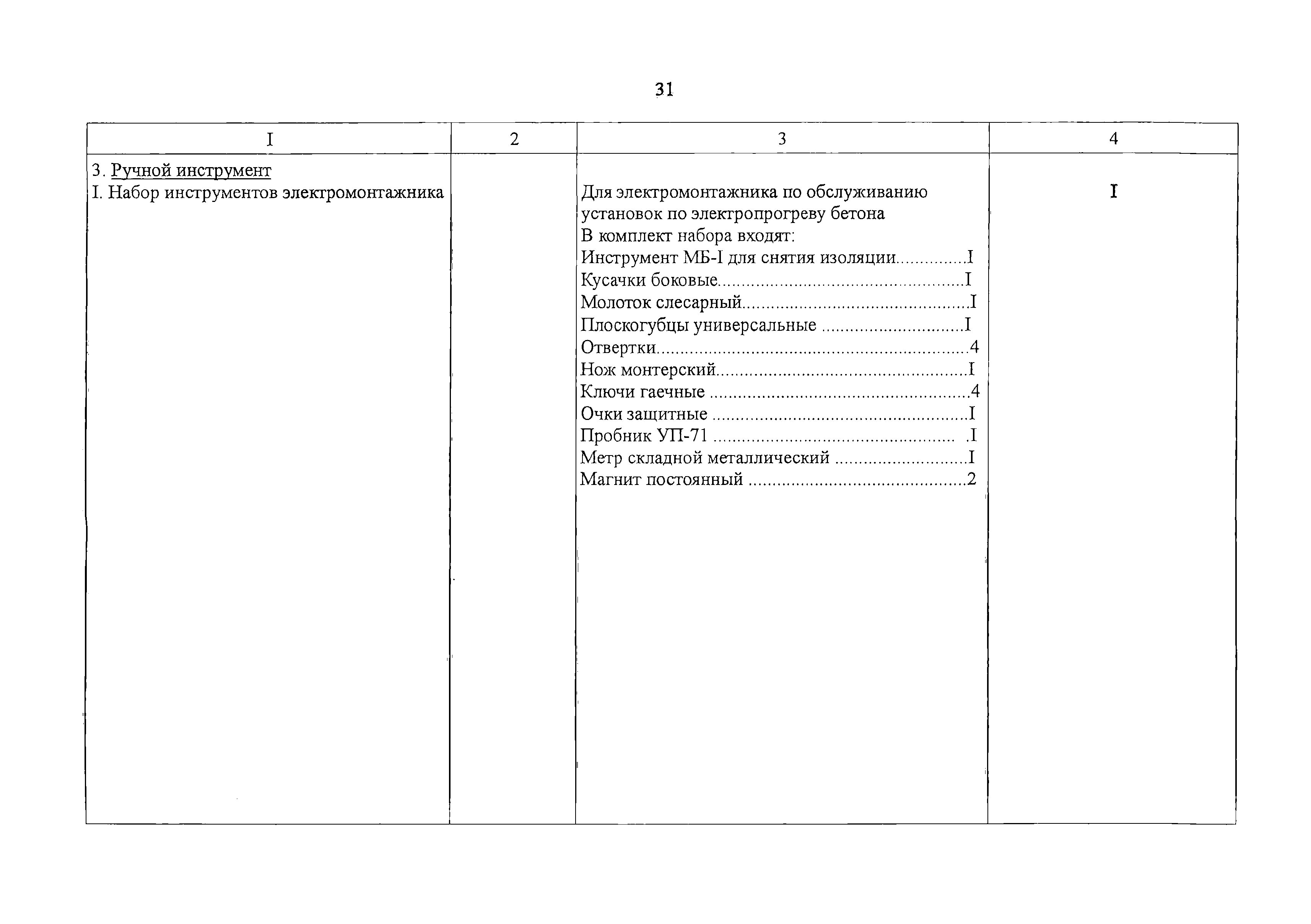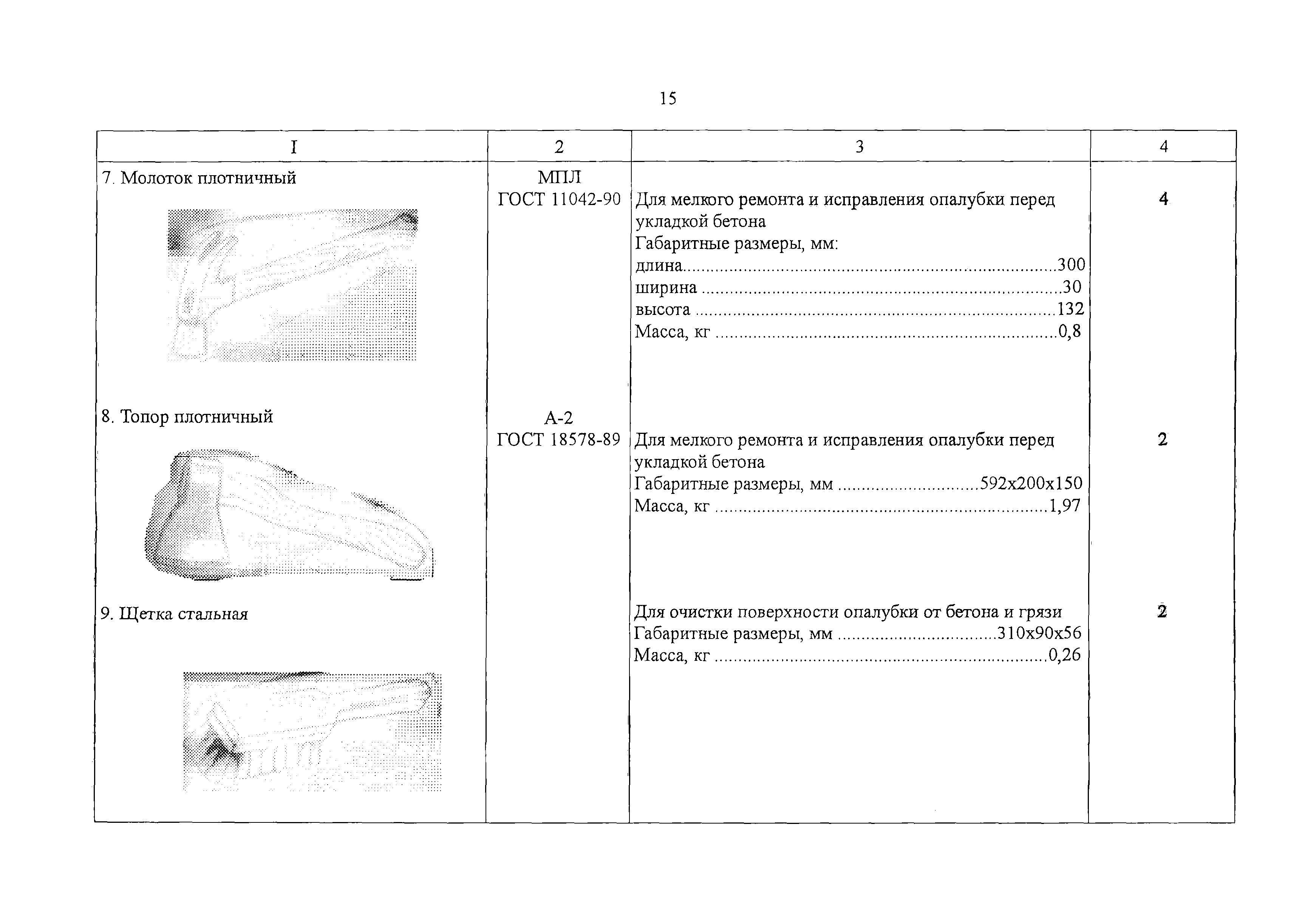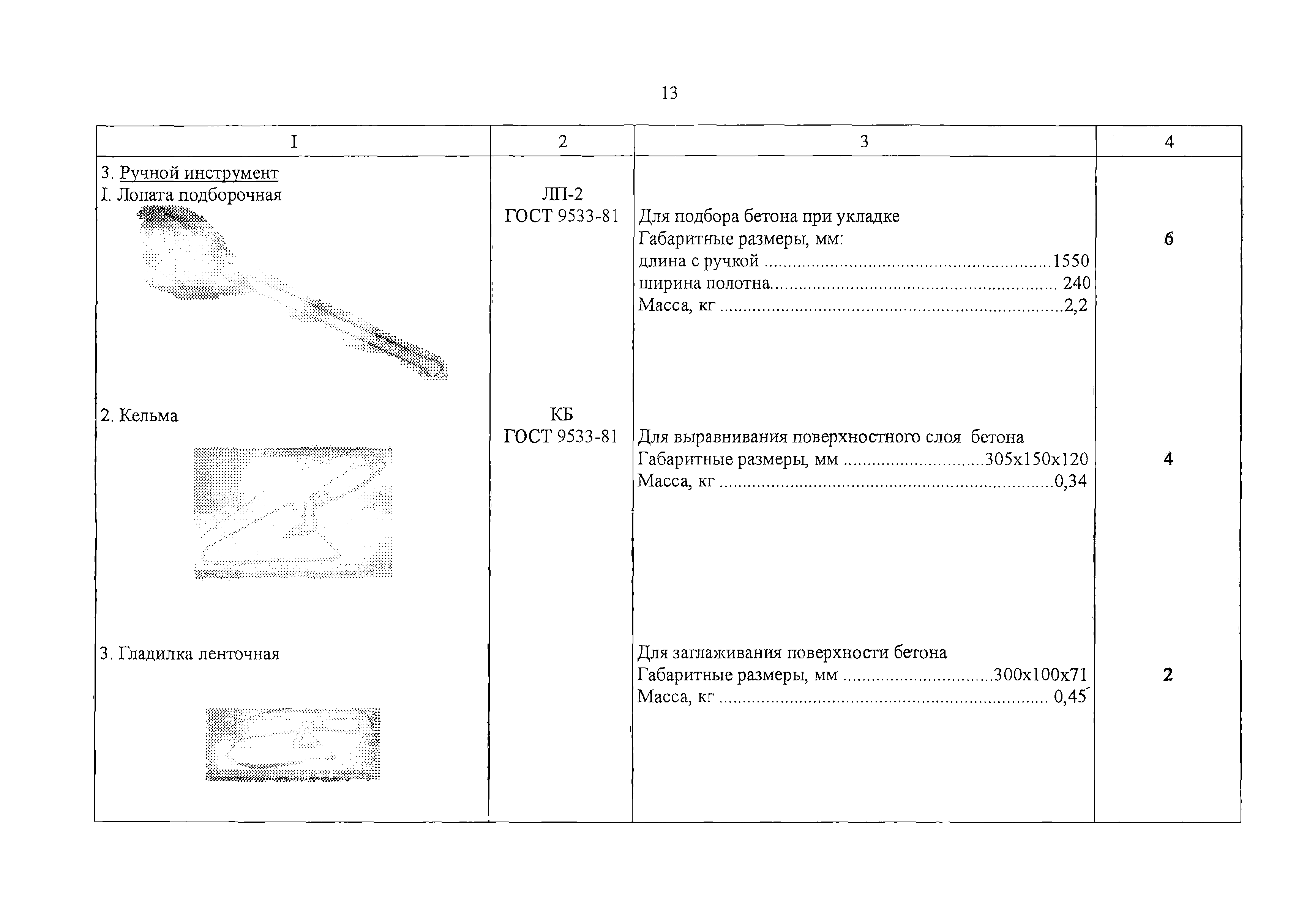 | Оглавление: | I. Введение II. Перечень оборудования, средств механизации, ручных машин, инструмента и инвентаря для бригады бетонщиков при устройстве конструкций из монолитного бетона и железобетона 1. Оборудование 2. Вибраторы и механизированный инструмент 3. Ручной инструмент 4. Инвентарь 5. Контрольно-измерительный инструмент 6. Средства индивидуальной защиты III. Перечень оборудования, инвентаря и инструмента для электропрогрева при введении бетонных работ 1. Трансформаторы для электропрогрева бетона 2. Распределительные устройства 3. Ручной инструмент 4. Средства коллективной защиты 5. Средства индивидуальной защиты |