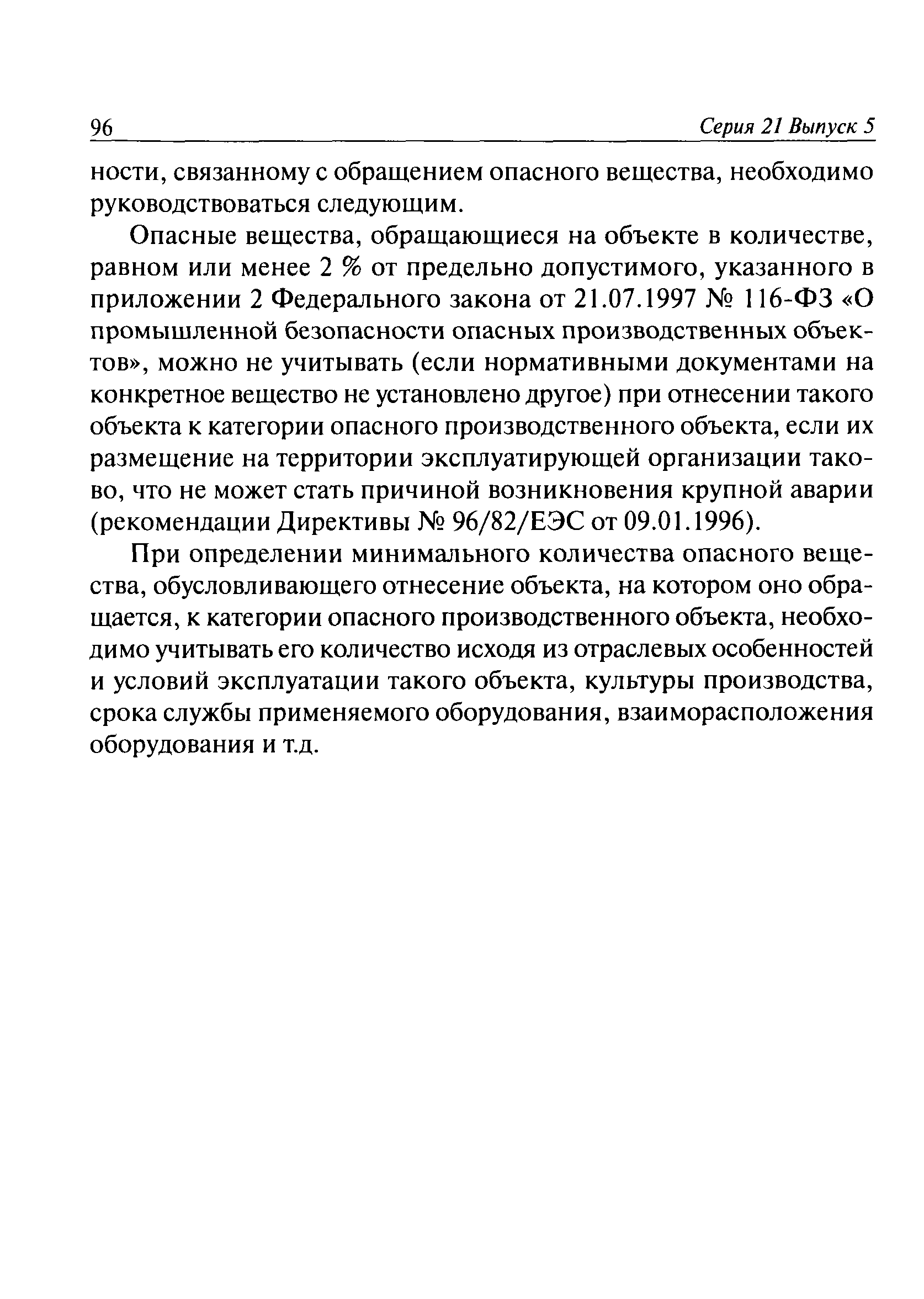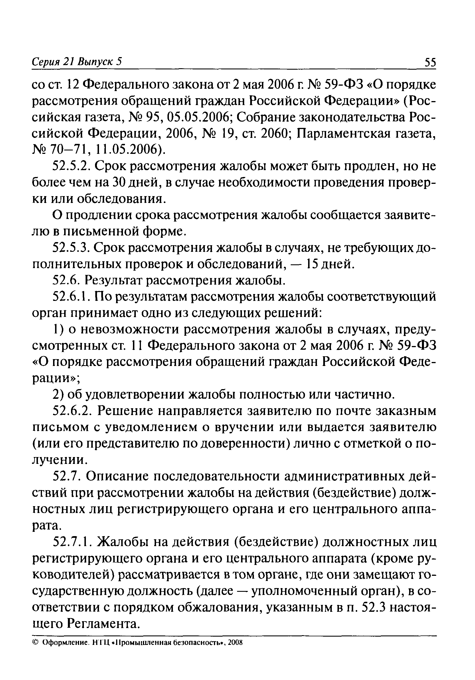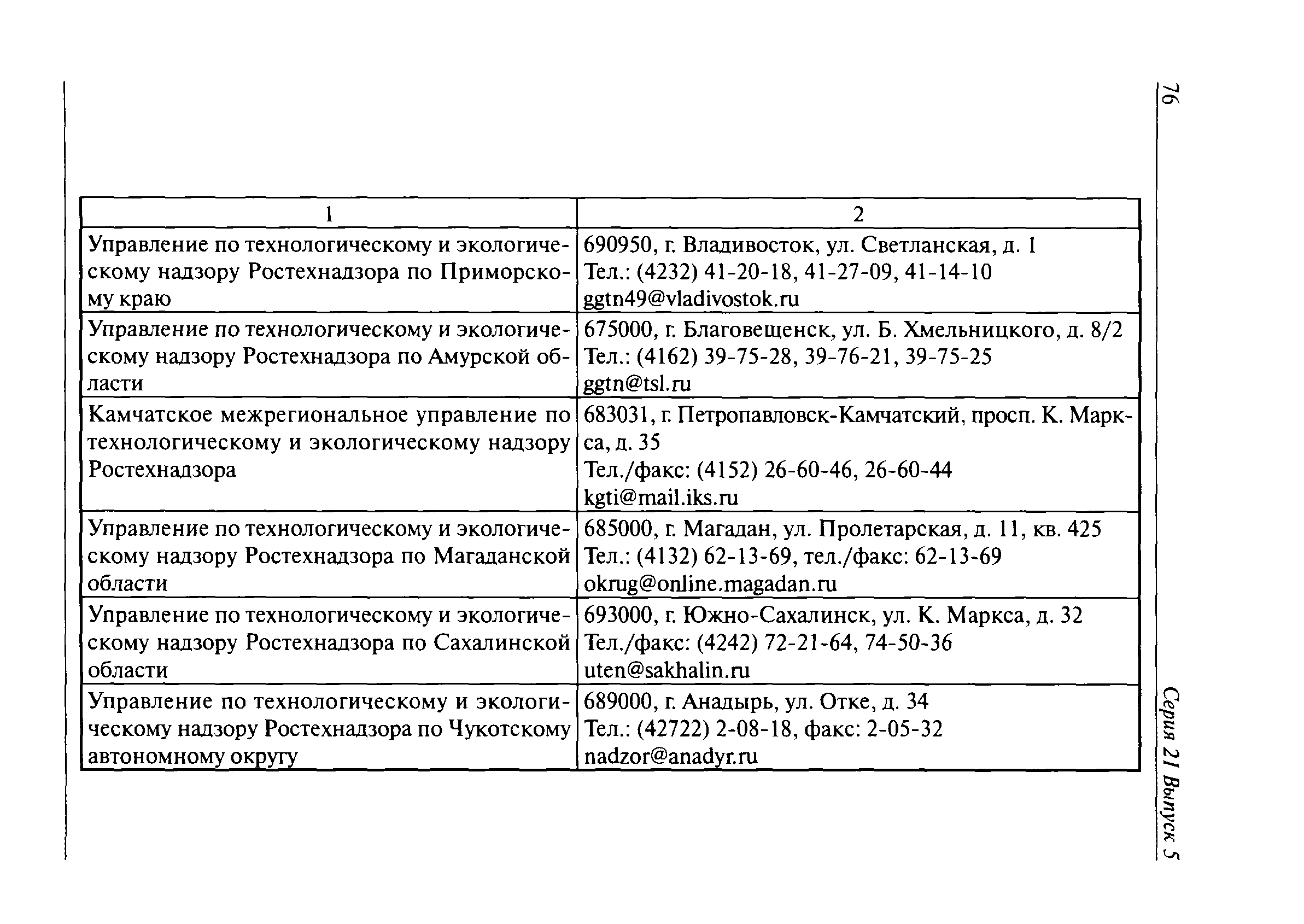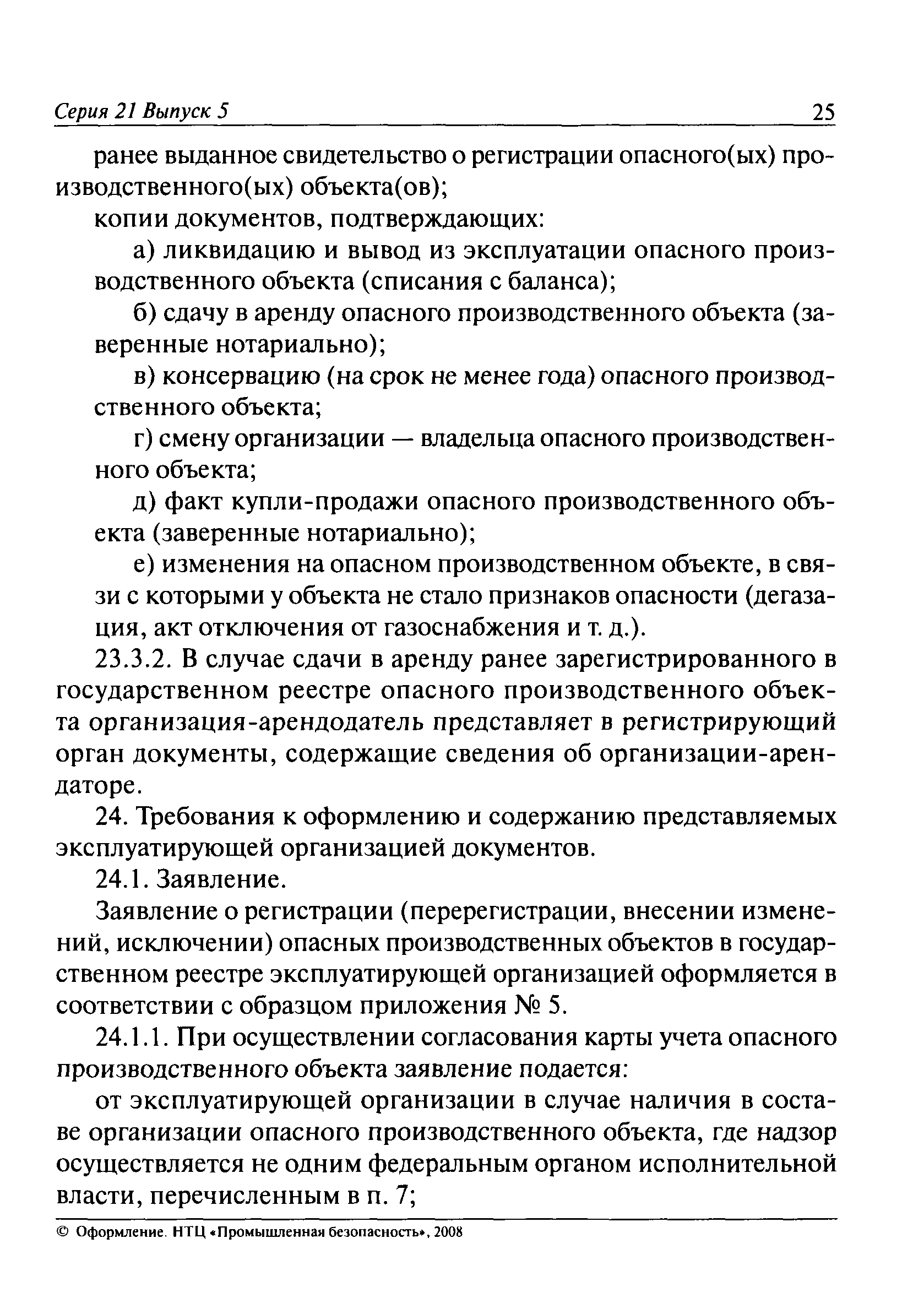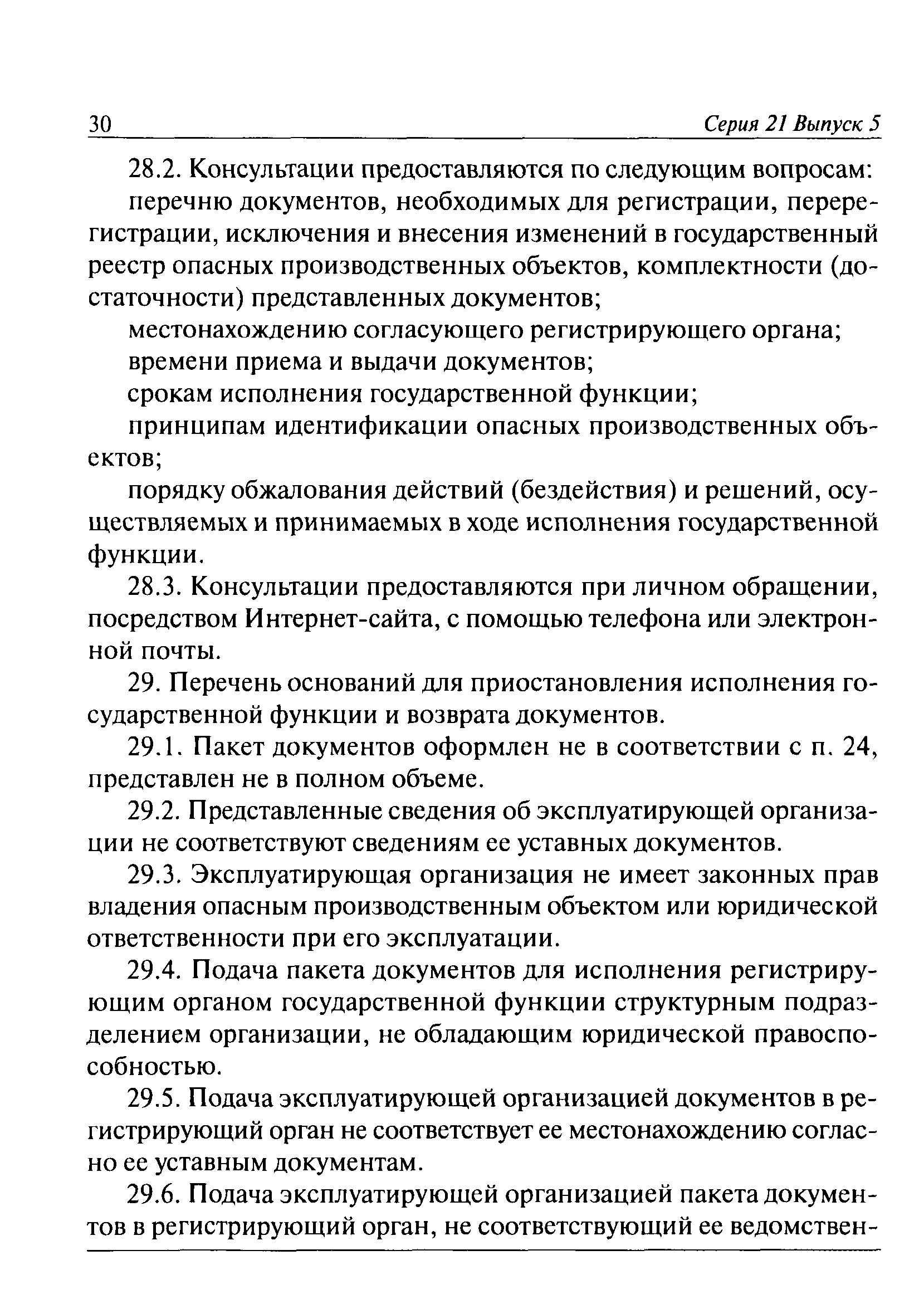 | Оглавление: | I. Общие положения II. Требования к порядку исполнения государственной функции III. Административные процедуры Приложение № 1. Перечень федеральных органов исполнительной власти, осуществляющих ведение соответствующих разделов государственного реестра опасных производственных объектов, и их индексы в государственном реестре Приложение № 2. Перечень кодов (индексов) субъектов Российской Федерации Приложение № 3. Список территориальных органов Ростехнадзора Приложение № 4. Блок схема исполнения государственной функции по регистрации опасных производственных объектов и ведению государственного реестра опасных производственных объектов Приложение № 5. Образец Заявления эксплуатирующей организации Приложение № 6. Образец Карты учета объекта в государственном реестре опасных производственных объектов Требования к порядку оформления карты учета Приложение № 7. Образец оформления документа Приложение № 8. Критерии идентификации Приложение № 9. Образец бланка Свидетельства о регистрации |