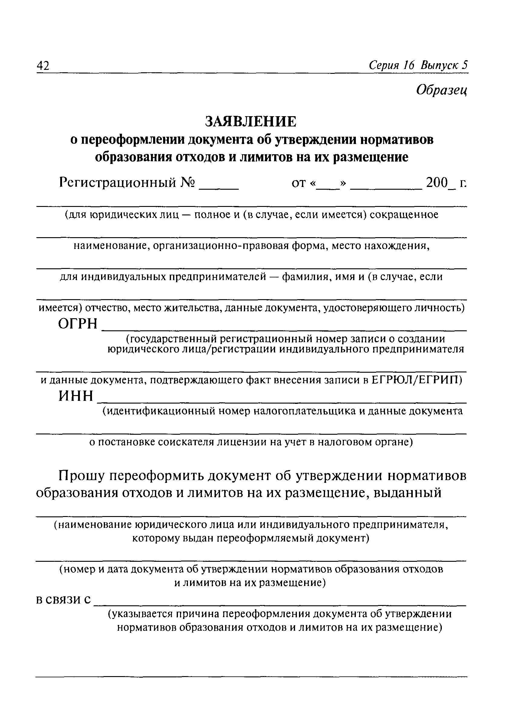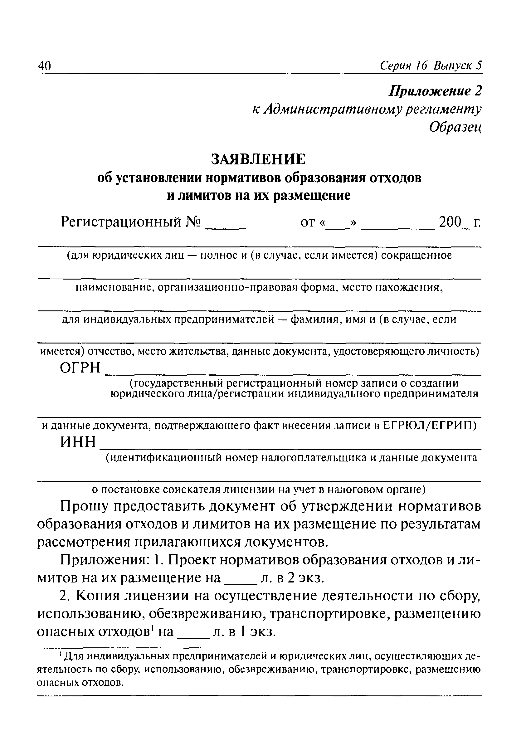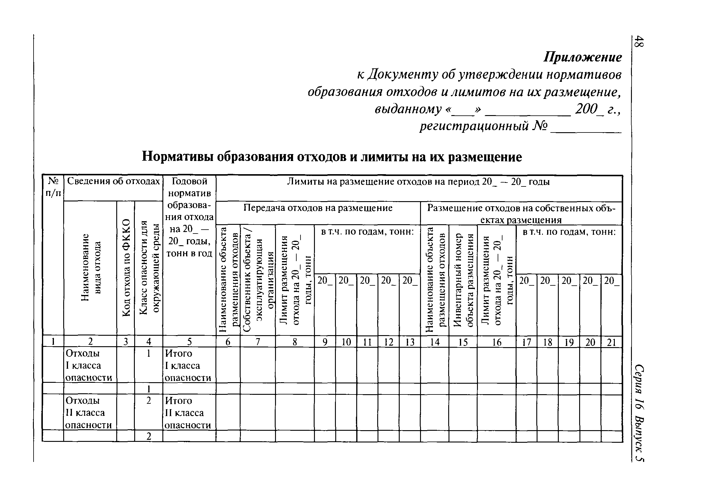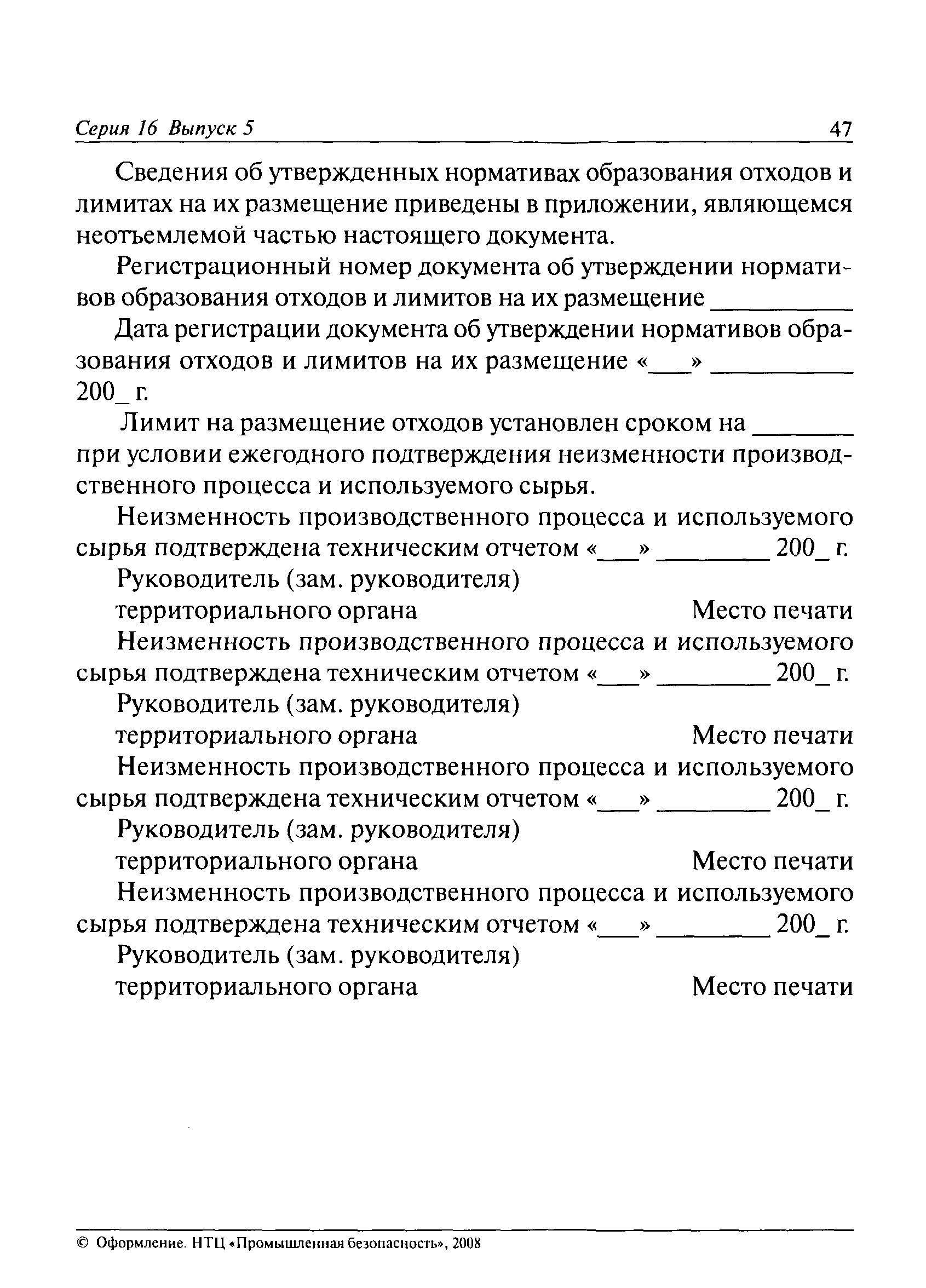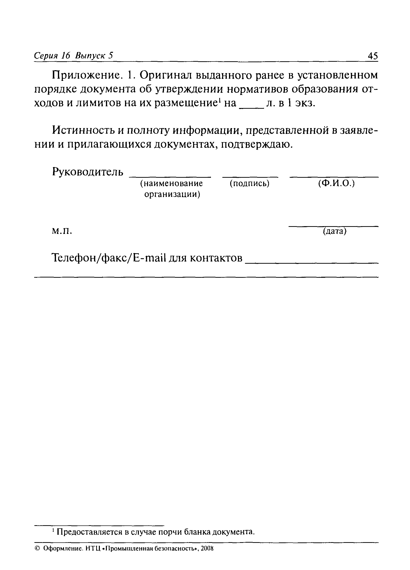 | Оглавление: | I. Общие положения II. Требования к порядку исполнения государственной функции по установлению лимитов на размещение отходов III. Административные процедуры IV. Обжалование действий (бездействий) должностных лиц в ходе выполнения административных процедур при исполнении государственной функции по установлению лимитов на размещение отходов Приложение 1. Список территориальных органов Ростехнадзора Приложение 2. Образцы Заявлений об установлении нормативов образования отходов и лимитов на их размещение, о переоформлении документа, о выдаче дубликата документа об утверждении нормативов образования отходов и лимитов на их размещение Приложение 3. Образец Документа об утверждении нормативов образования отходов и лимитов на их размещение Приложение к Документу об утверждении нормативов образования отходов и лимитов на их размещение "Нормативы образования отходов и лимиты на их размещение" Приложение 4. Образцы Письма об отказе в установлении лимитов на размещение отходов и Письма об отказе в переоформлении документа об утверждении нормативов образования отходов и лимитов на их размещение Приложение 5. Взаимосвязь административных процедур и блок-схемы последовательности действий при исполнении государственной функции по установлению лимитов на размещение отходов Приложение 6. Описание последовательности и состава административных действий территориального органа Ростехнадзора при осуществлении административной процедуры по установлению нормативов образования отходов и лимитов на их размещение Приложение 7. Описание последовательности и состава административных действий территориального органа Ростехнадзора при осуществлении административной процедуры по переоформлению документа об утверждении нормативов образования отходов и лимитов на их размещение Приложение 8. Описание последовательности и состава административных действий территориального органа Ростехнадзора при осуществлении административной процедуры по выдаче дубликата документа об утверждении нормативов образования отходов и лимитов на их размещение |