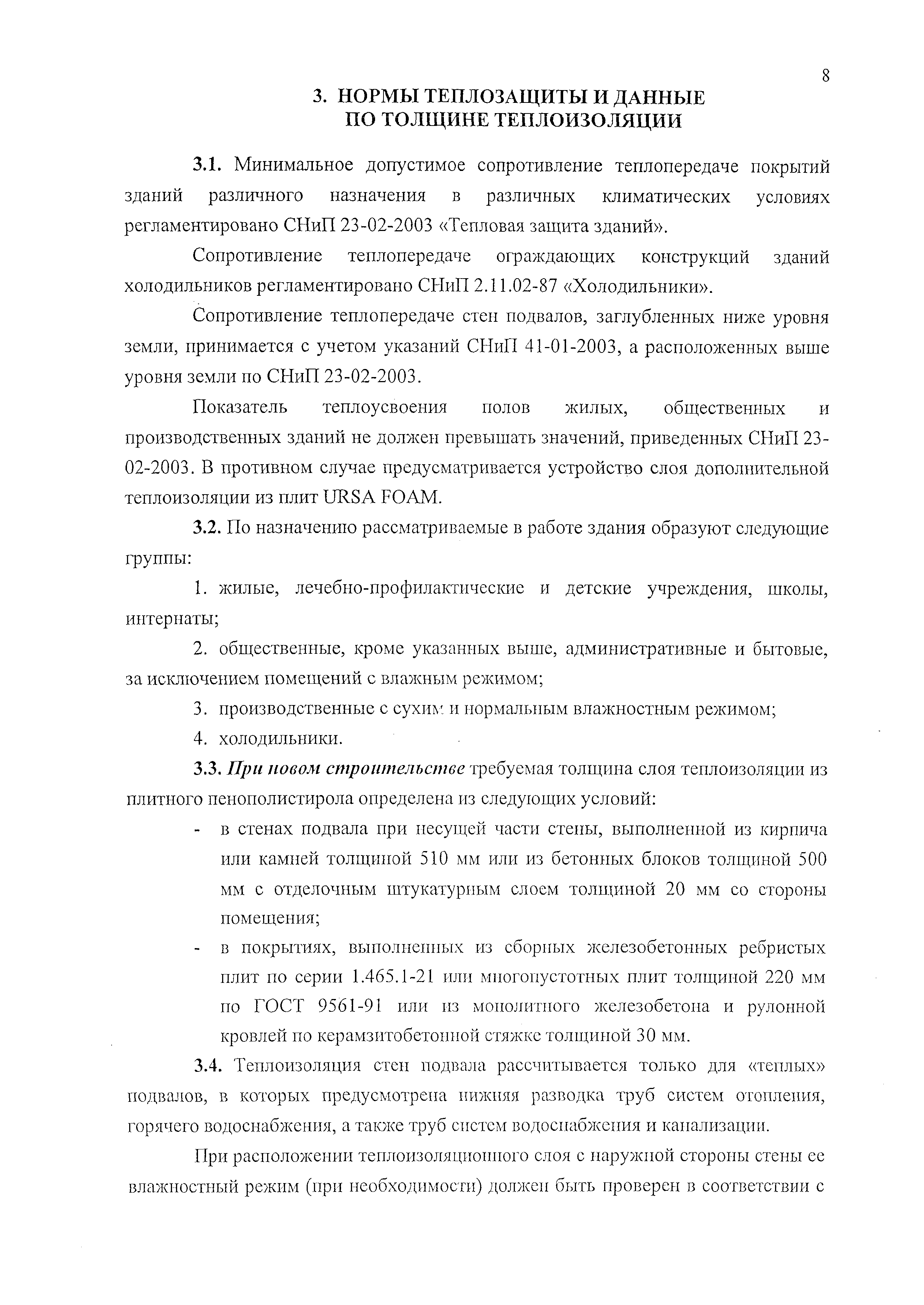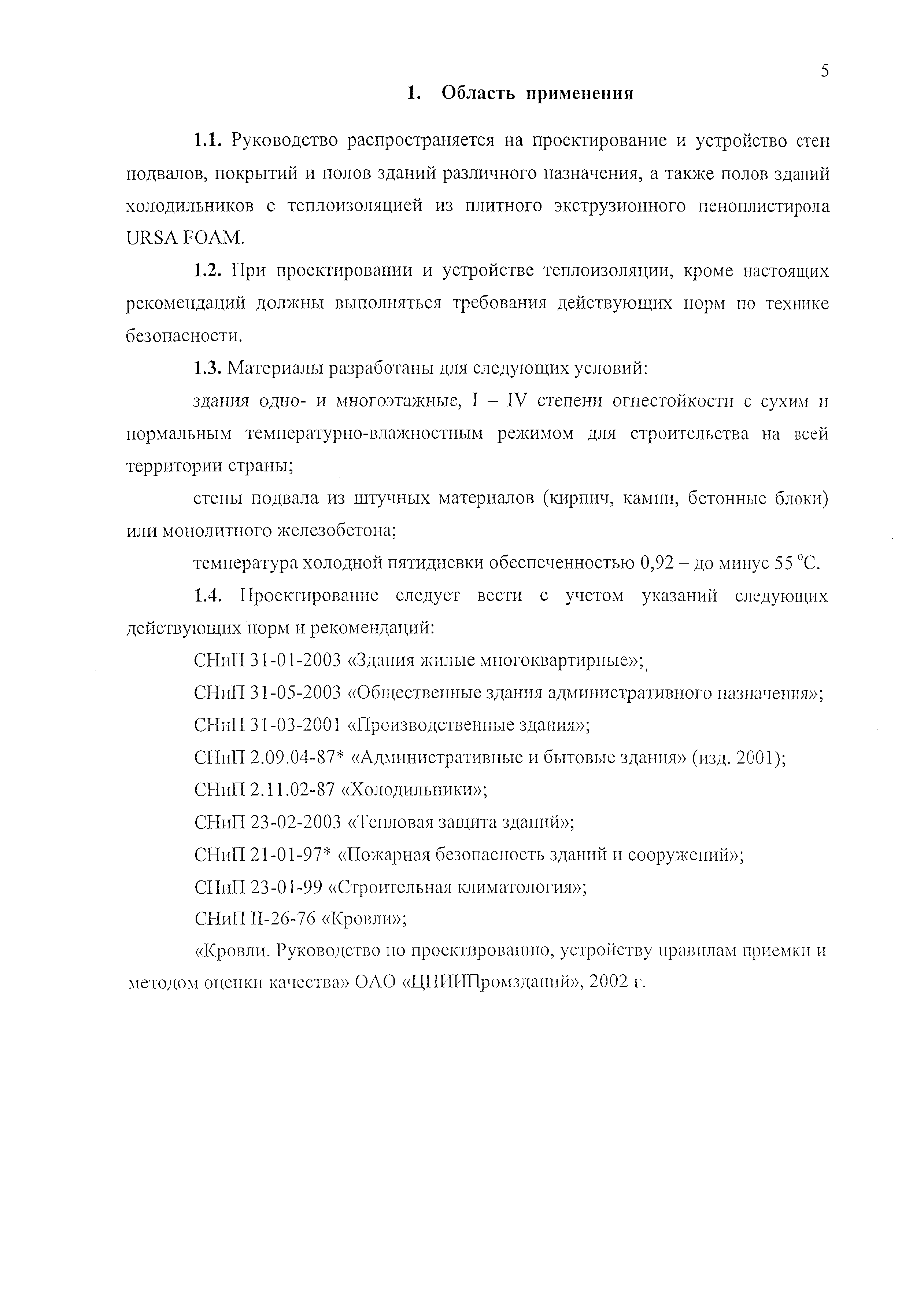 Руководство по проектированию и устройству стен подвалов, покрытий и полов с теплоизоляцией из экструзионного пенополистирола "URSA FOAM"| Статус: | действует | | Название рус.: | Руководство по проектированию и устройству стен подвалов, покрытий и полов с теплоизоляцией из экструзионного пенополистирола "URSA FOAM" | | Дата добавления в базу: | 01.09.2013 | | Дата актуализации: | 01.01.2021 | | Область применения: | Руководство распространяется на проектирование и устройство стен подвалов, покрытий и полов зданий различного назначения, а также полов зданий холодильников с теплоизоляцией из плитного экструзионного пенополистирола URSA FOAM | | Оглавление: | 1. Область применения 2. Теплоизоляция 3. Нормы по теплозащите и данные по толщине теплоизоляции 4. Стены подвалов 5. Покрытия с традиционной кровлей 6. Покрытия с инверсионной кровлей 7. Покрытия с традиционной кровлей. Реконструкция 8. Покрытия с инверсионной кровлей. Реконструкция 9. Полы холодильников 10. Полы на необогреваемом грунте 11. Основные правила техники безопасности Раздел 1. Стены подвала Раздел 2. Покрытия Раздел 3. Полы холодильников Раздел 4. Полы на необогреваемом грунте Приложение Пример 1. Расчет толщины теплоизоляции стены подвала Пример 2. Определение возможности конденсации влаги внутри стены подвала жилого этажа Пример 3. Определение возможности накопления влаги и необходимости устройства дополнительной пароизоляции в многослойном покрытии при реконструкции производственного здания |