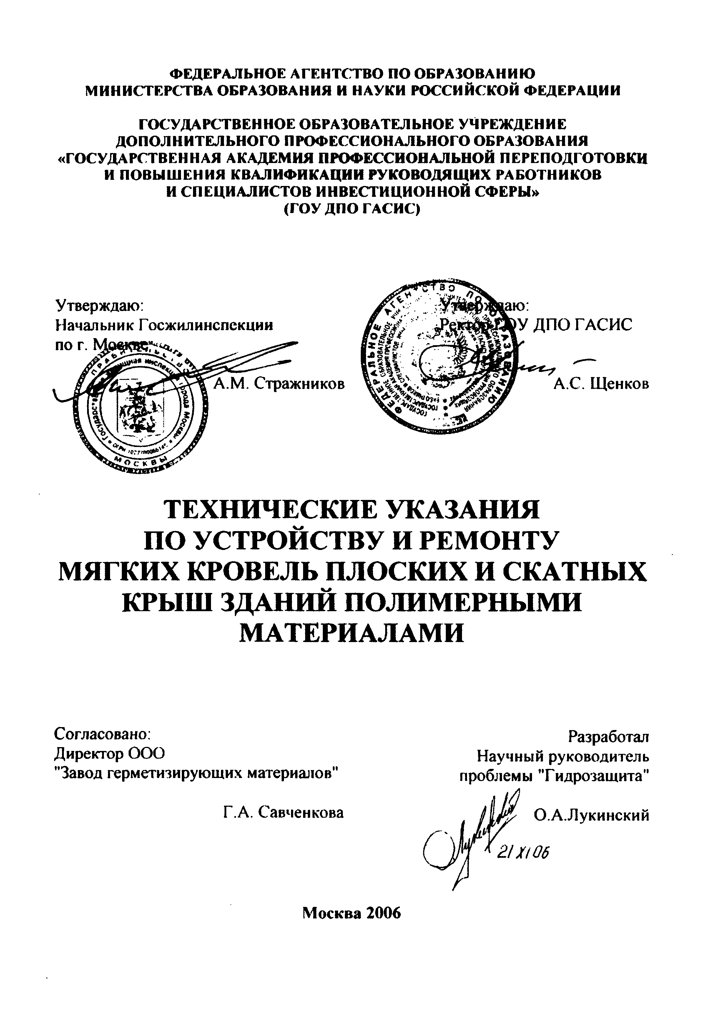 | Утверждён: | Госжилинспекция по г. Москве ГОУ ДПО ГАСИС