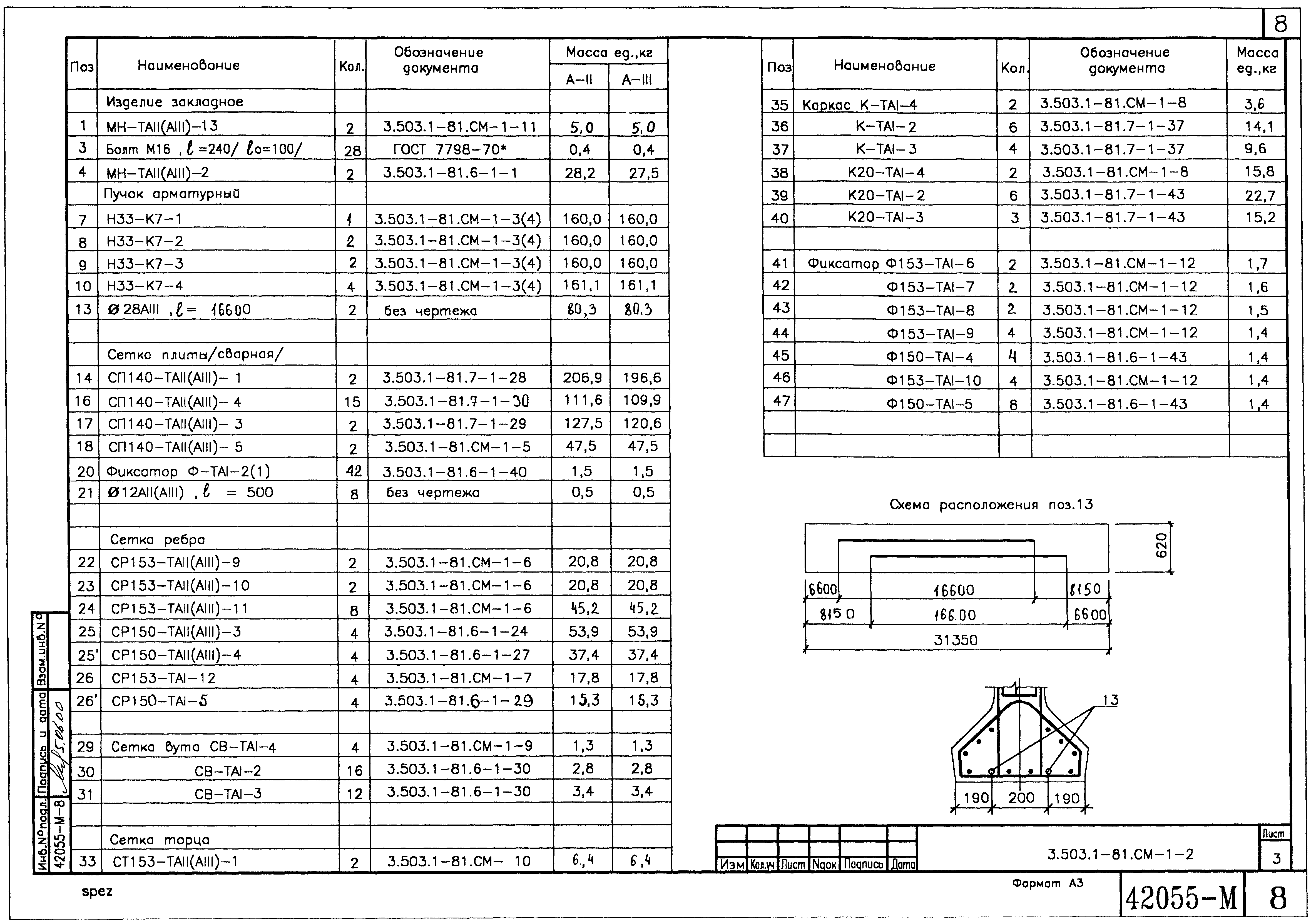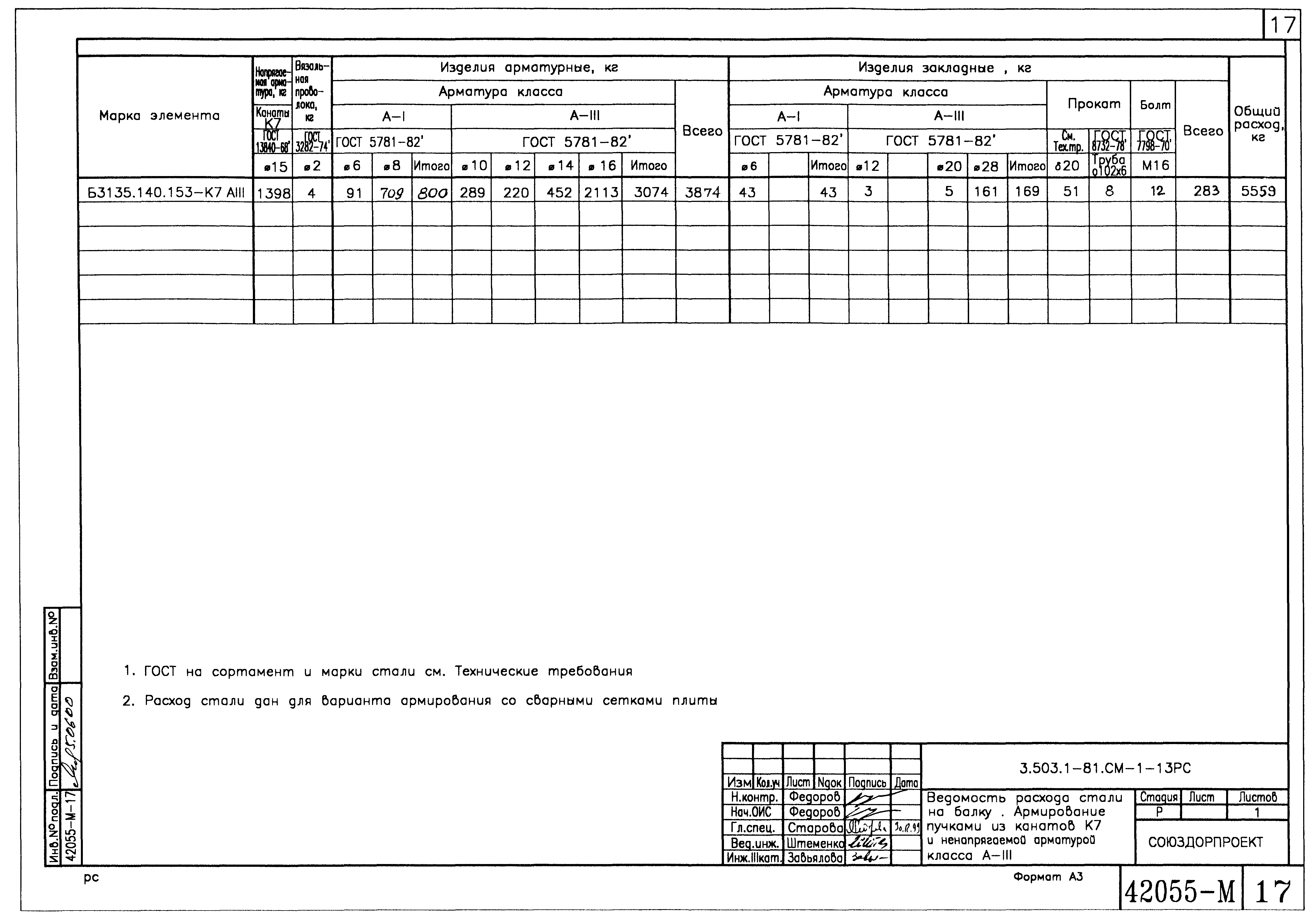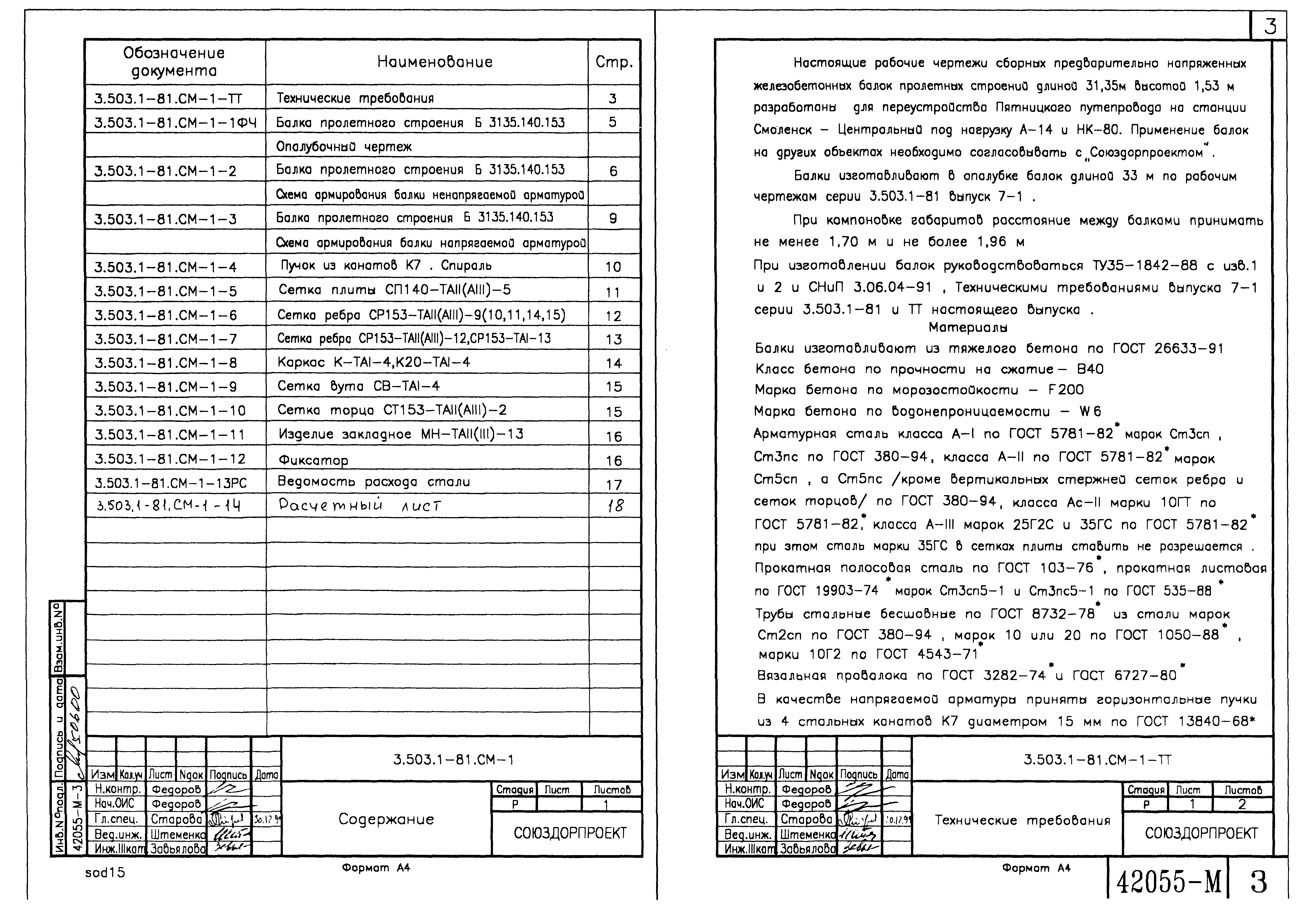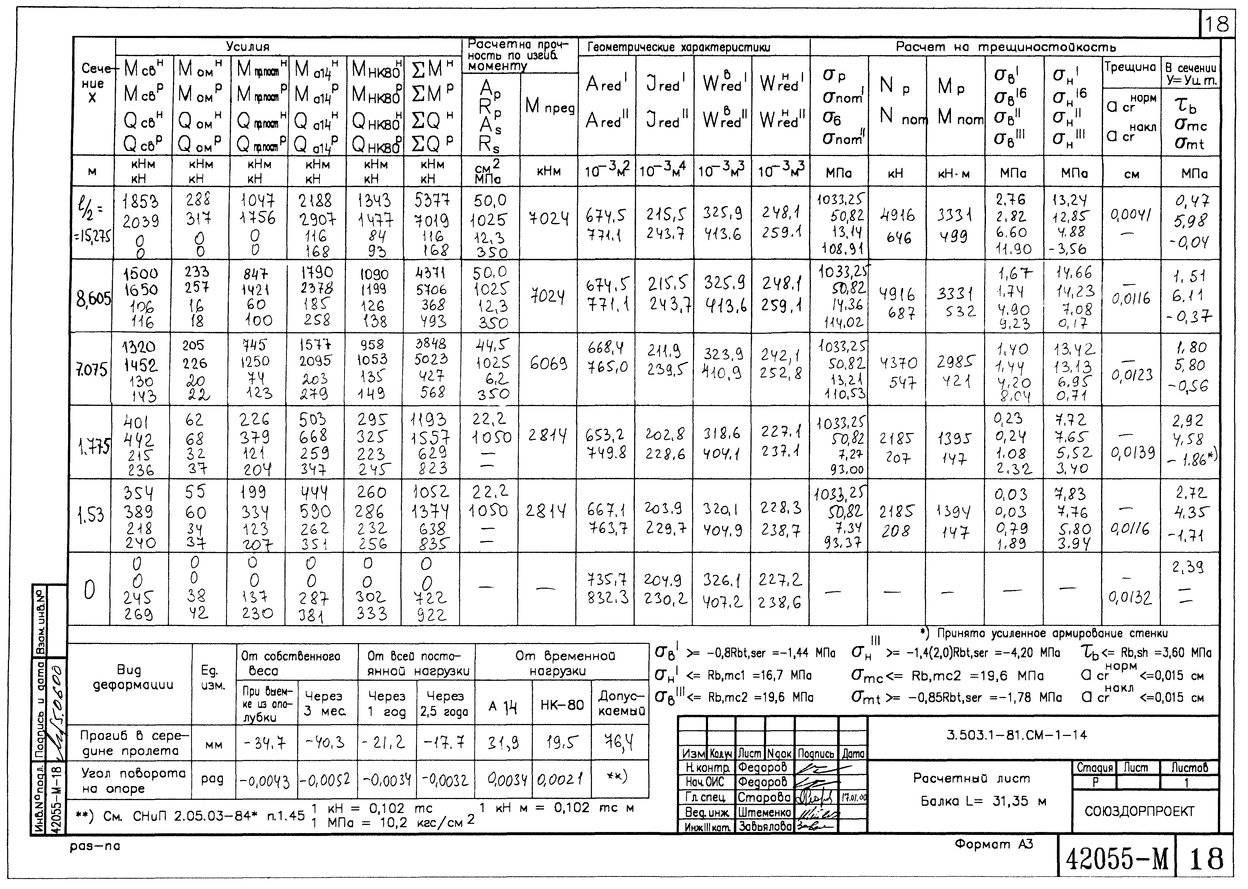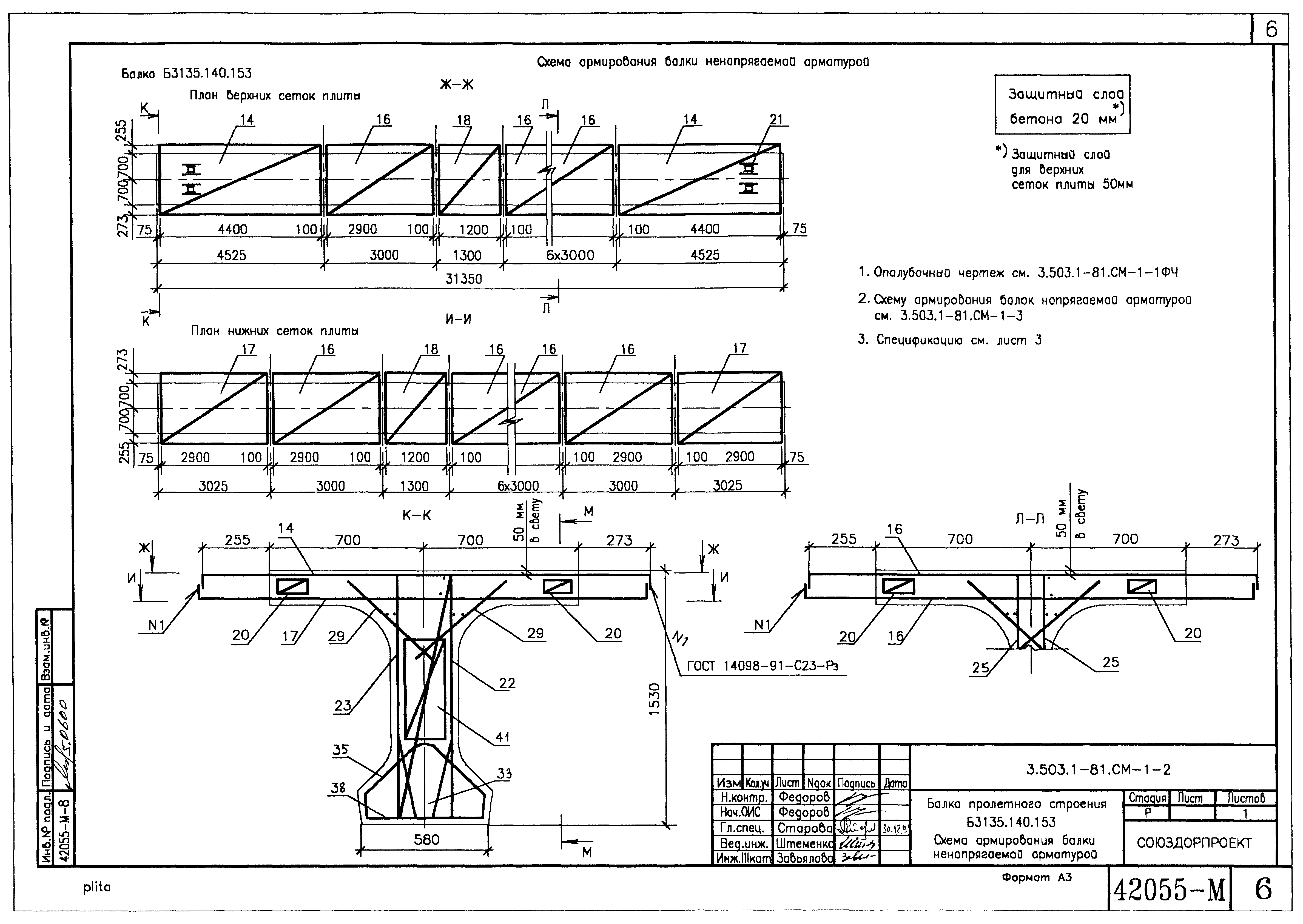 Скачать Выпуск 1. Балки пролетного строения 31,35 м, высотой 1,53 м, армированные пучками из 4 стальных канатов К7 по ГОСТ 13840-68*. Рабочие чертежиДата актуализации: 01.01.2021