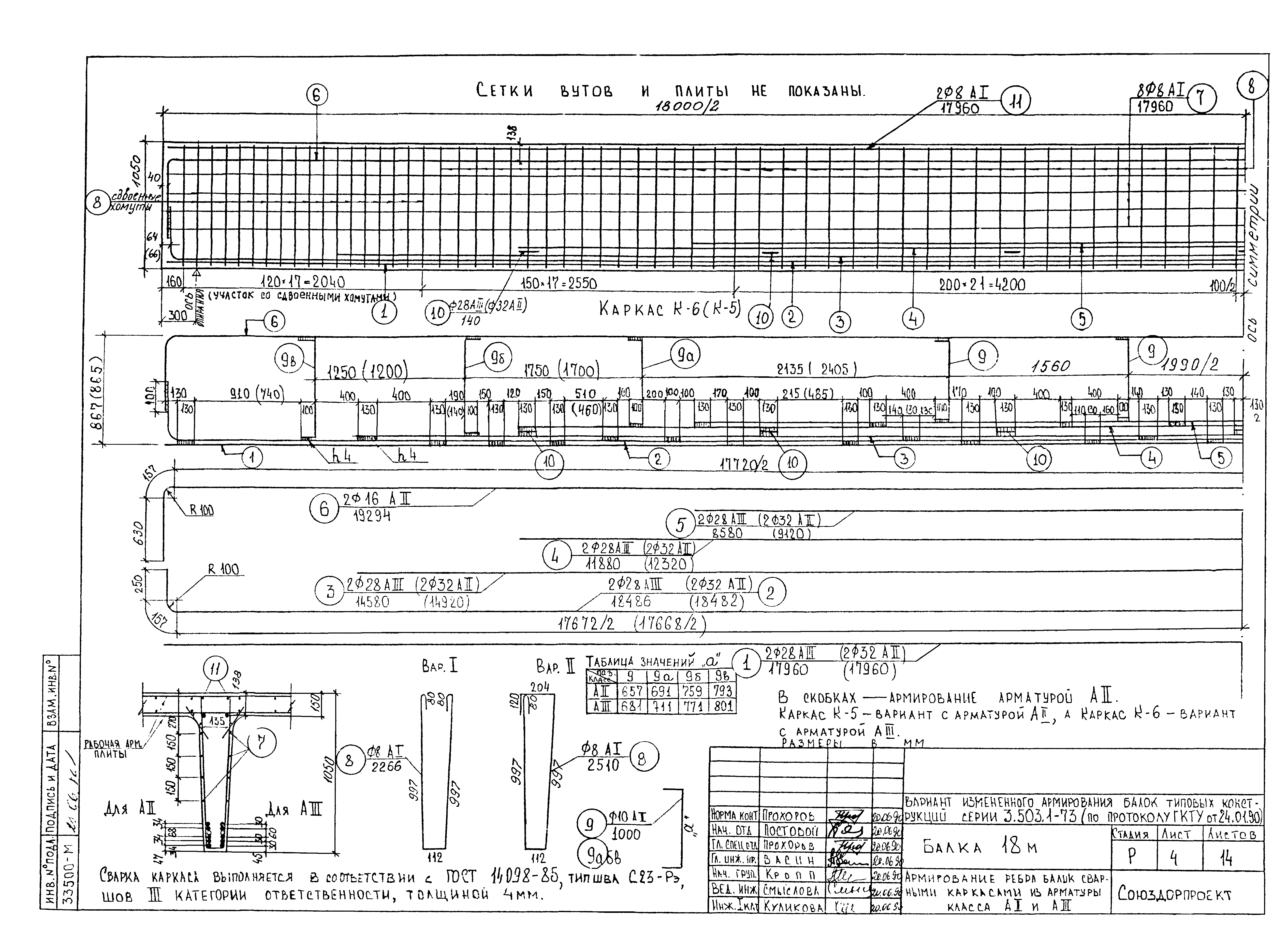 | Название рус.: | Вариант измененного армирования балок типовых конструкций серии 3.503.1-73 |