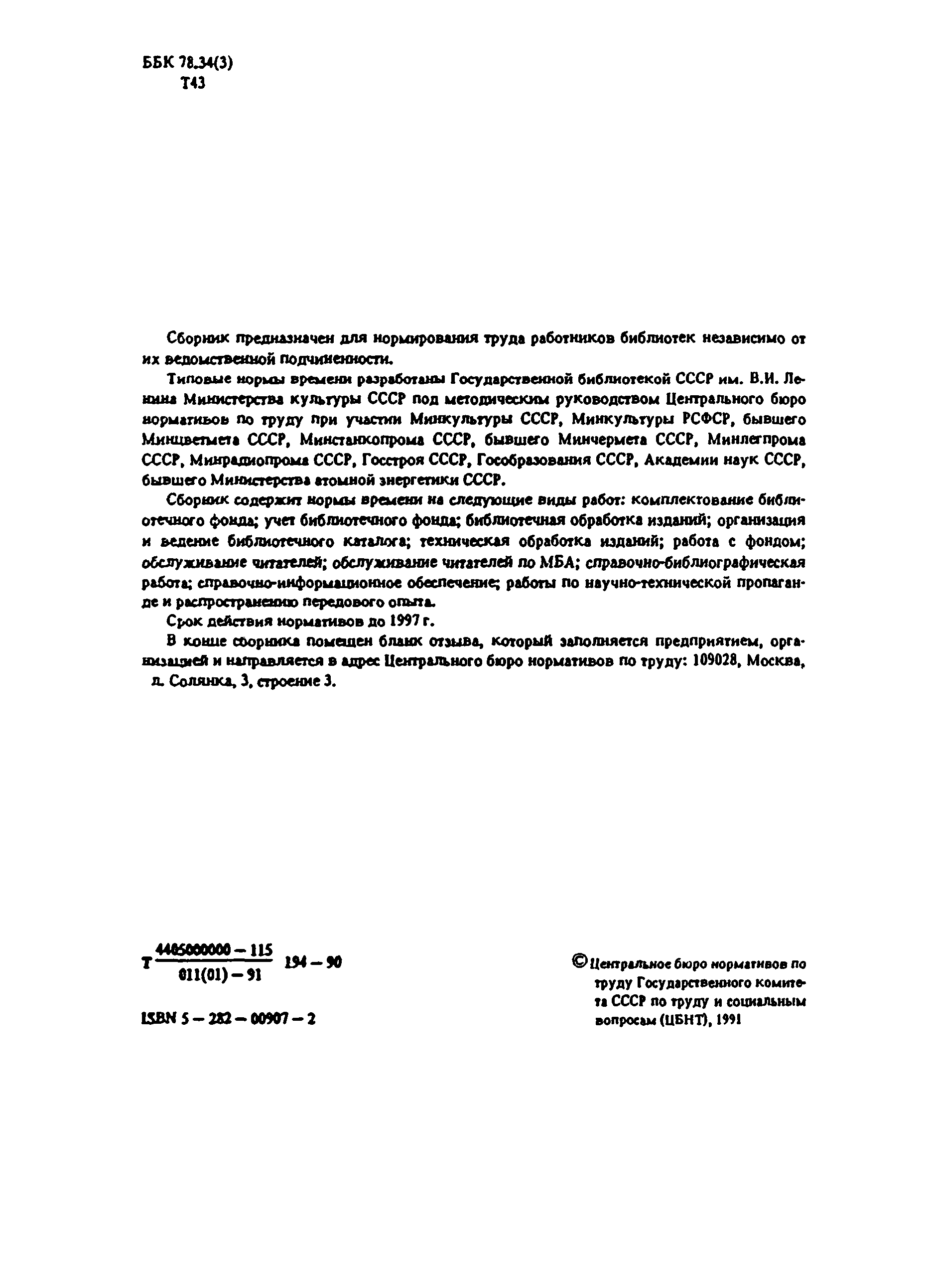 | Название рус.: | Типовые нормы времени на работы, выполняемые в библиотеках |