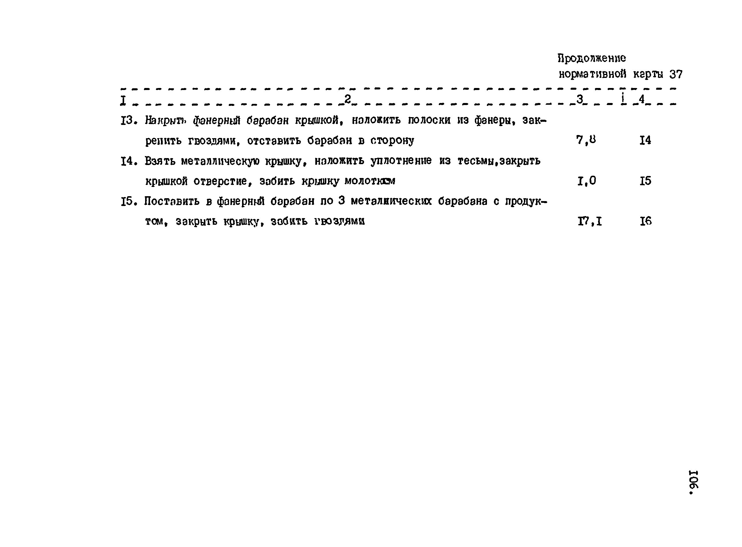| Оглавление: | 1. Общая часть 2. Организация труда 3. Нормативная часть 3.1. Фасовка и упаковка продуктов в мешки 3.2. Фасовка и упаковка продуктов в контейнеры 3.3. Фасовка и упаковка продуктов в пакеты, коробки, пеналы 3.4. Фасовка и упаковка продуктов в крупную стеклянную тару 3.5. Фасовка и упаковка продуктов в бутылки (флаконы) 3.6. Фасовка и упаковка продуктов во фляги (бидоны) 3.7. Фасовка и упаковка продуктов в бочки и барабаны 3.8. Фасовка и упаковка продуктов в банки, канистры 4. Приложение: Пример расчета комплексной нормы времени и нормы выработки на фасовку и упаковку готовой продукции |