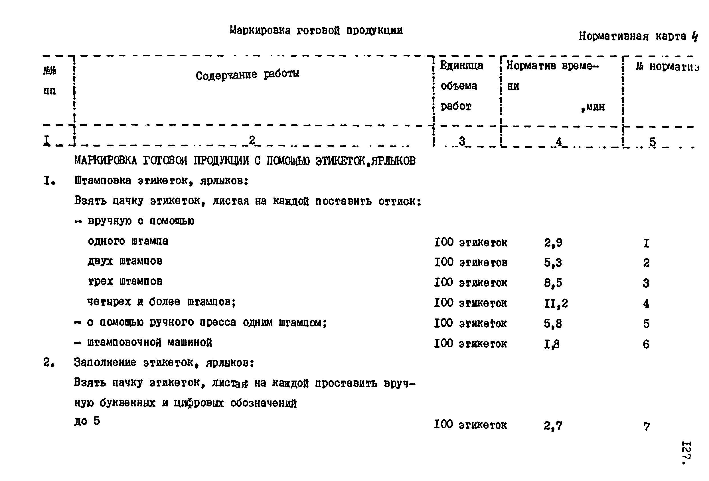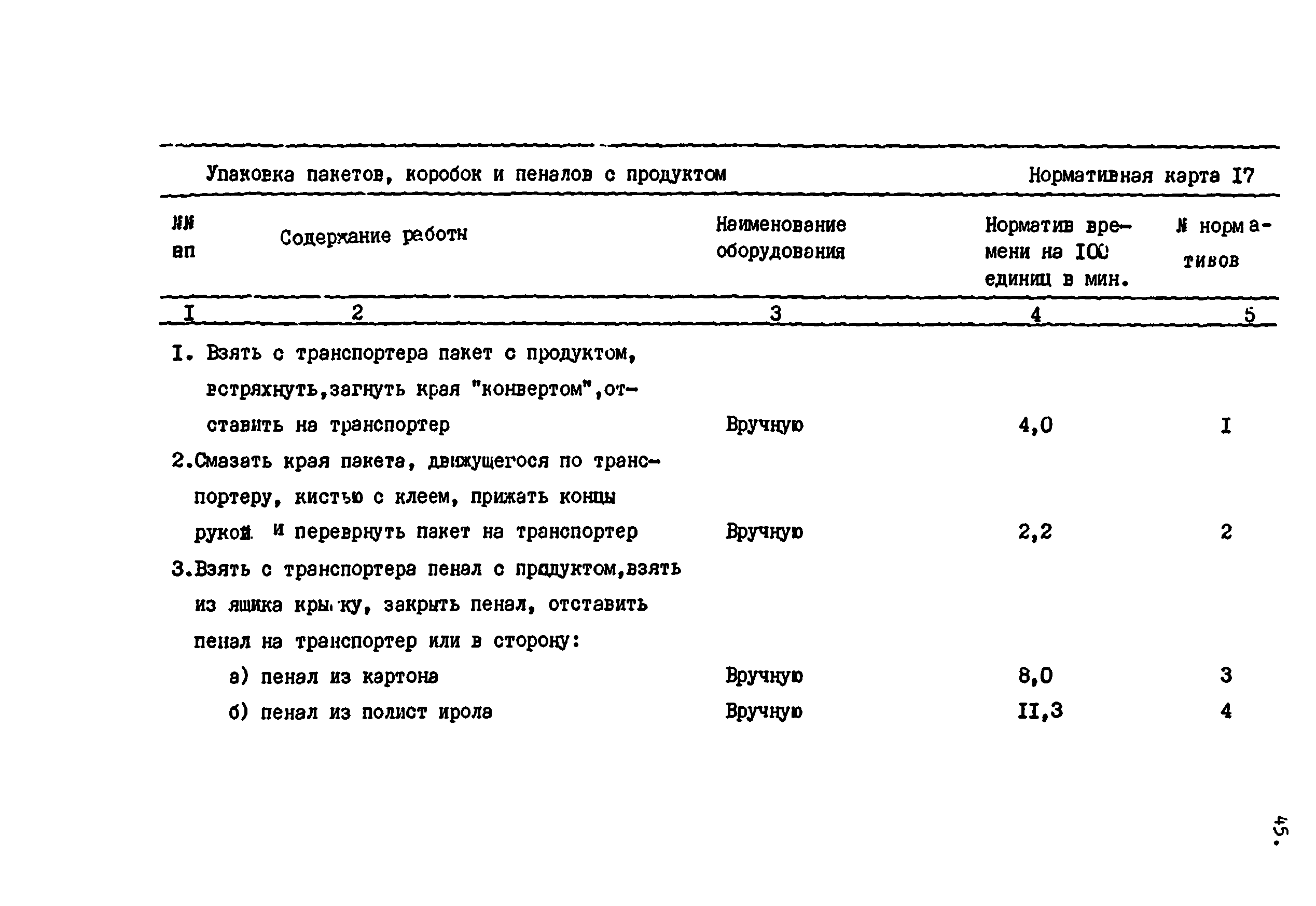 | Название рус.: | Нормативы времени на фасовку готовой продукции и упаковку ее в различную тару |