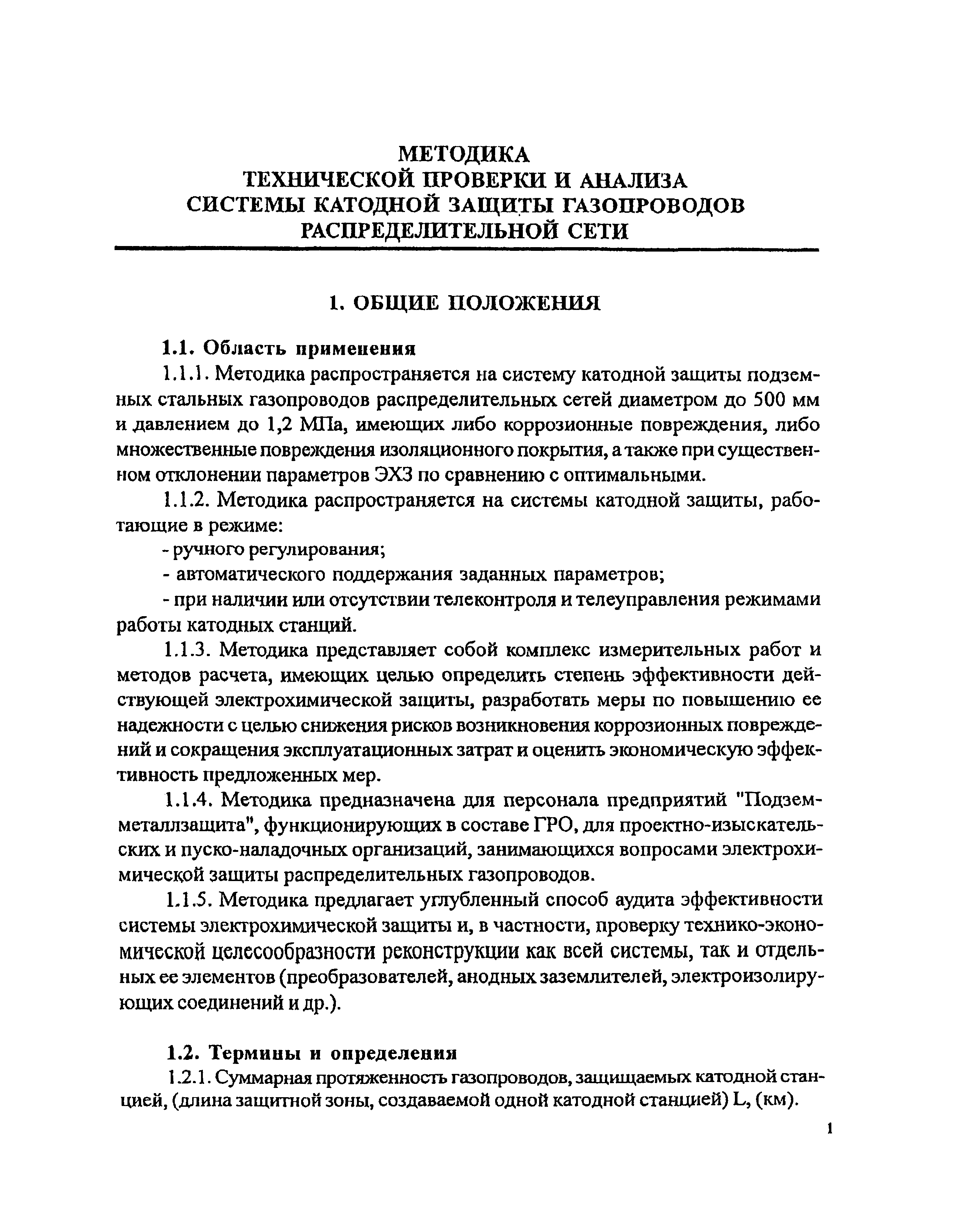 | Область применения: | Методика распространяется на систему катодной защиты подземных стальных газопроводов распределительных сетей диаметром до 500 мм и давлением до 1,2 МПа, имеющих либо коррозионные повреждения, либо множественные повреждения изоляционного покрытия, а также при существенном отклонении параметров ЭХЗ по сравнению с оптимальными |