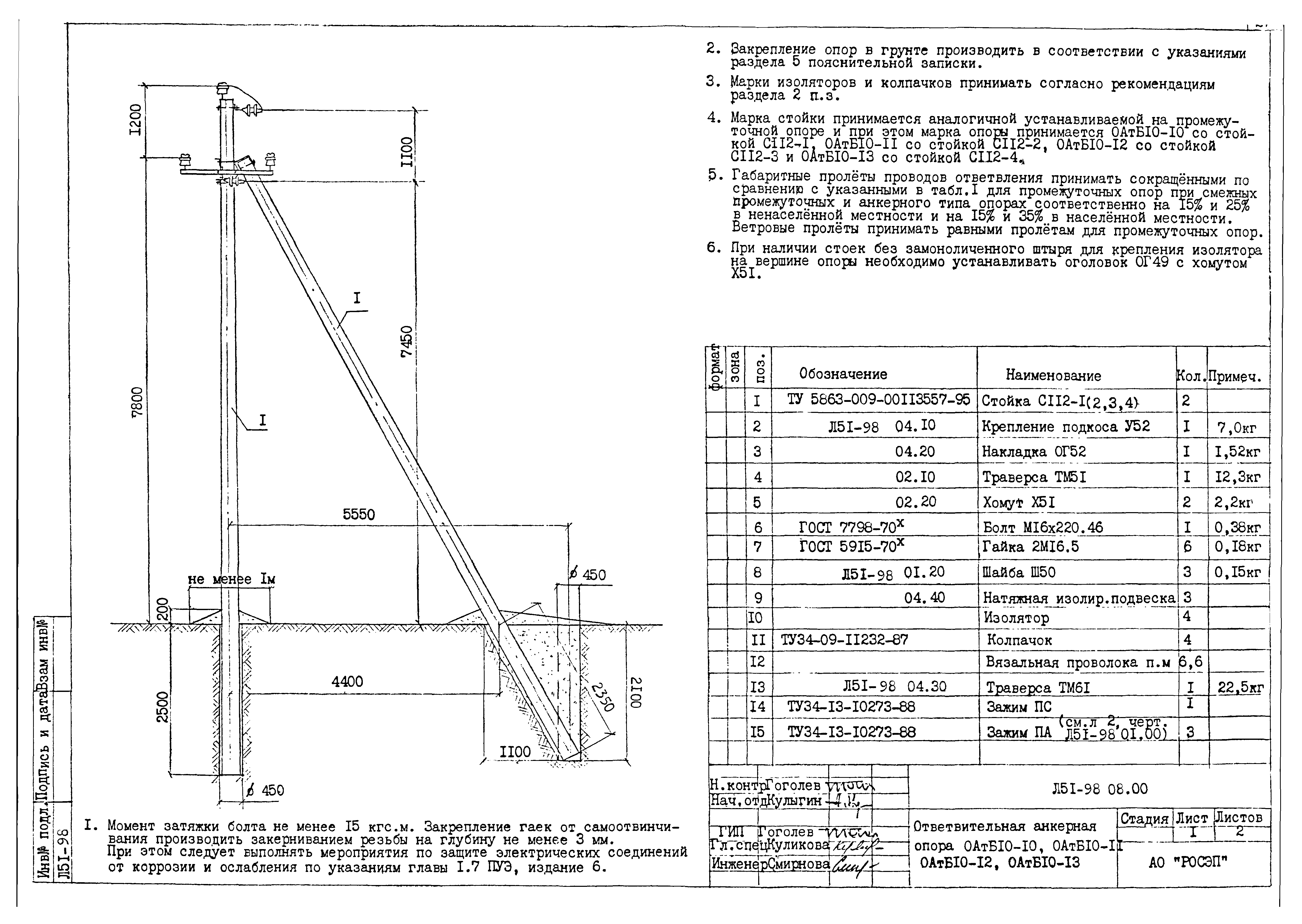 Скачать Нормальные железобетонные опоры ВЛ 10 кВ на базе стоек С112. Рабочие чертежиДата актуализации: 01.01.2021