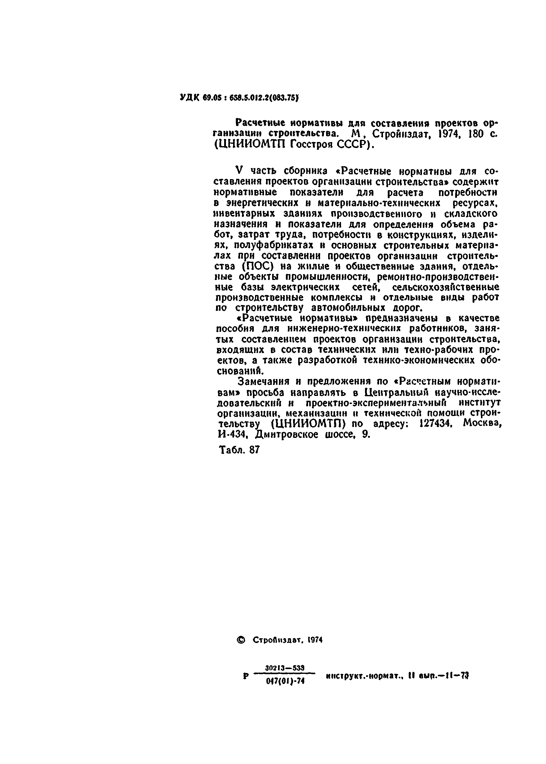 Расчетные нормативы для составления проектов организации строительства. Часть V| Статус: | действует | | Название рус.: | Расчетные нормативы для составления проектов организации строительства. Часть V | | Дата добавления в базу: | 01.09.2013 | | Дата актуализации: | 01.01.2021 | | Область применения: | Сборник содержит нормативные показатели для расчета потребности в энергетических и материально-технических ресурсах, инвентарных зданиях производственного и складского назначения и показатели для определения объема работ, затрат труда, потребности в конструкциях, изделиях, полуфабрикатах и основных строительных материалах при составлении проектов организации строительства (ПОС) на жилые и общественные здания, отдельные объекты промышленности, ремонтно-производственные базы электрических сетей, сельскохозяйственные производственные комплексы и отдельные виды работ по строительству автомобильных дорог | | Оглавление: | Предисловие Общая часть (1-8) Приложение 1 Приложение 2 Приложение 3 | | Разработан: | ЦНИИОМТП
